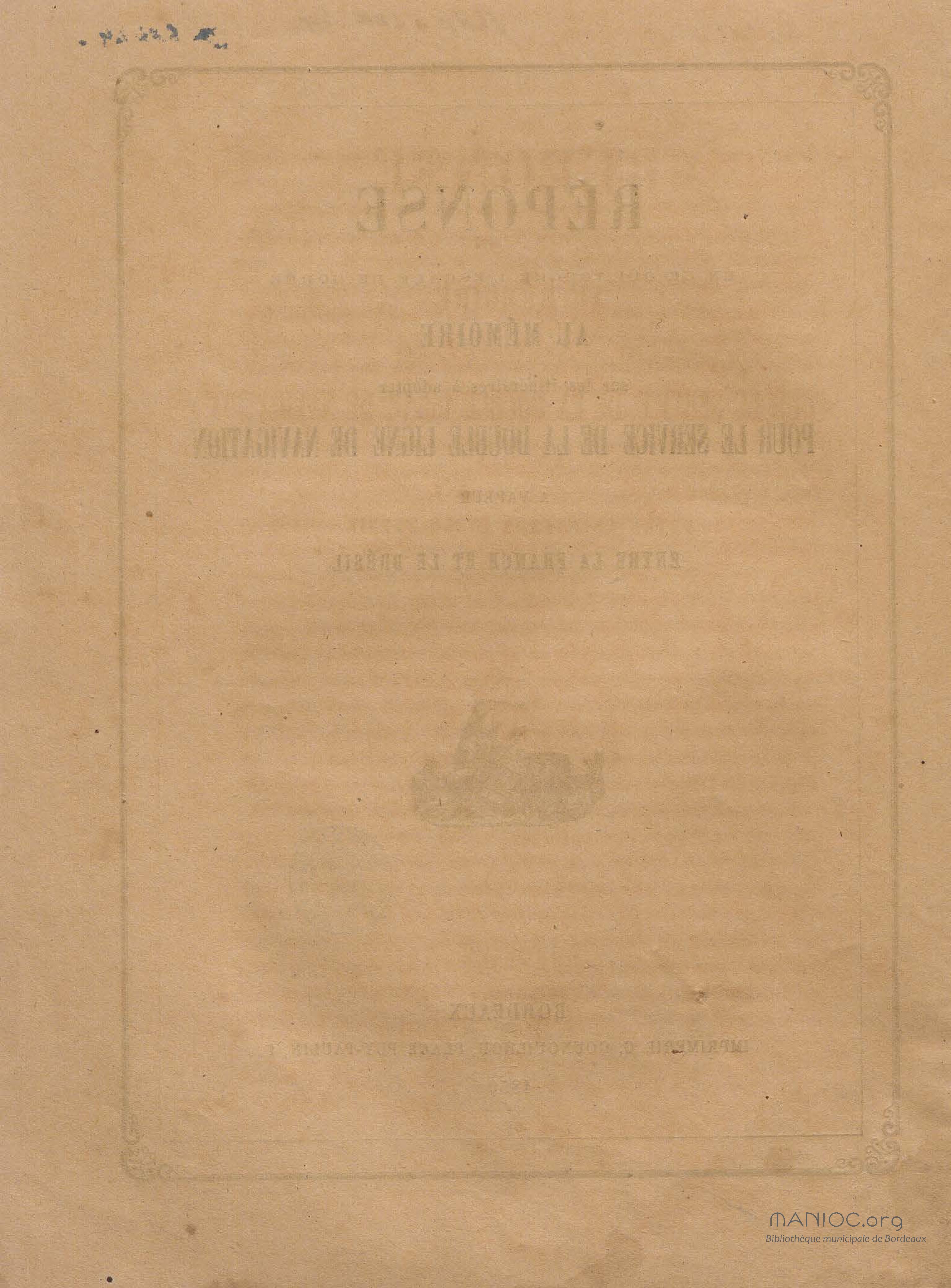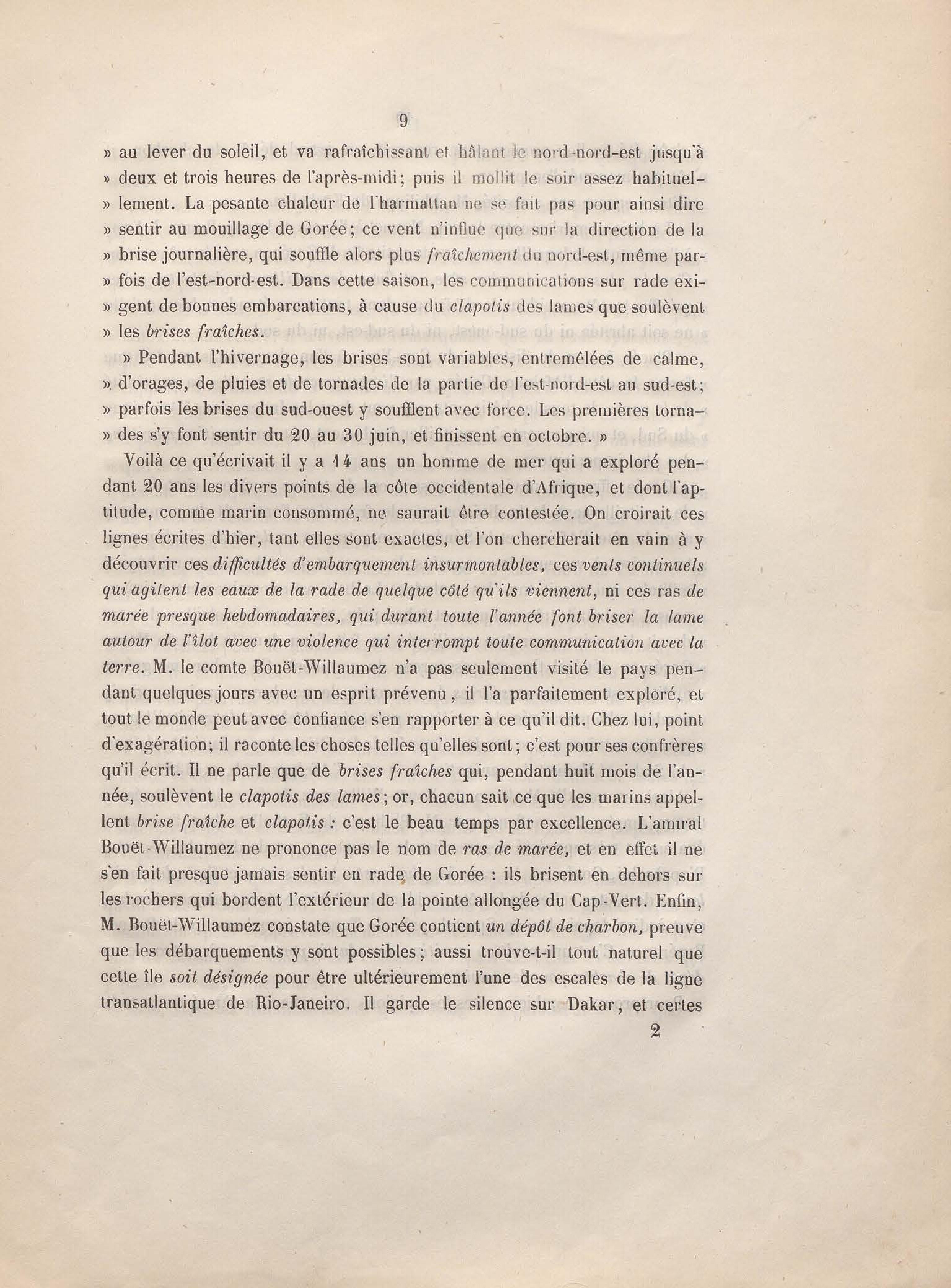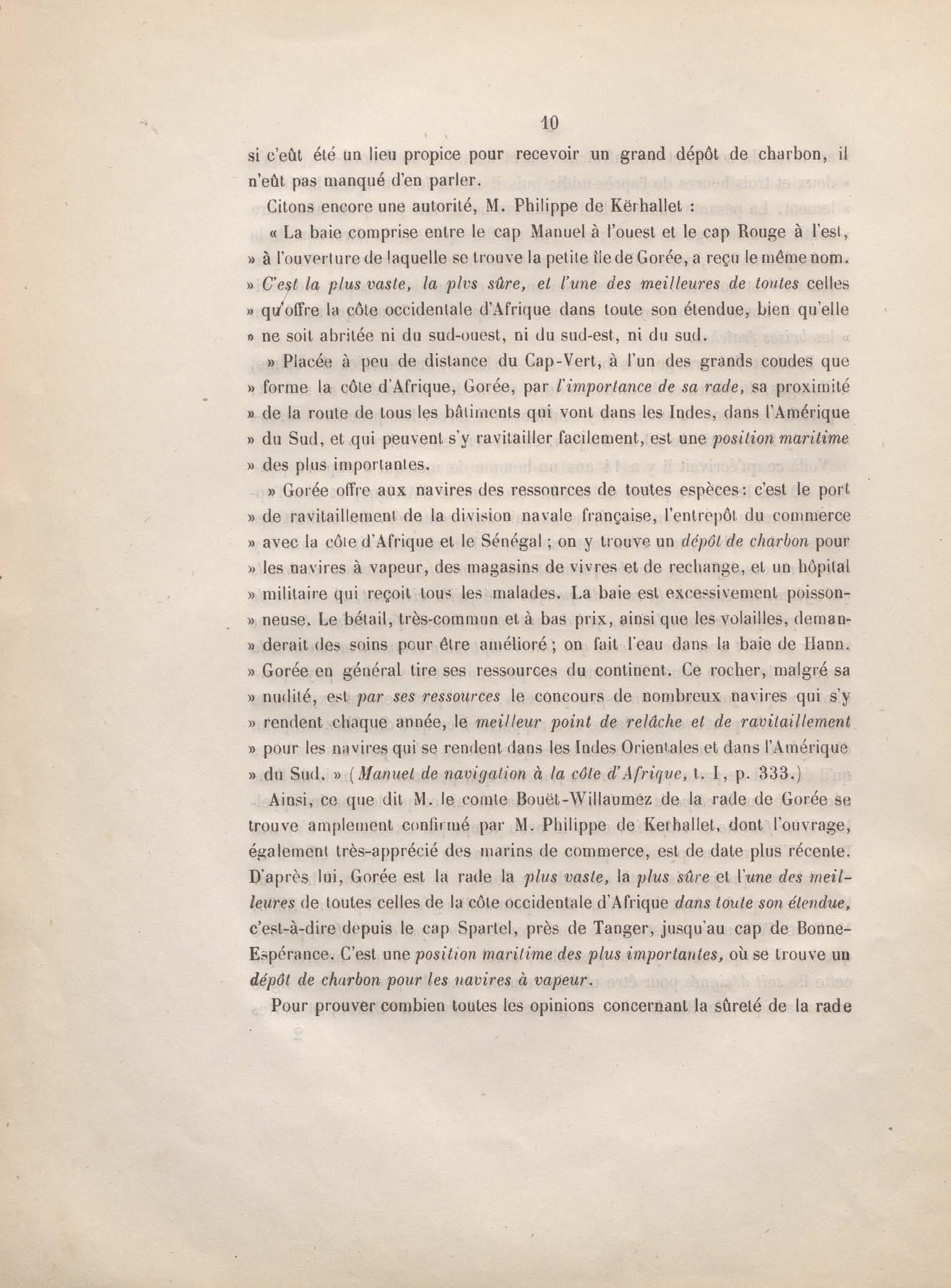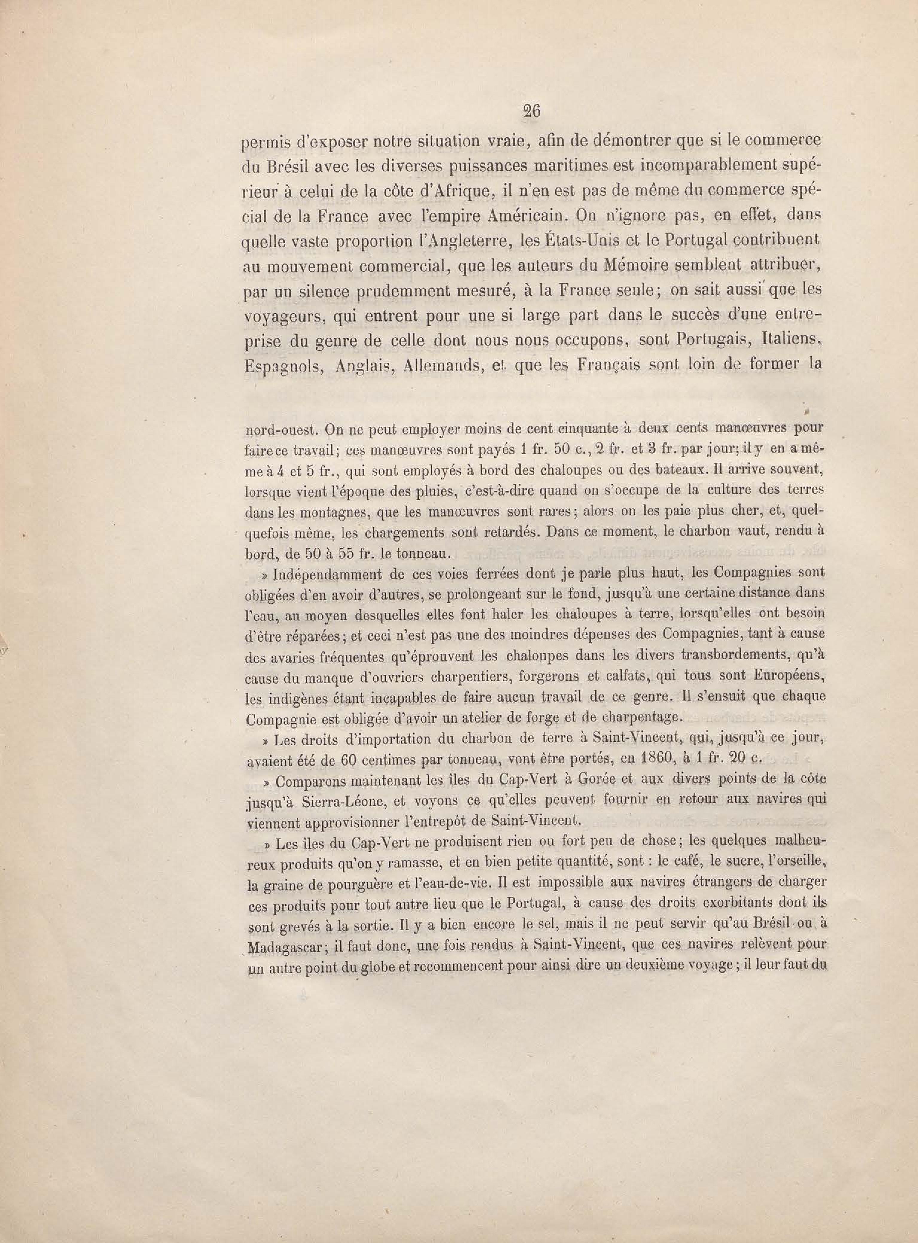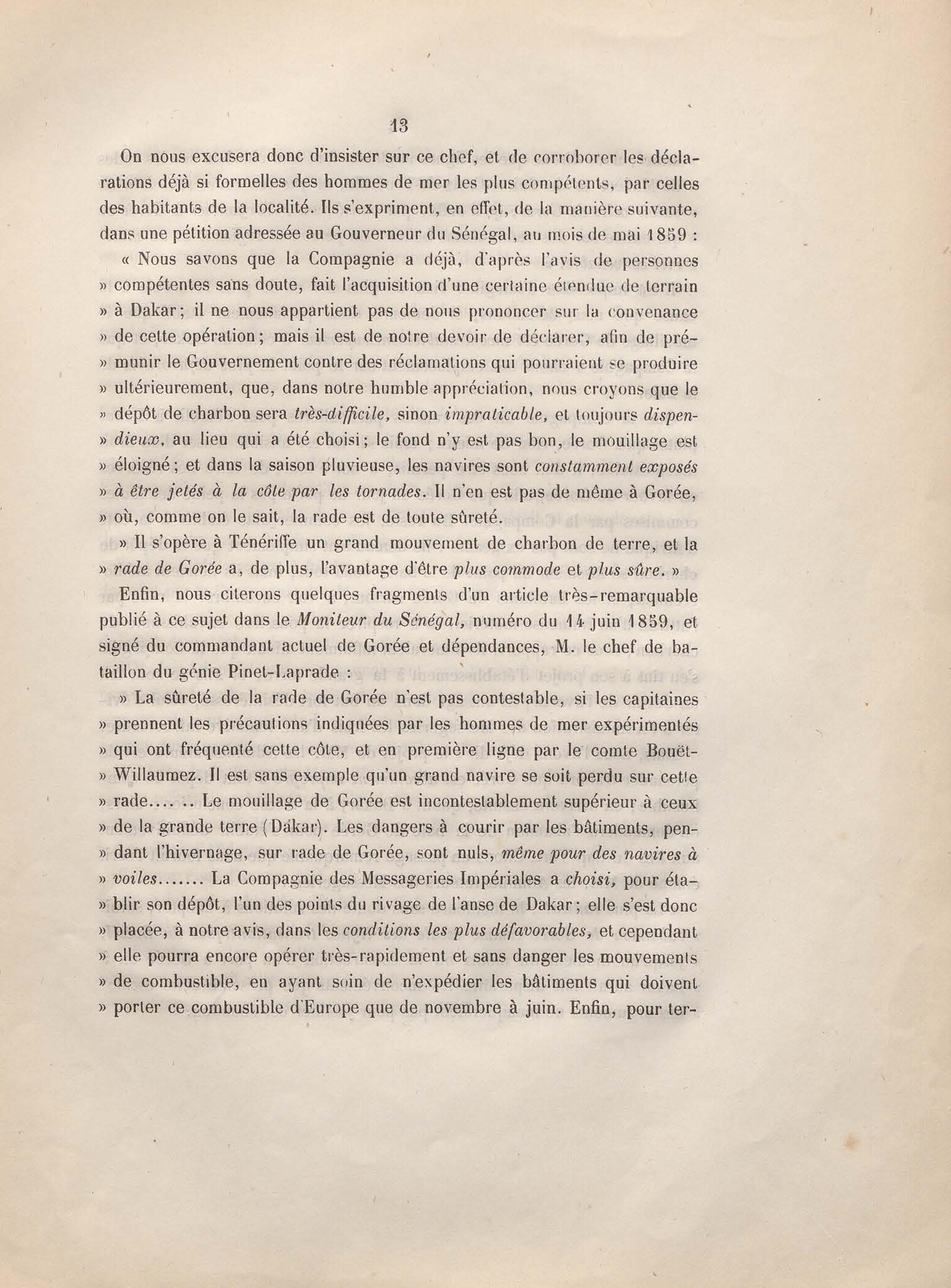 Réponse en ce qui touche l'escale de Gorée au mémoire sur les itinéraires à adopter pour le service de la double ligne de navigation à vapeur entre la France et le Brésil