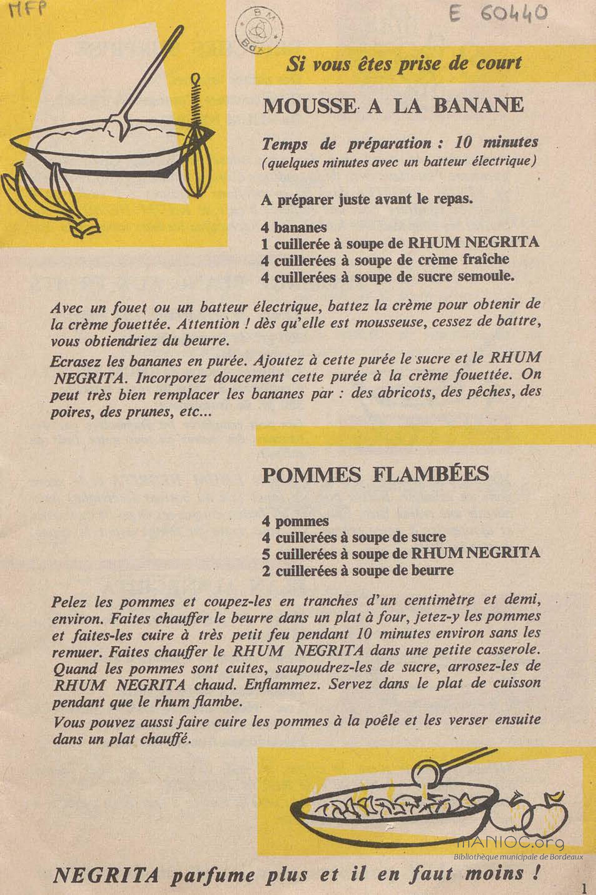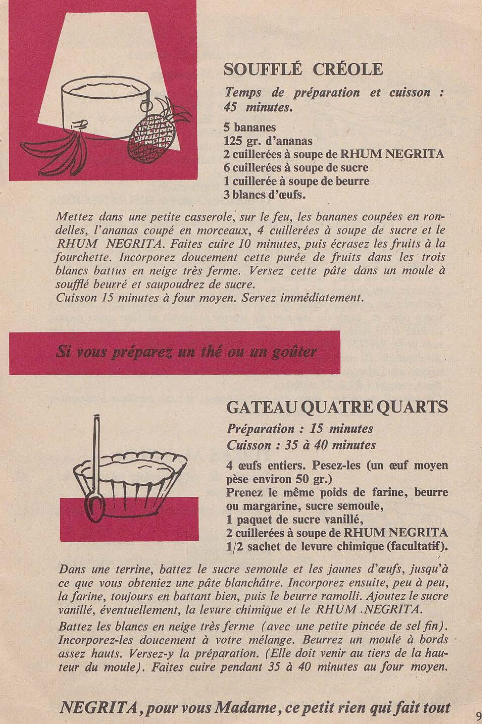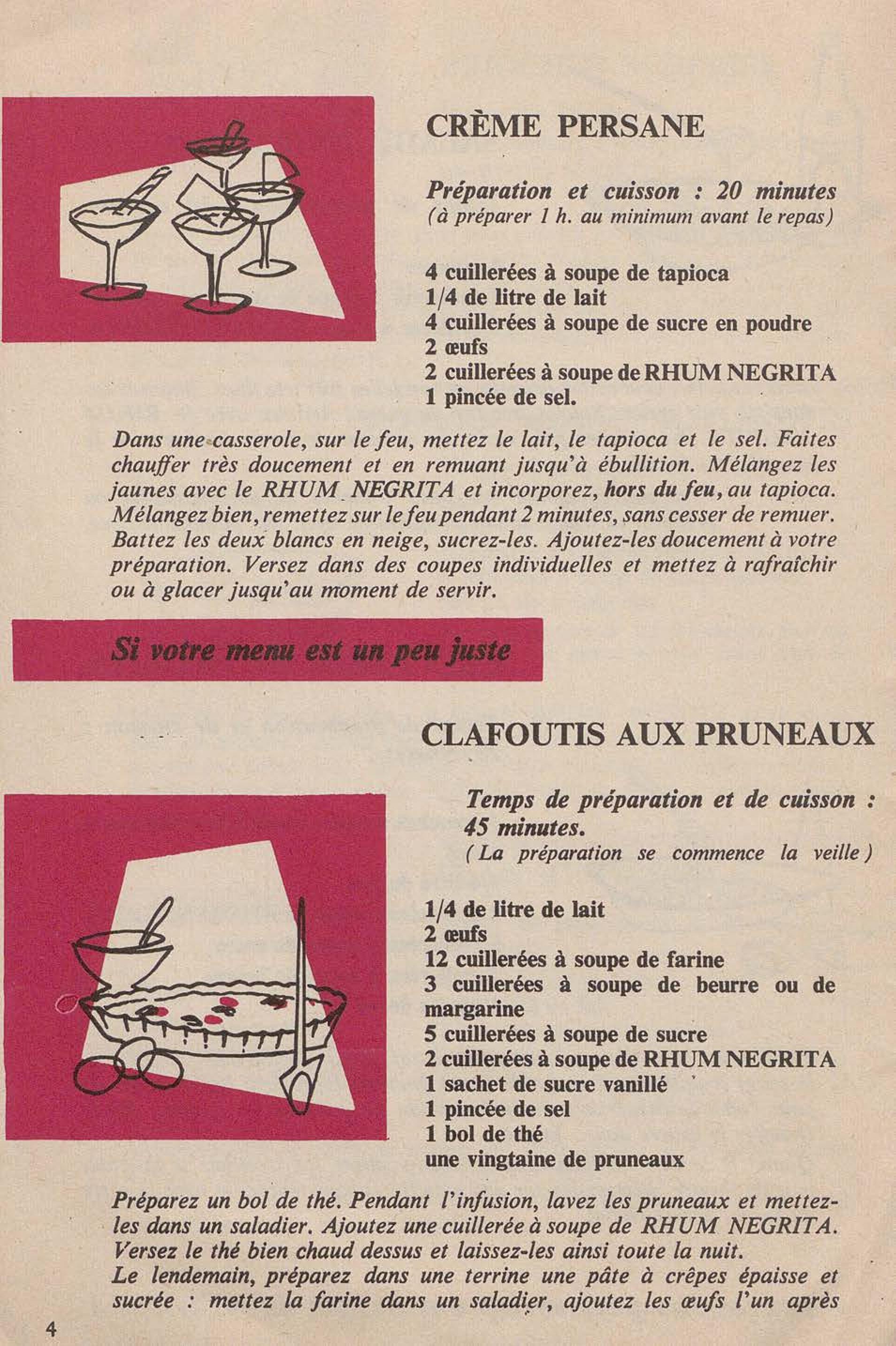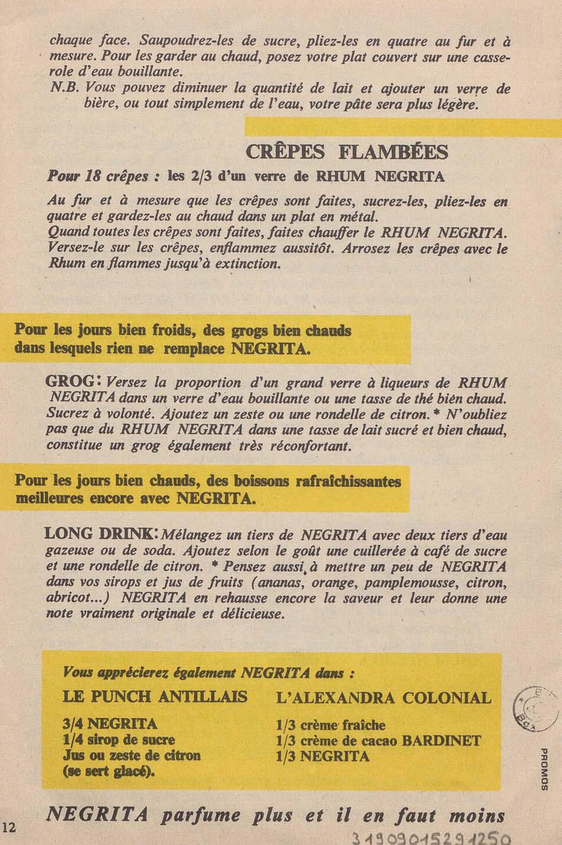 Contient des recettes de desserts à base du Rhum Negrita. La société a été créée à Limoges en 1886, puis s'est installée à Bordeaux en 1895 pour finalement s'implanter à Blanquefort depuis 1974.