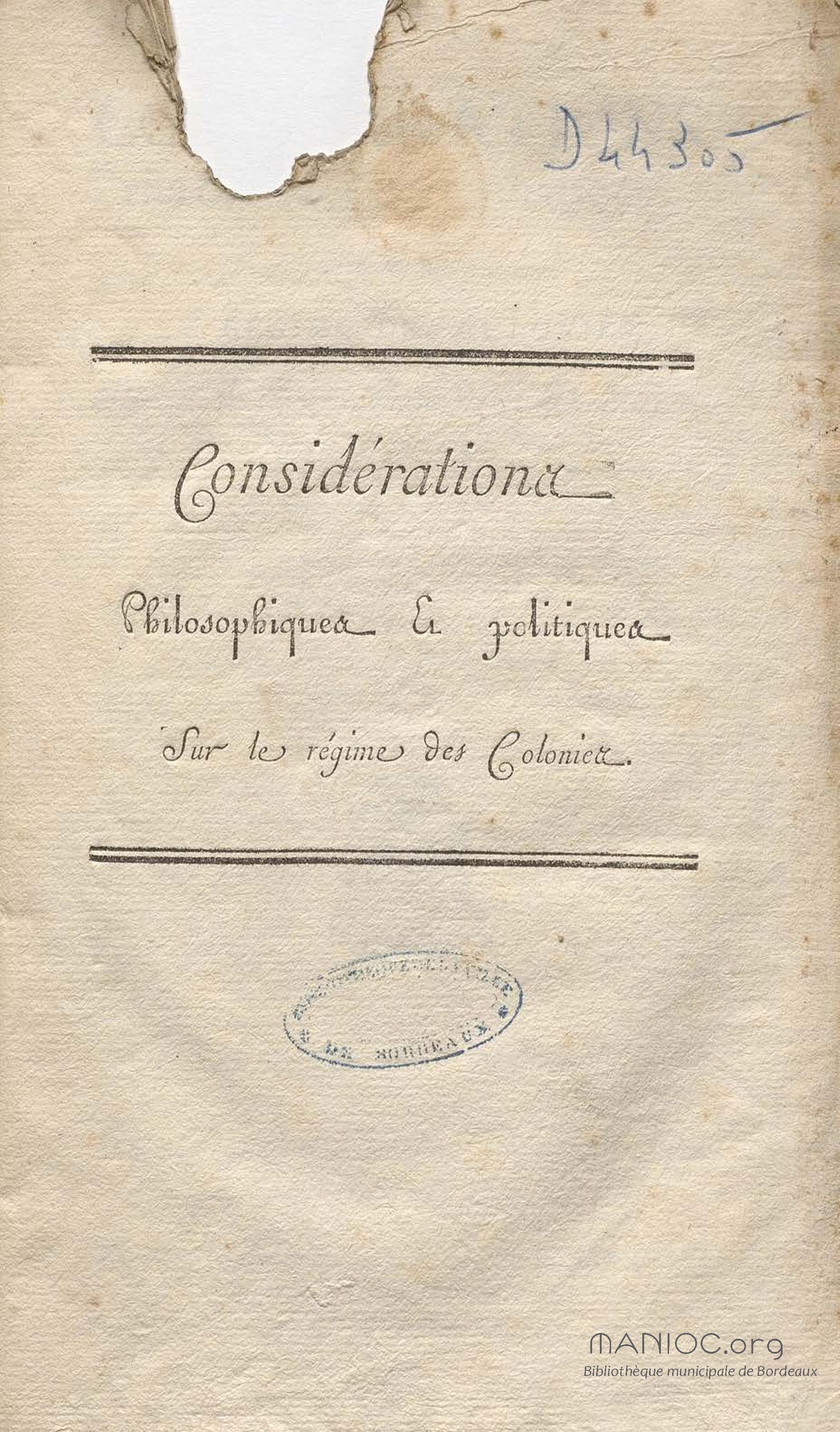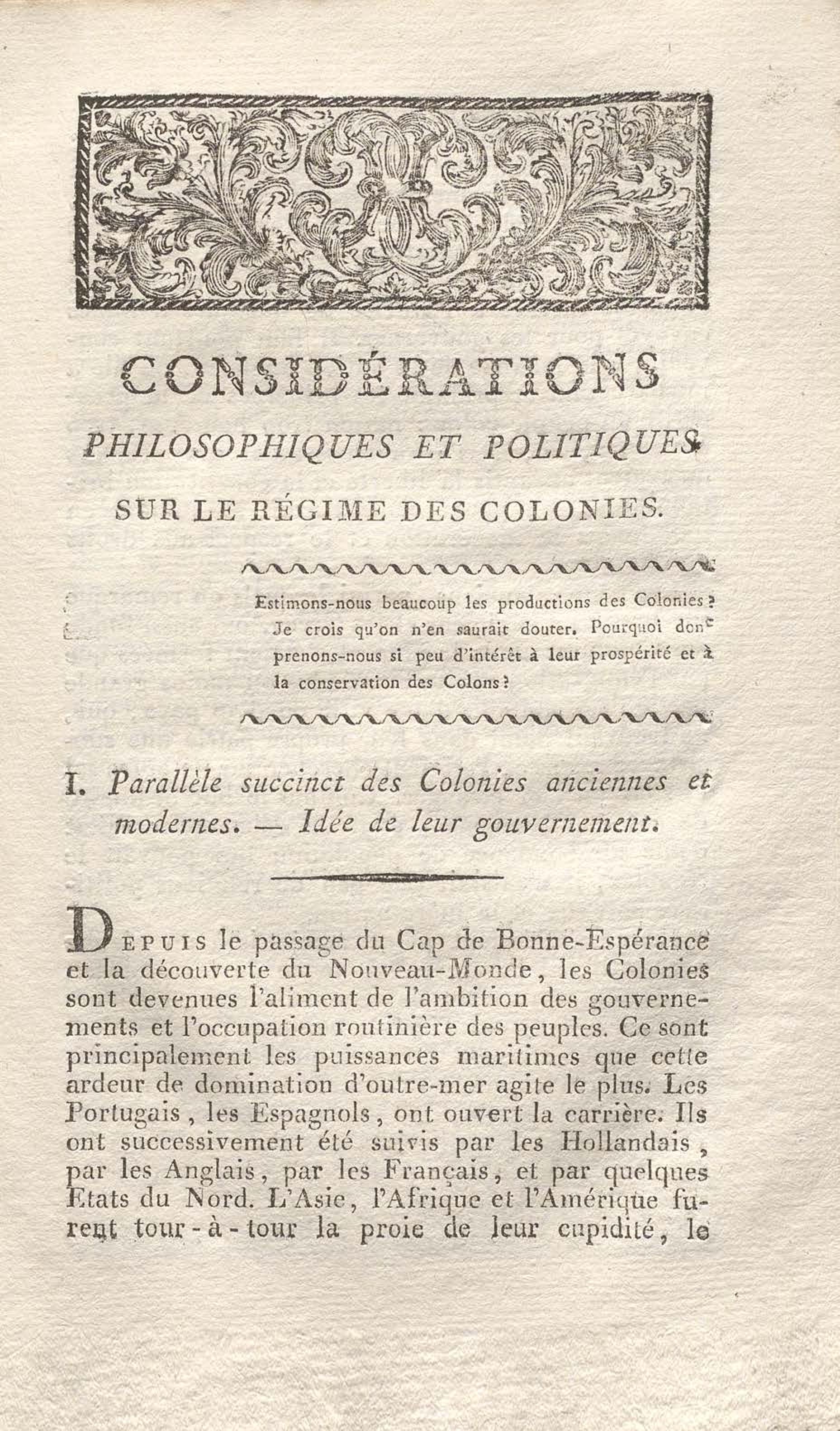 - Considérations philosophiques et politiques sur le régime des colonies […]