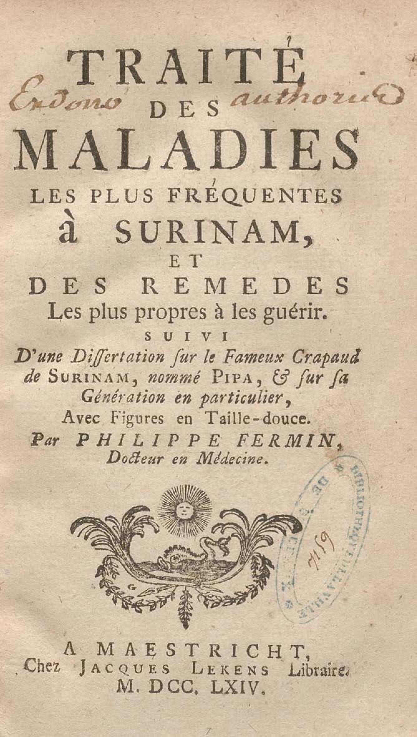 - Traité des maladies les plus fréquentes à Surinam et des remèdes les plus propres à les guérir