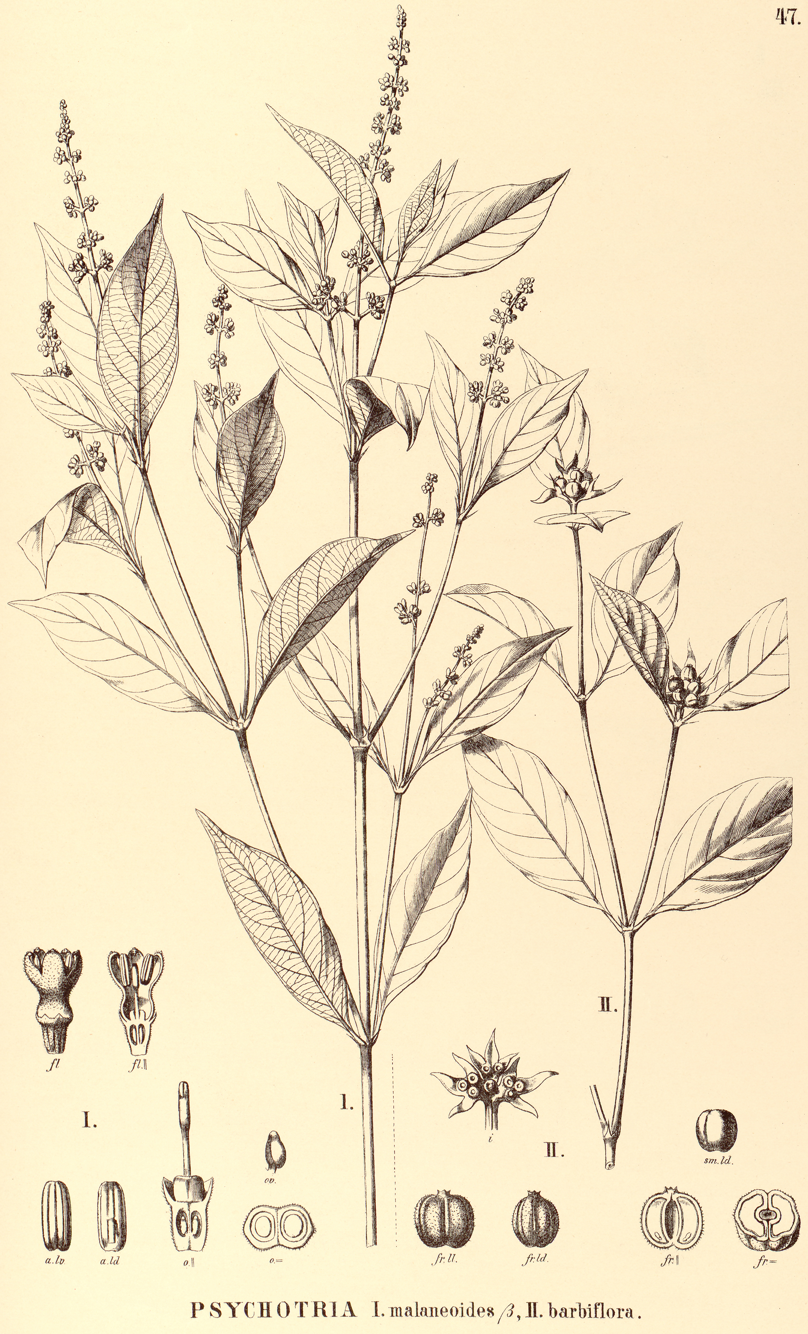 47. PSYCHOTRIA I. malaneoides ß, II. barbiflora.