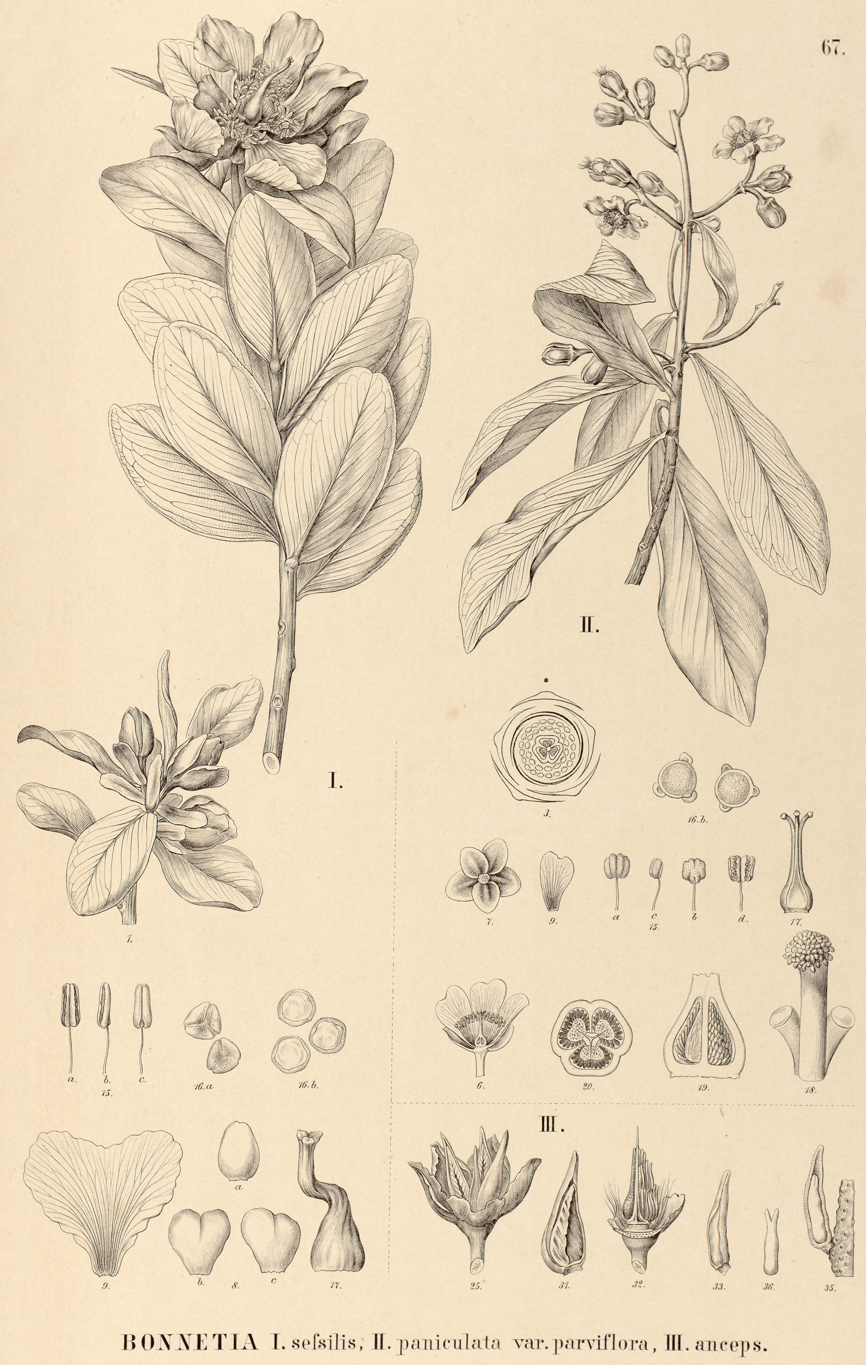 67. BONNETIA I. sessilis, II. paniculata var. parviflora, III. anceps.