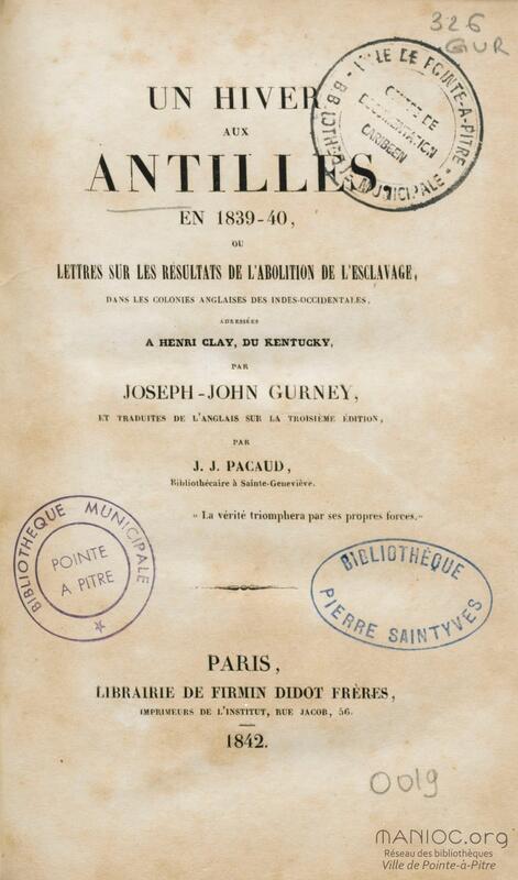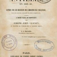 - Un hiver aux Antilles en 1839-40 ou Lettres sur les résultats de l'abolition de l'esclavage dans les colonies anglaises des Indes occidentales adressées à Henri Clay, du Kentucky
