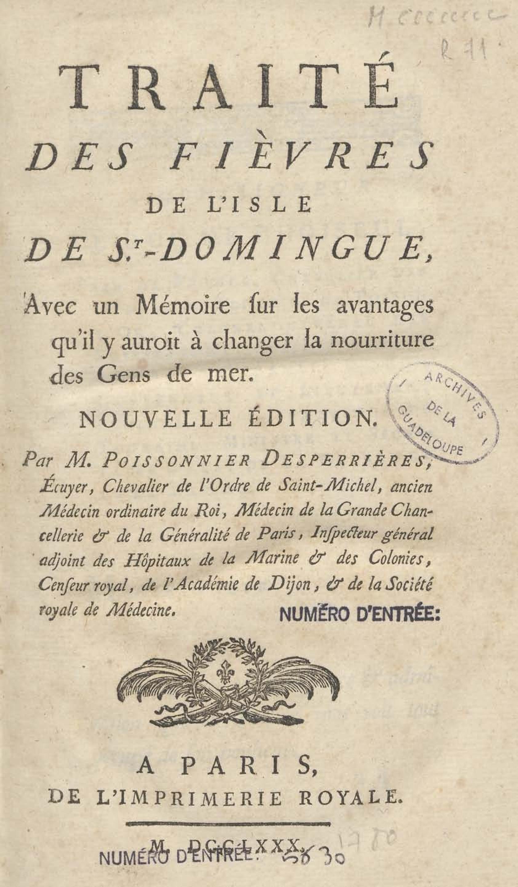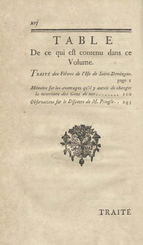 - Traité des fièvres de l'Isle de St.-Domingue, avec un mémoire sur les avantages qu'il y auroit à changer la nourriture des gens de mer