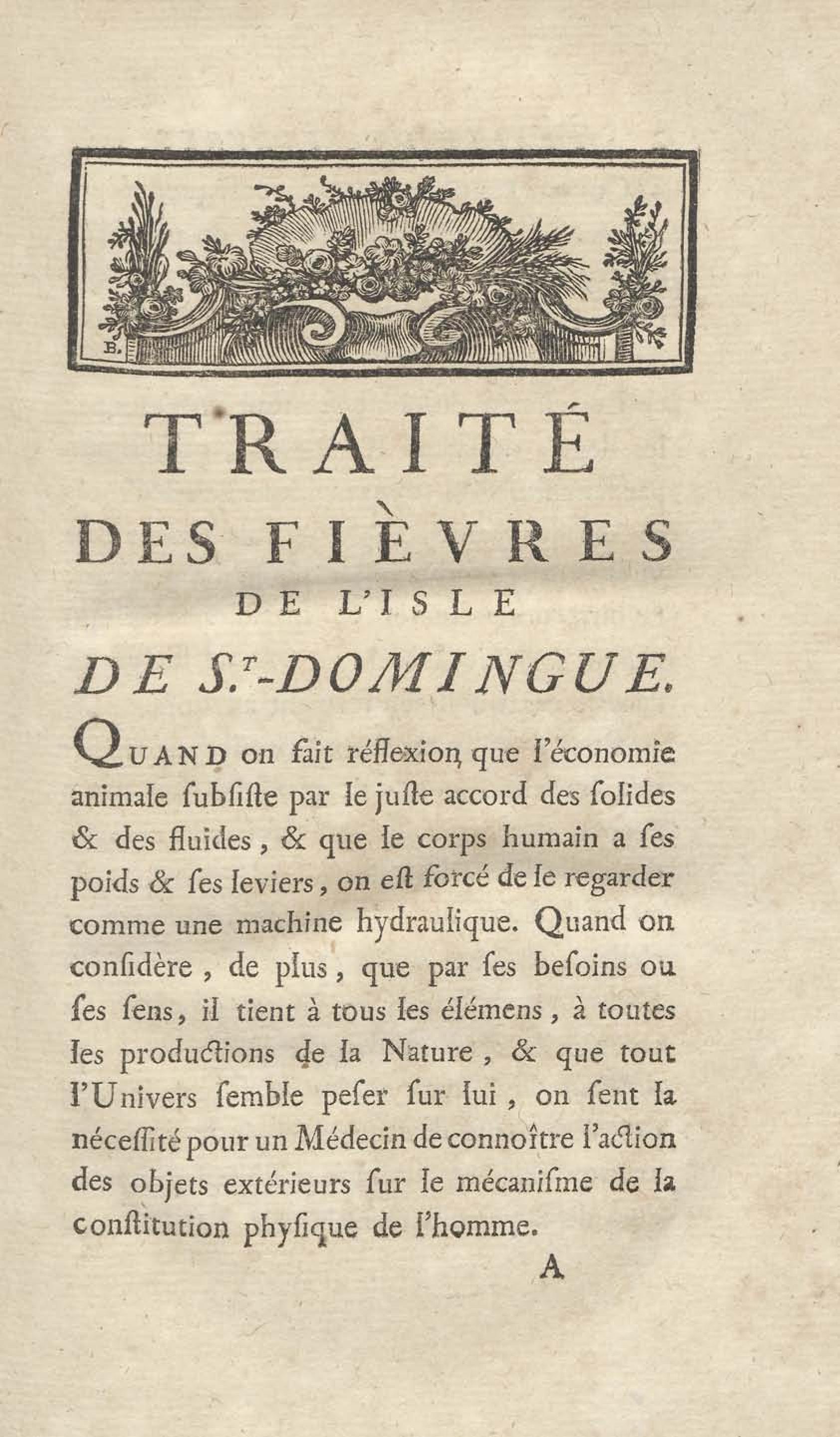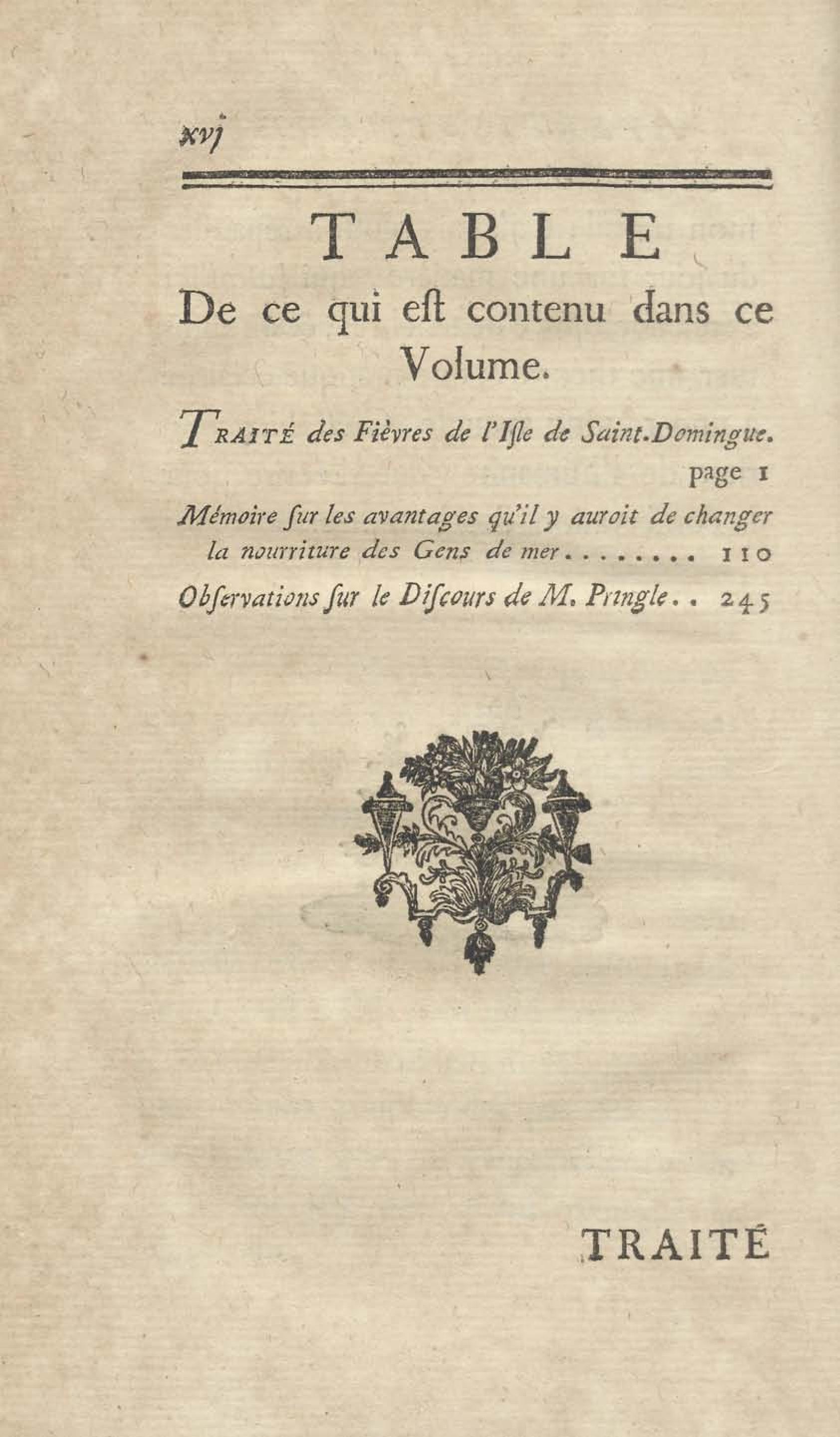 Traité des fièvres de l'Isle de St.-Domingue, avec un mémoire sur les avantages qu'il y auroit à changer la nourriture des gens de mer