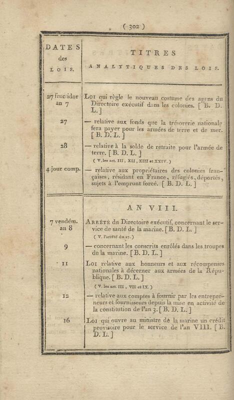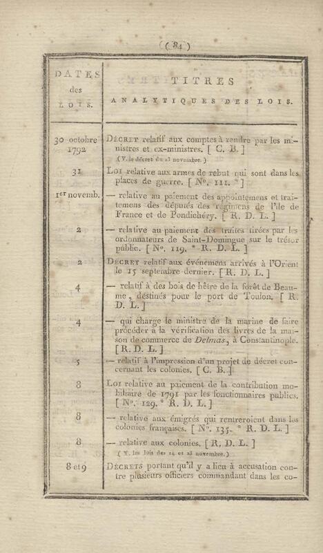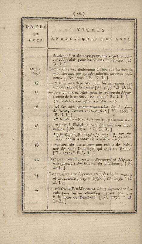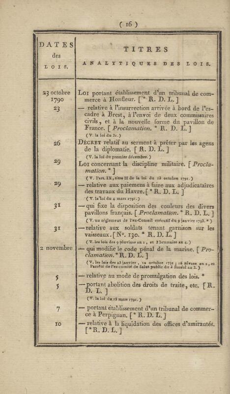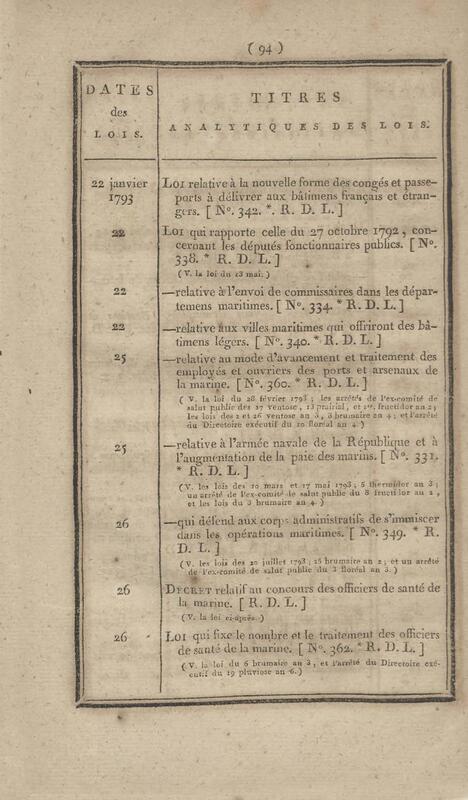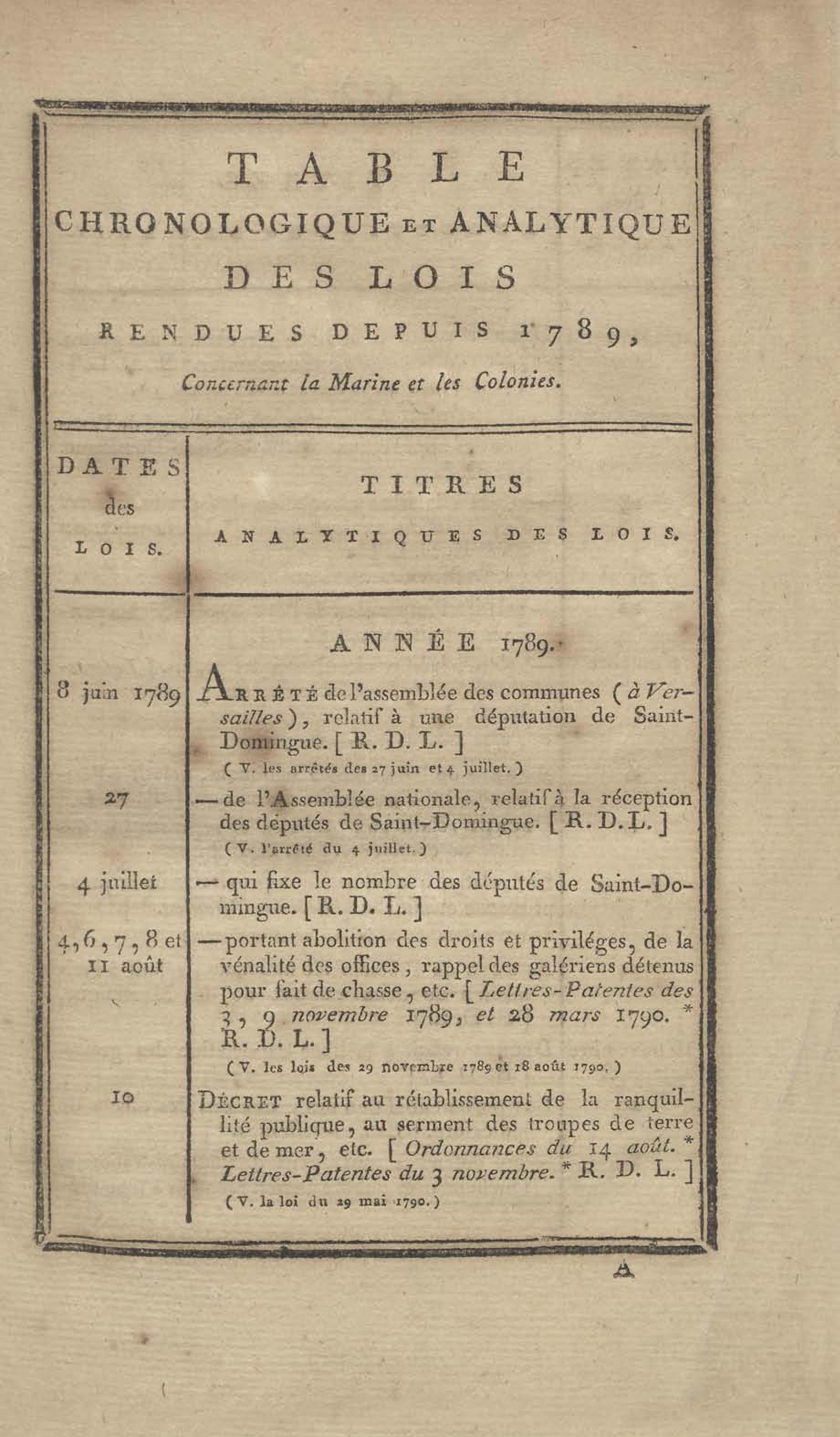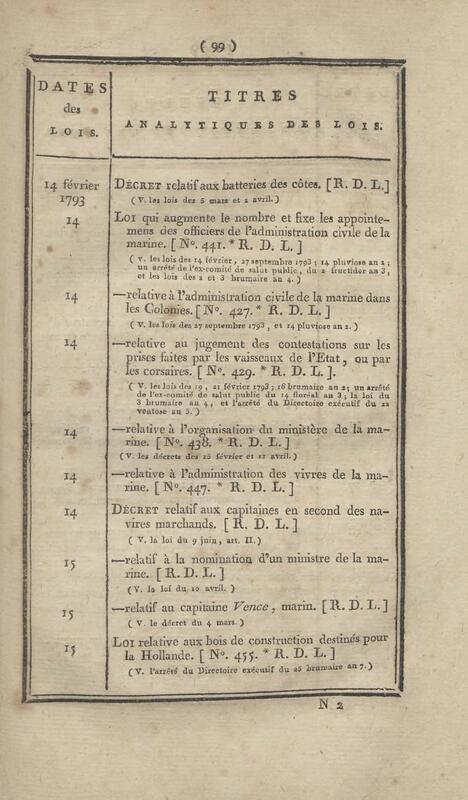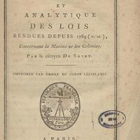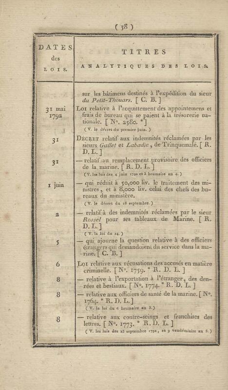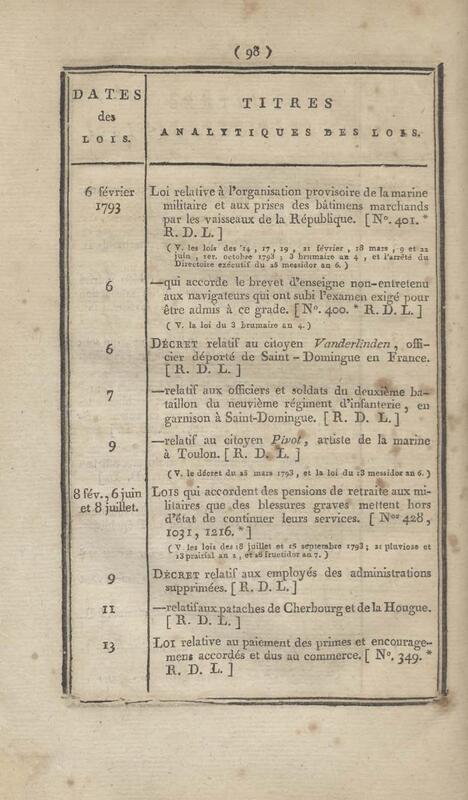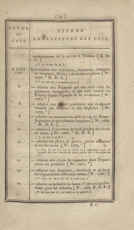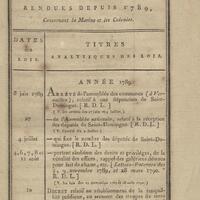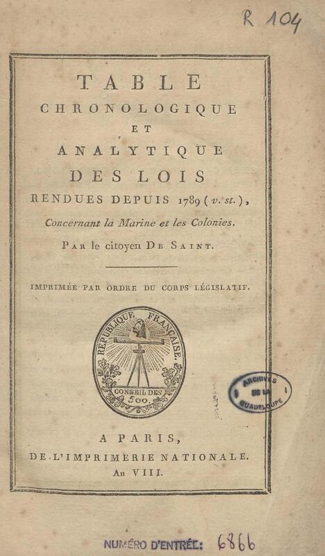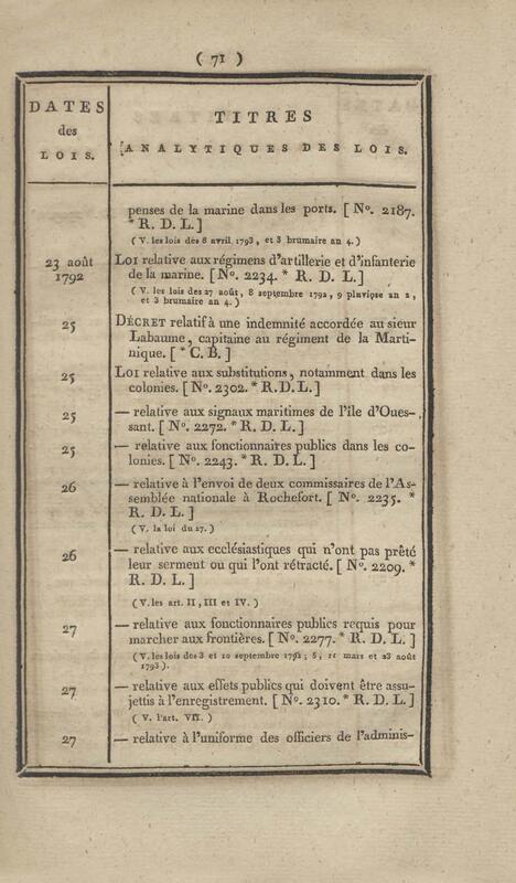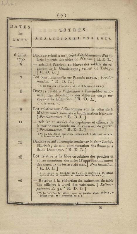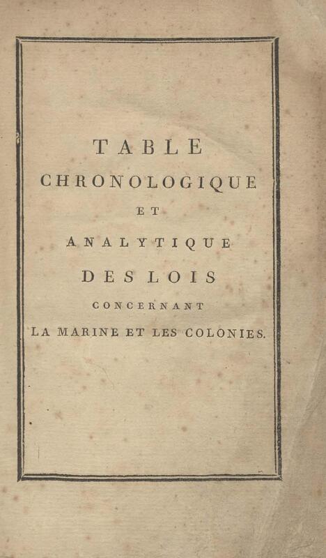 - Table chronologique et analytique des lois rendues depuis 1789 concernant la marine et les colonies