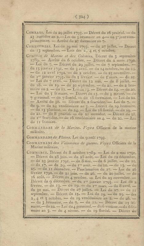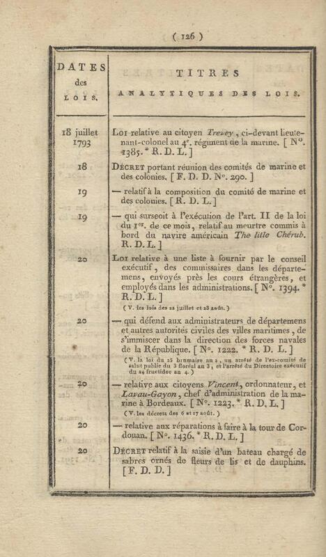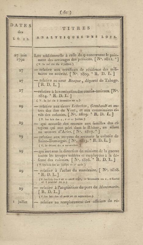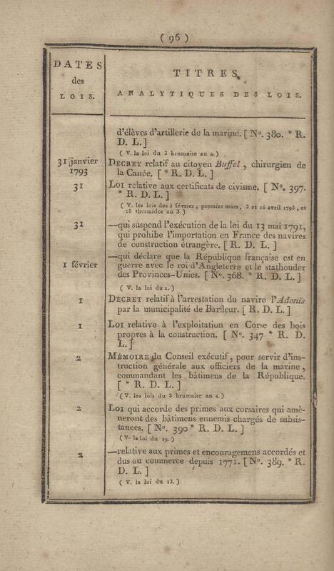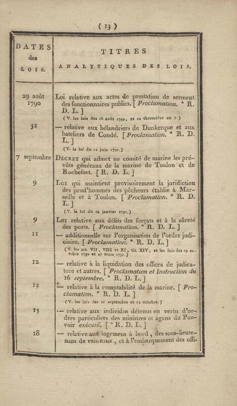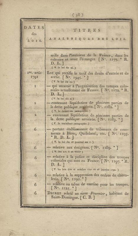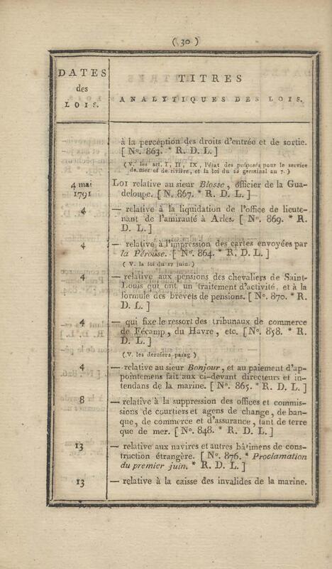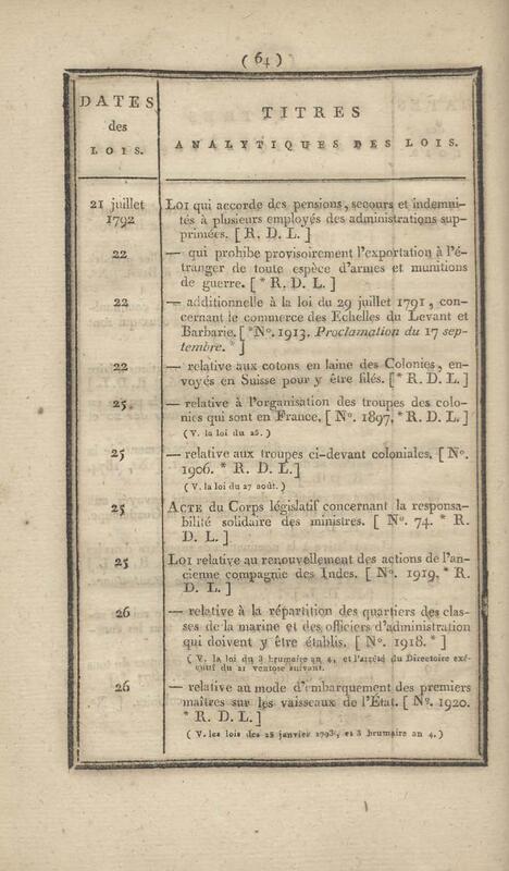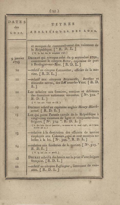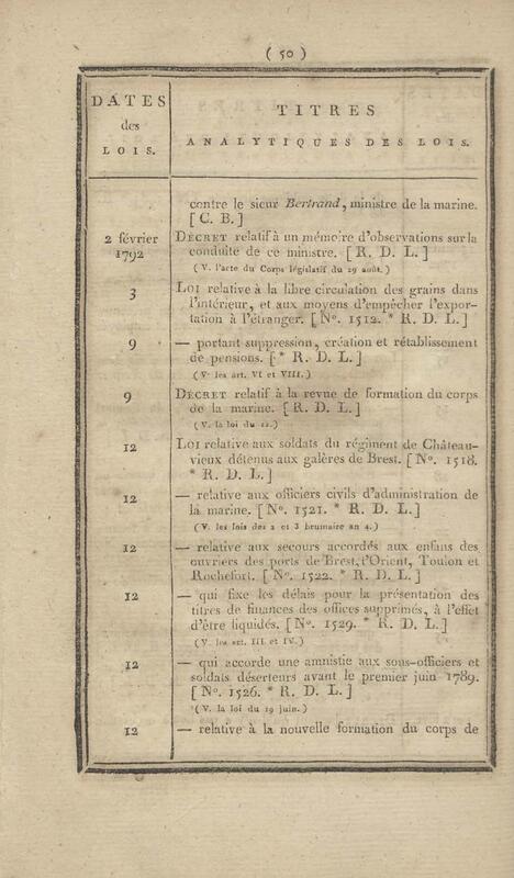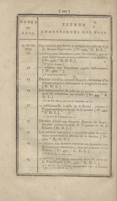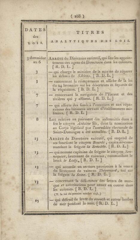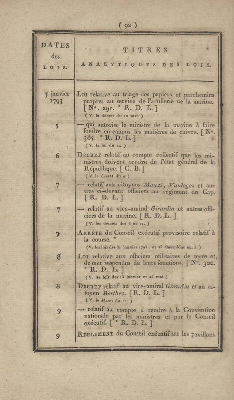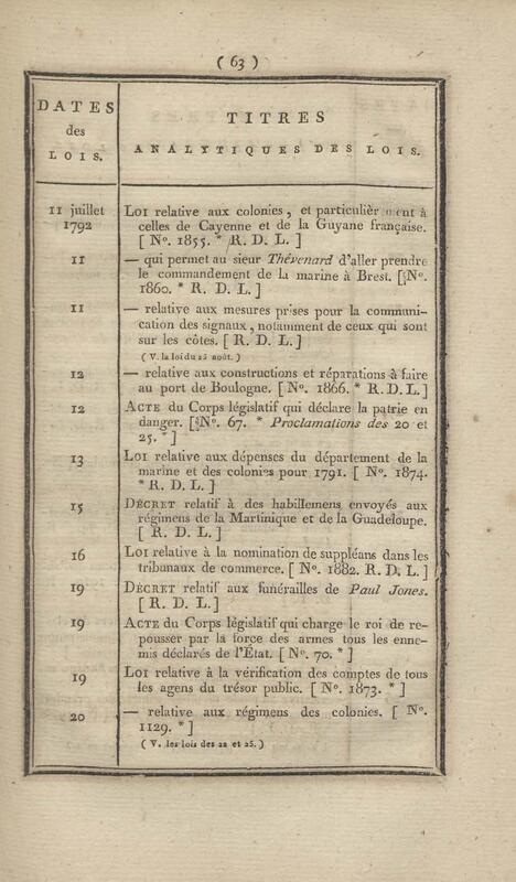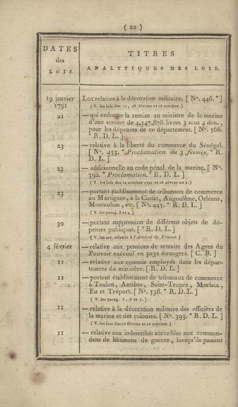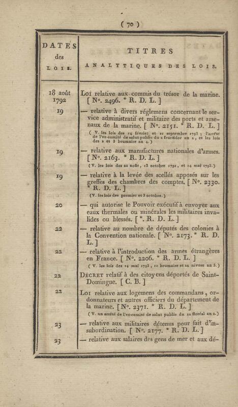 - Table chronologique et analytique des lois rendues depuis 1789 concernant la marine et les colonies