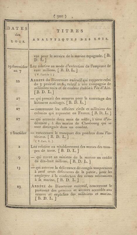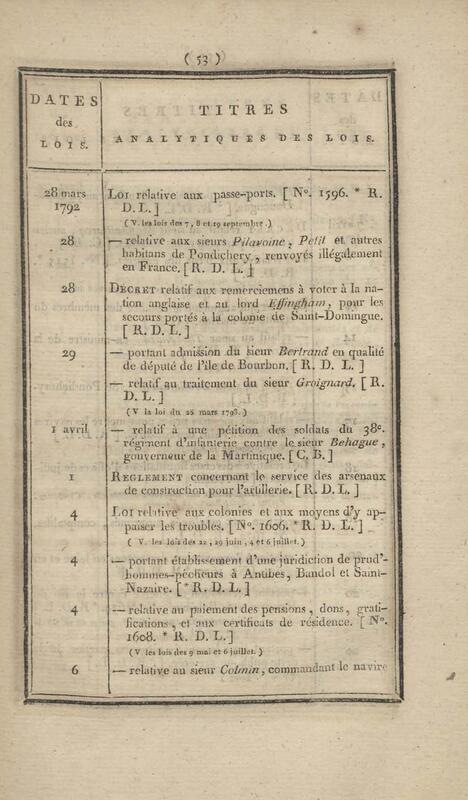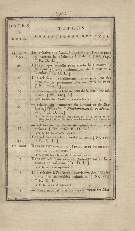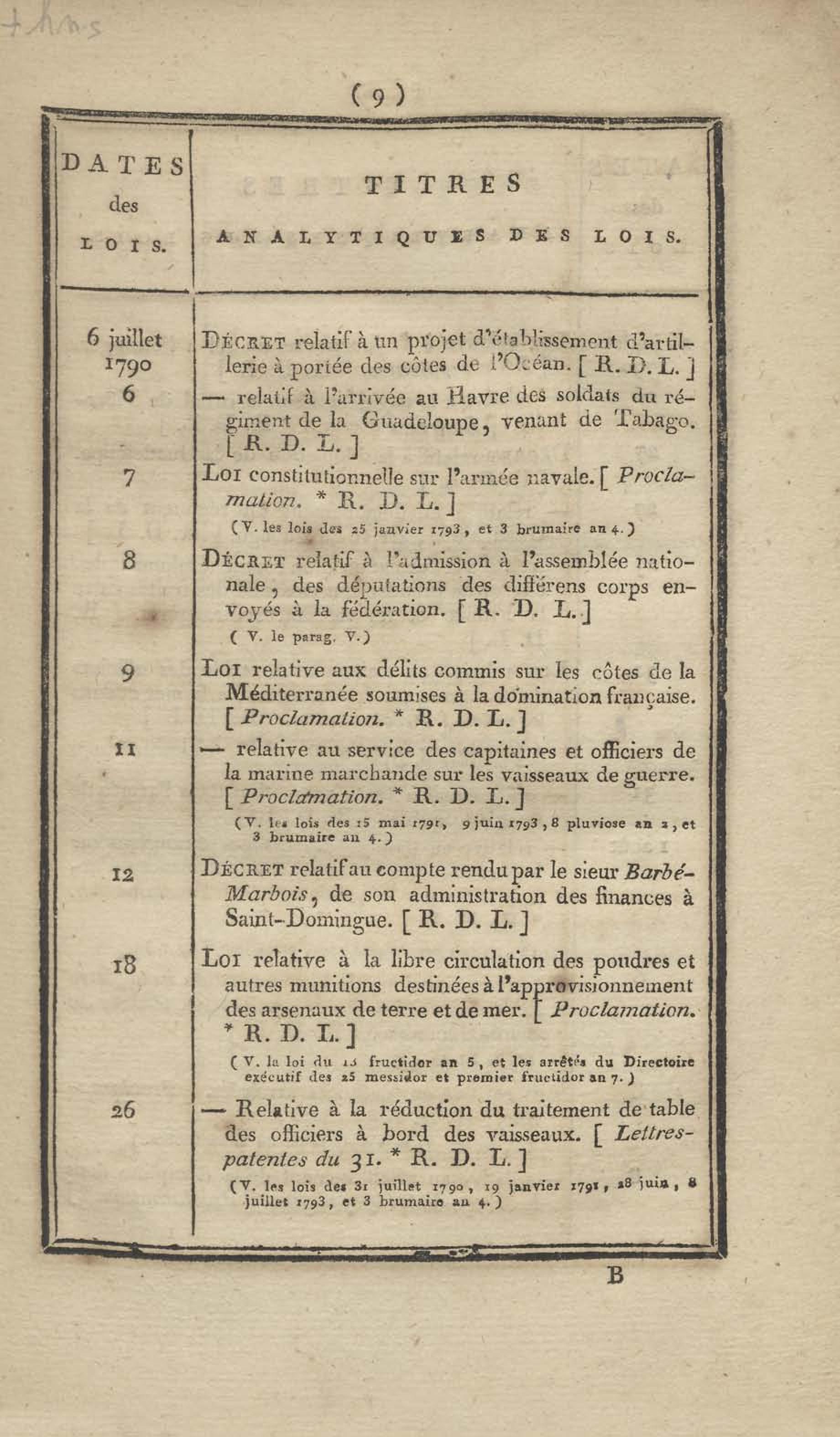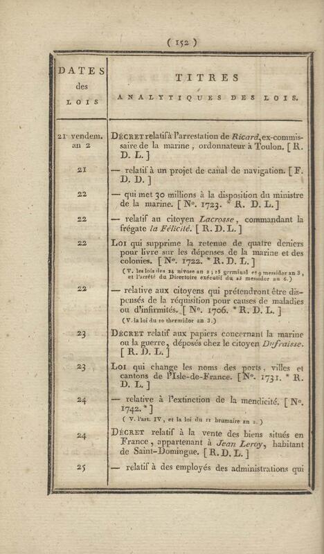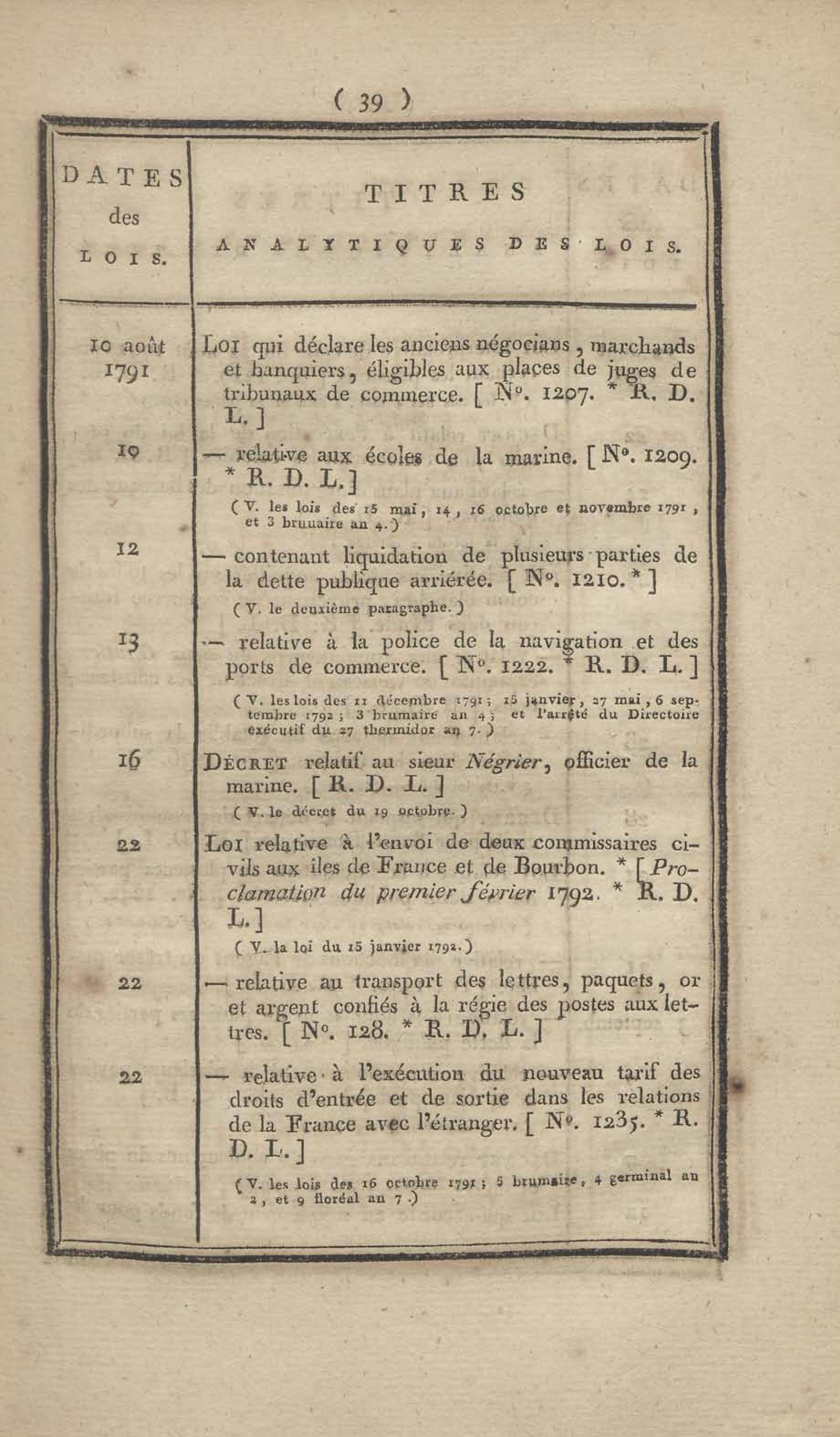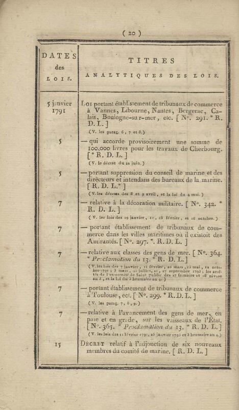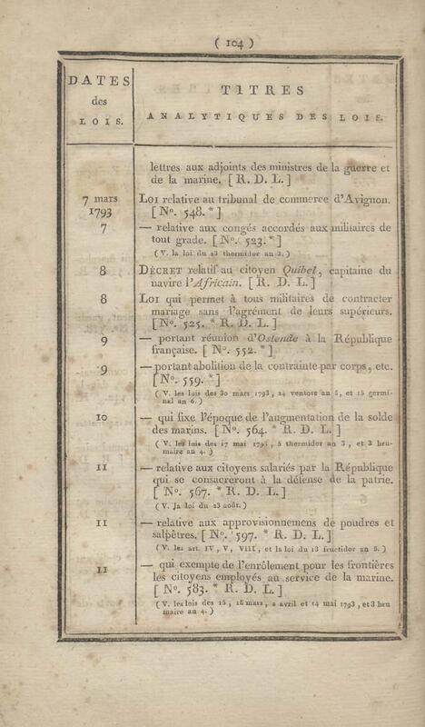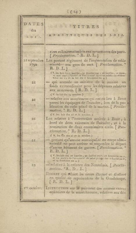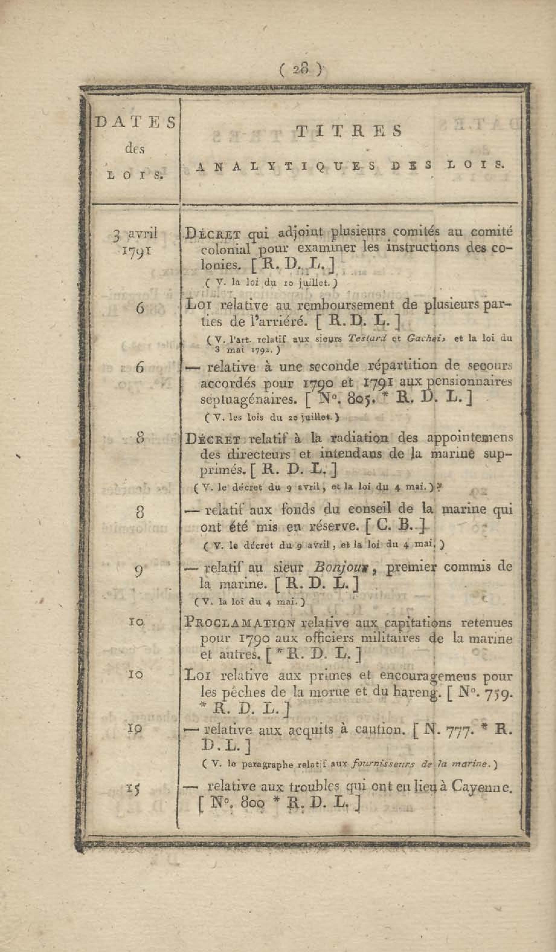 - Table chronologique et analytique des lois rendues depuis 1789 concernant la marine et les colonies