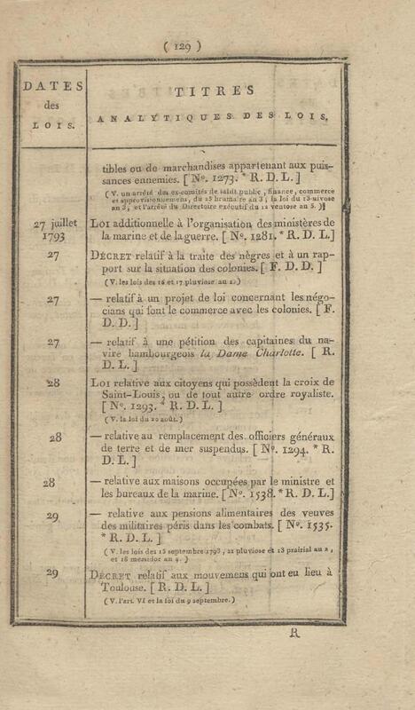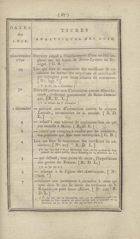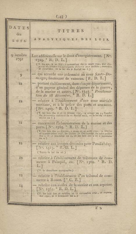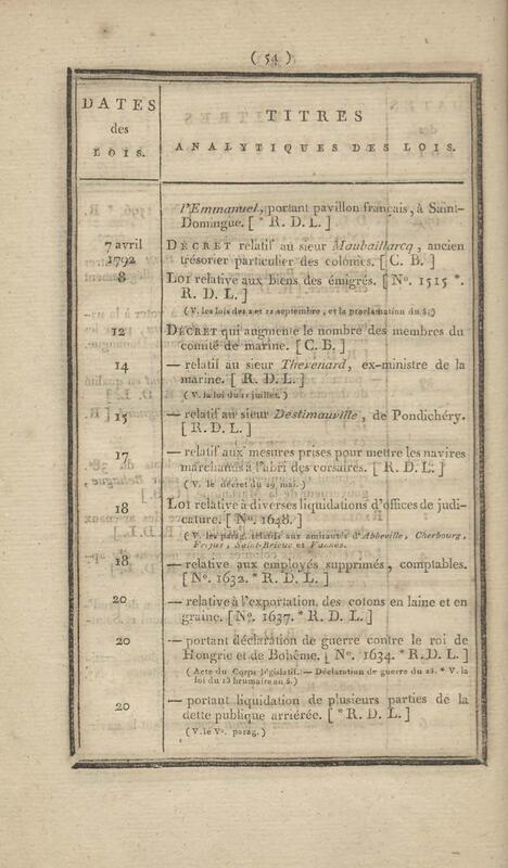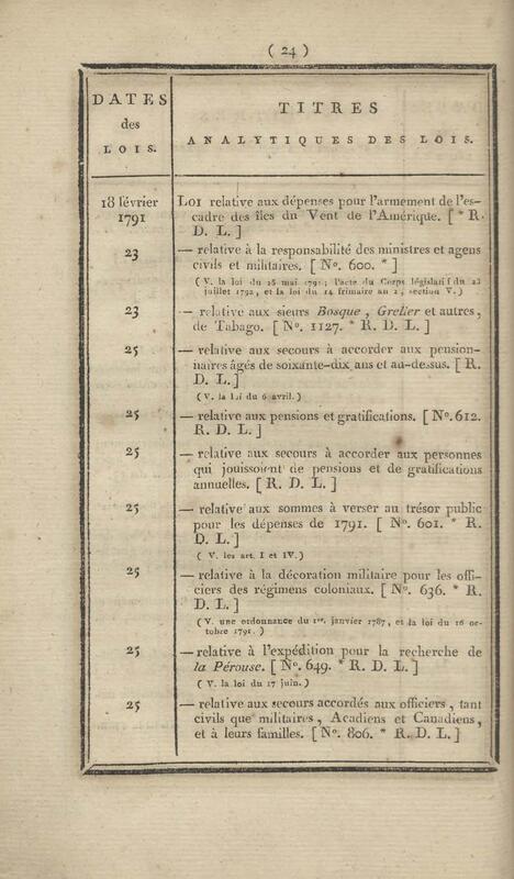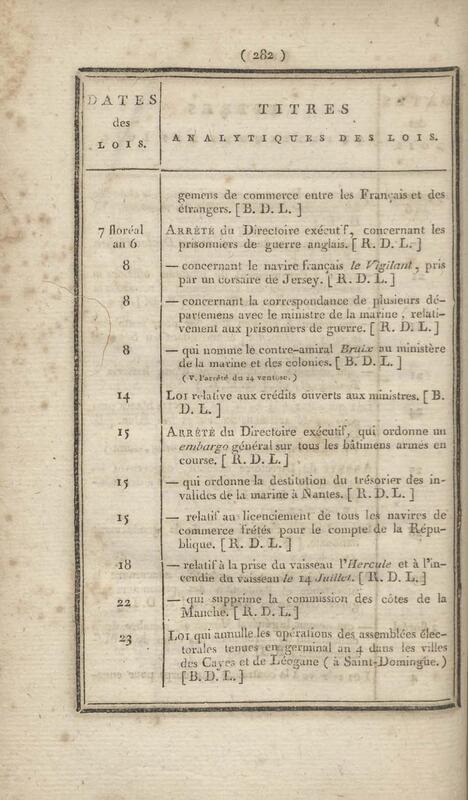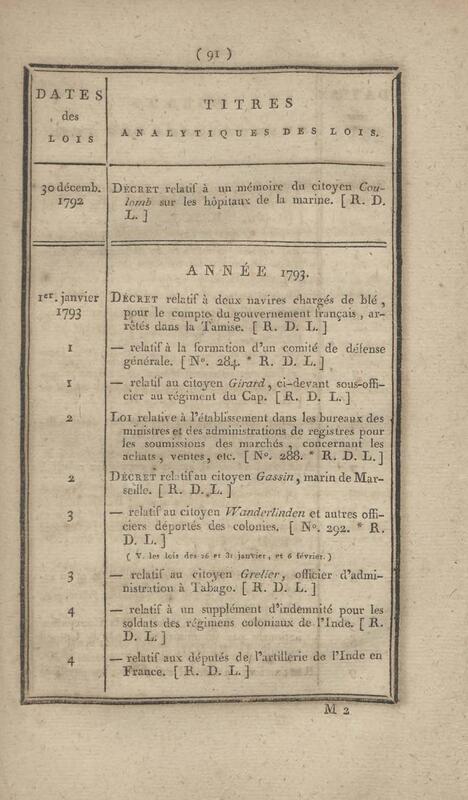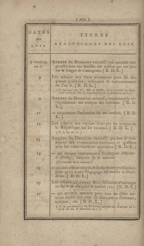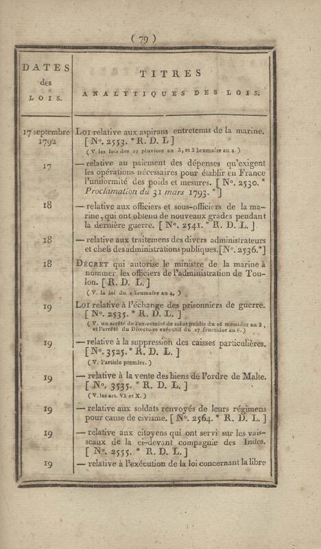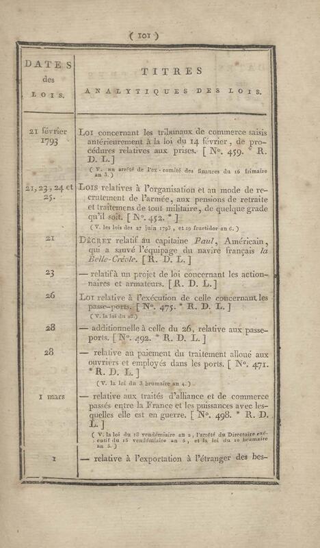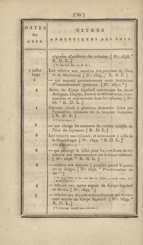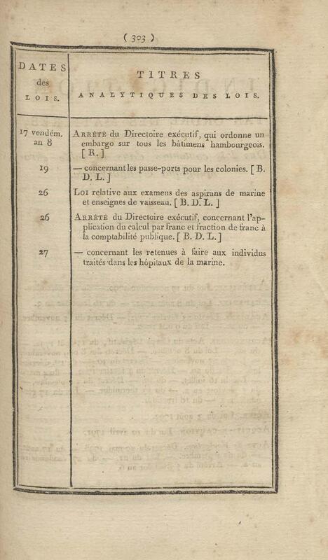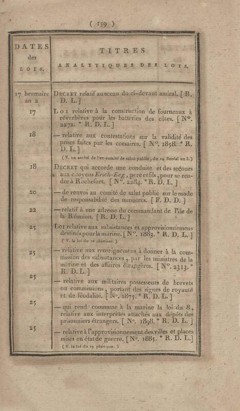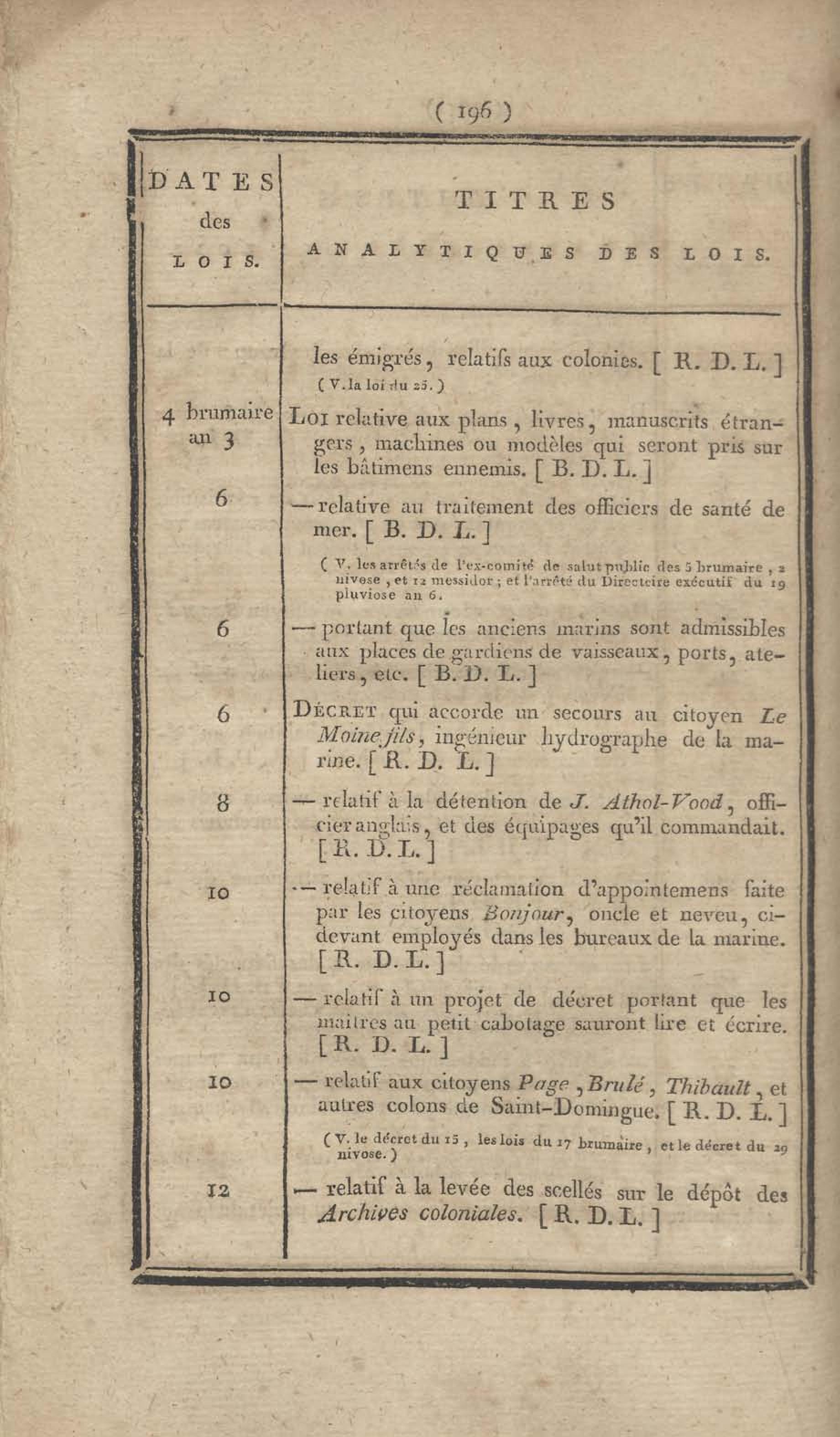 - Table chronologique et analytique des lois rendues depuis 1789 concernant la marine et les colonies