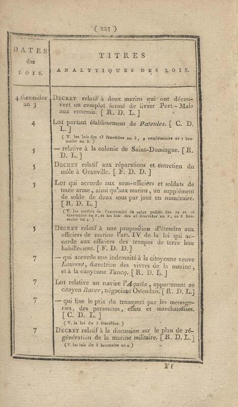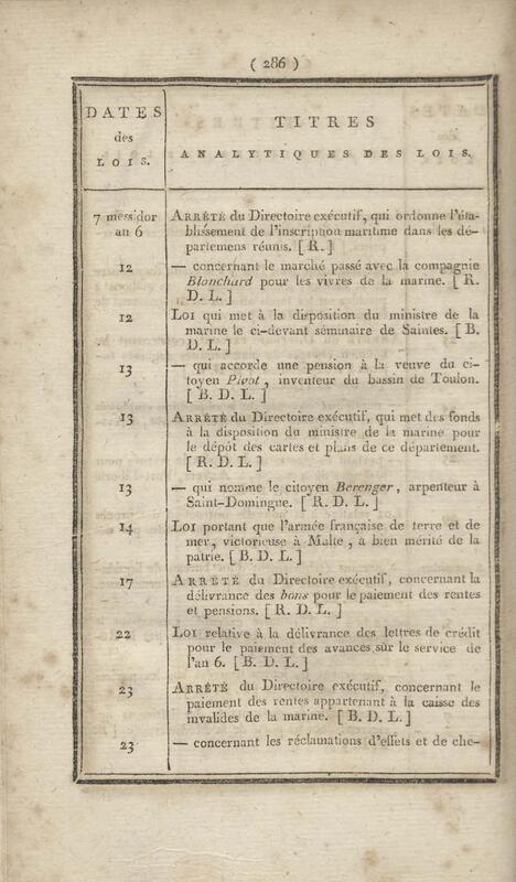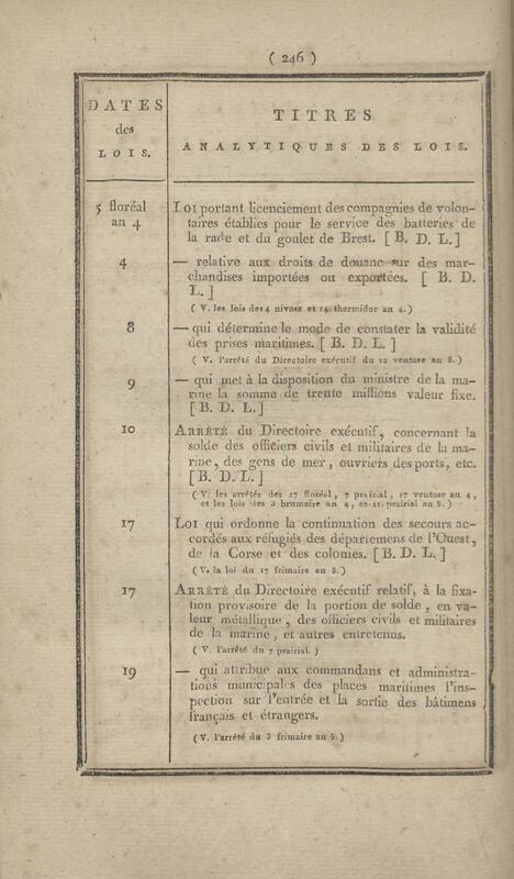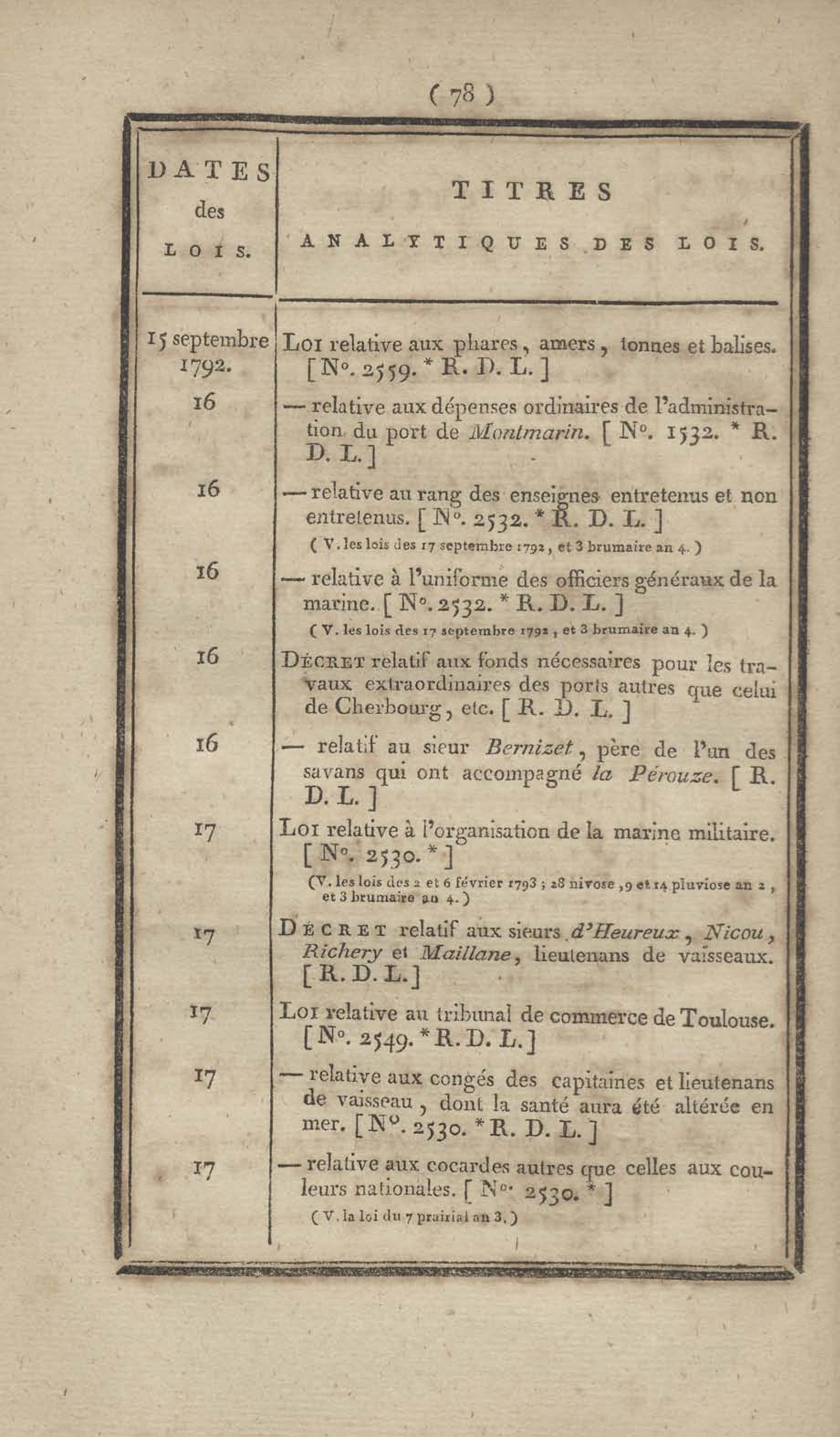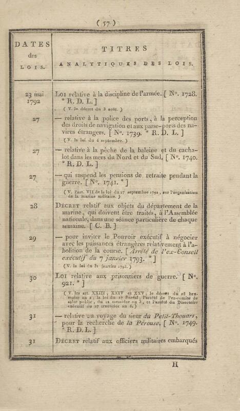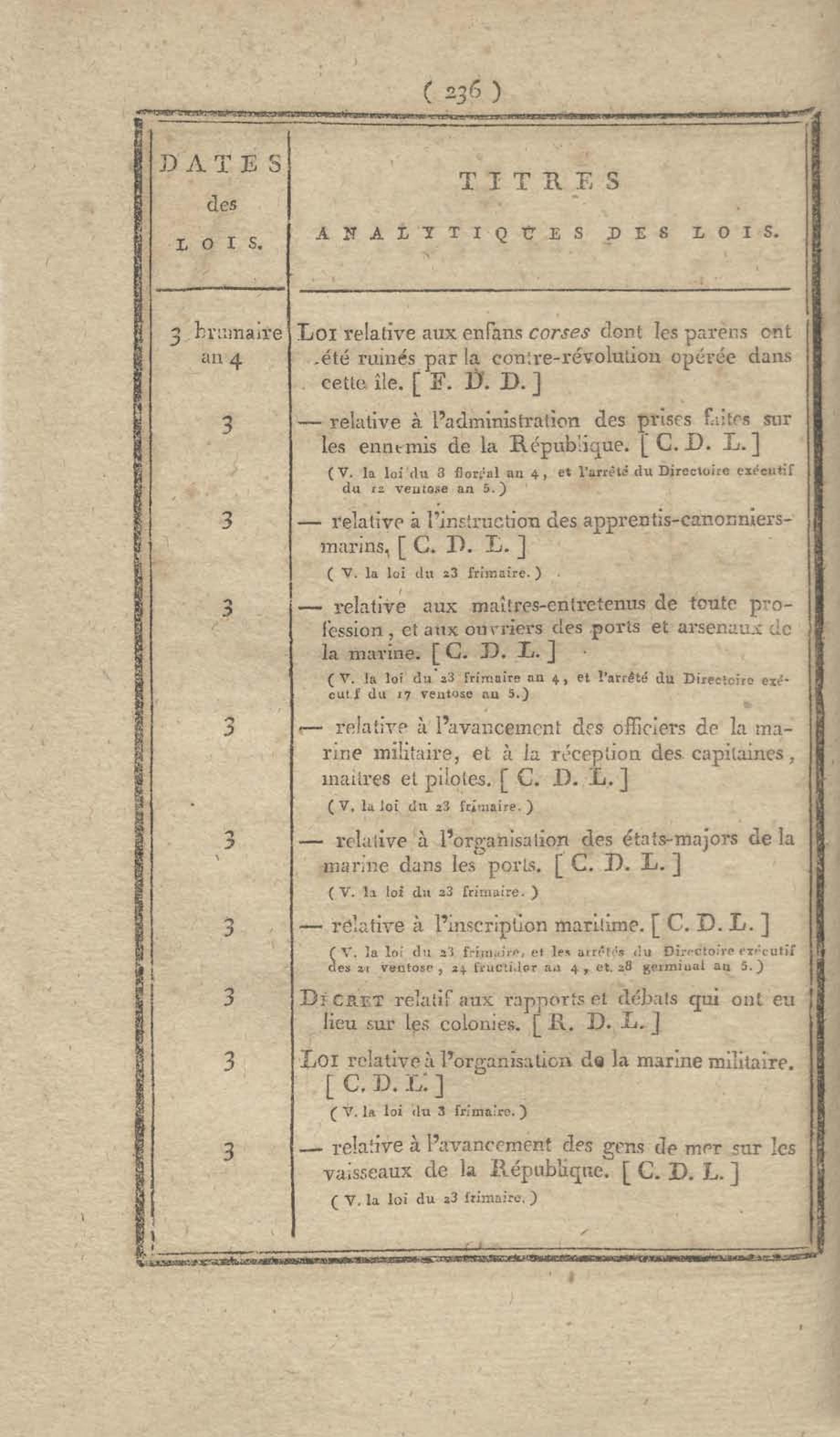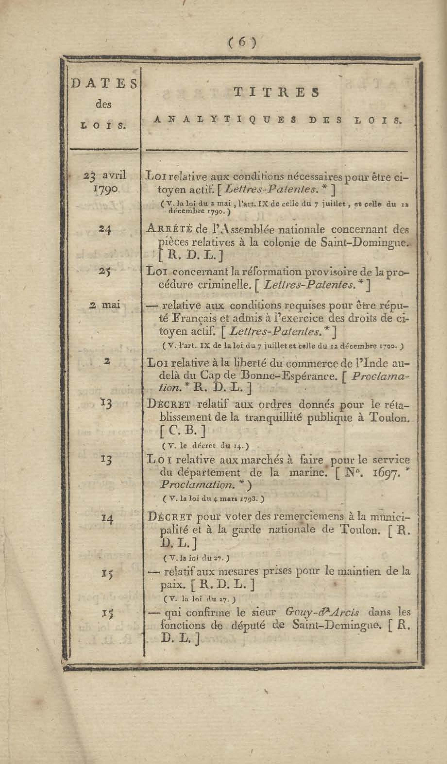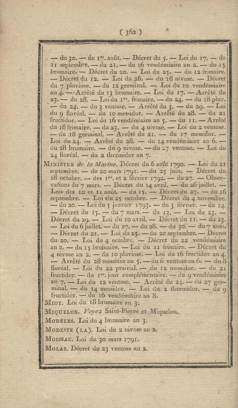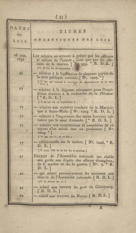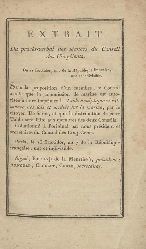 - Table chronologique et analytique des lois rendues depuis 1789 concernant la marine et les colonies
