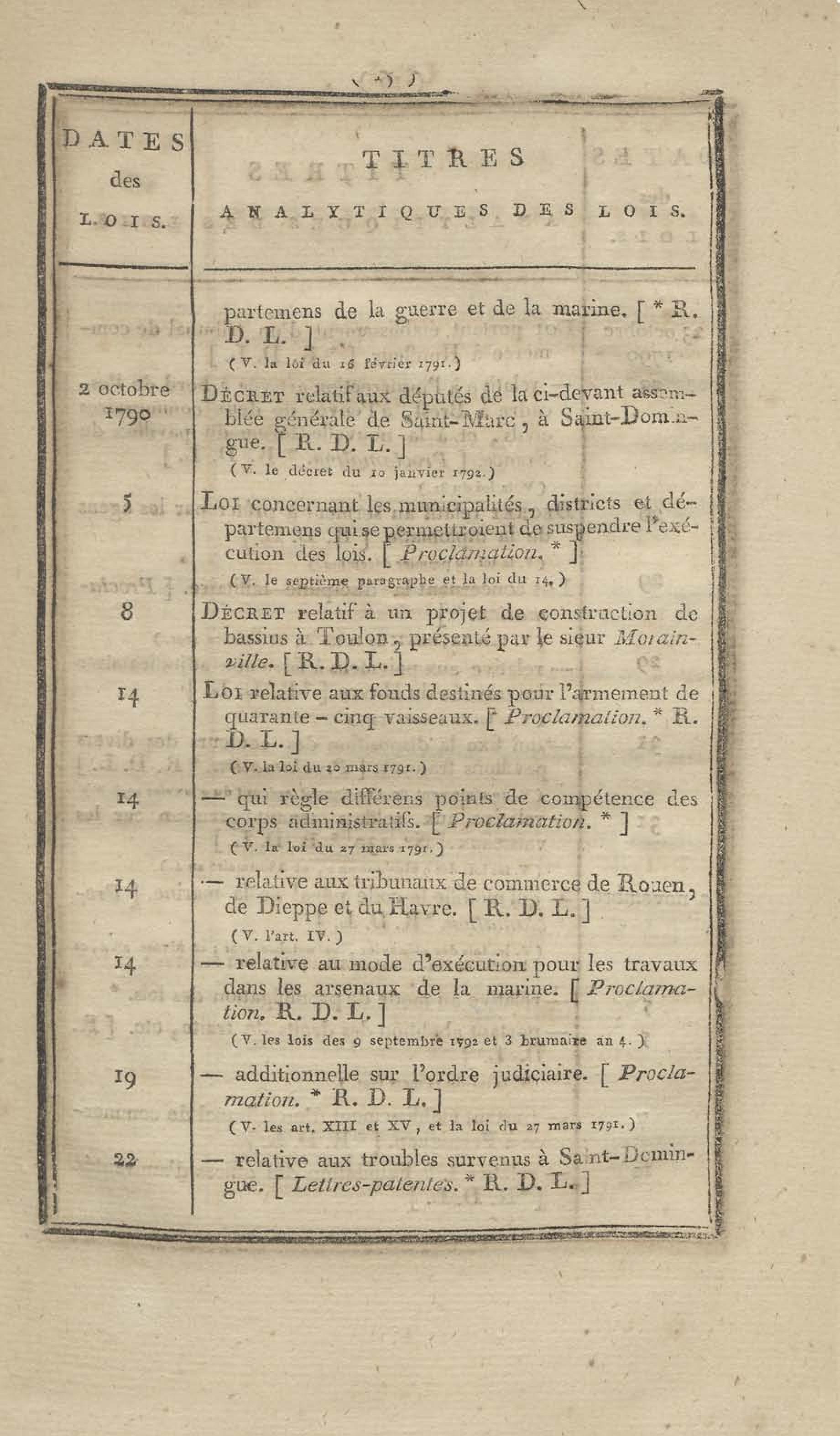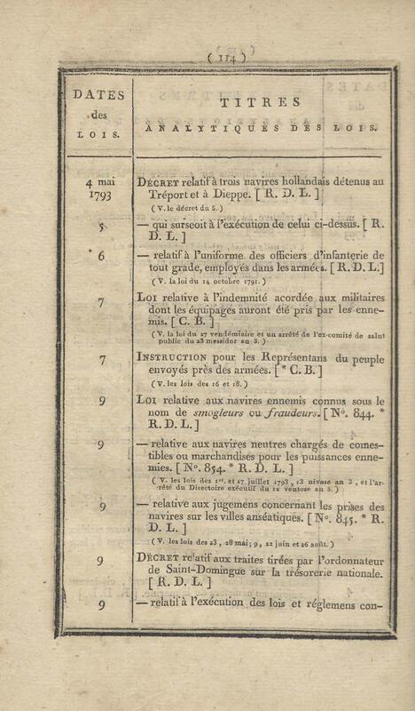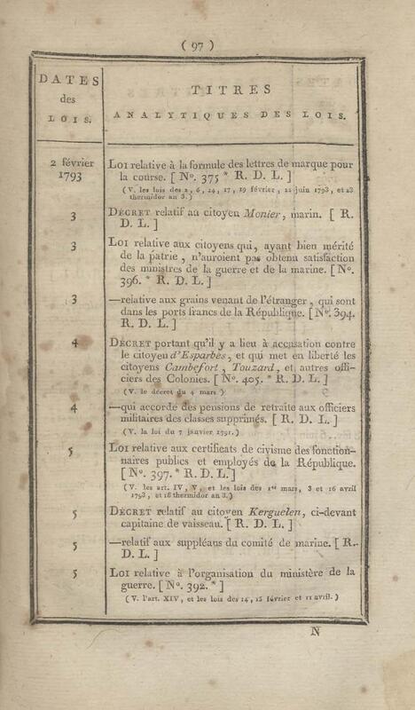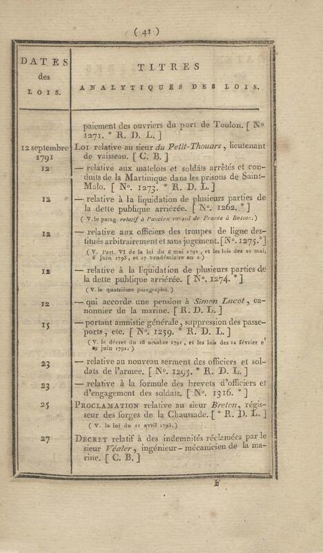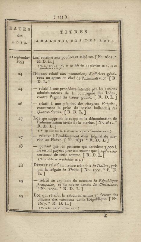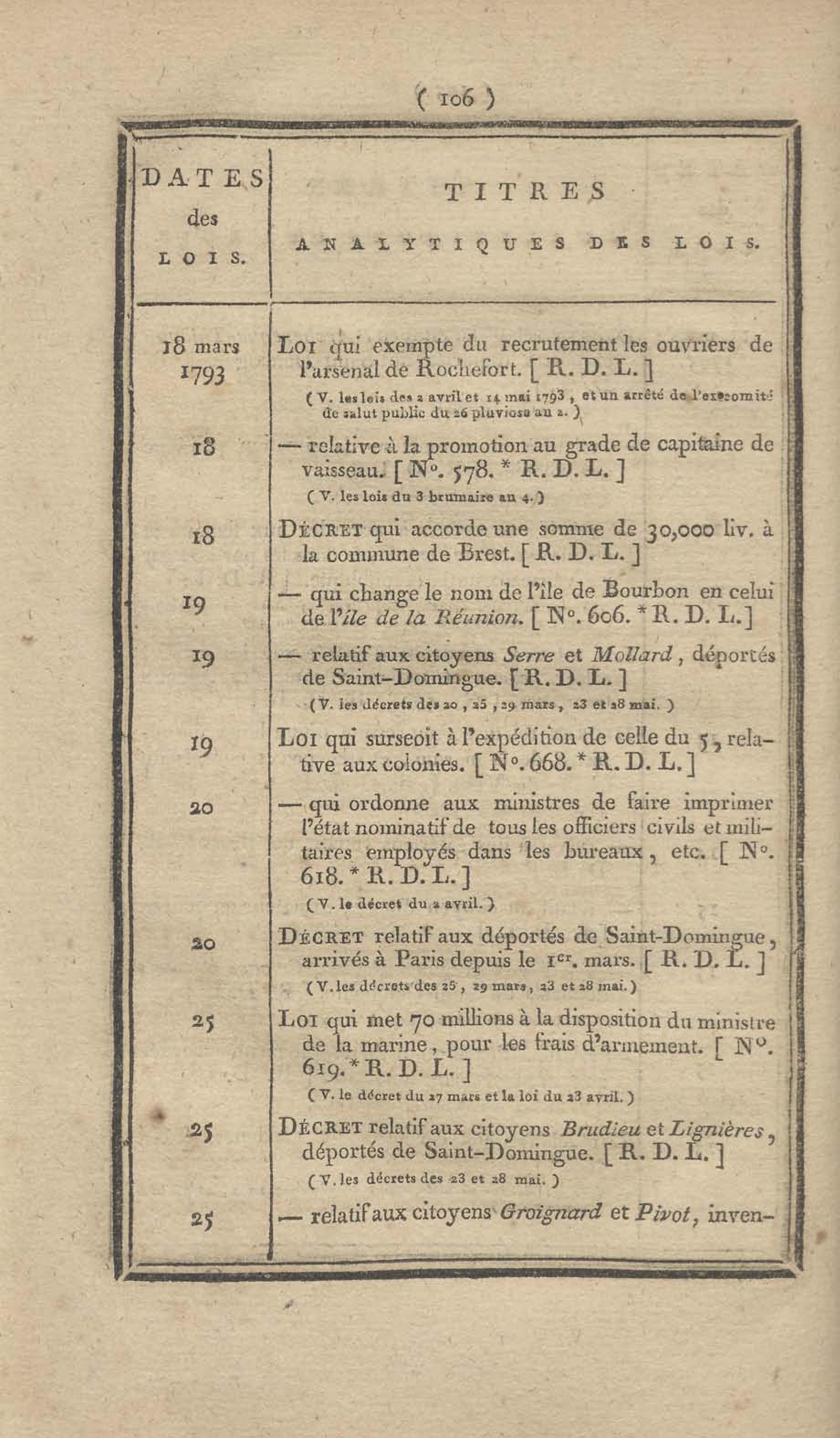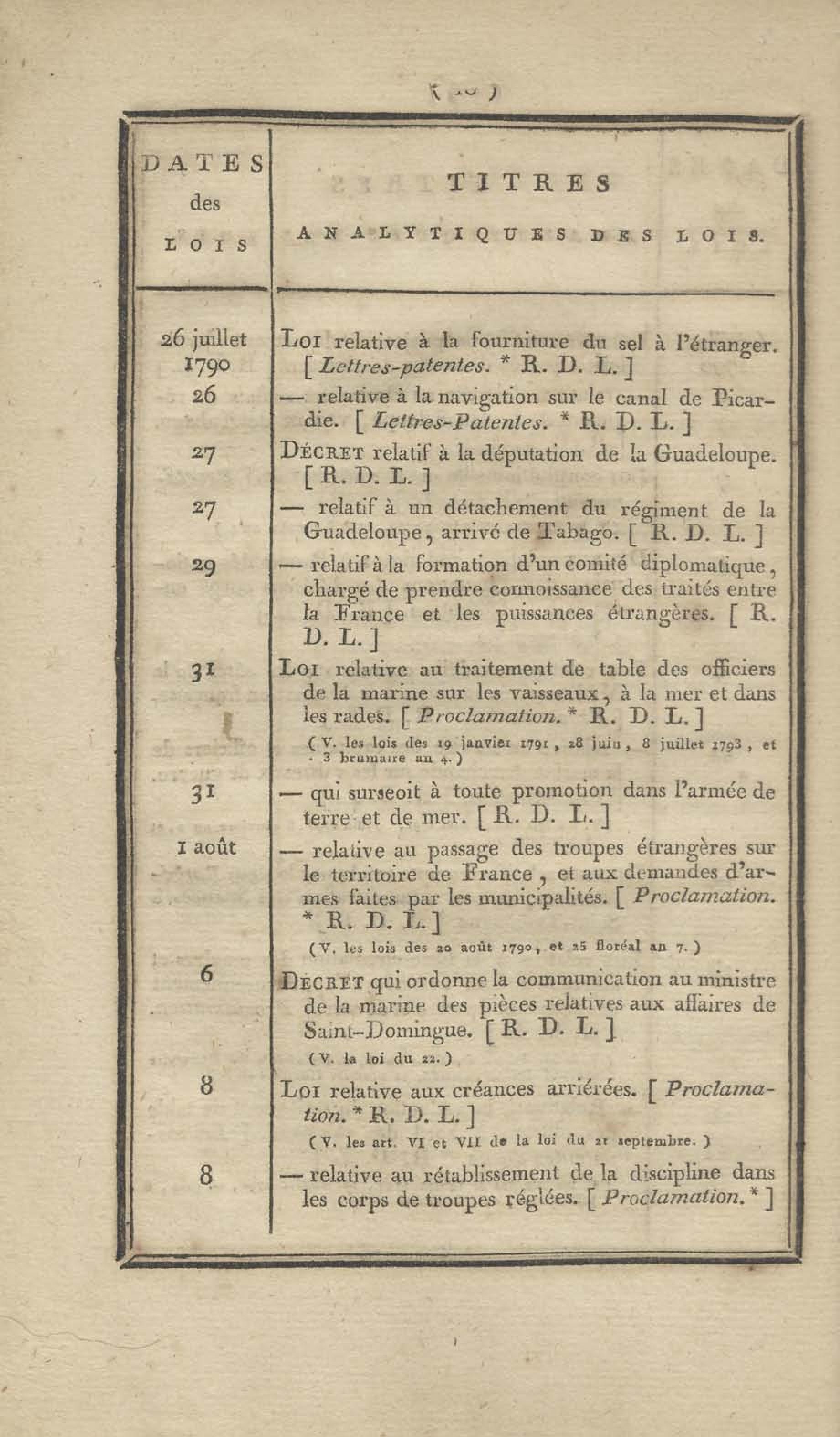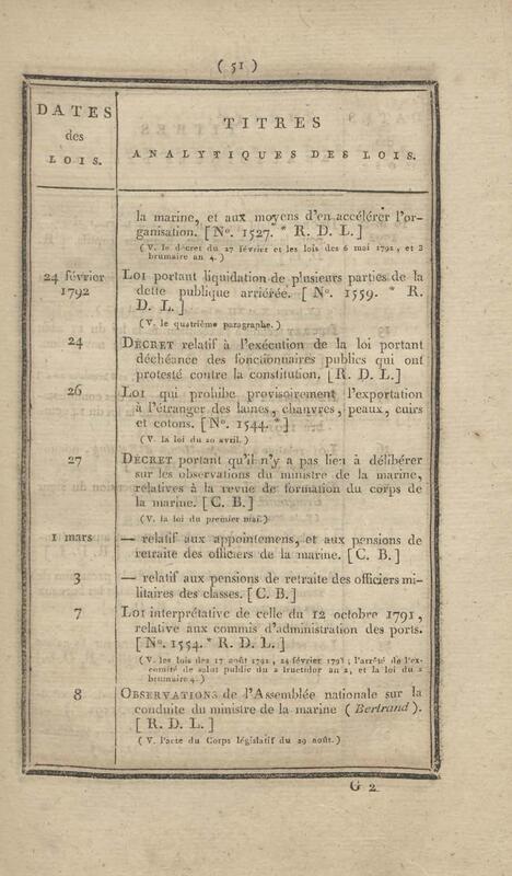 - Table chronologique et analytique des lois rendues depuis 1789 concernant la marine et les colonies