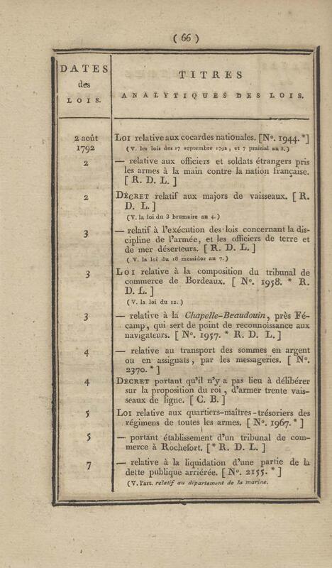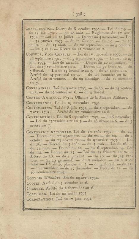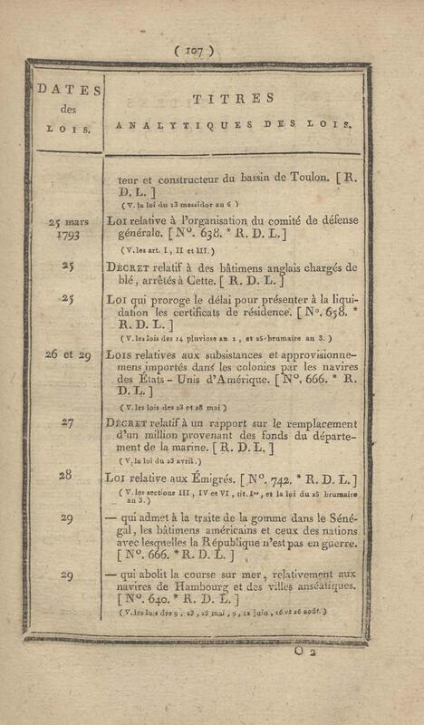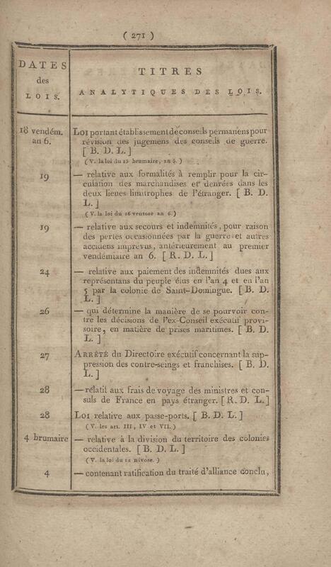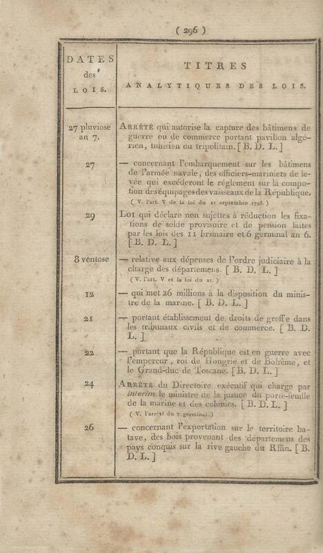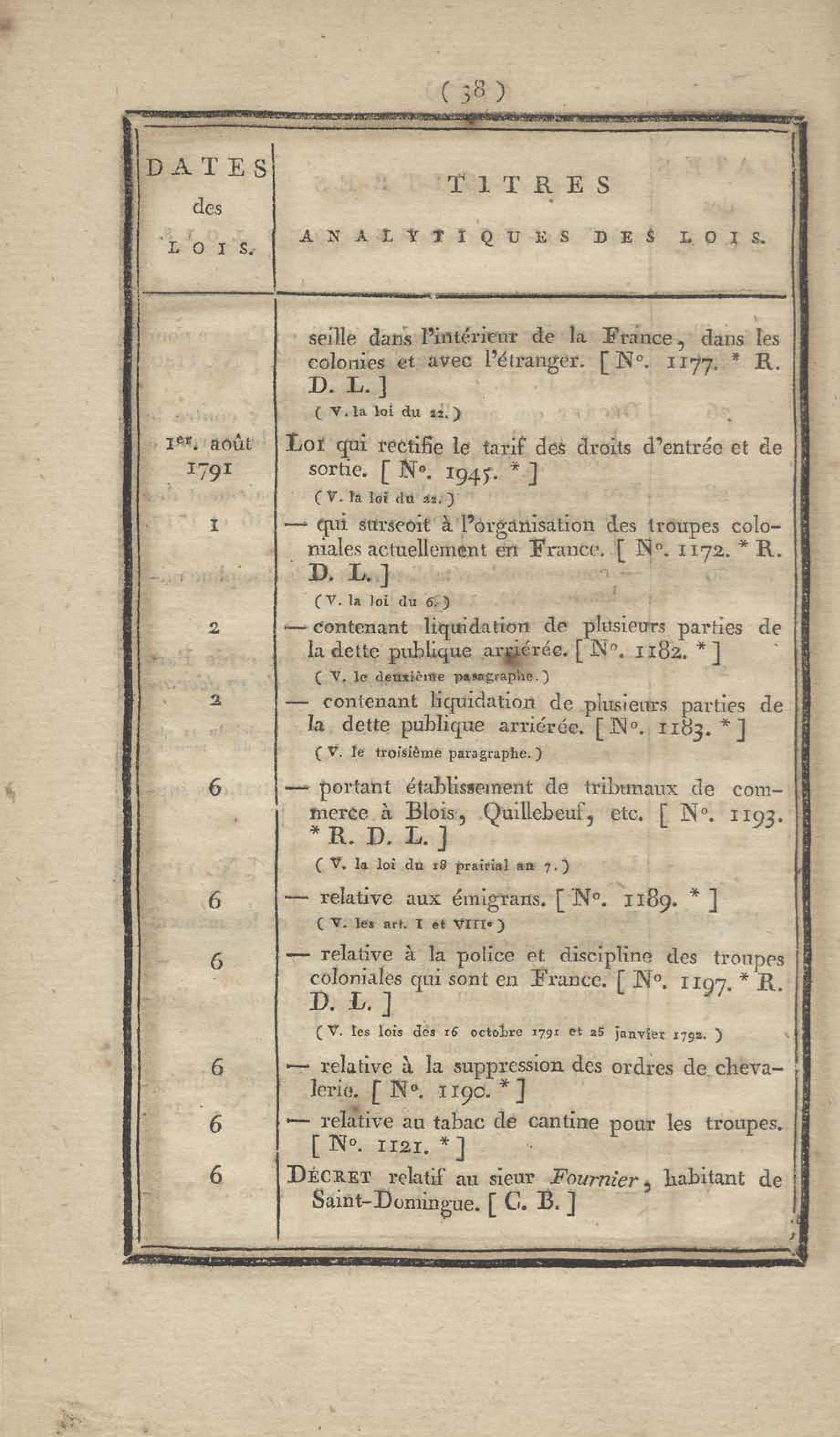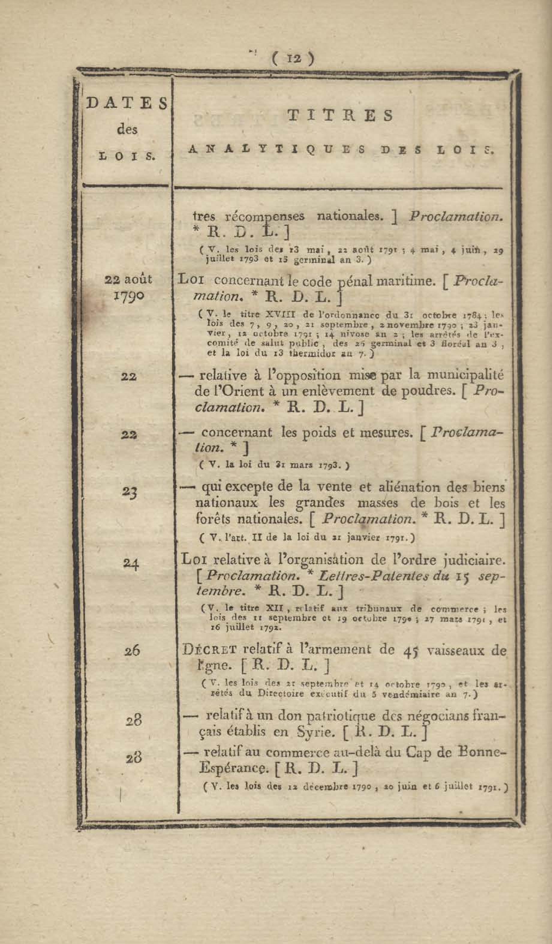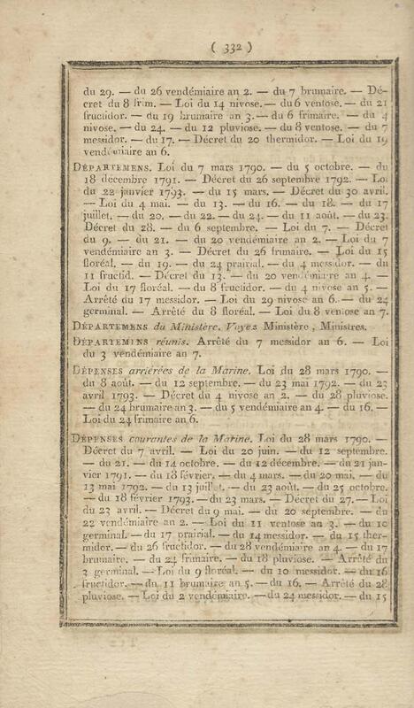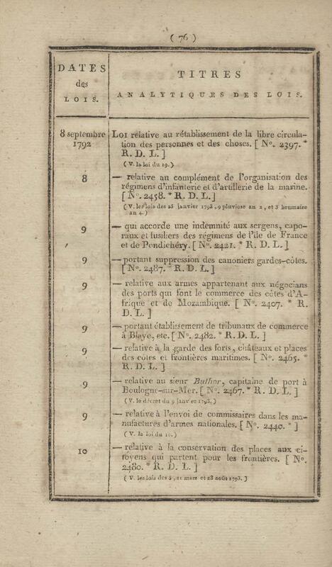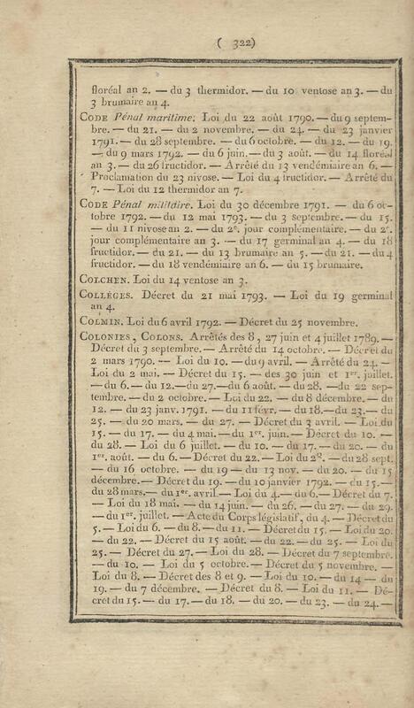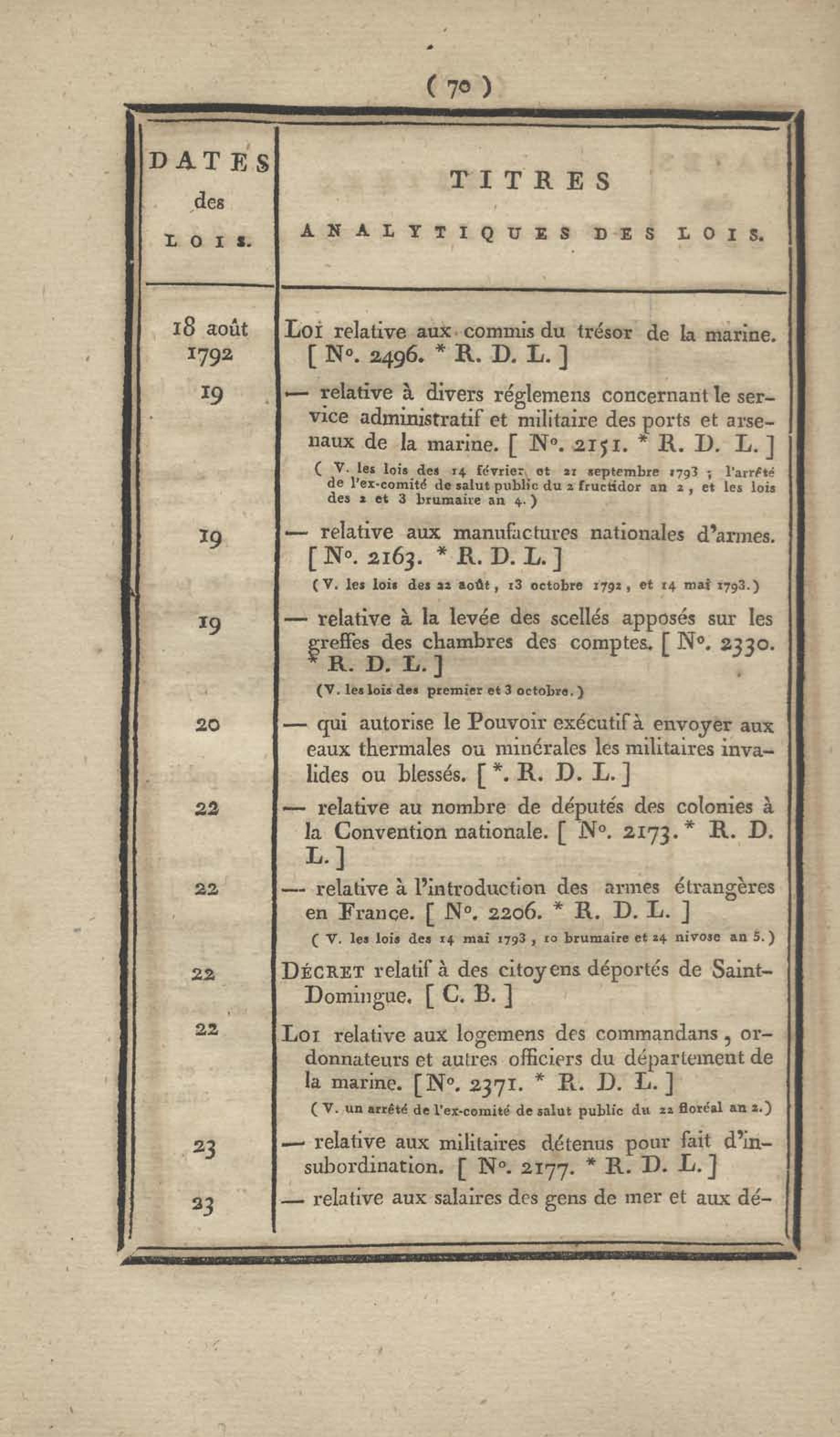 - Table chronologique et analytique des lois rendues depuis 1789 concernant la marine et les colonies