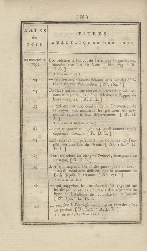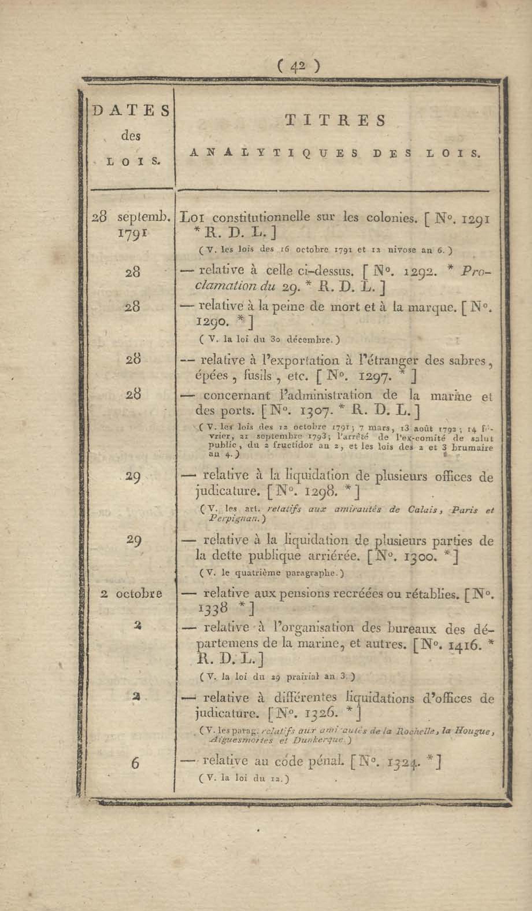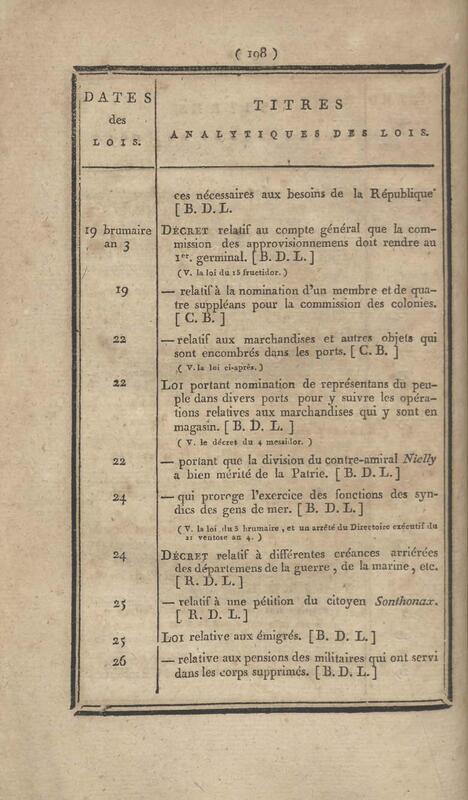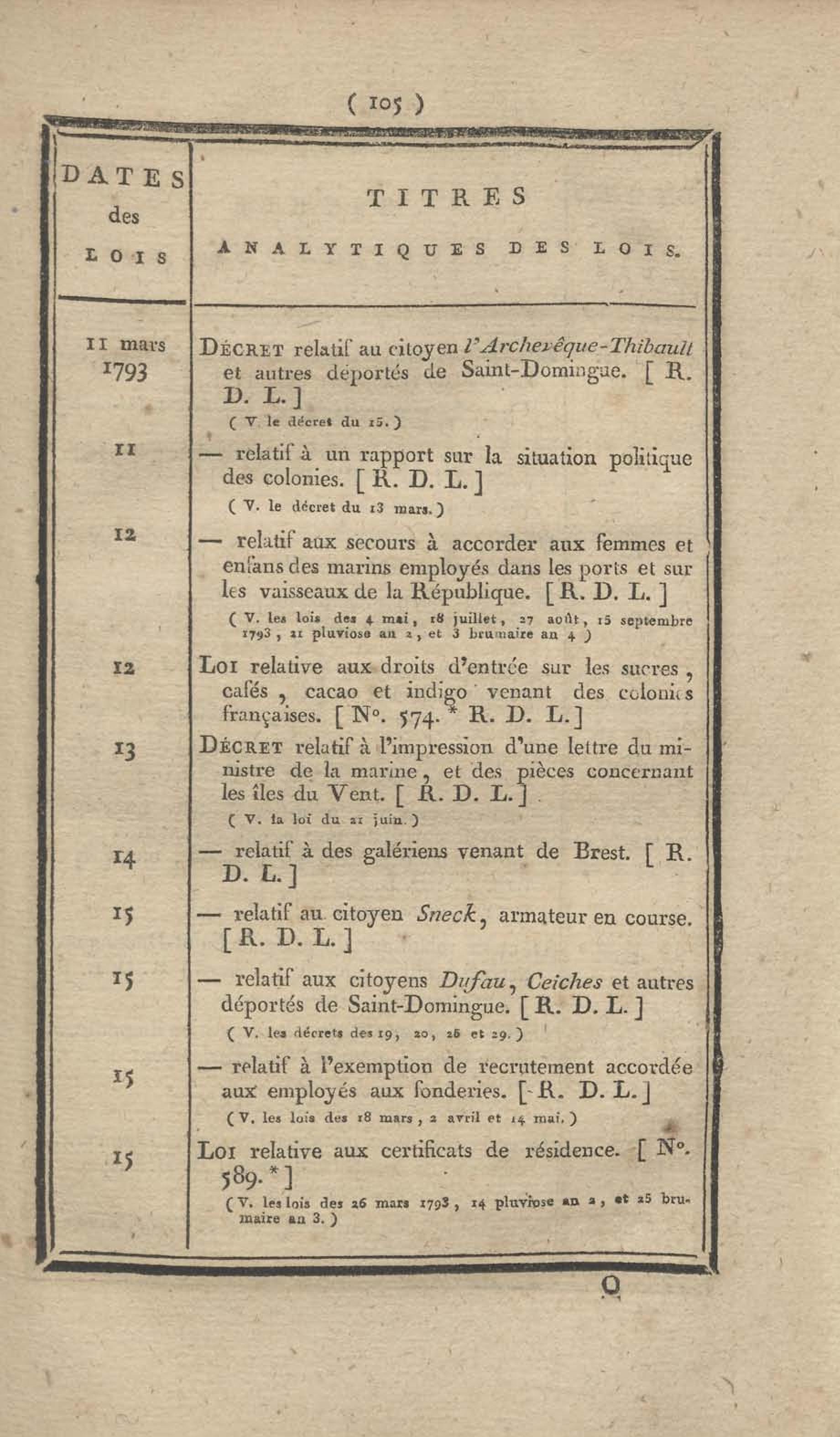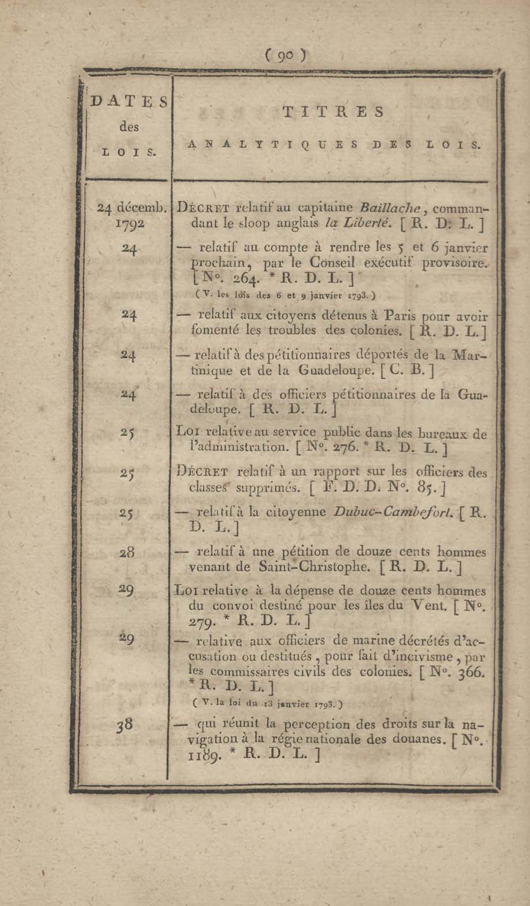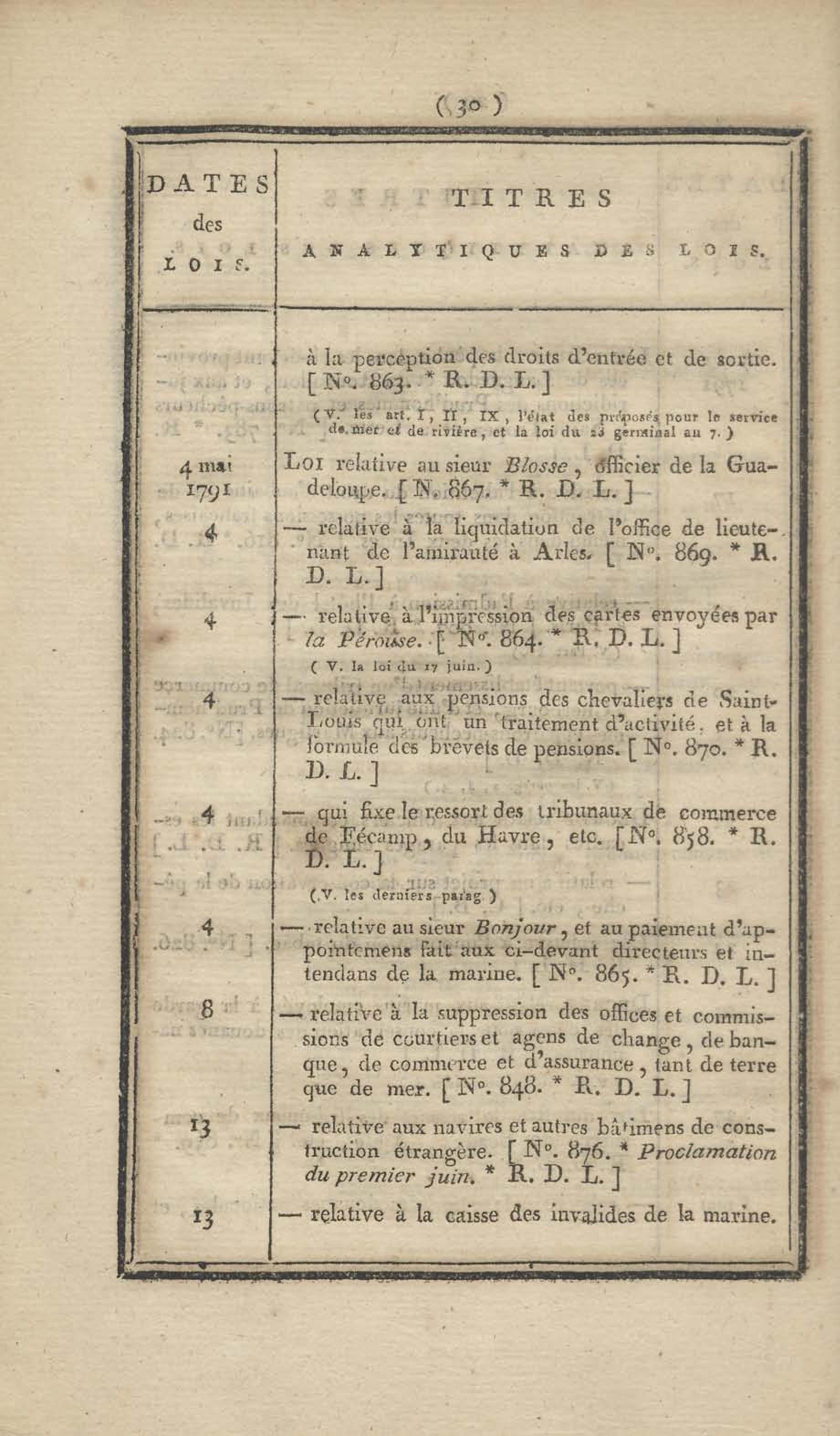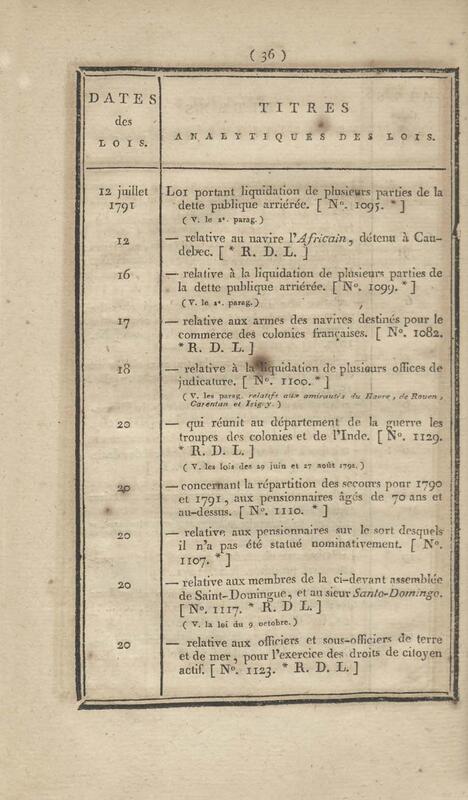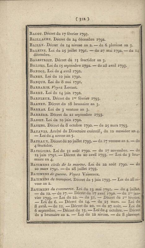 - Table chronologique et analytique des lois rendues depuis 1789 concernant la marine et les colonies
