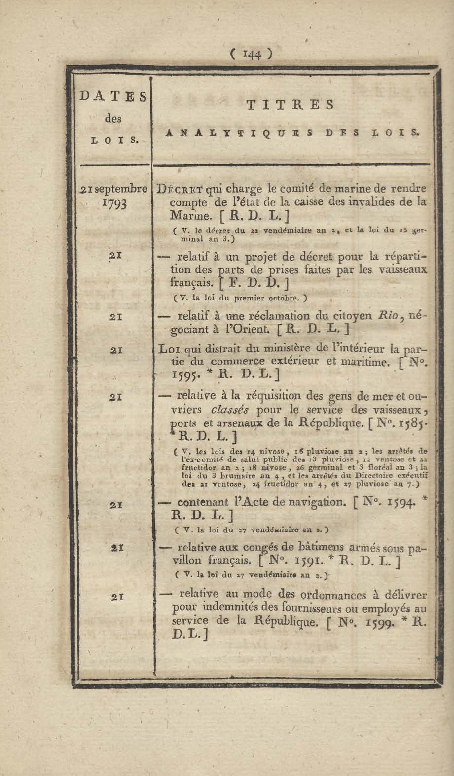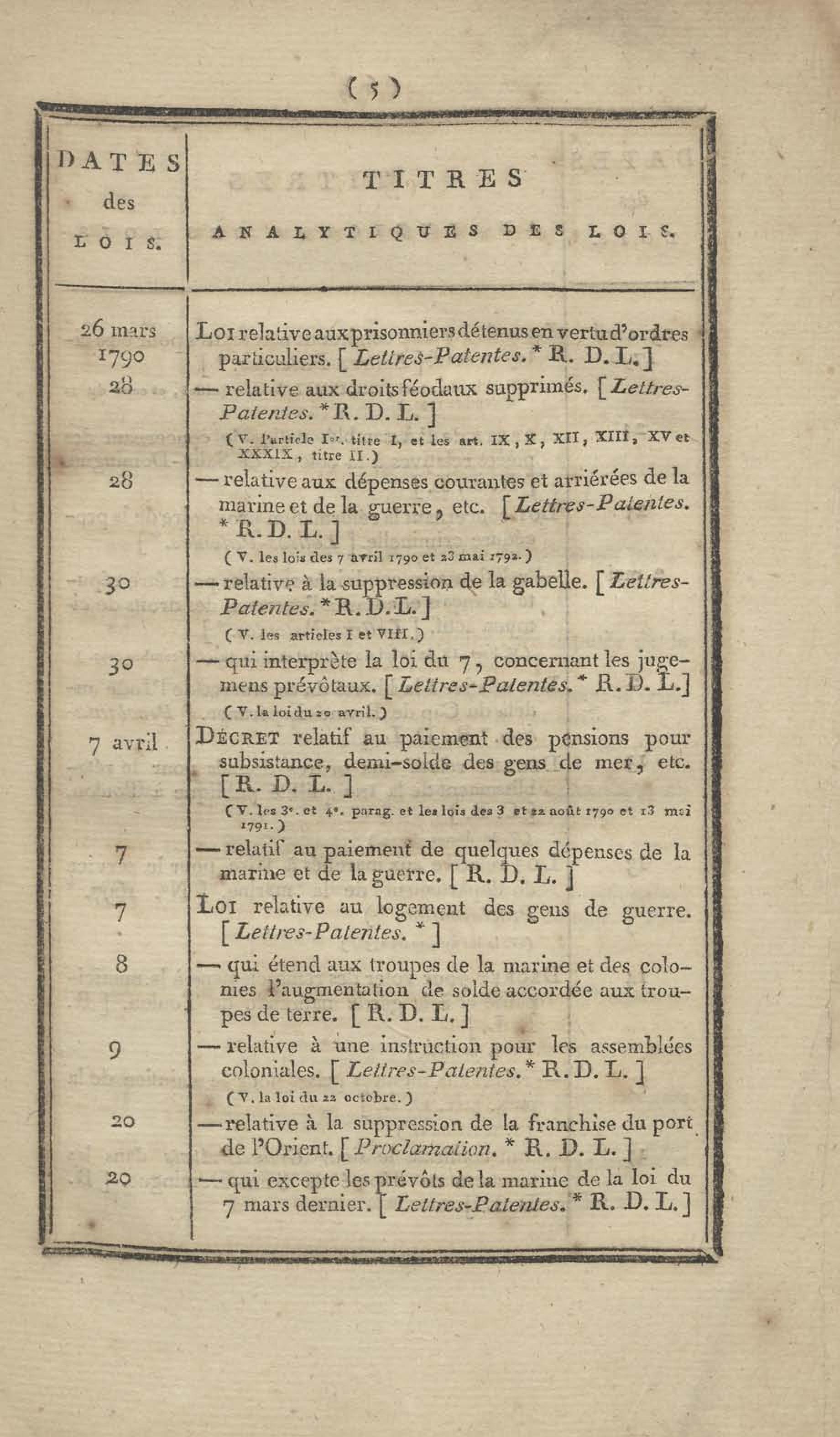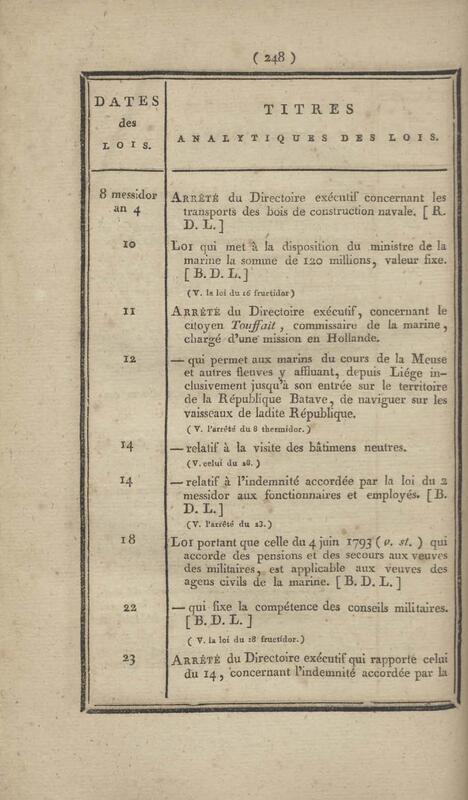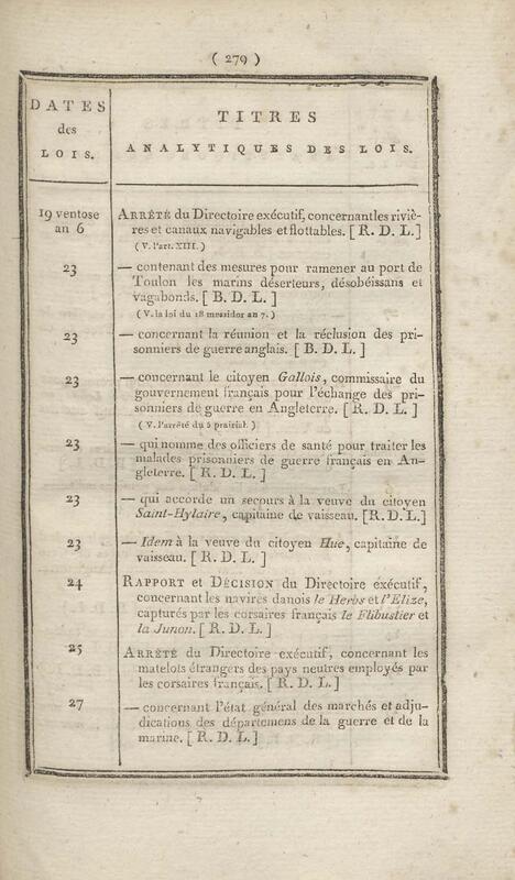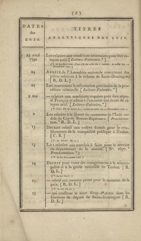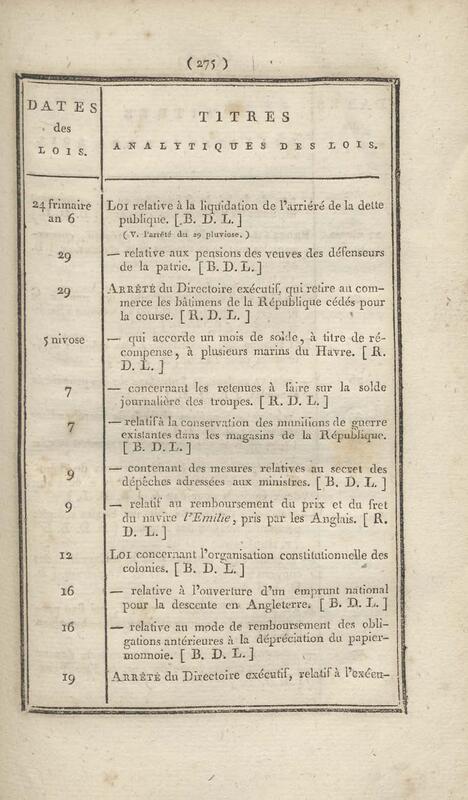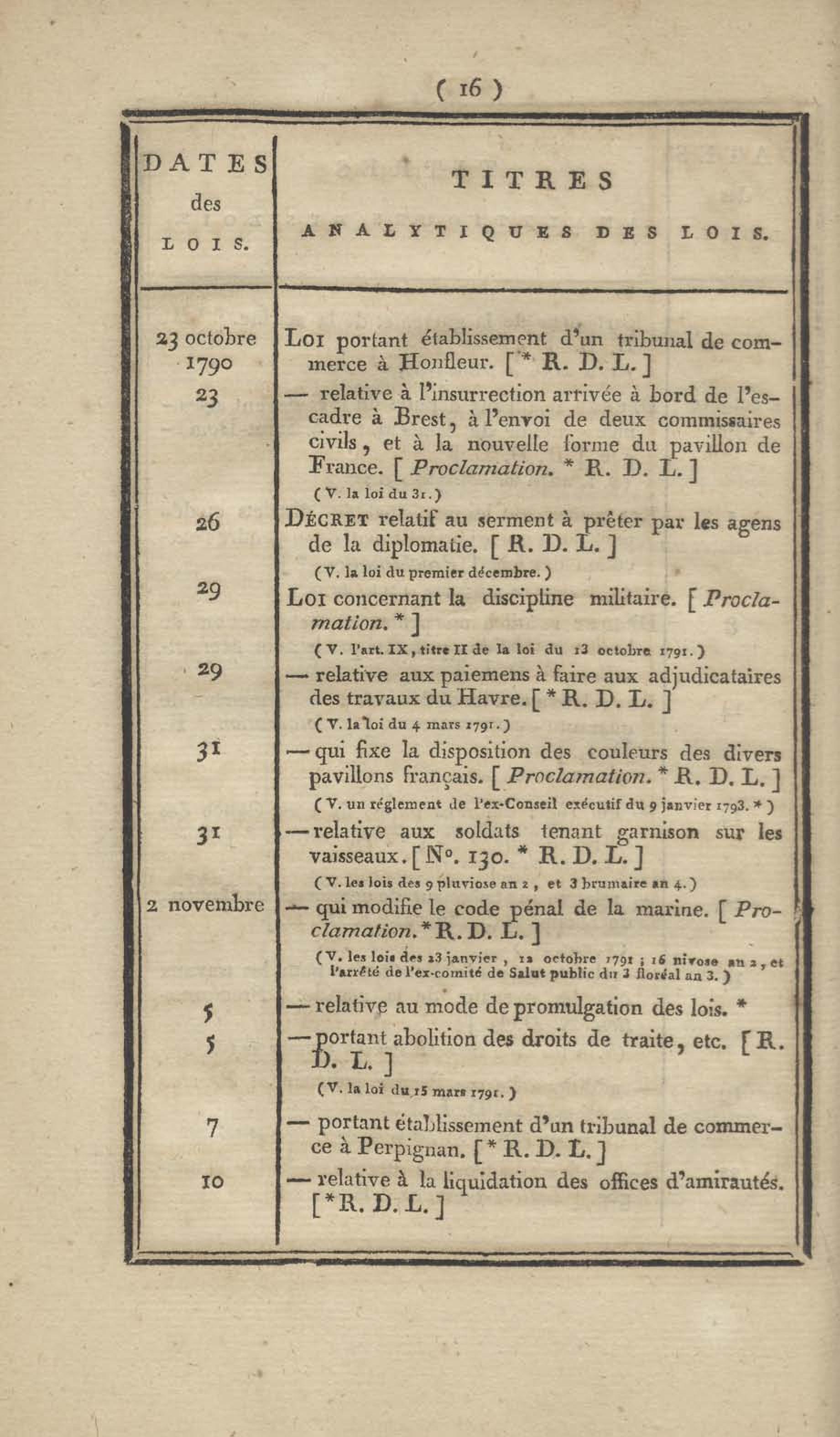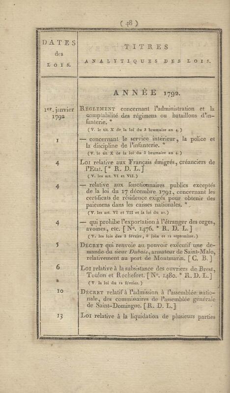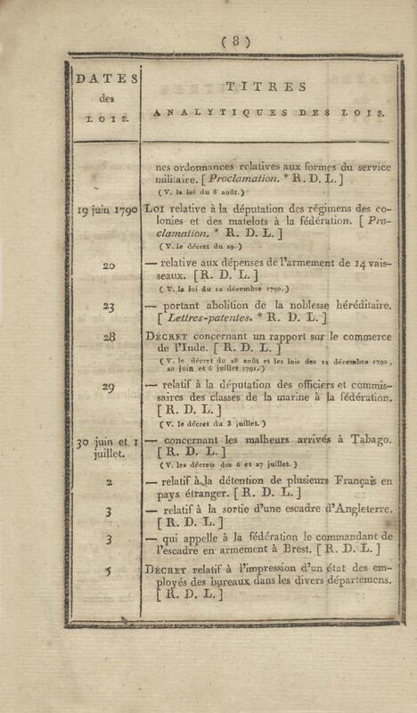 - Table chronologique et analytique des lois rendues depuis 1789 concernant la marine et les colonies