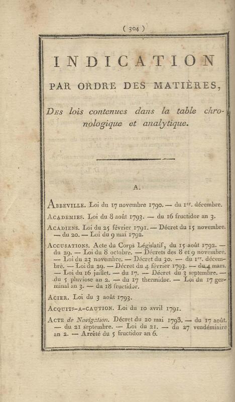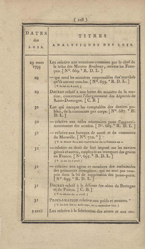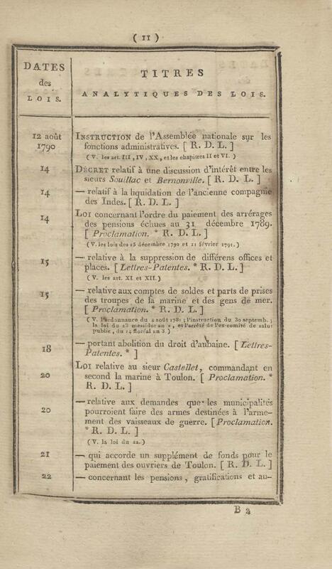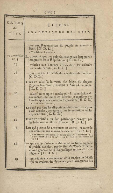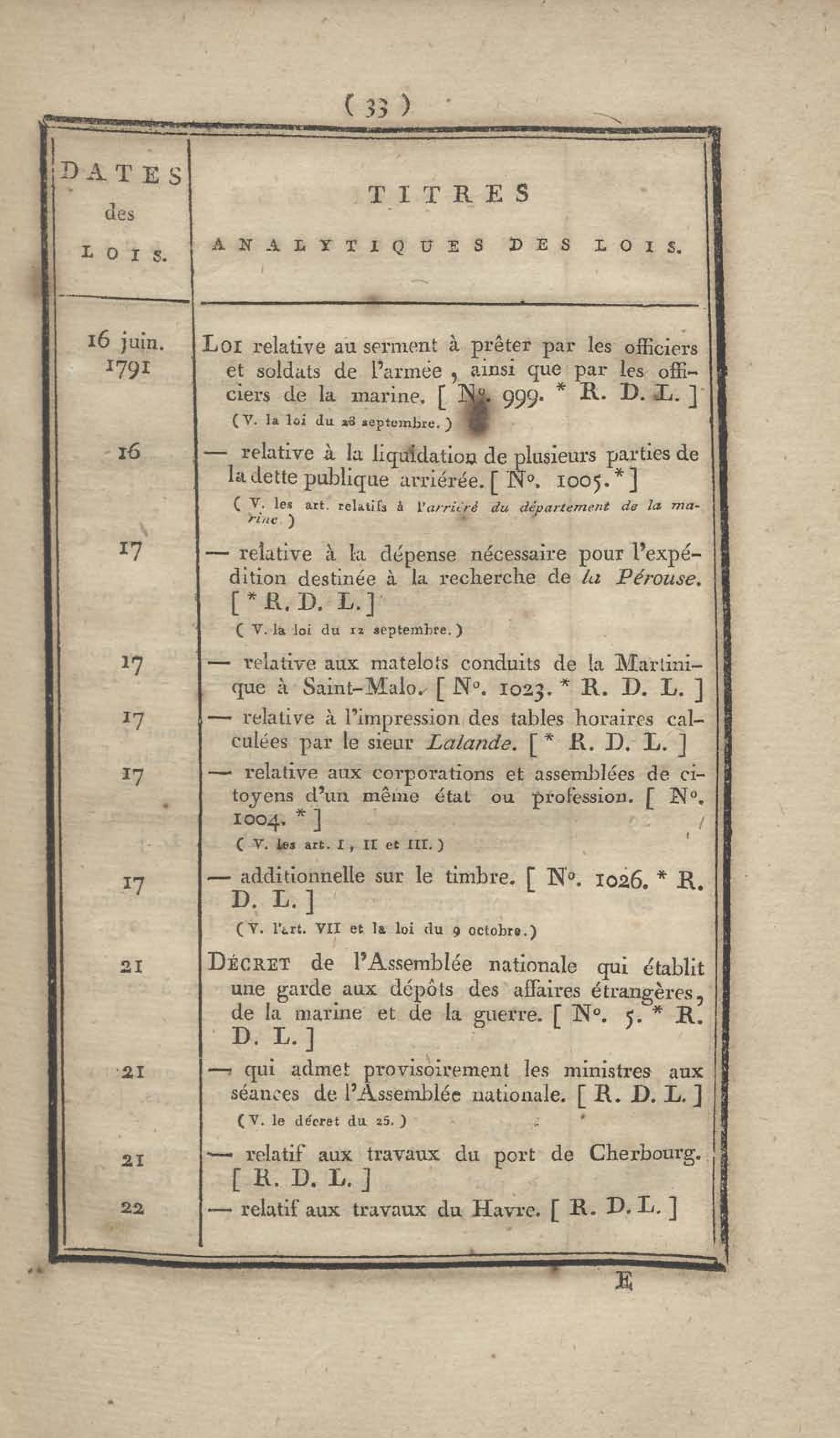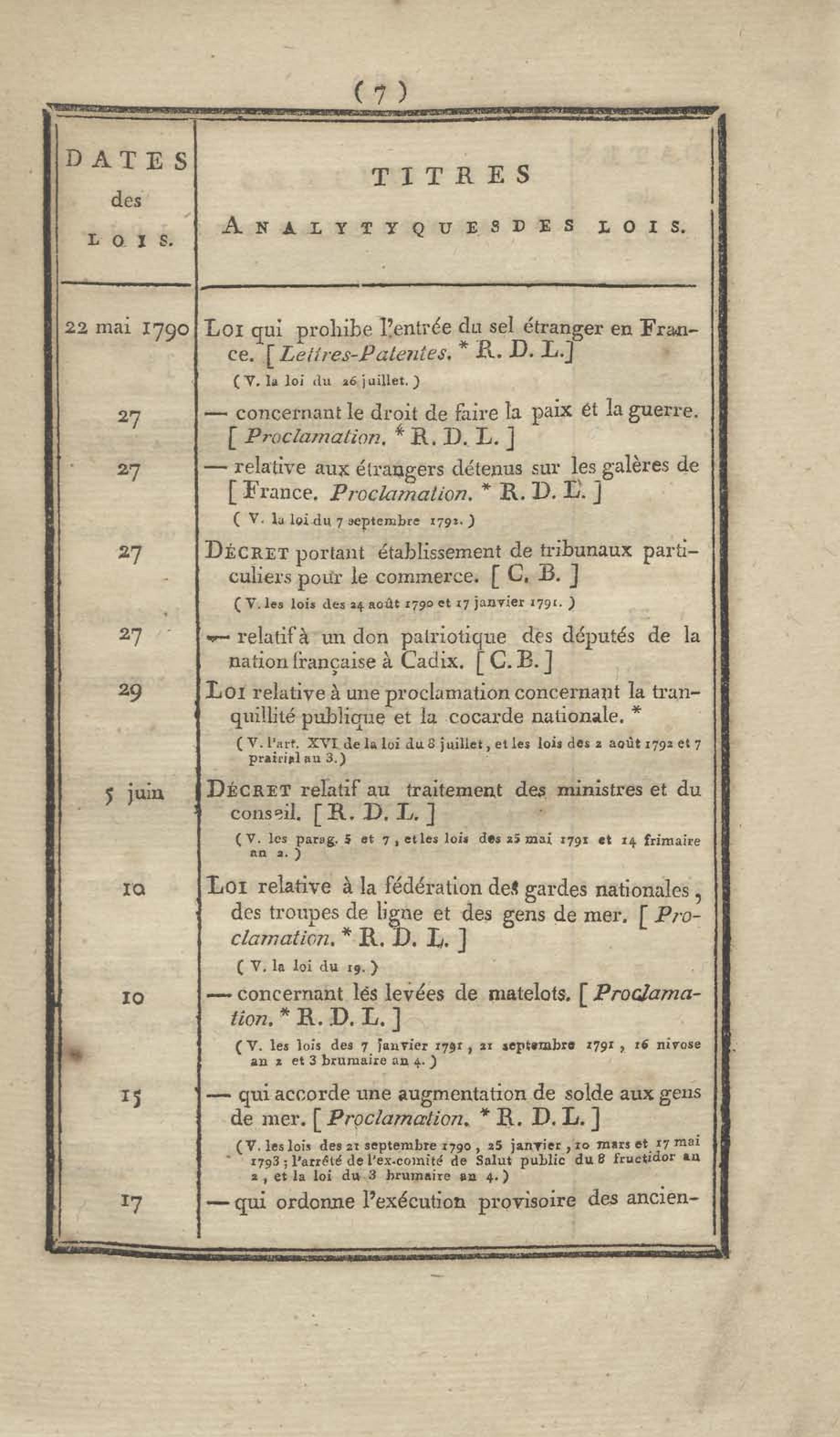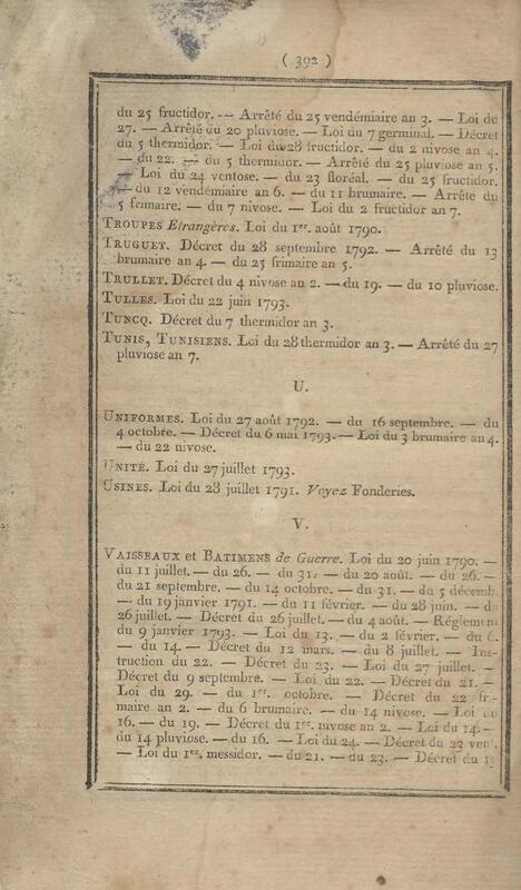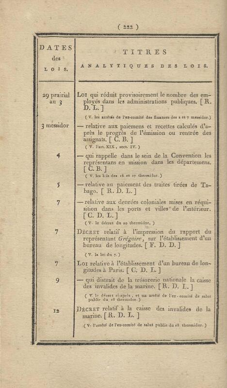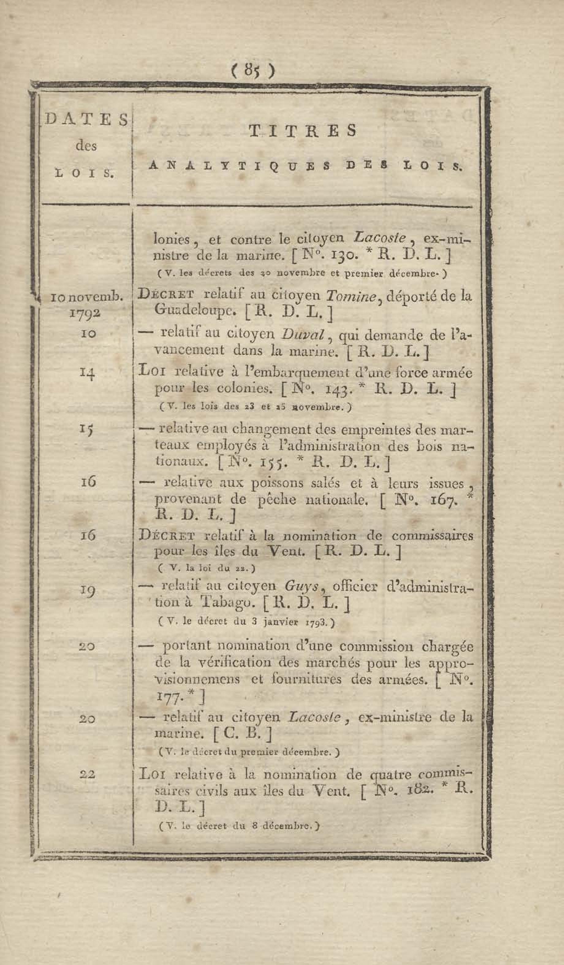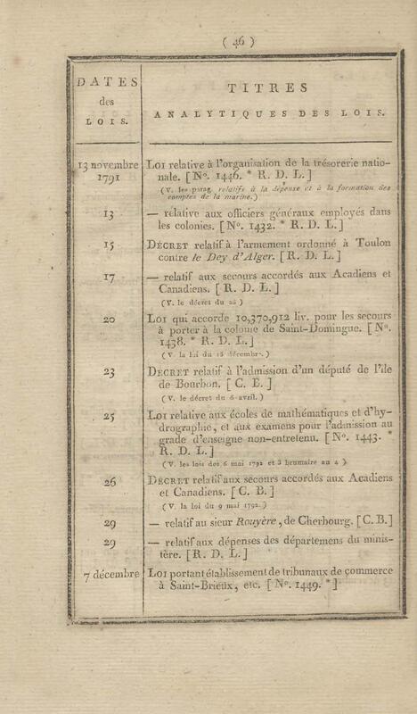 - Table chronologique et analytique des lois rendues depuis 1789 concernant la marine et les colonies