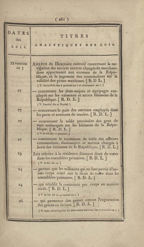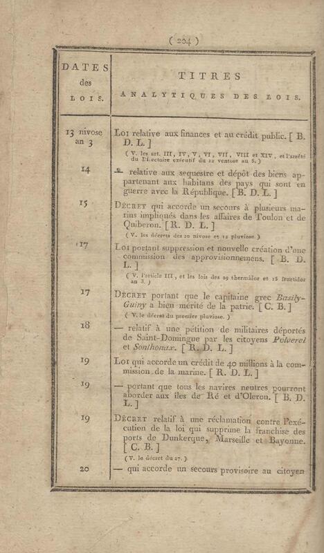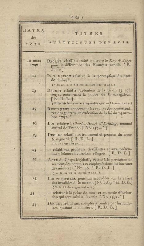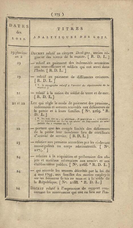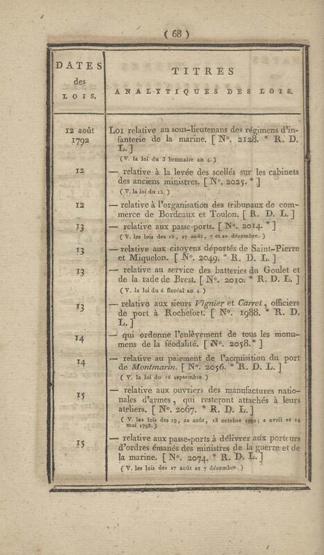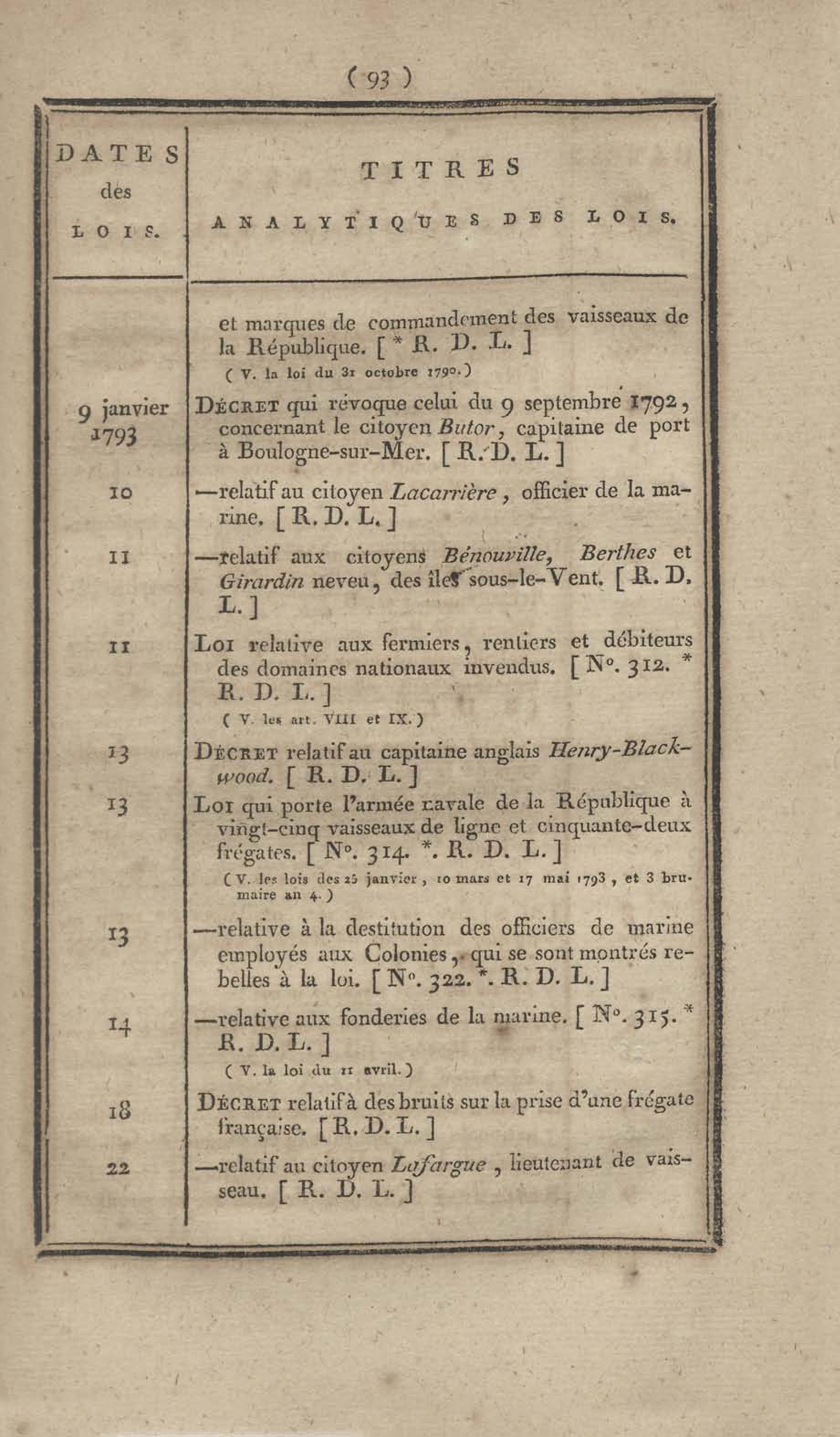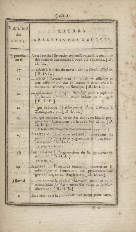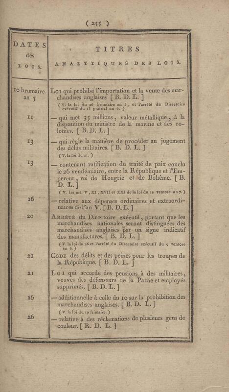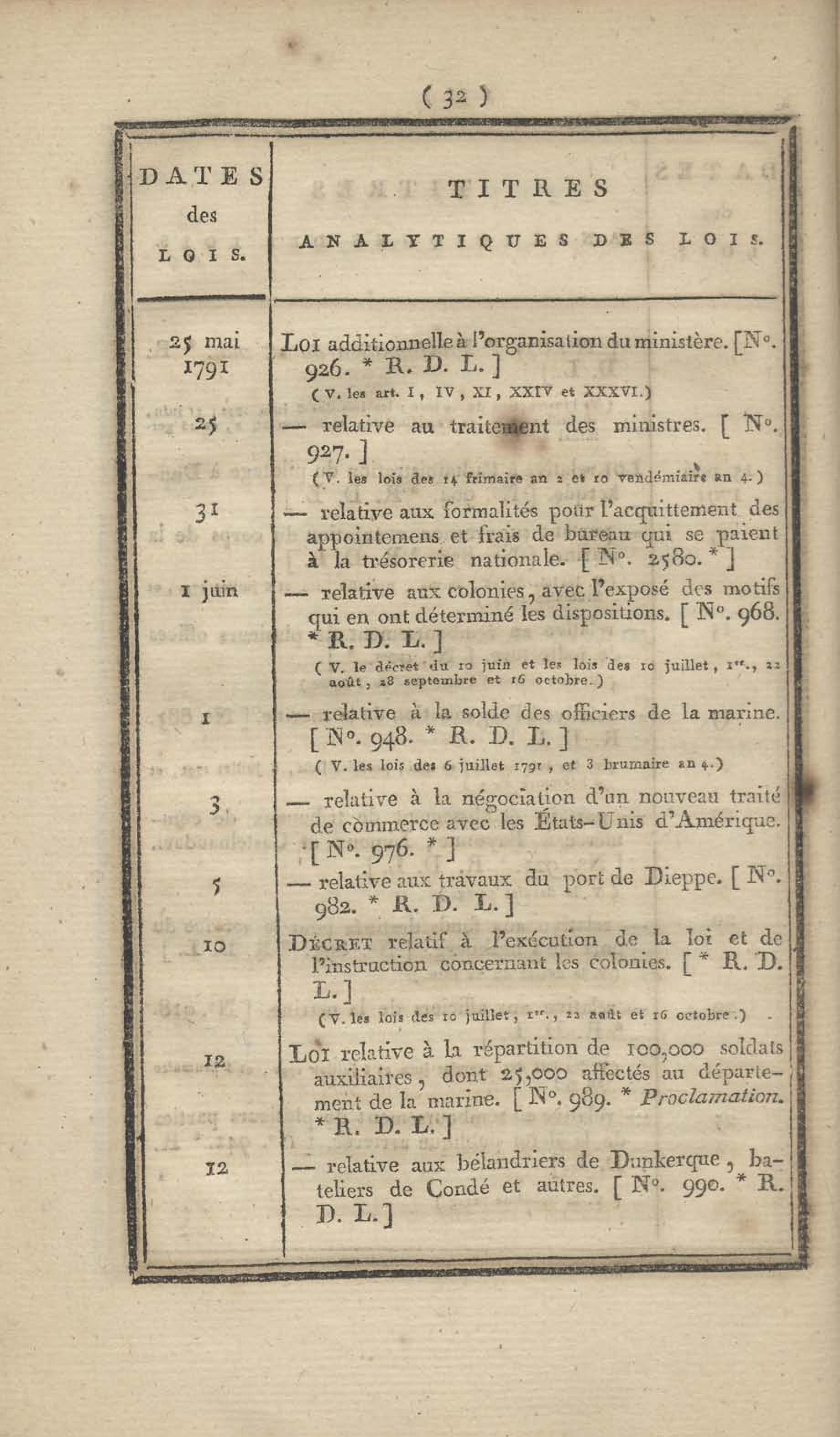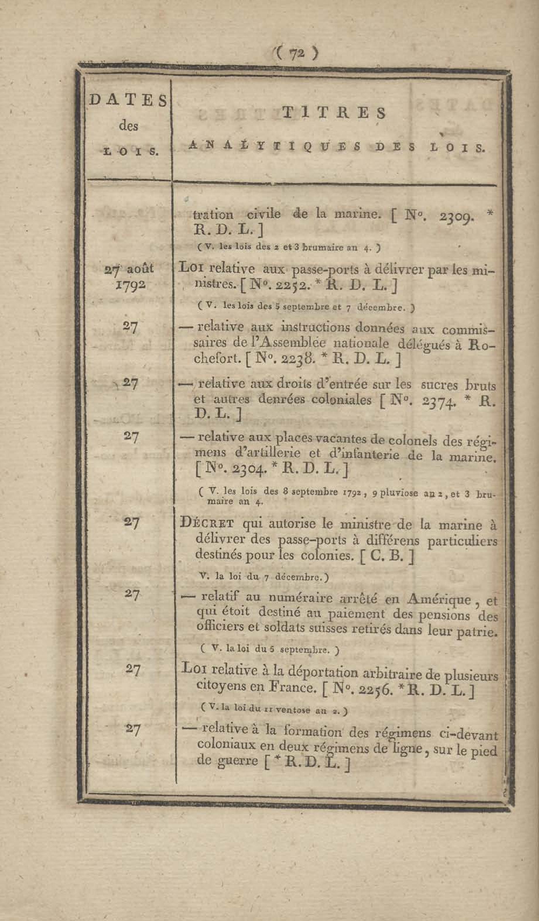 - Table chronologique et analytique des lois rendues depuis 1789 concernant la marine et les colonies