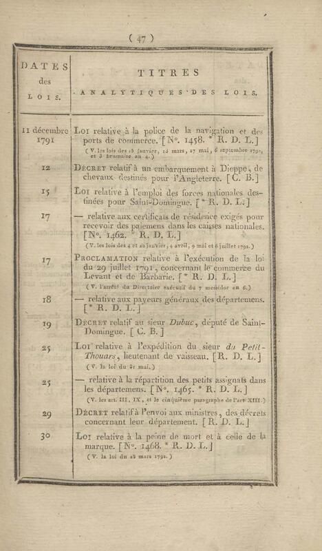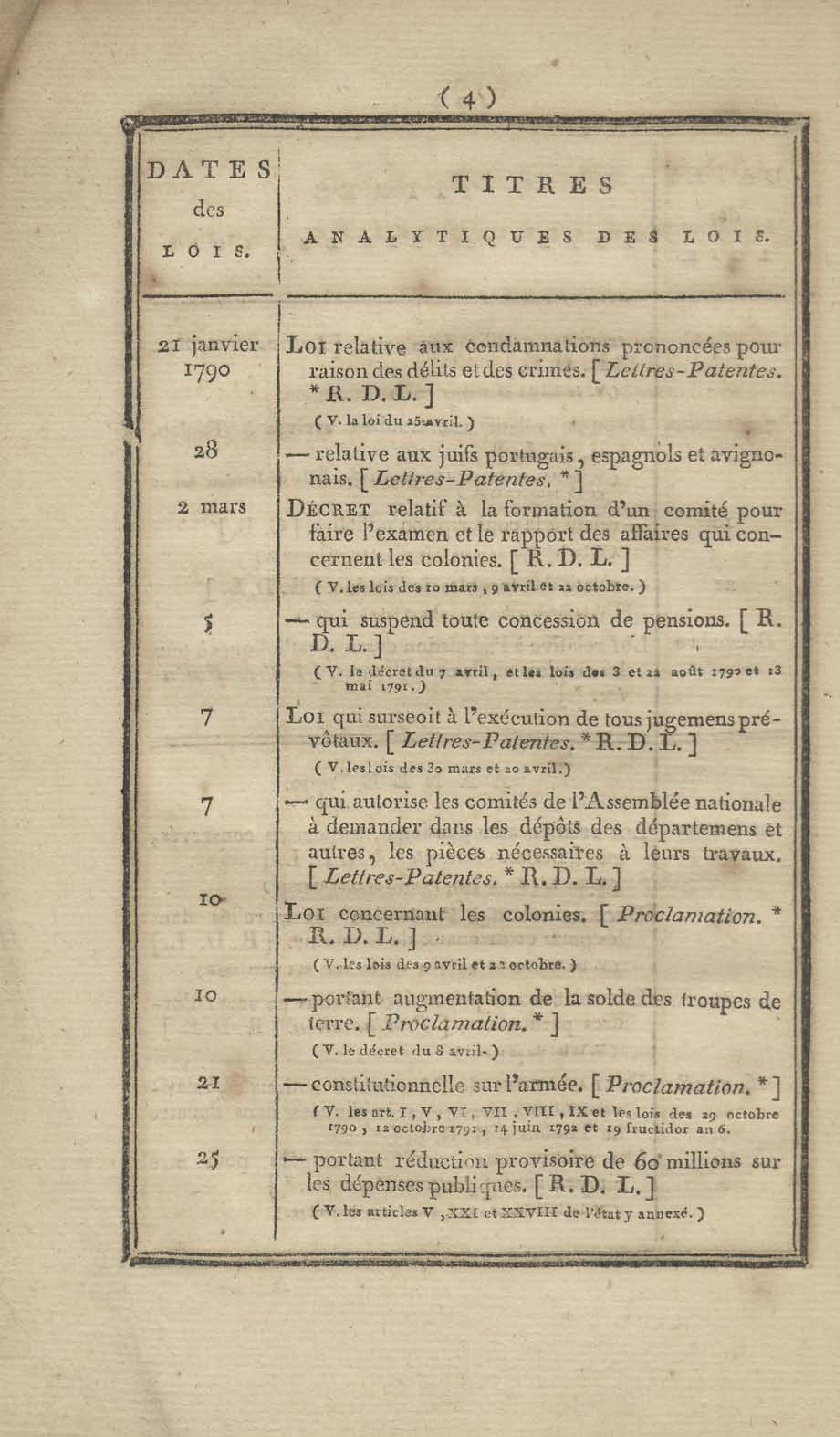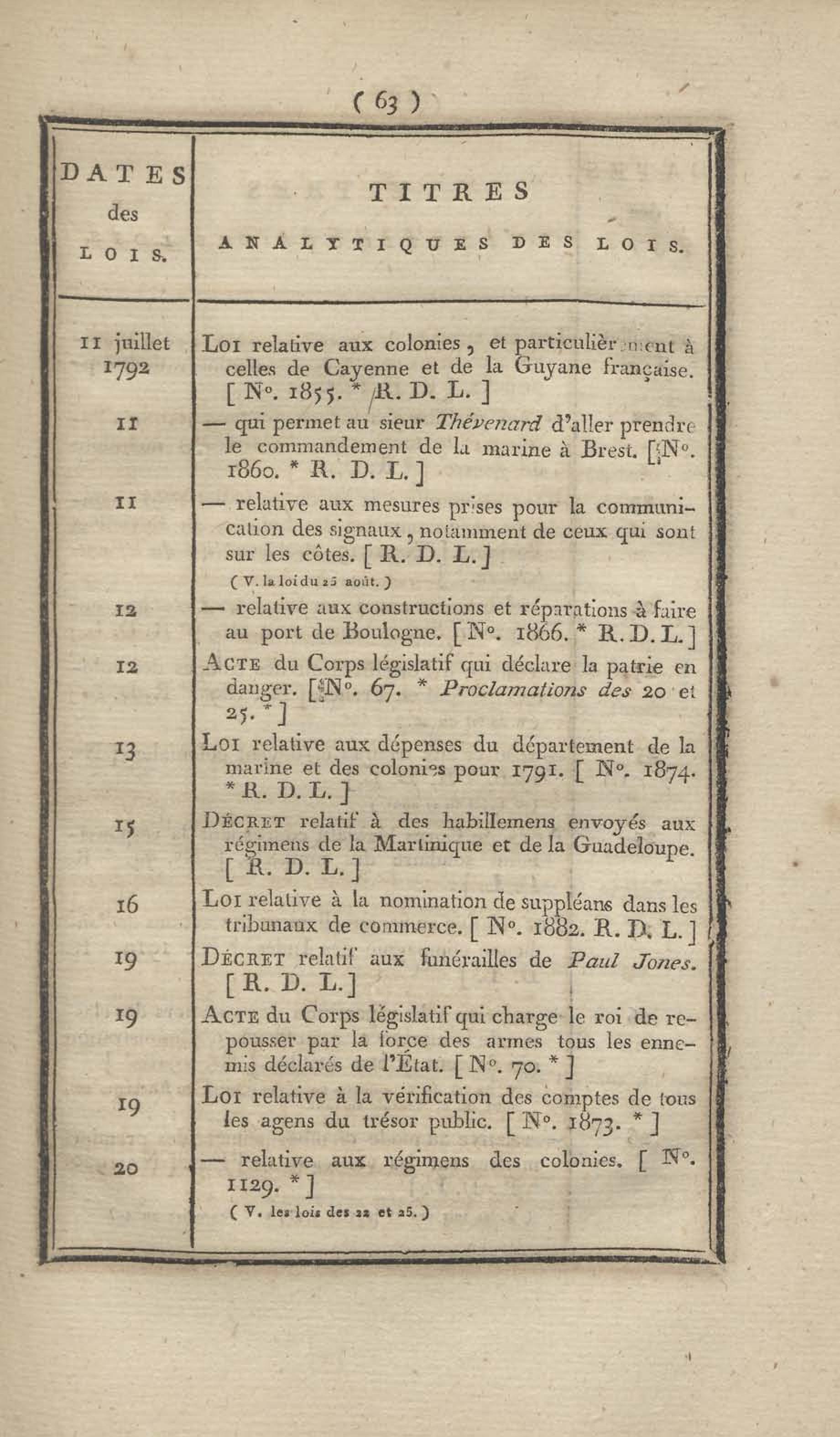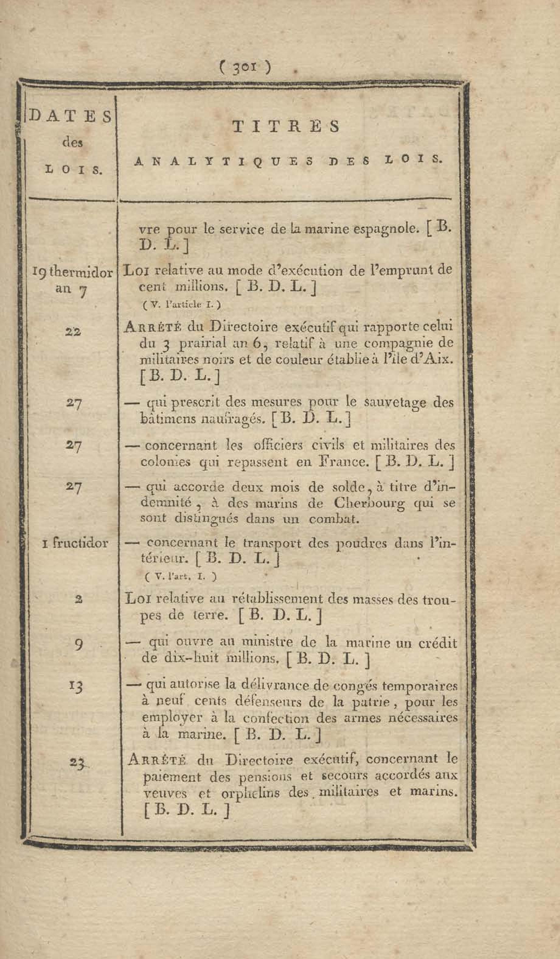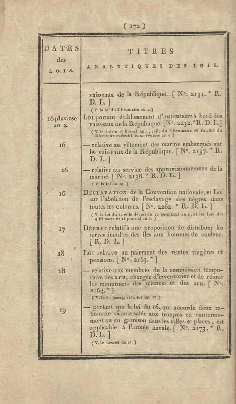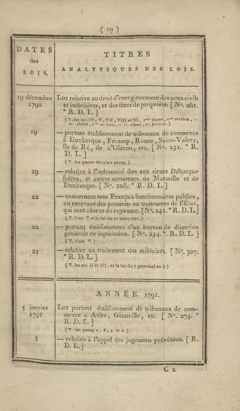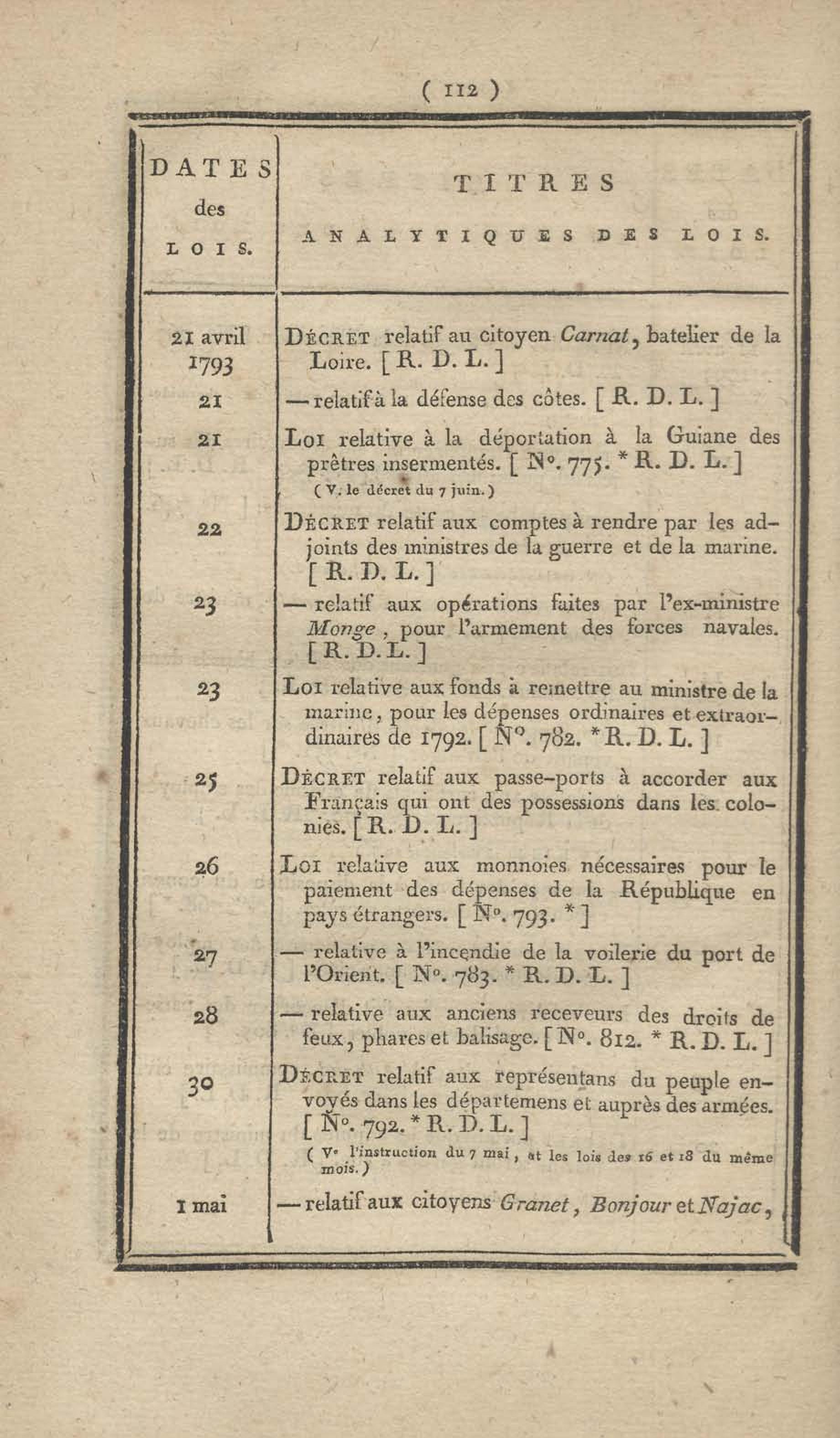 - Table chronologique et analytique des lois rendues depuis 1789 concernant la marine et les colonies