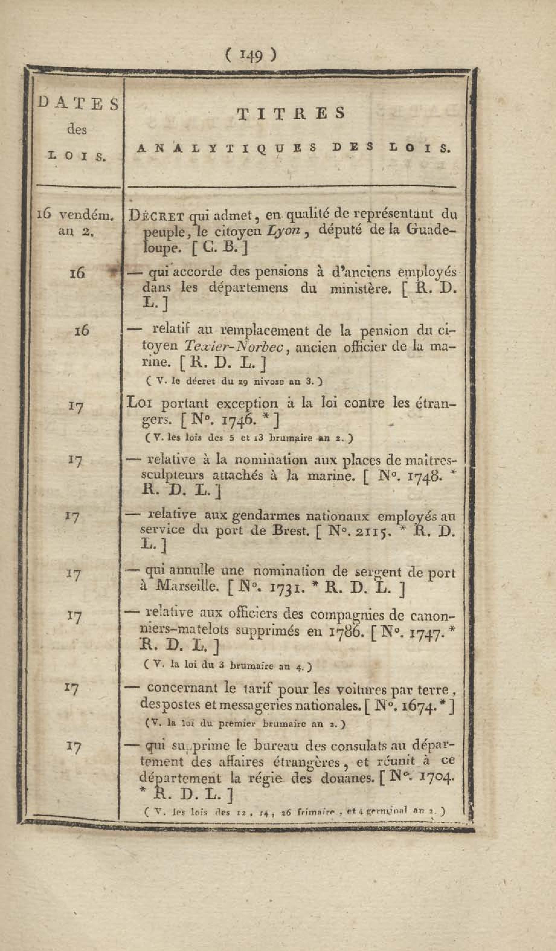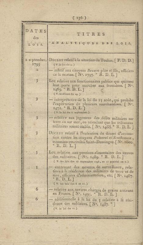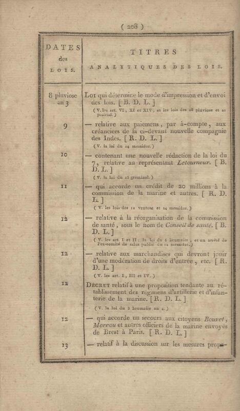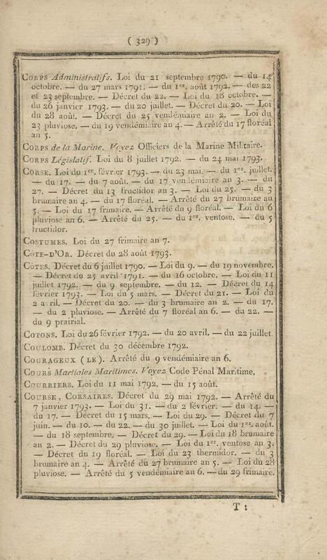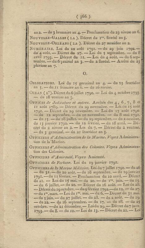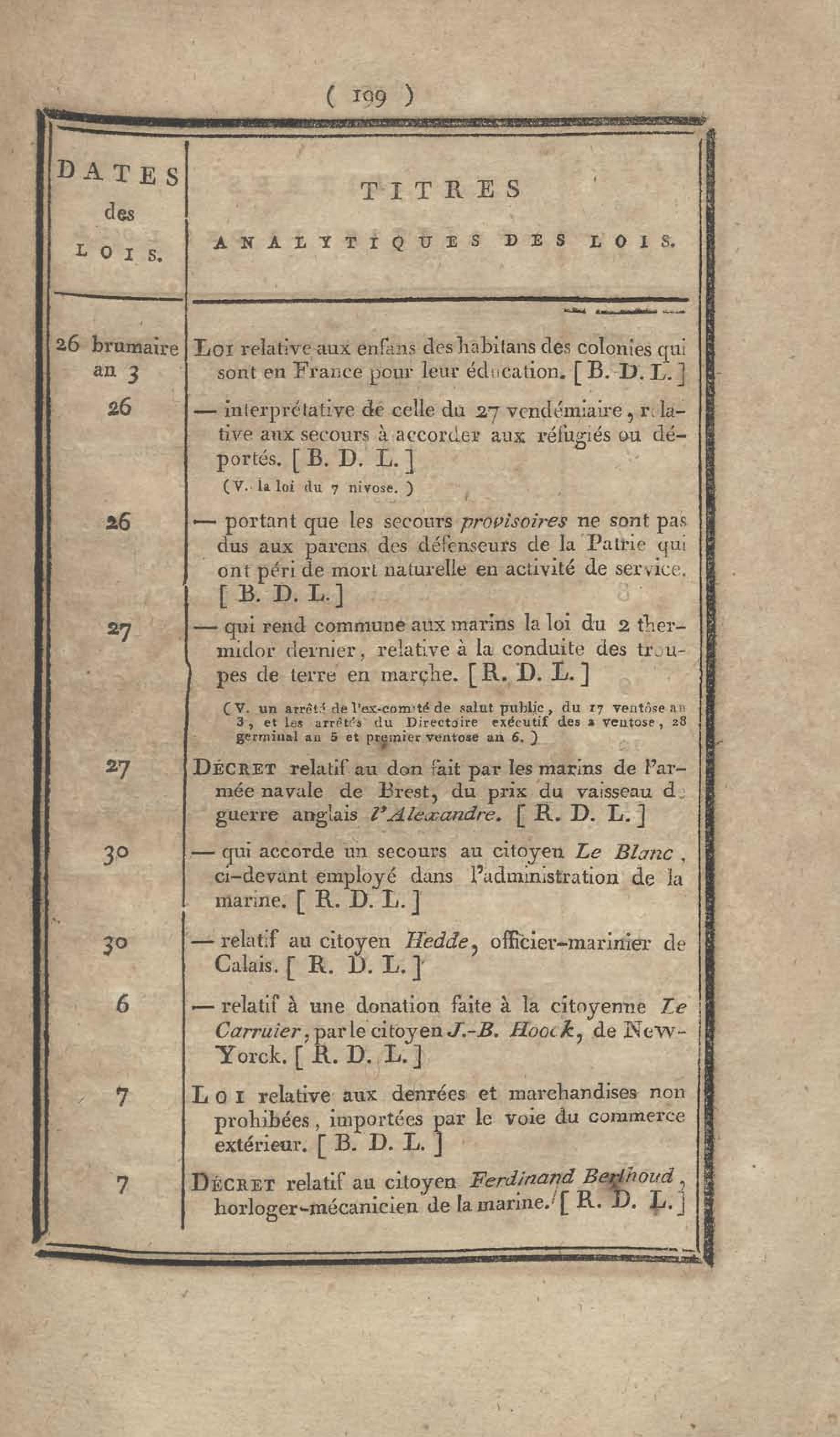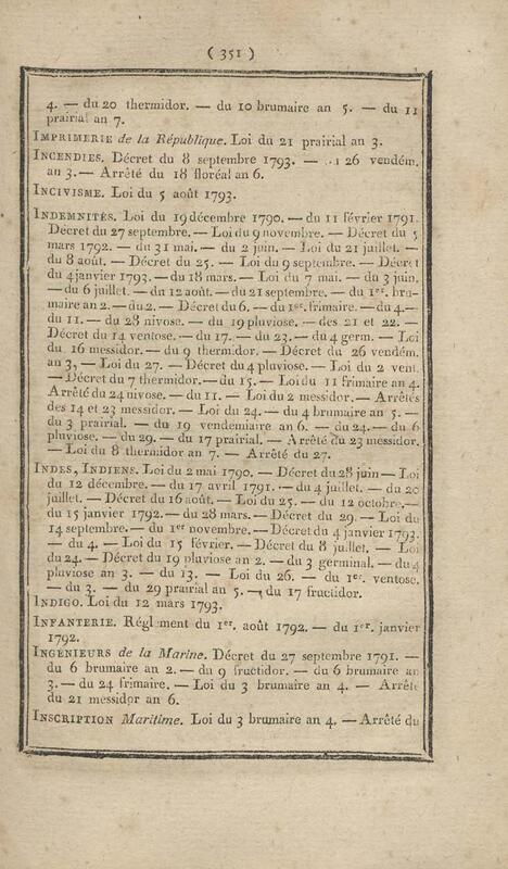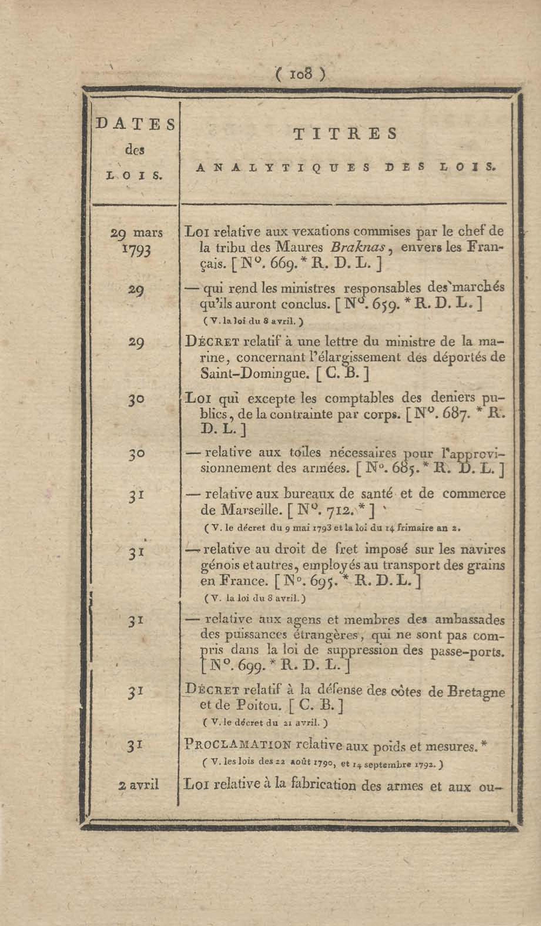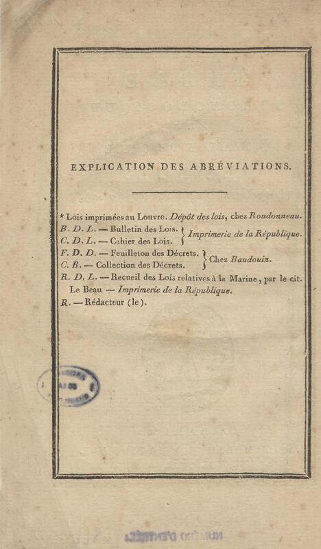 - Table chronologique et analytique des lois rendues depuis 1789 concernant la marine et les colonies