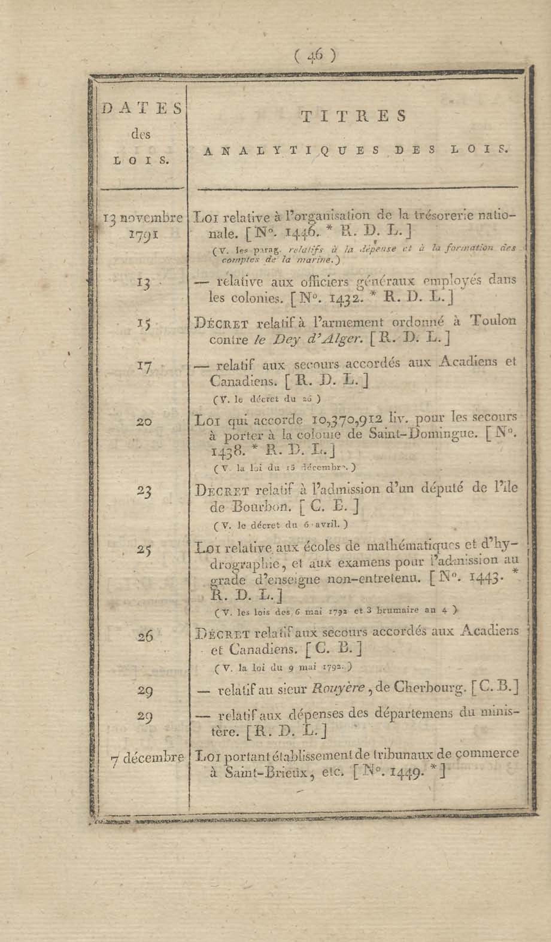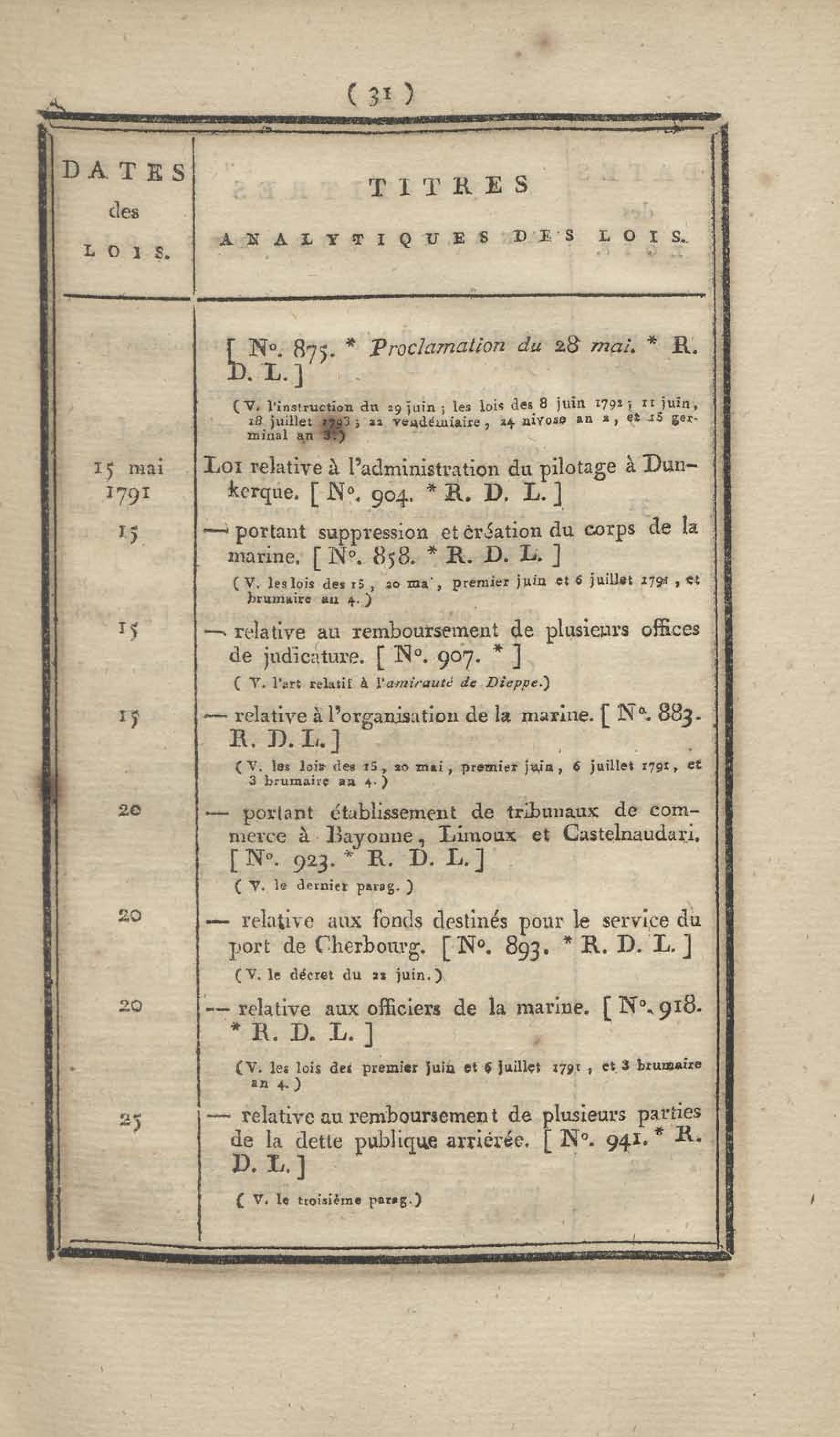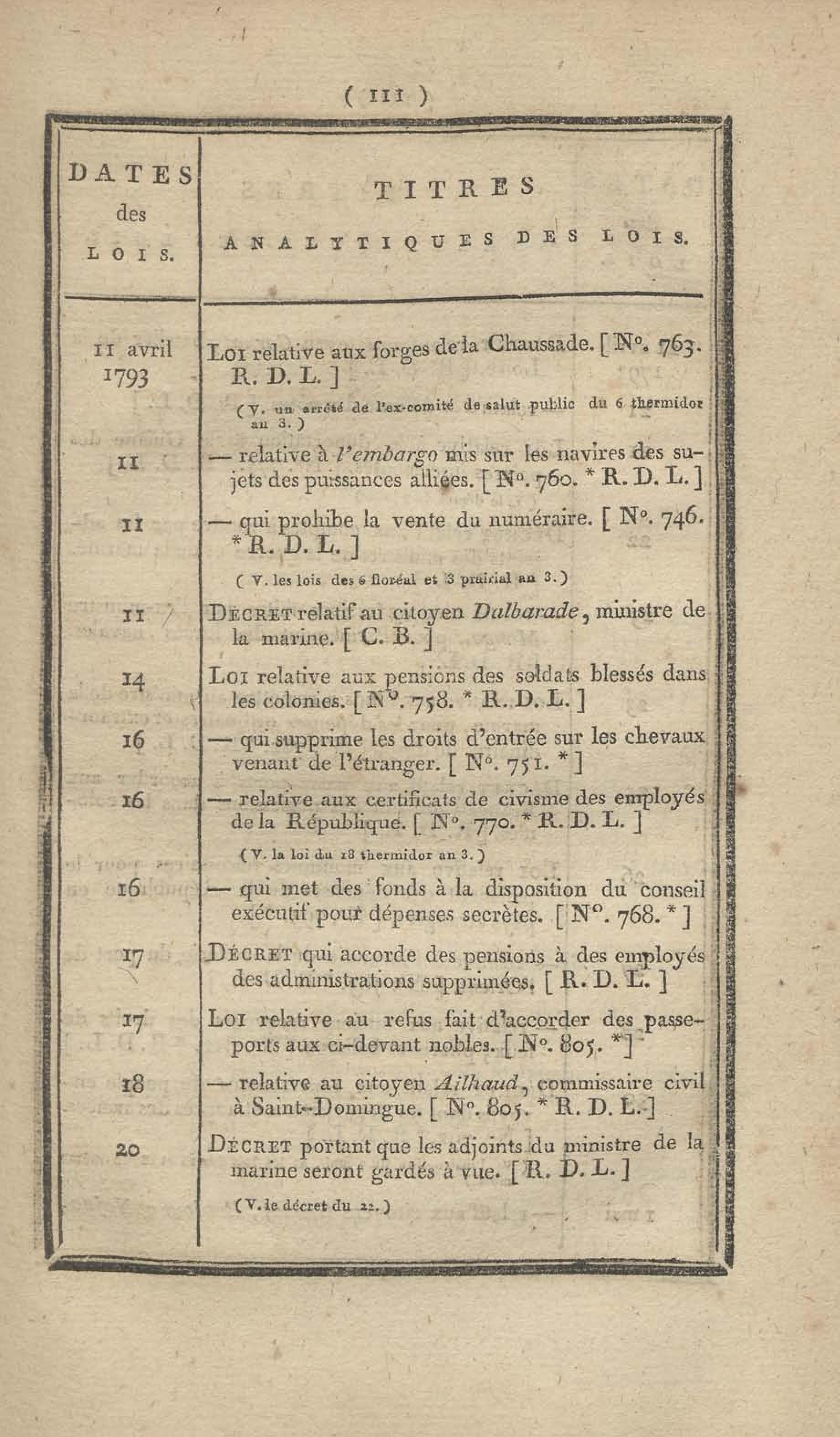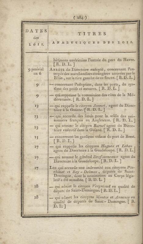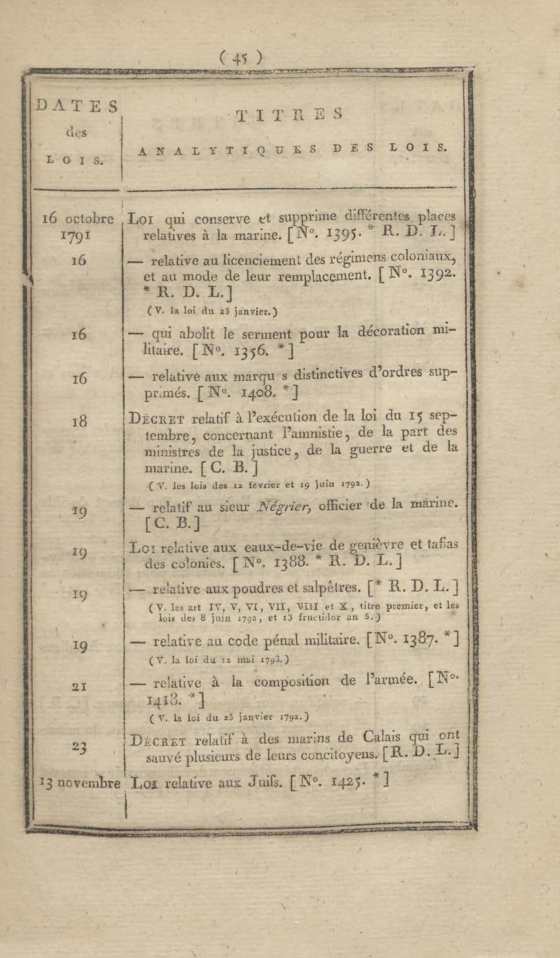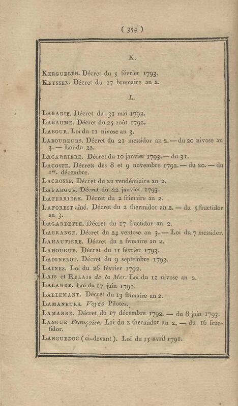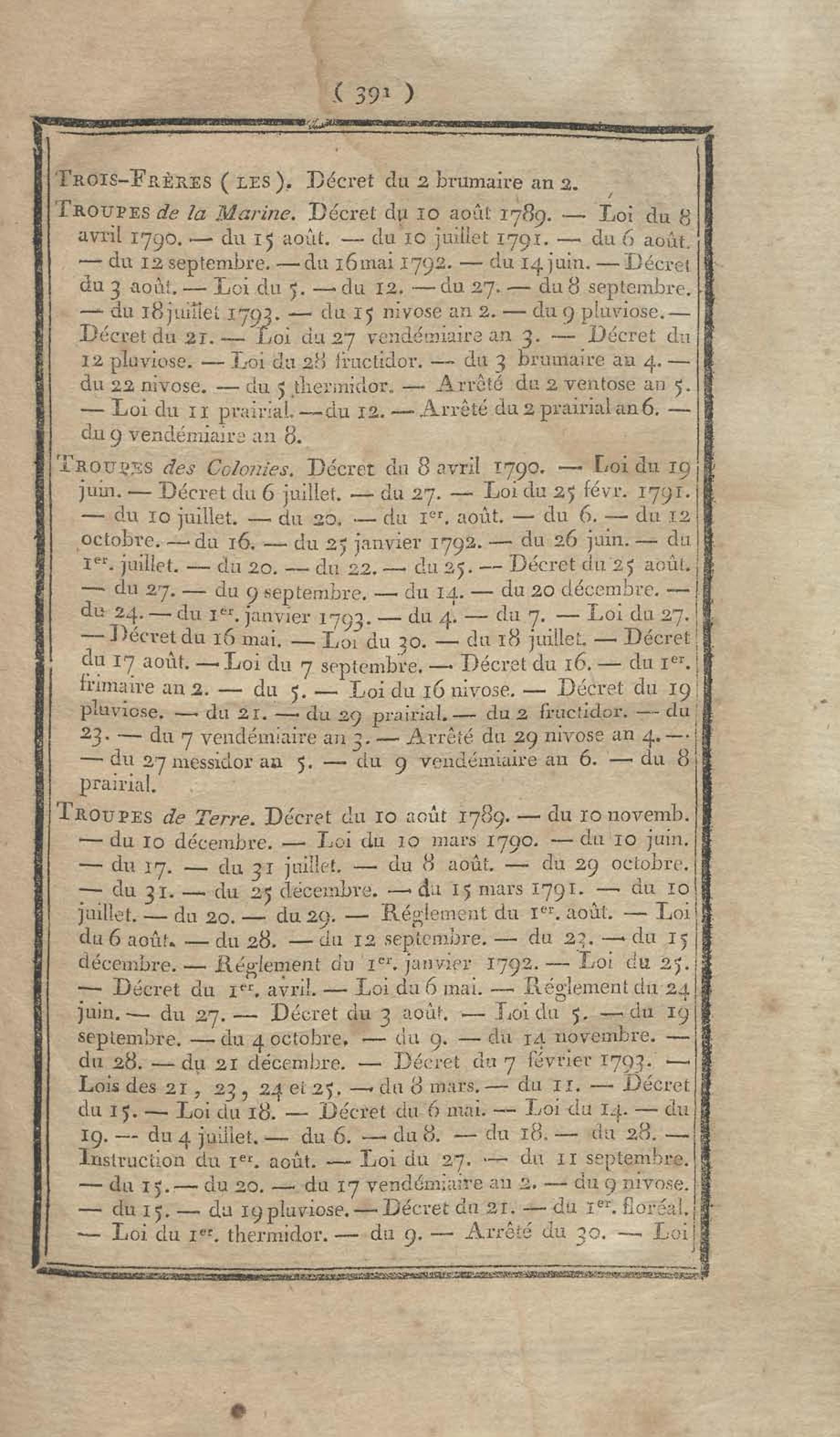 - Table chronologique et analytique des lois rendues depuis 1789 concernant la marine et les colonies