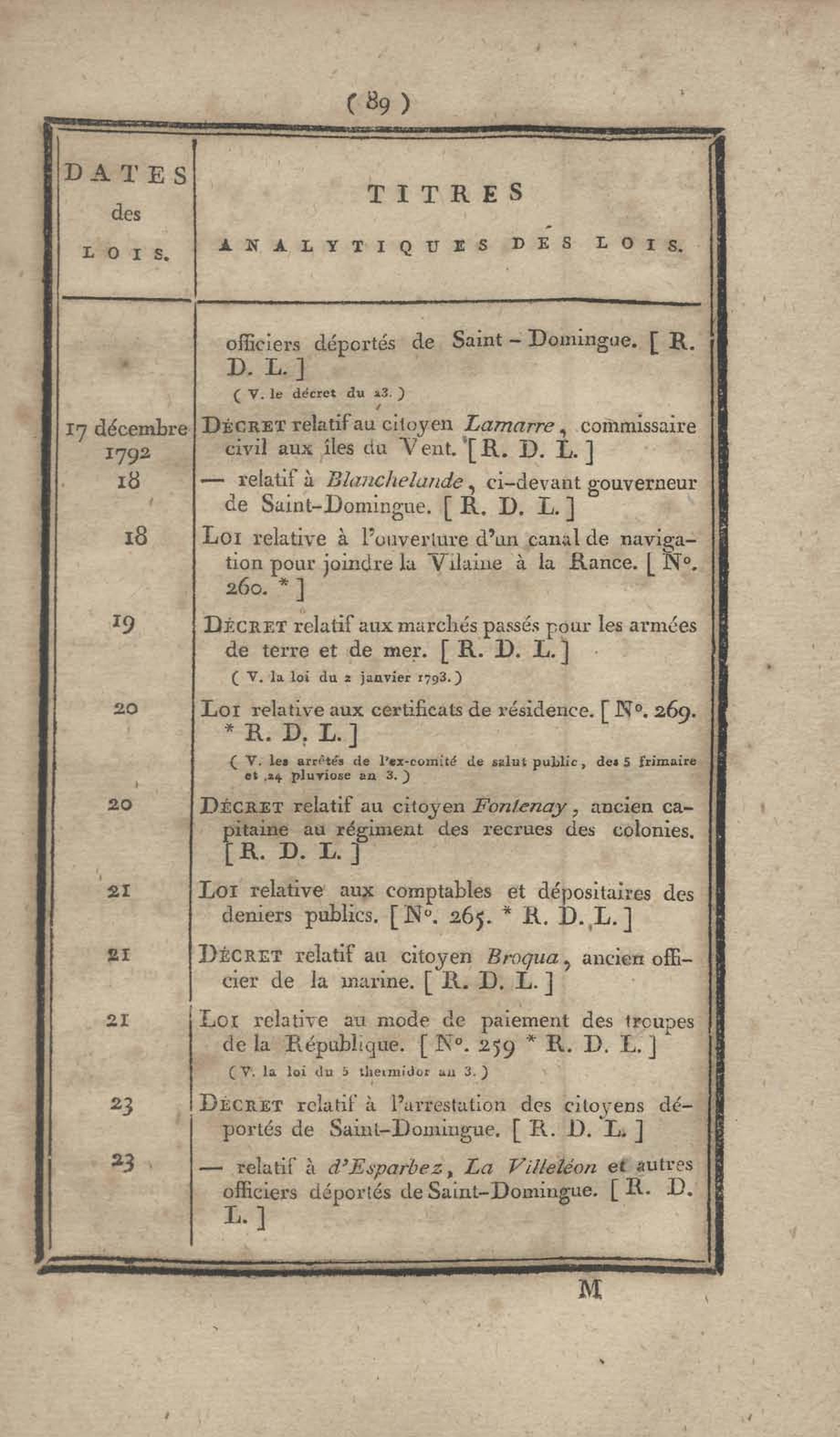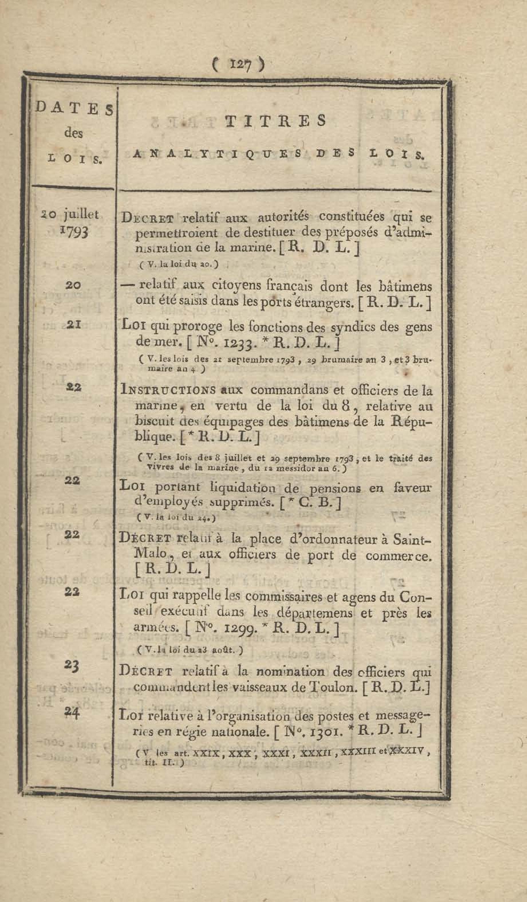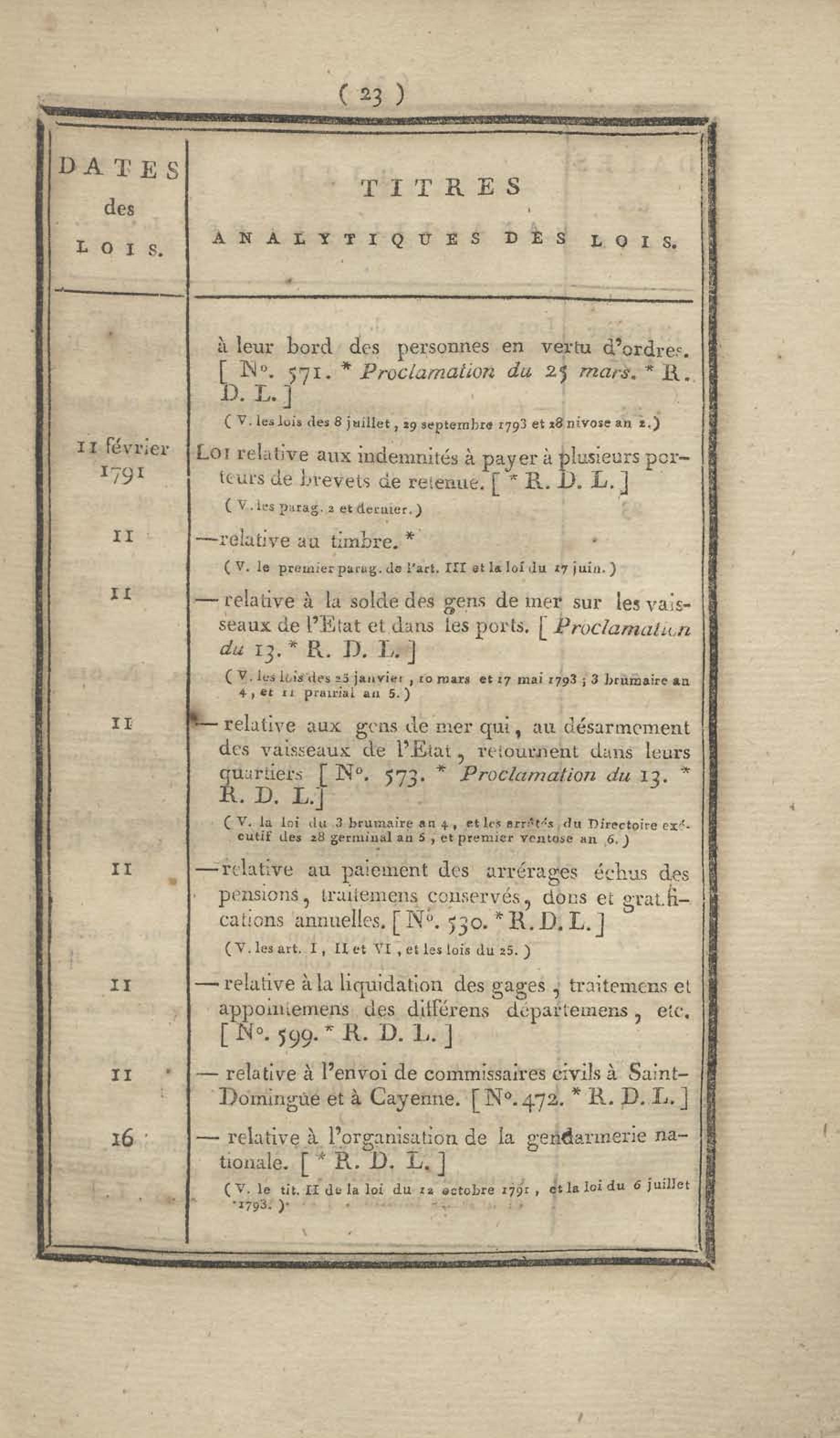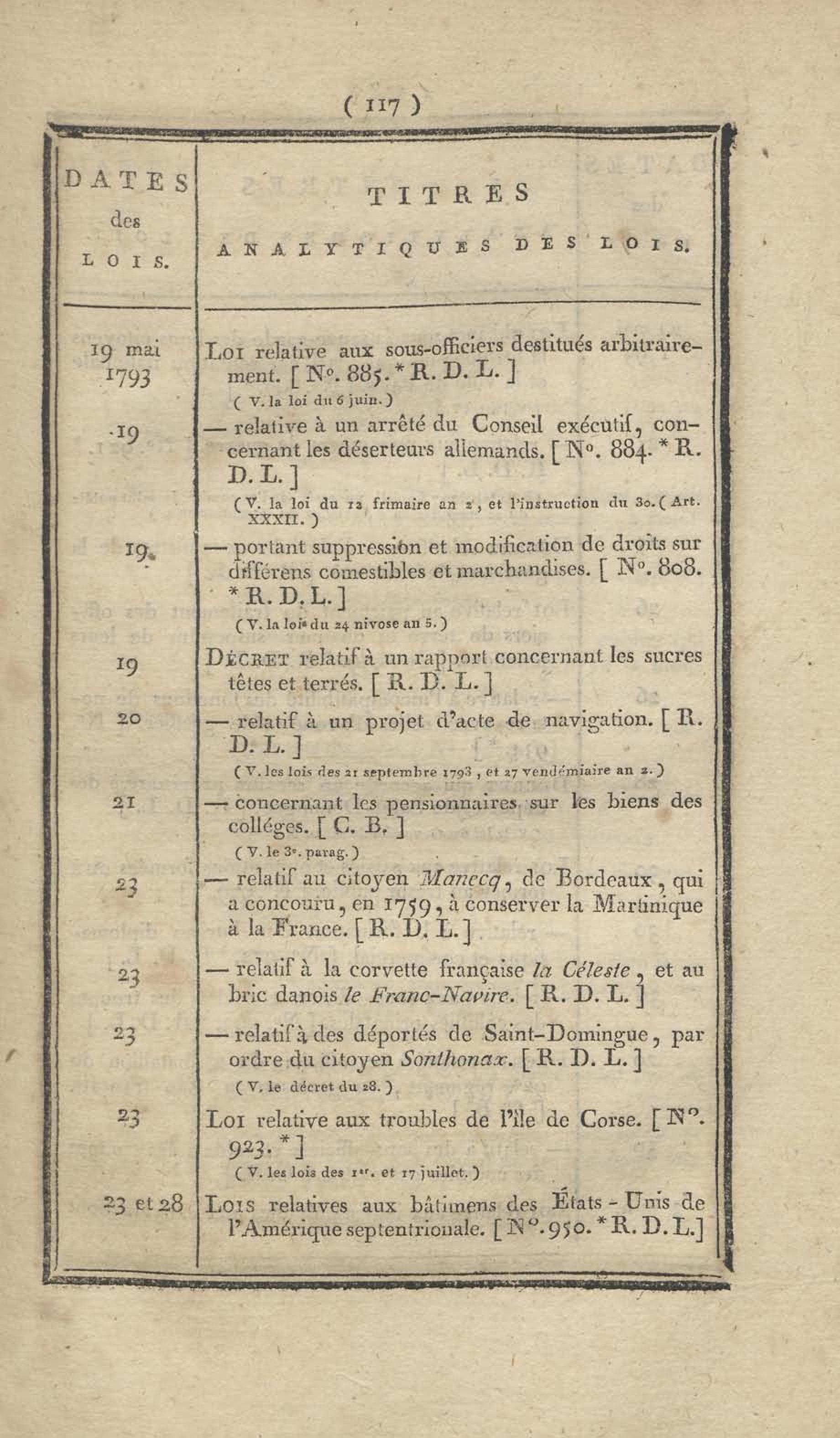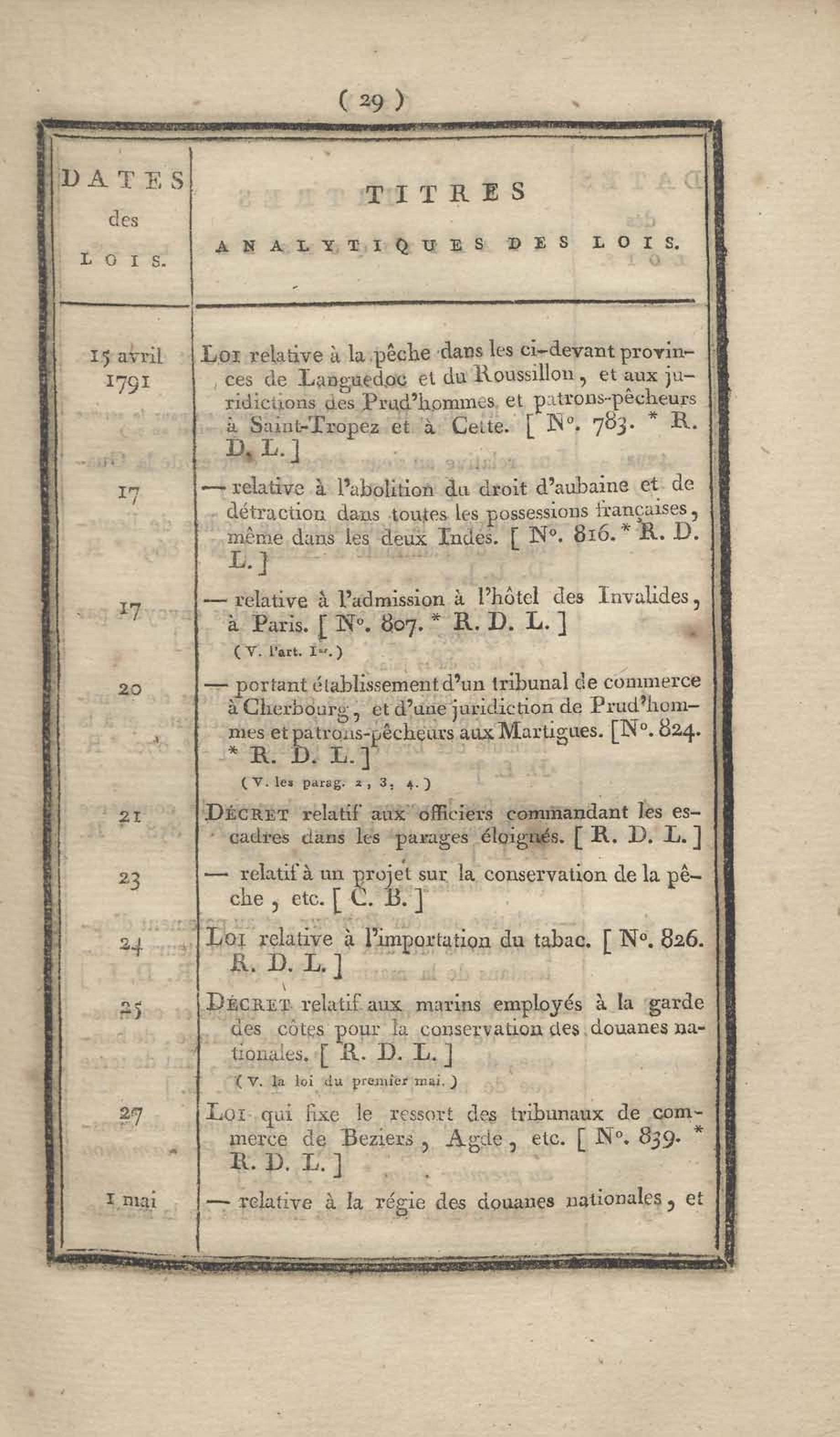 - Table chronologique et analytique des lois rendues depuis 1789 concernant la marine et les colonies