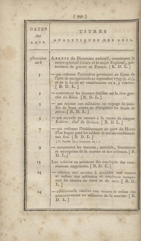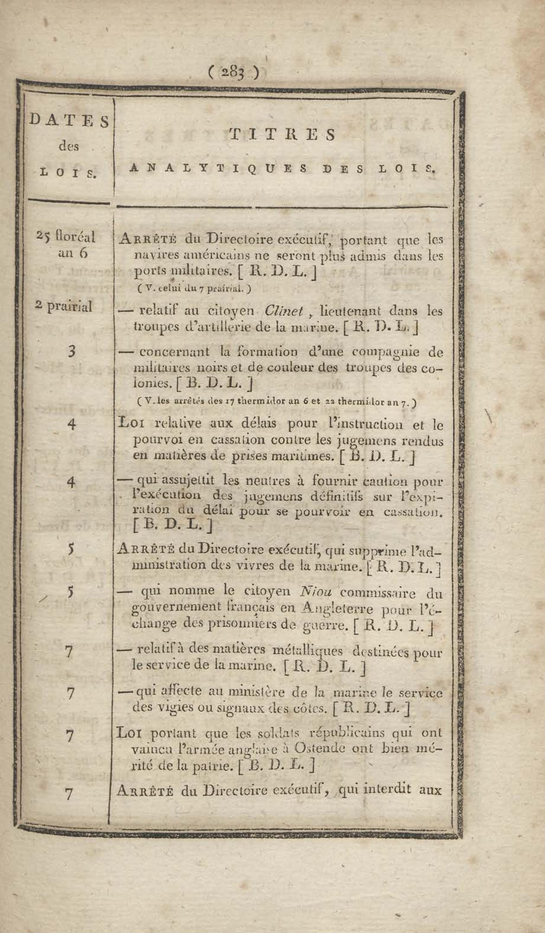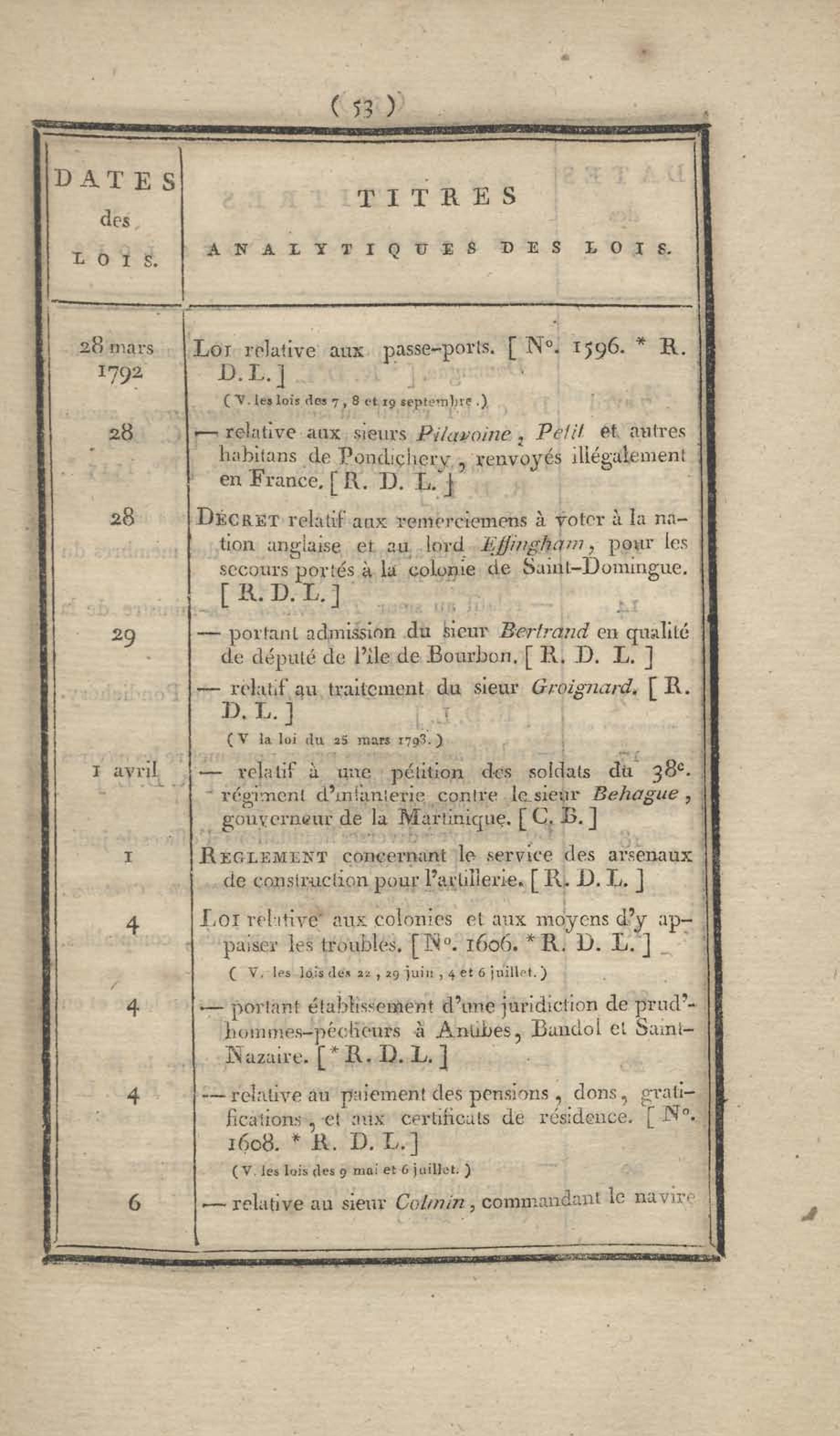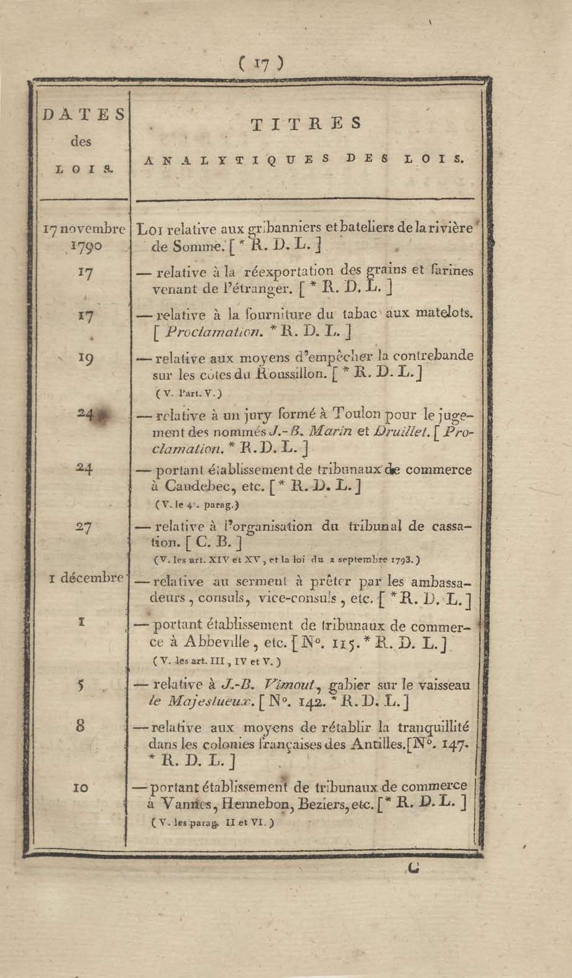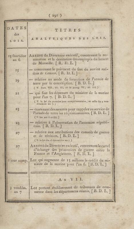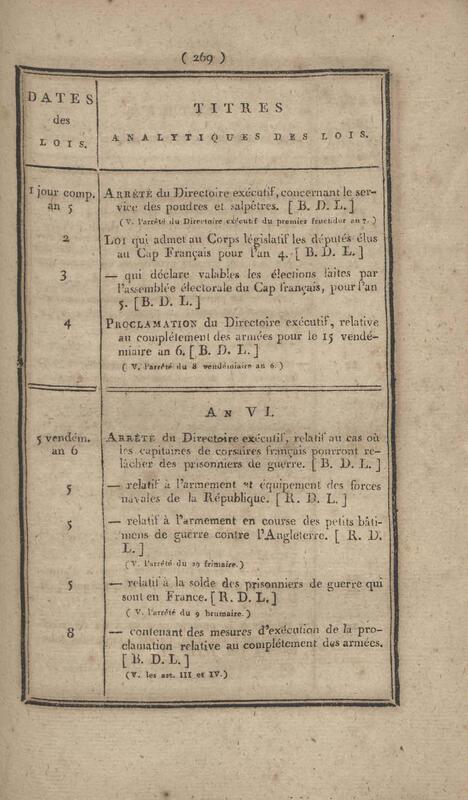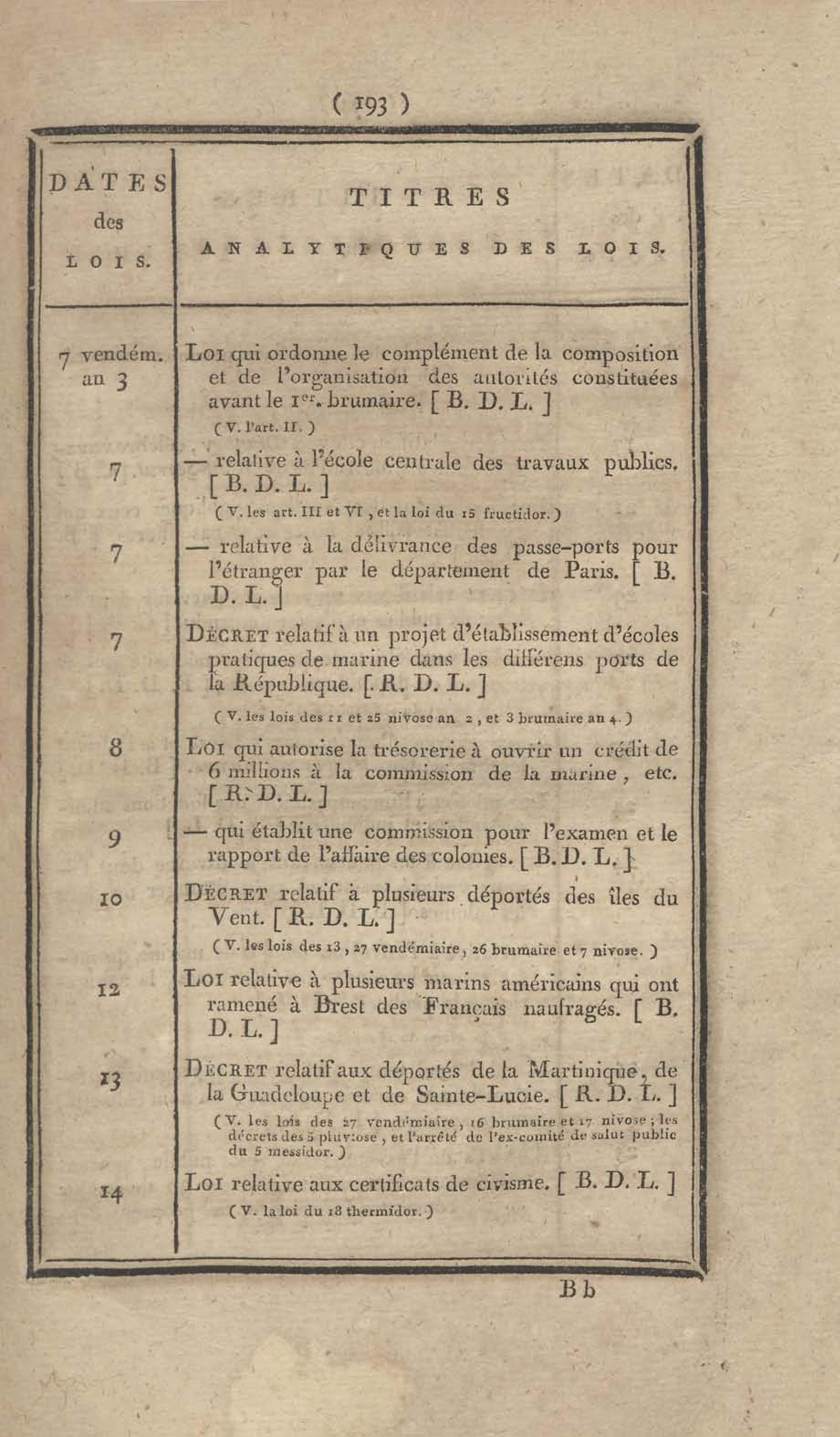 - Table chronologique et analytique des lois rendues depuis 1789 concernant la marine et les colonies