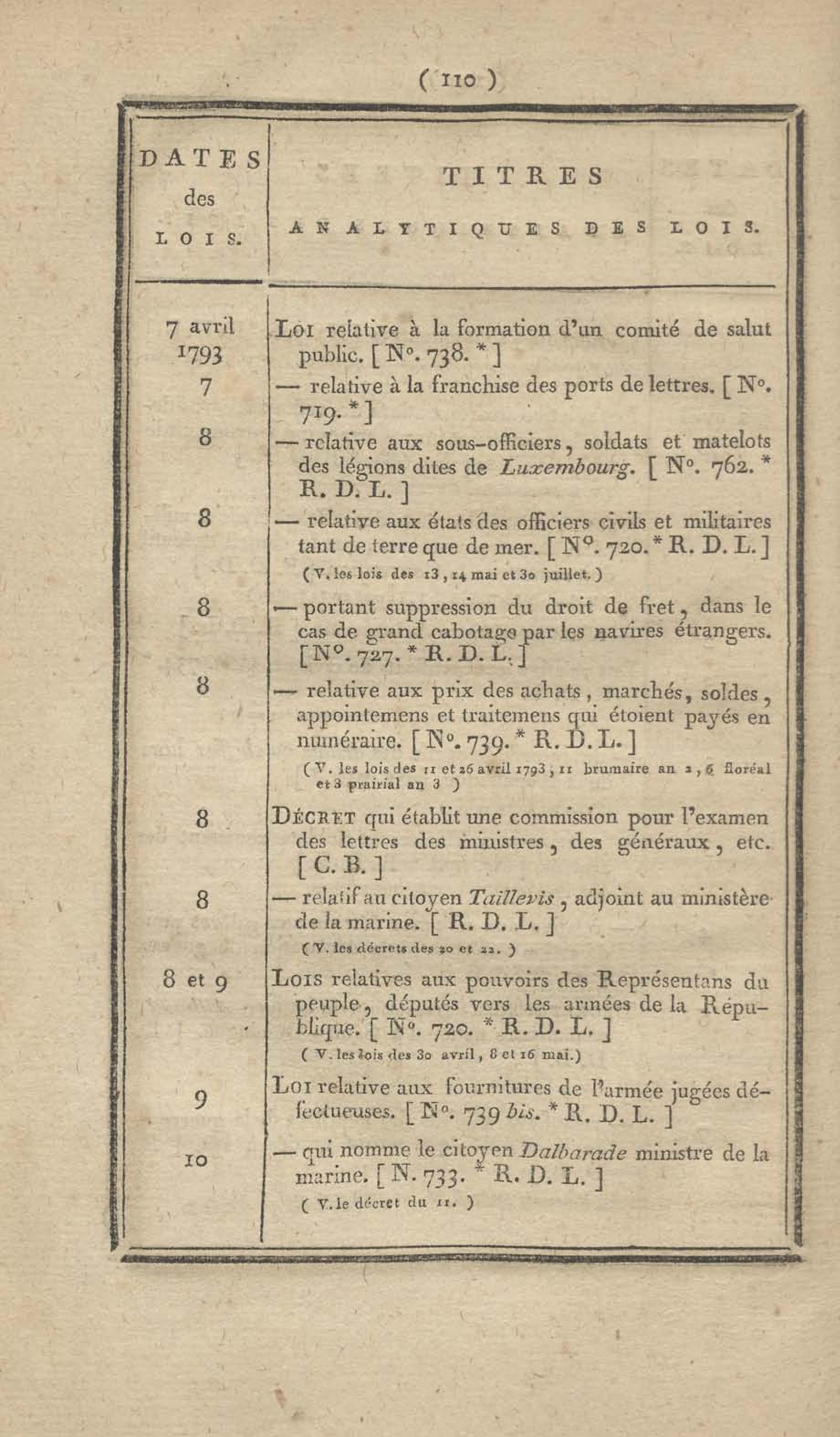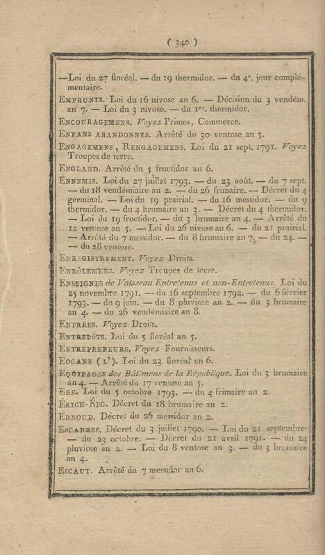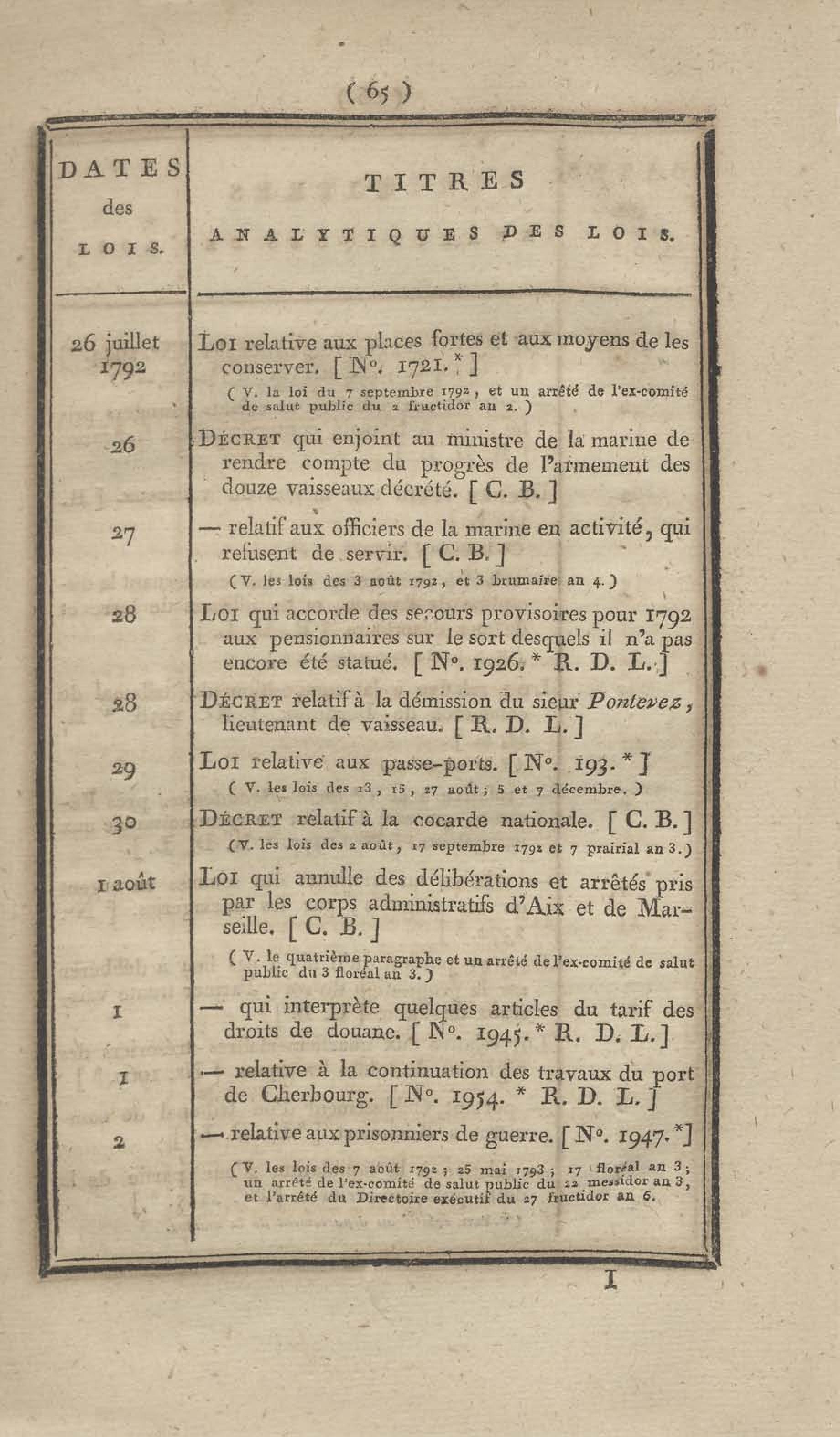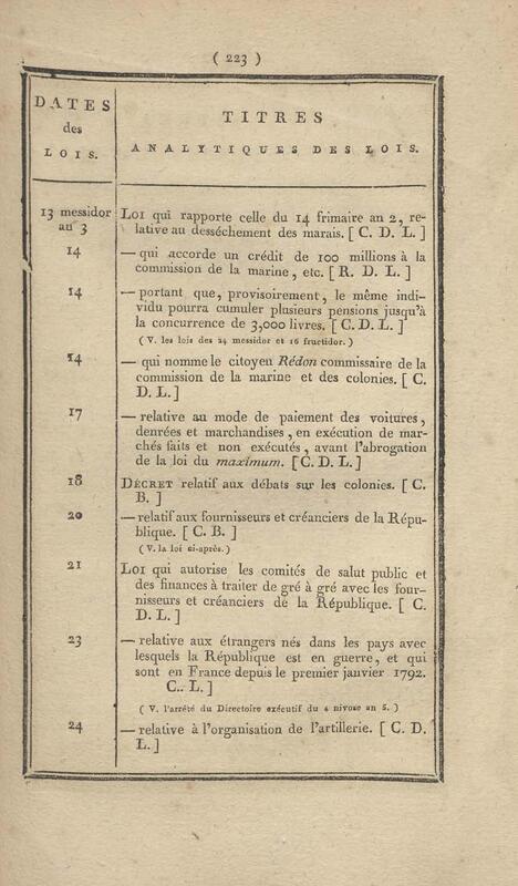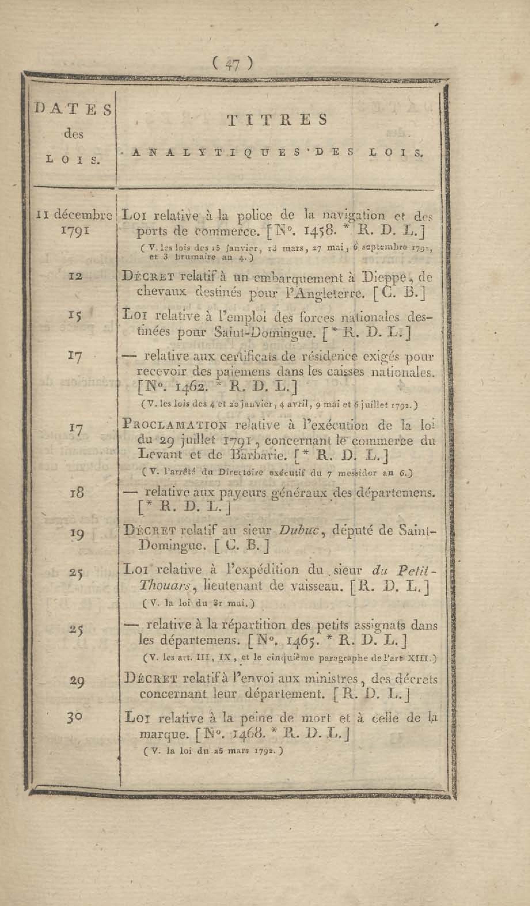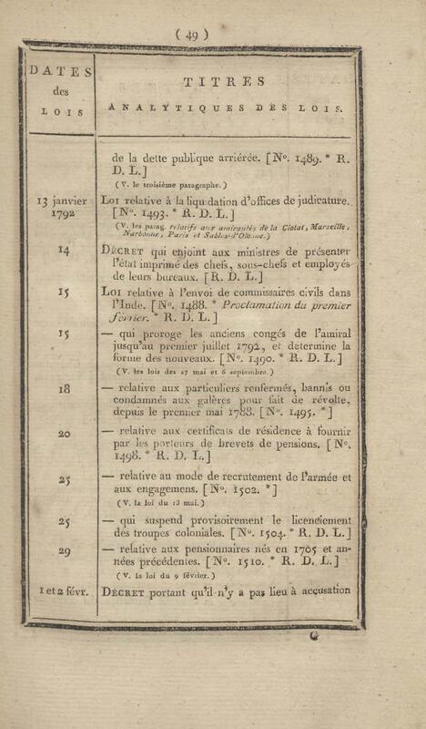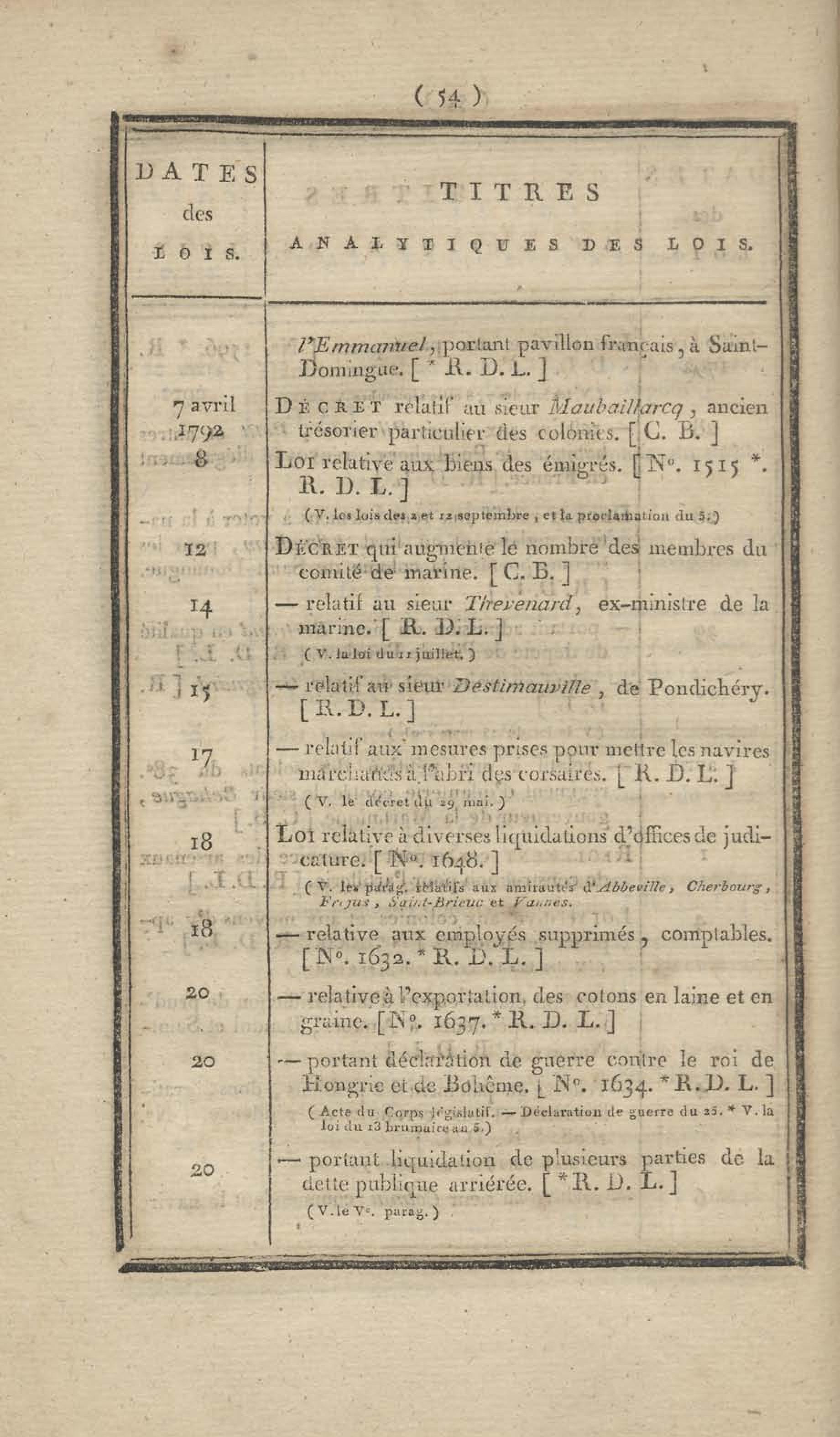 - Table chronologique et analytique des lois rendues depuis 1789 concernant la marine et les colonies