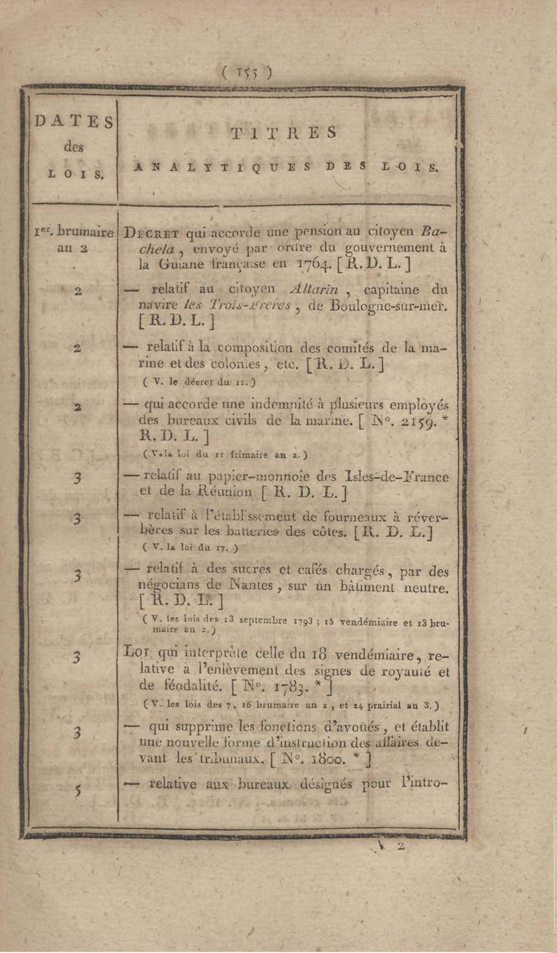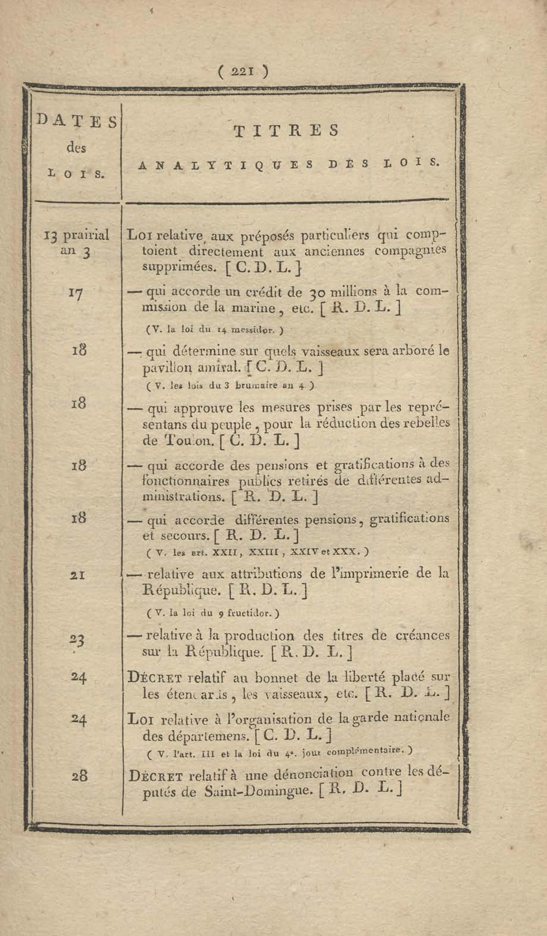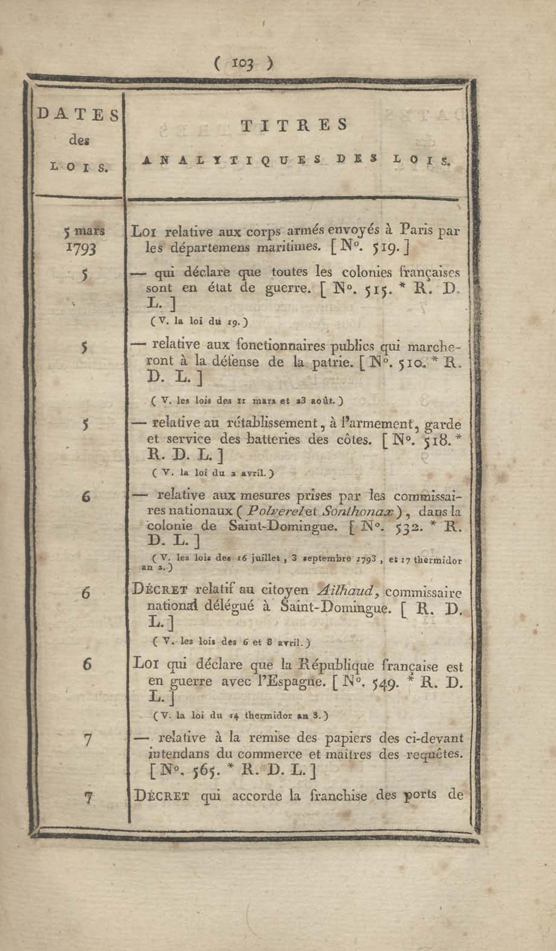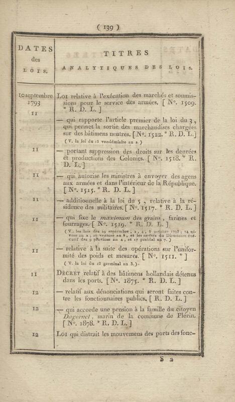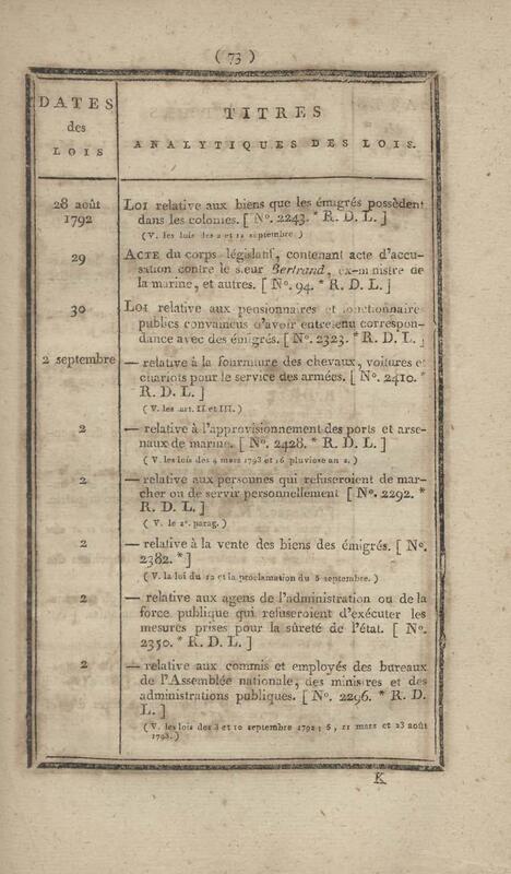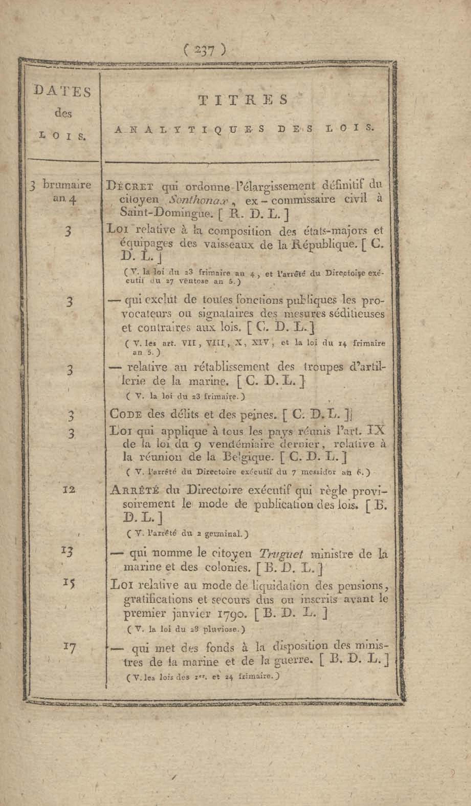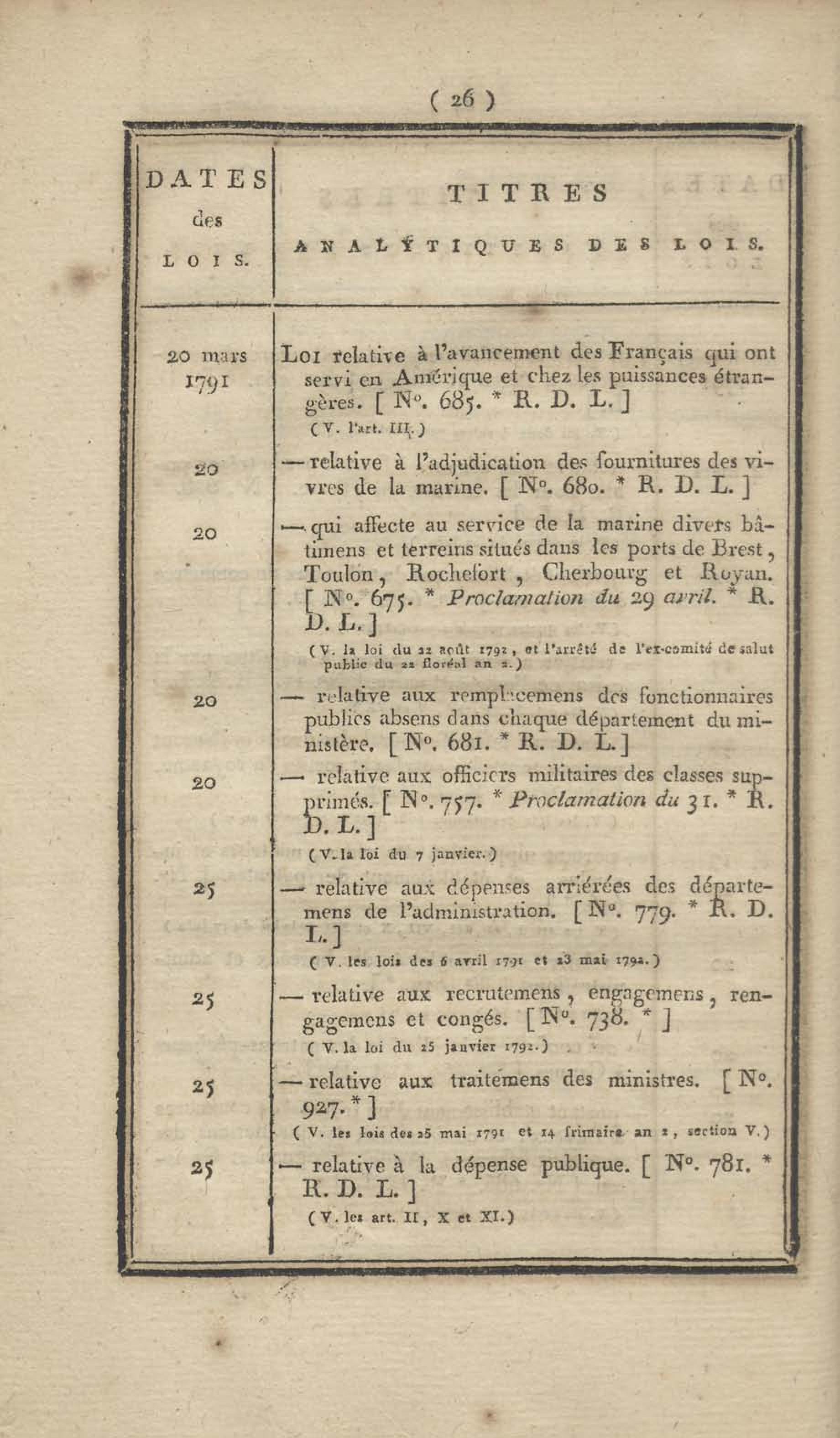 - Table chronologique et analytique des lois rendues depuis 1789 concernant la marine et les colonies