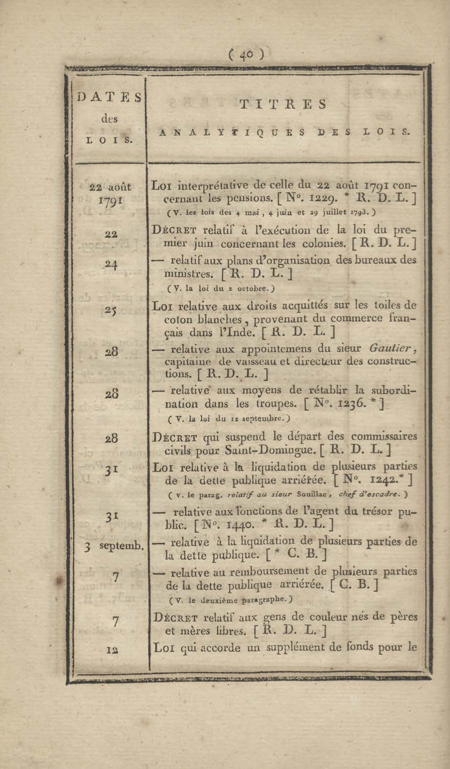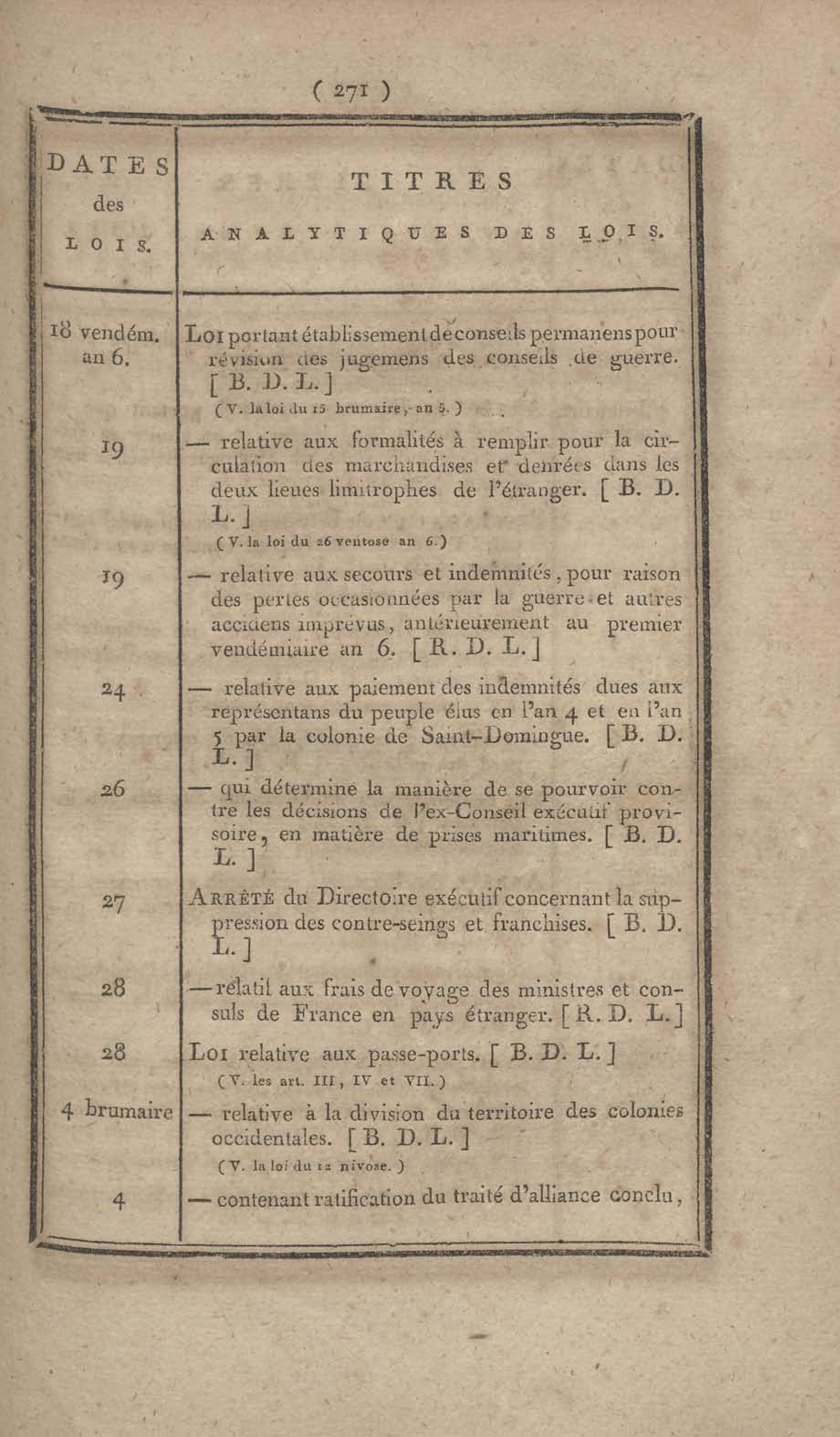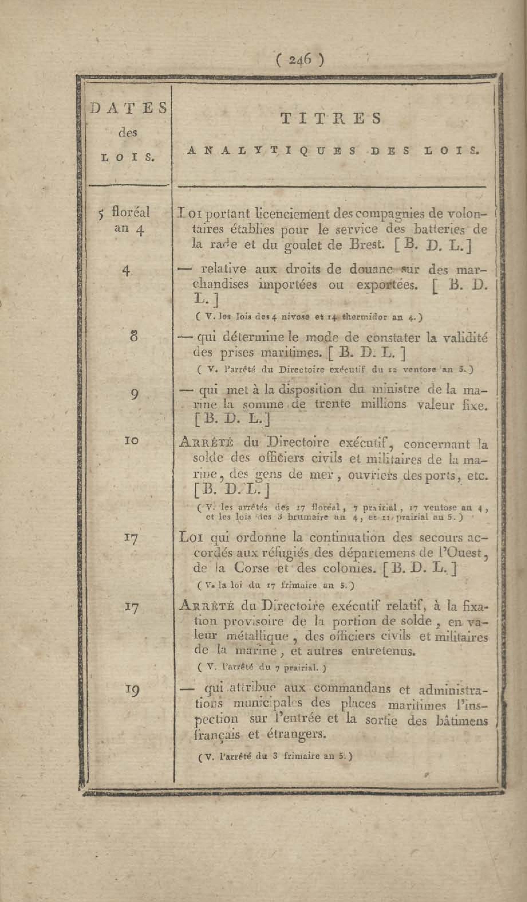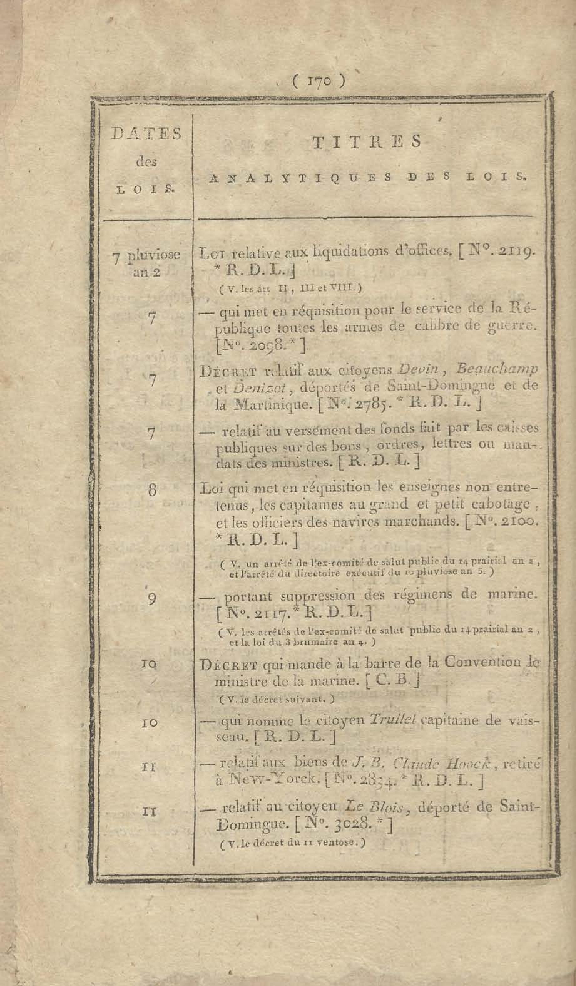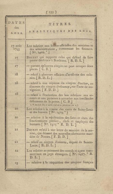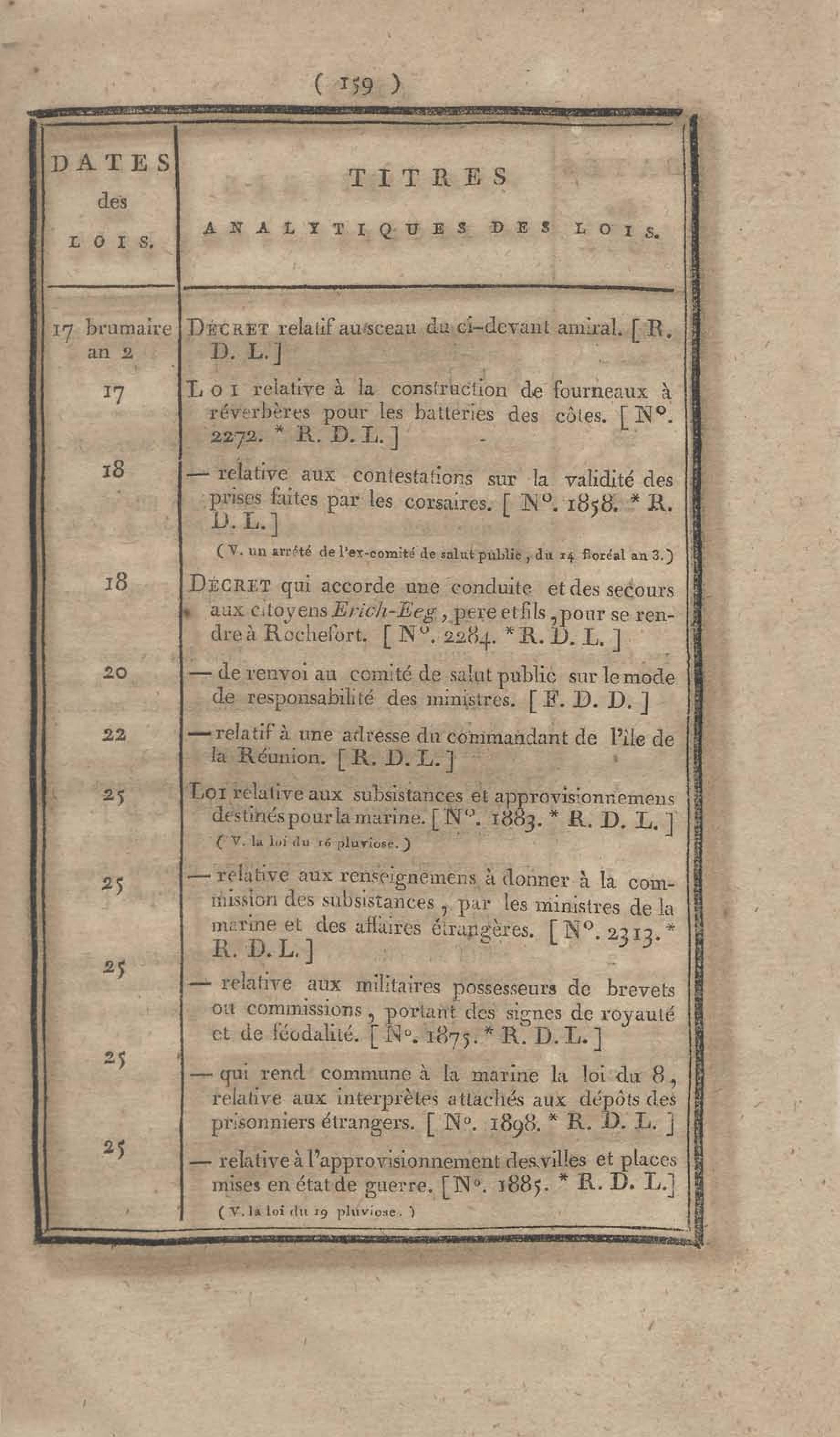 - Table chronologique et analytique des lois rendues depuis 1789 concernant la marine et les colonies