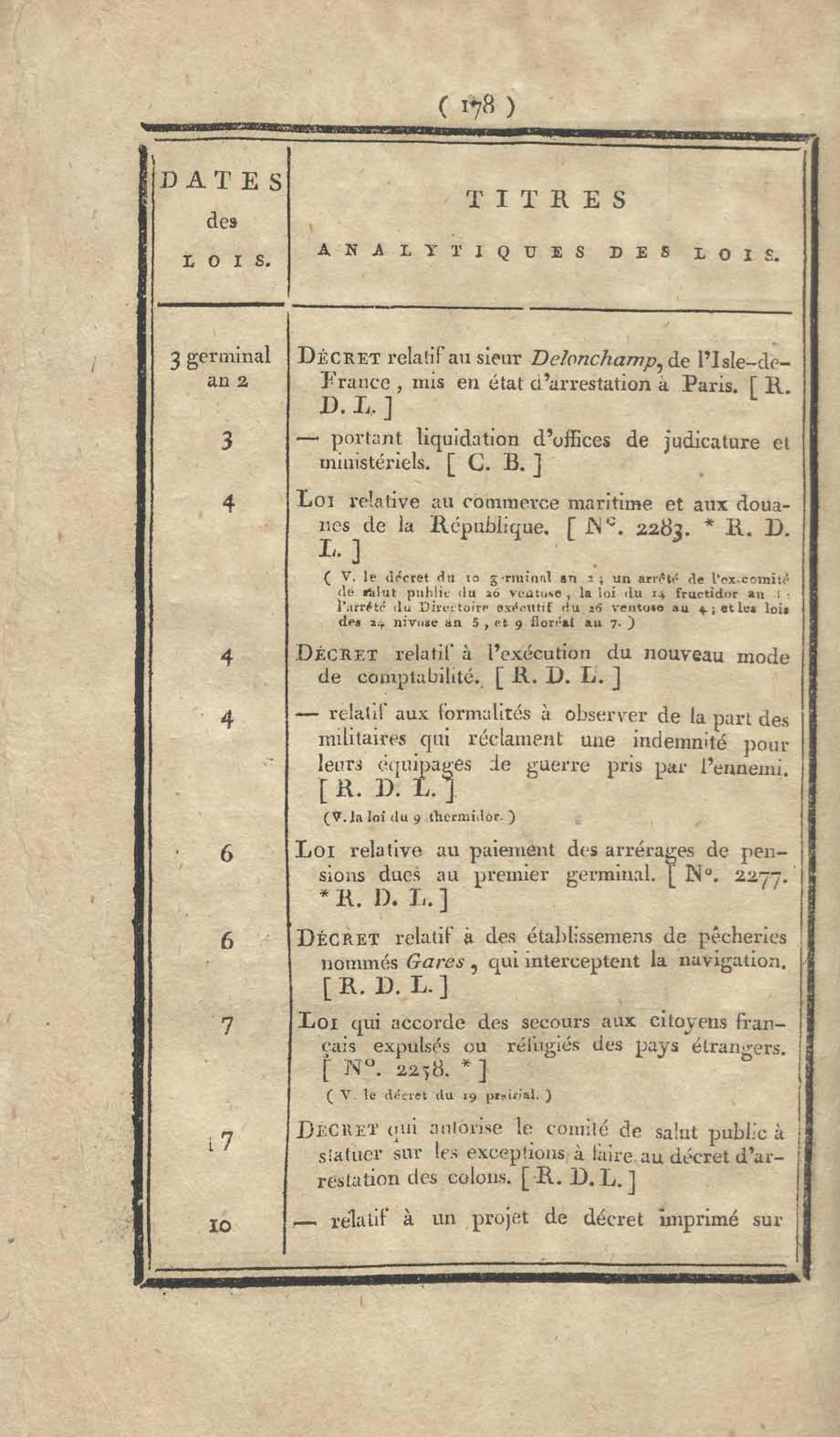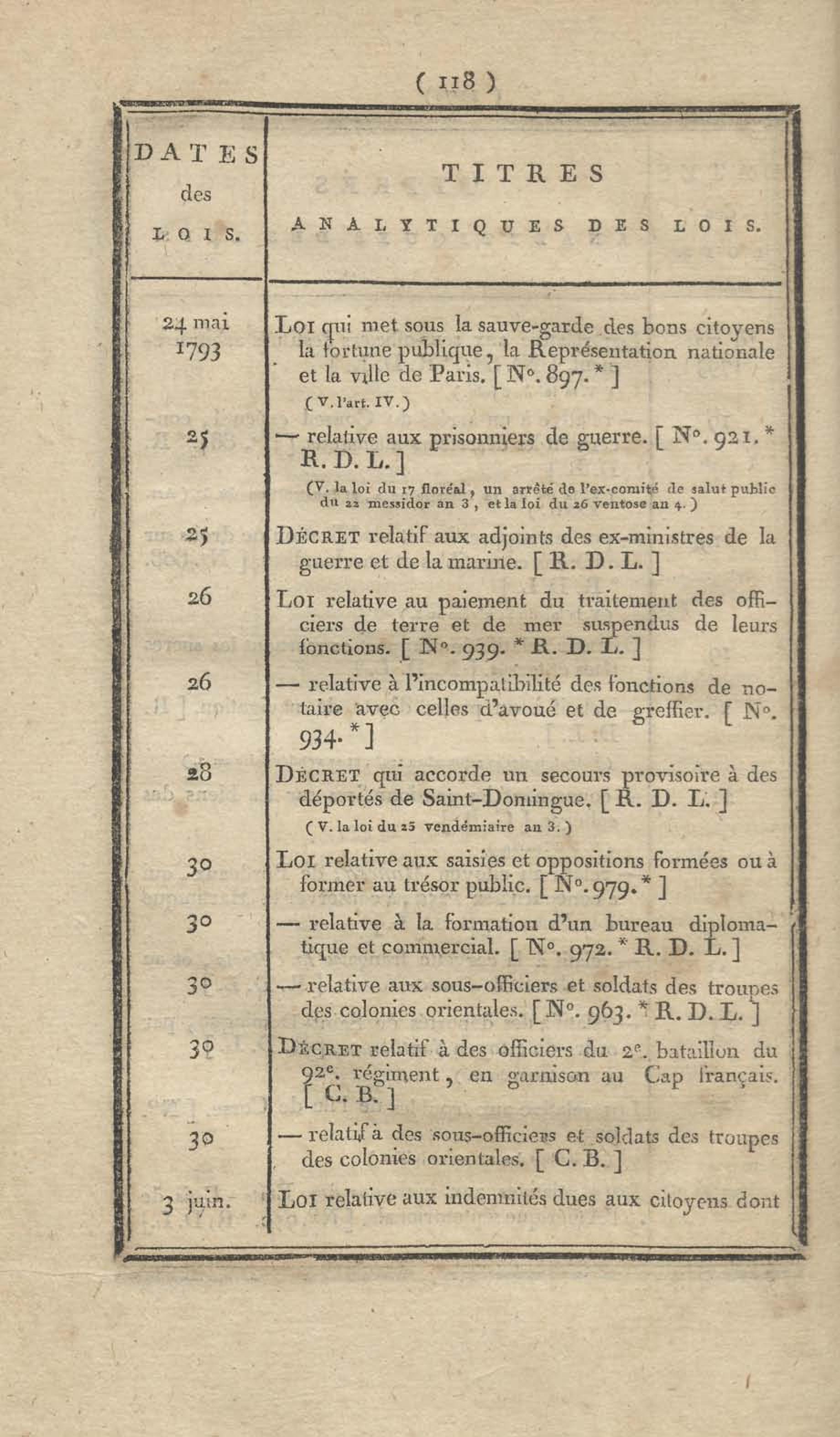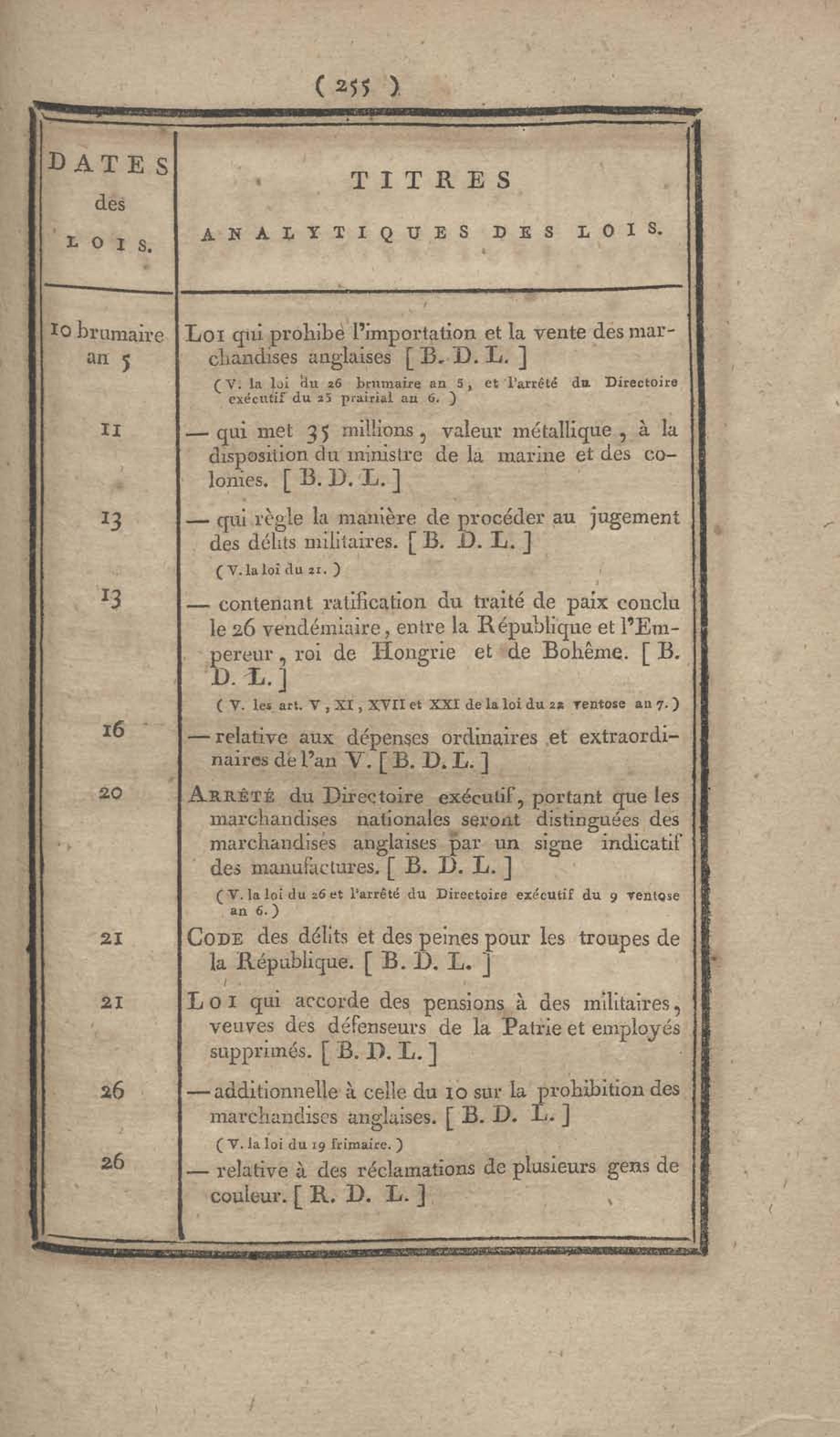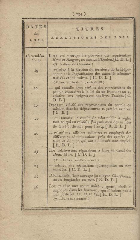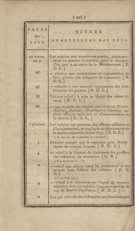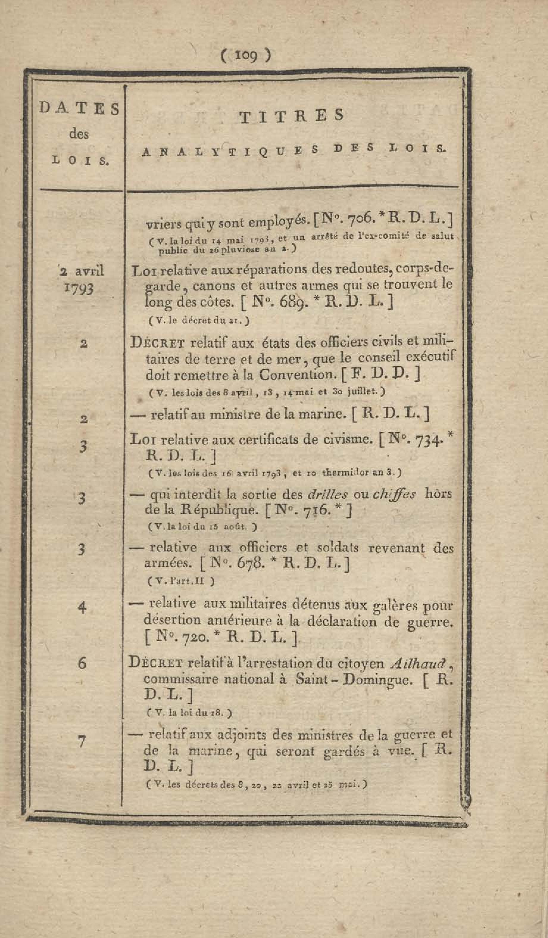- Table chronologique et analytique des lois rendues depuis 1789 concernant la marine et les colonies