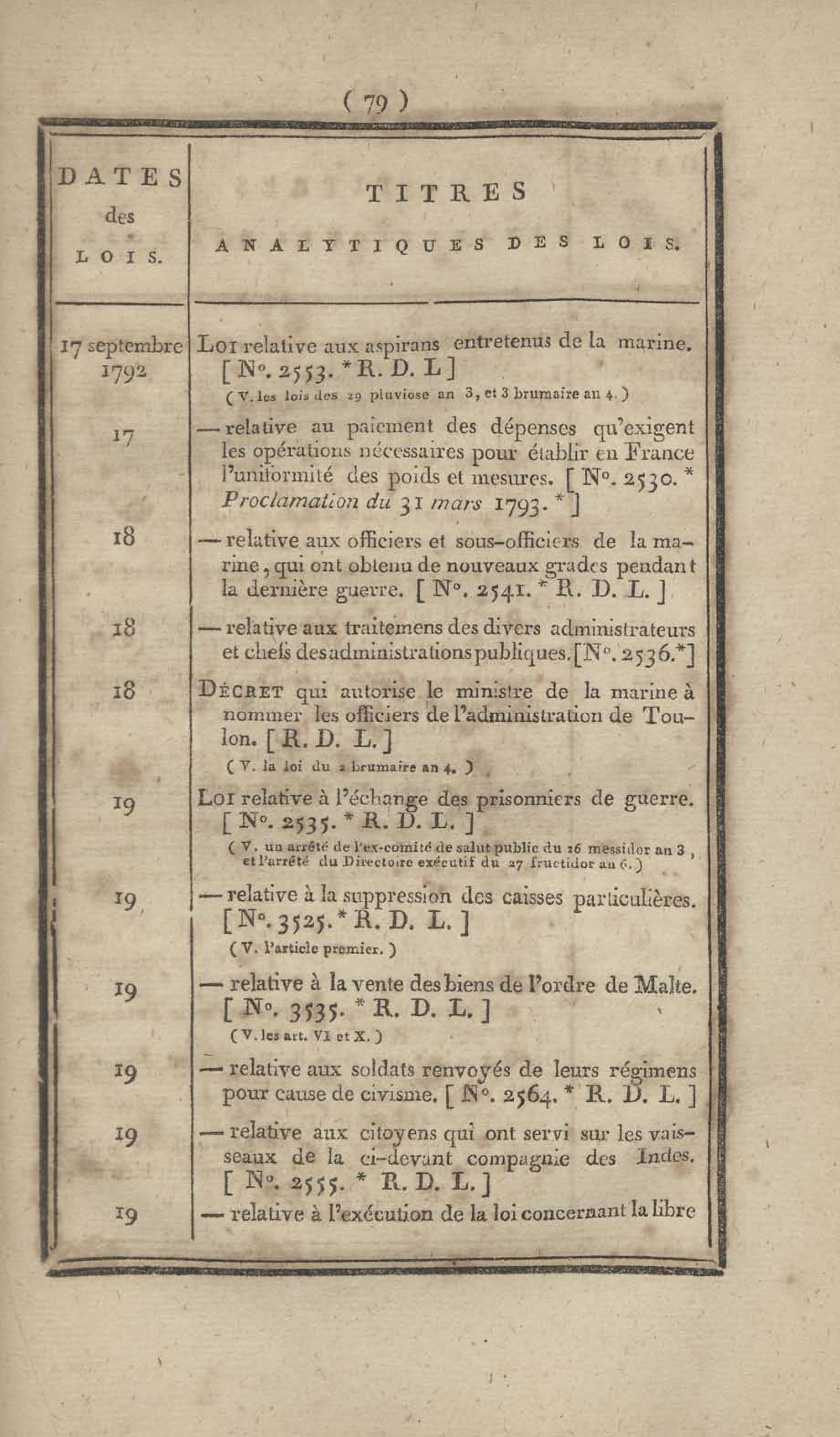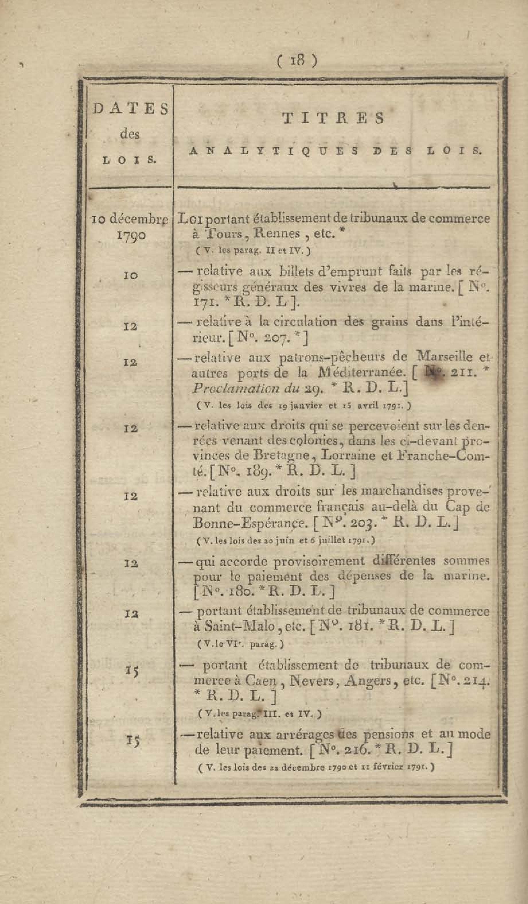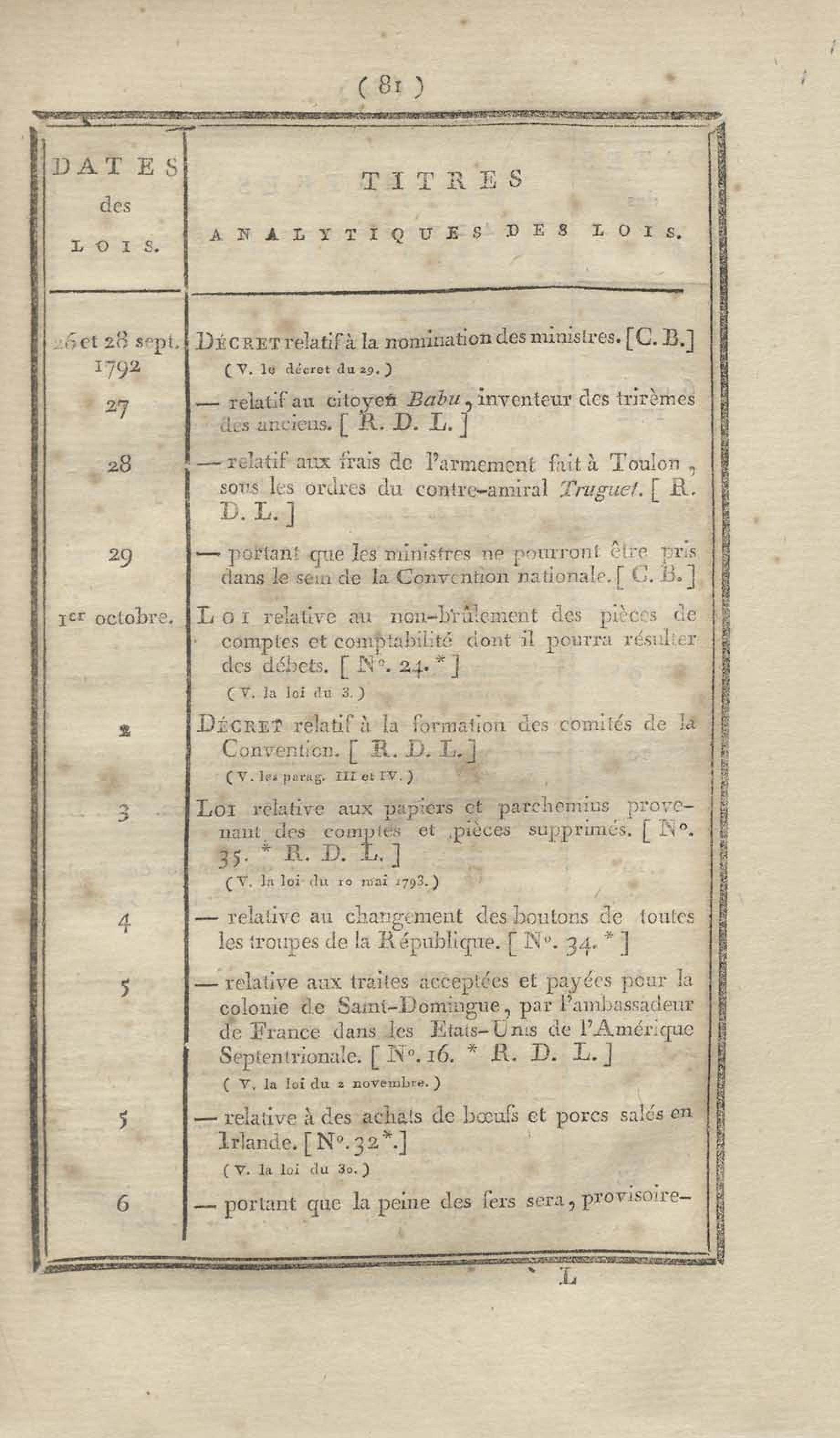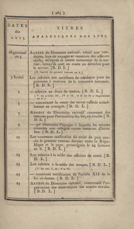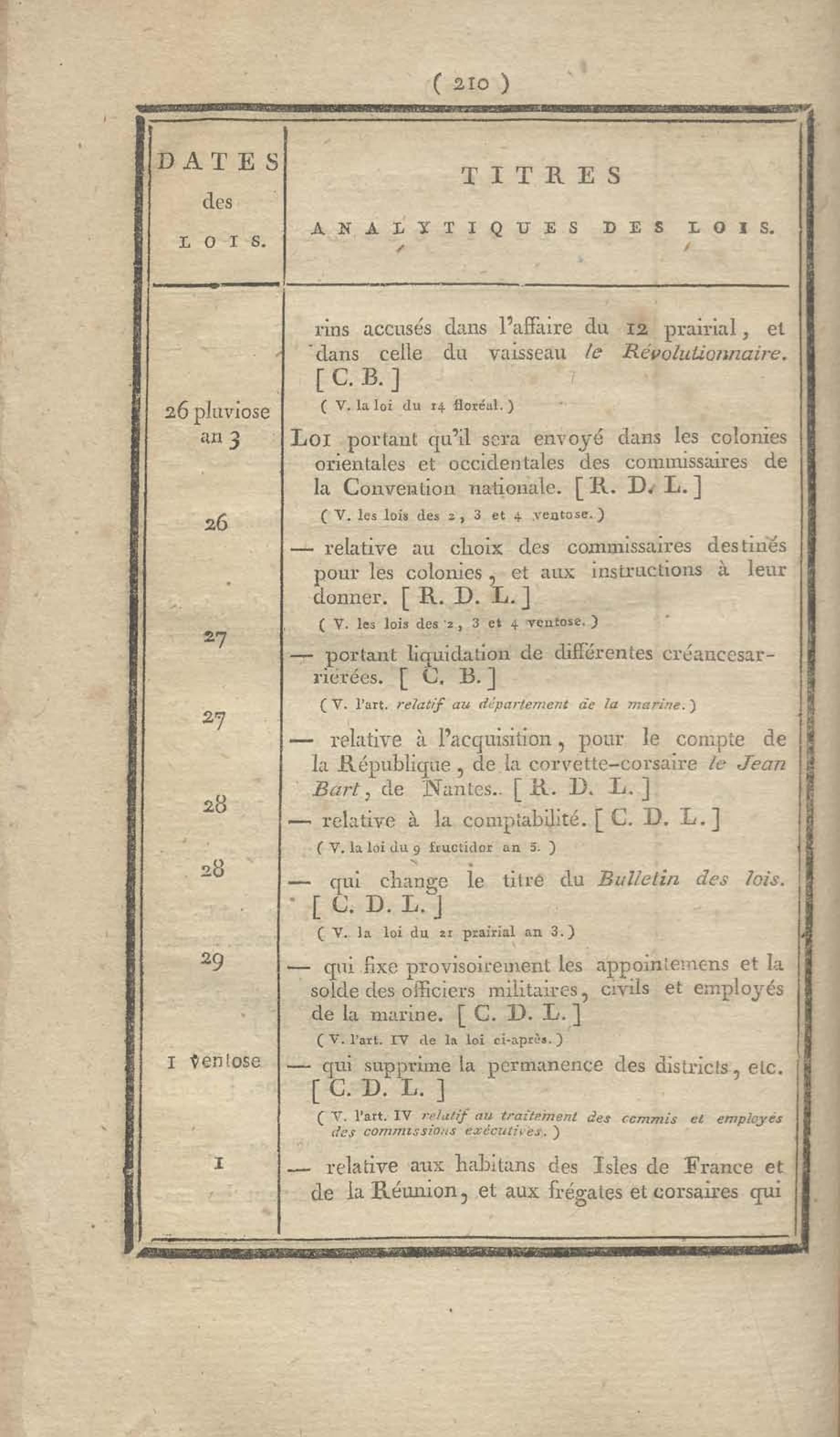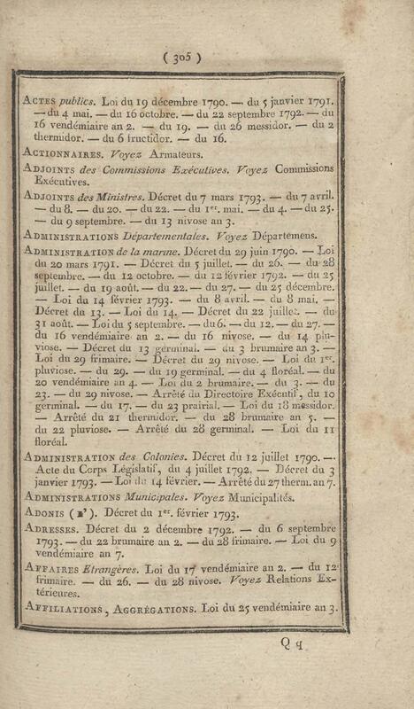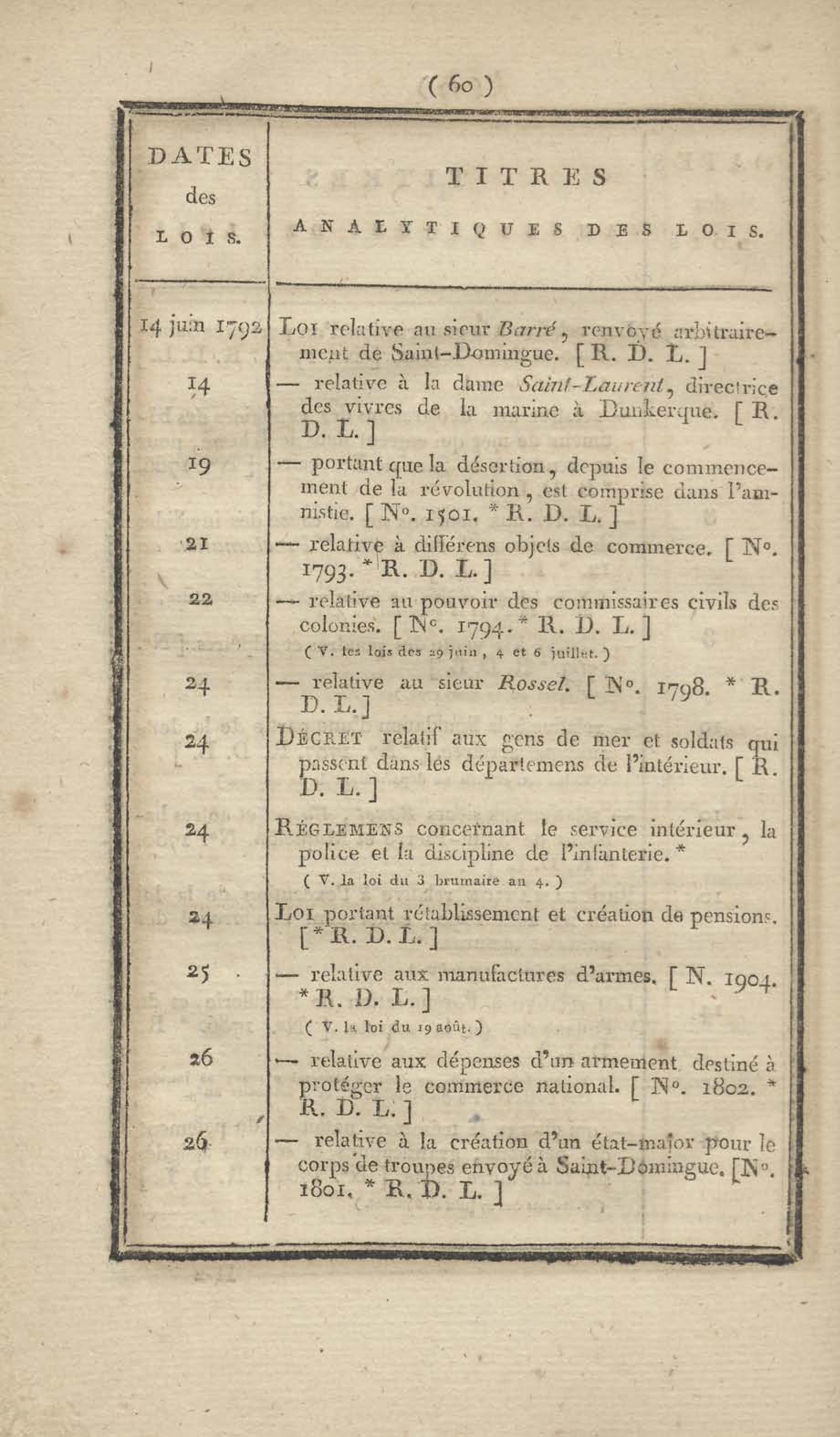 - Table chronologique et analytique des lois rendues depuis 1789 concernant la marine et les colonies