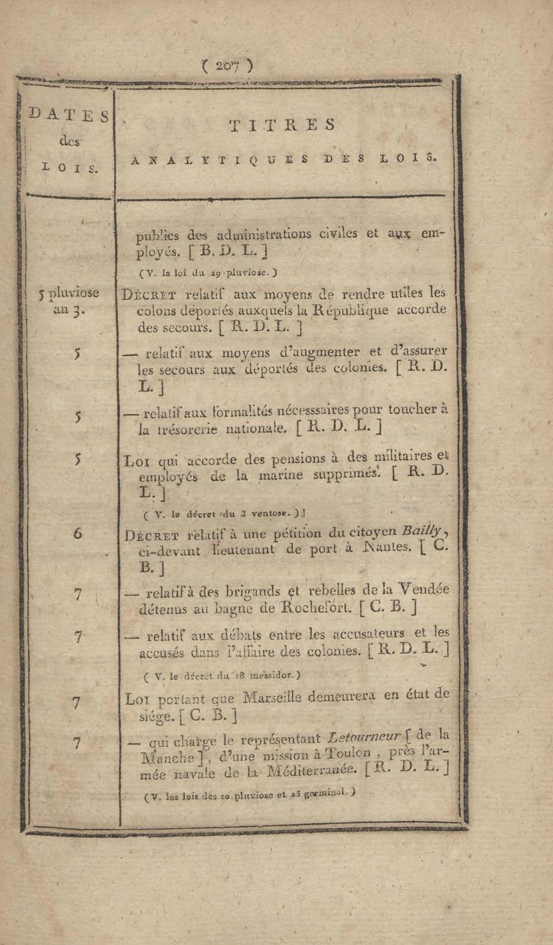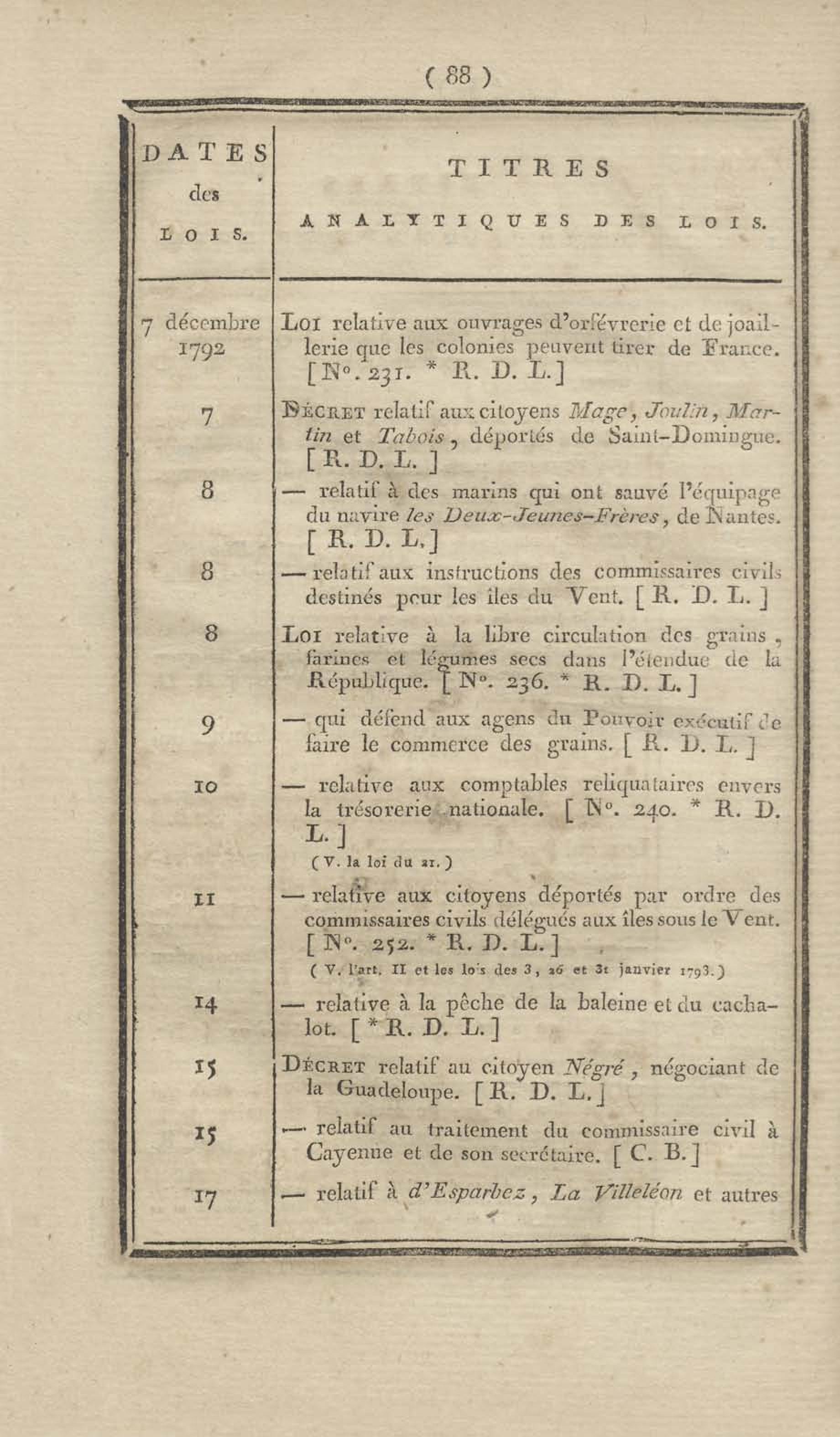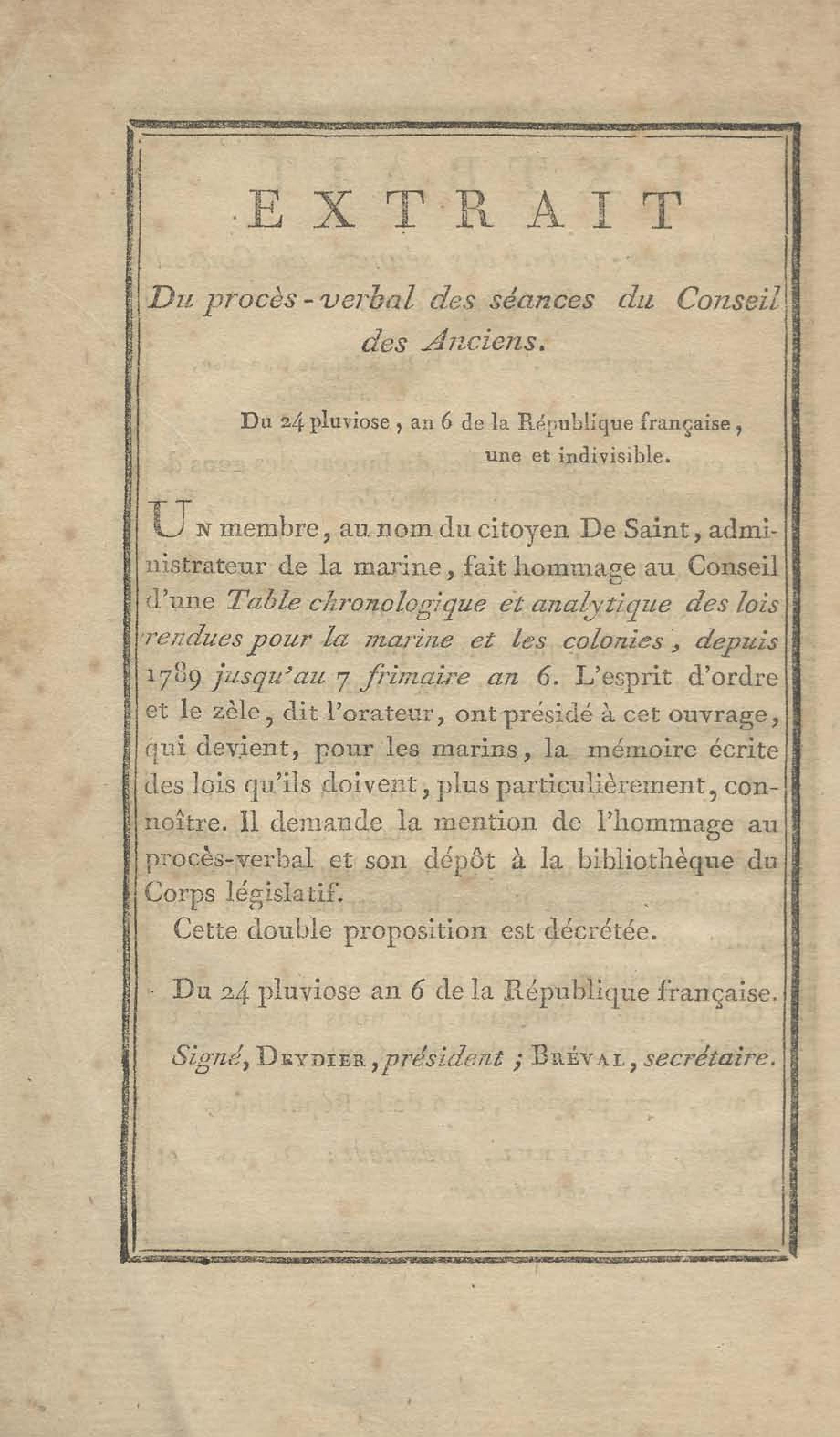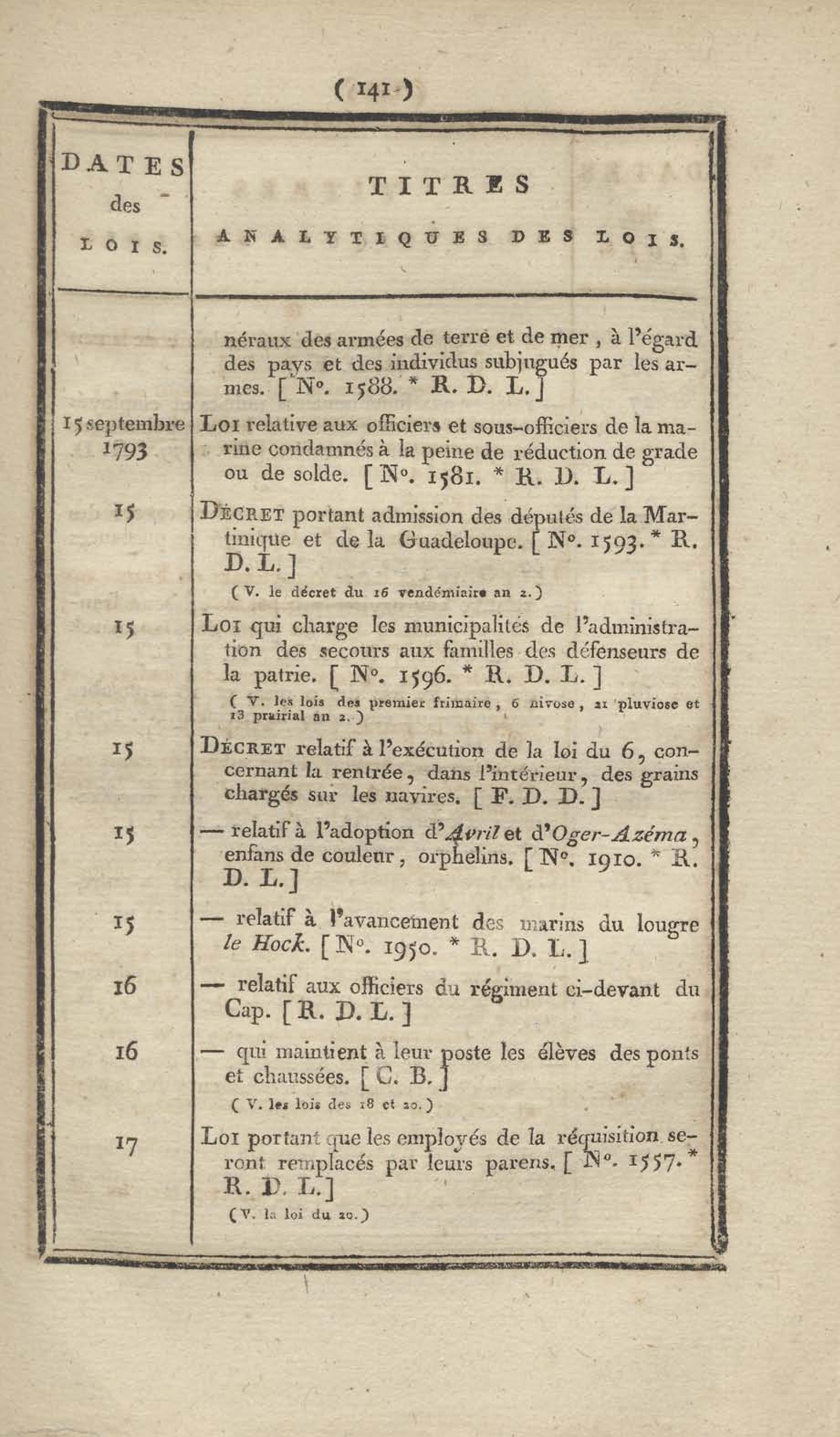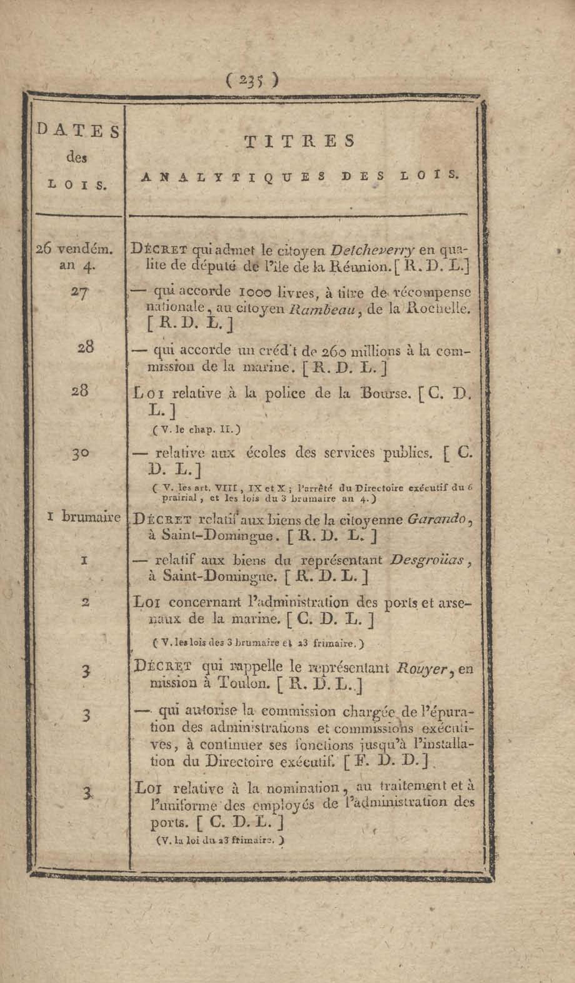 - Table chronologique et analytique des lois rendues depuis 1789 concernant la marine et les colonies