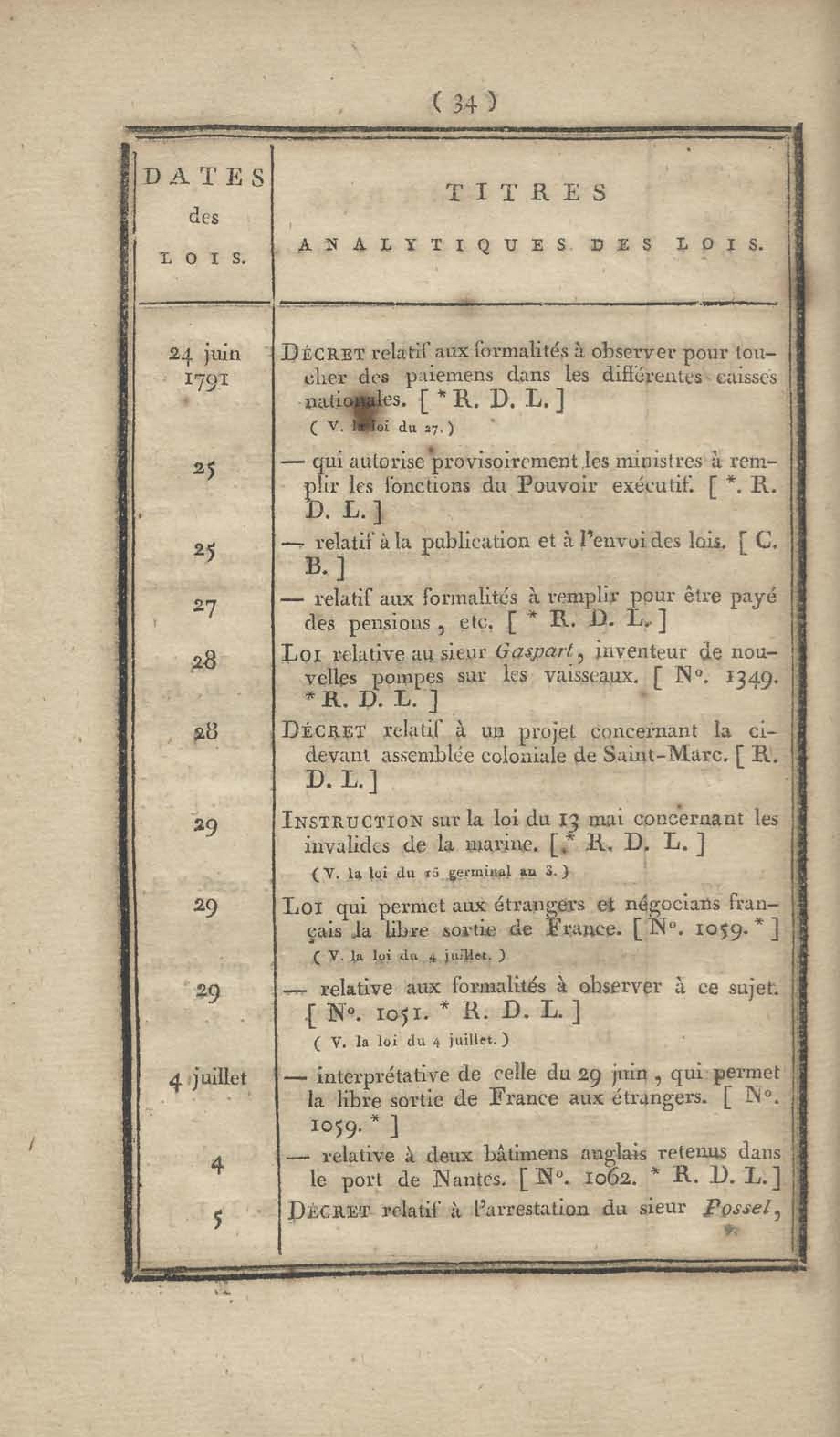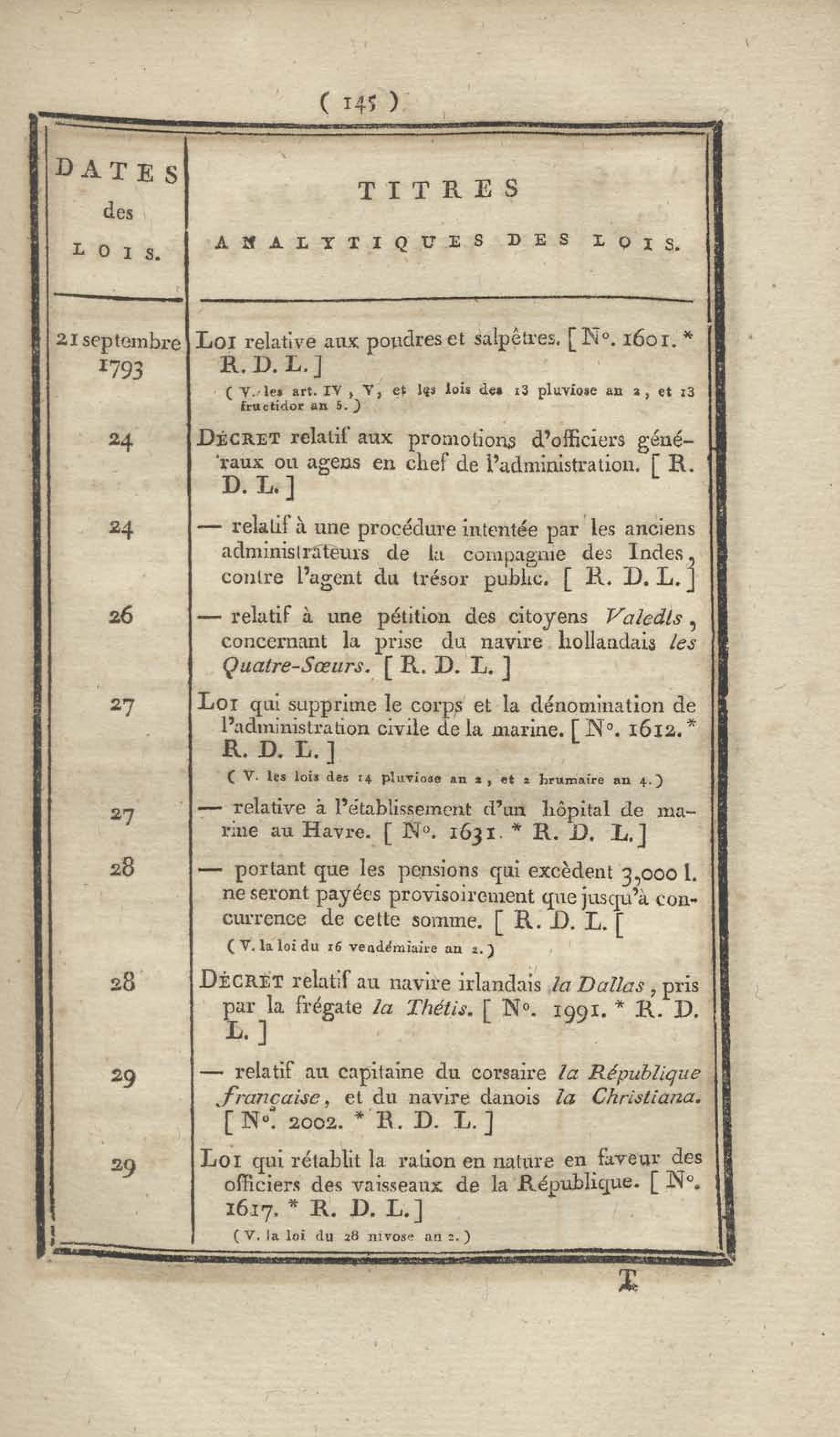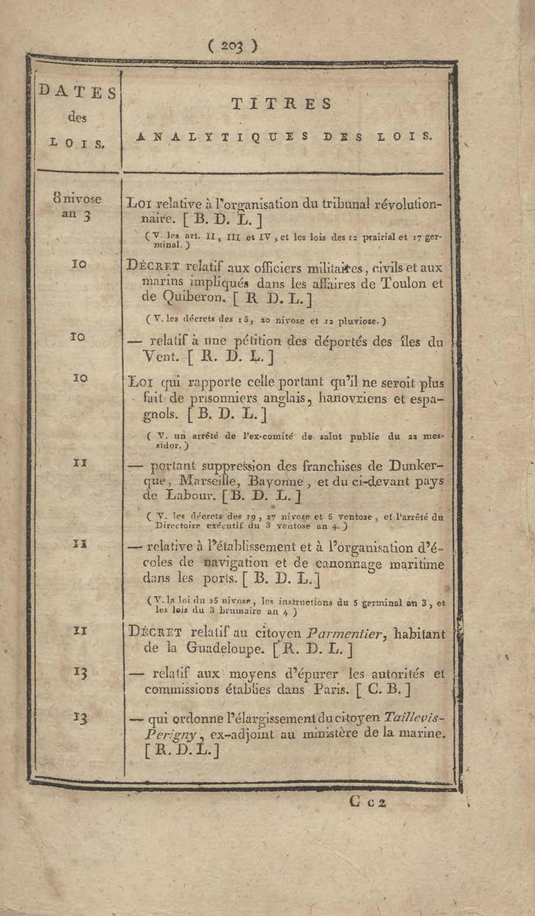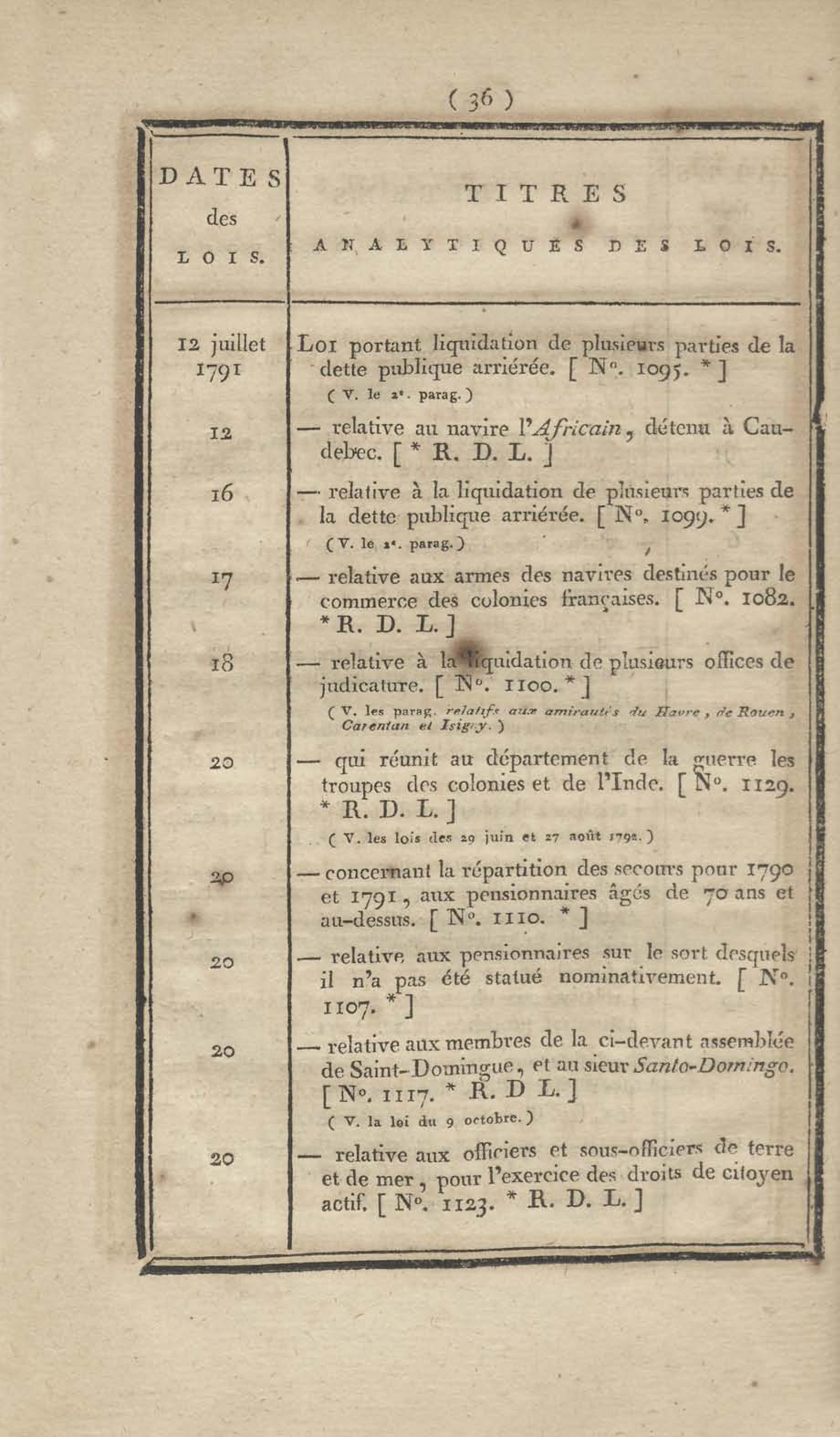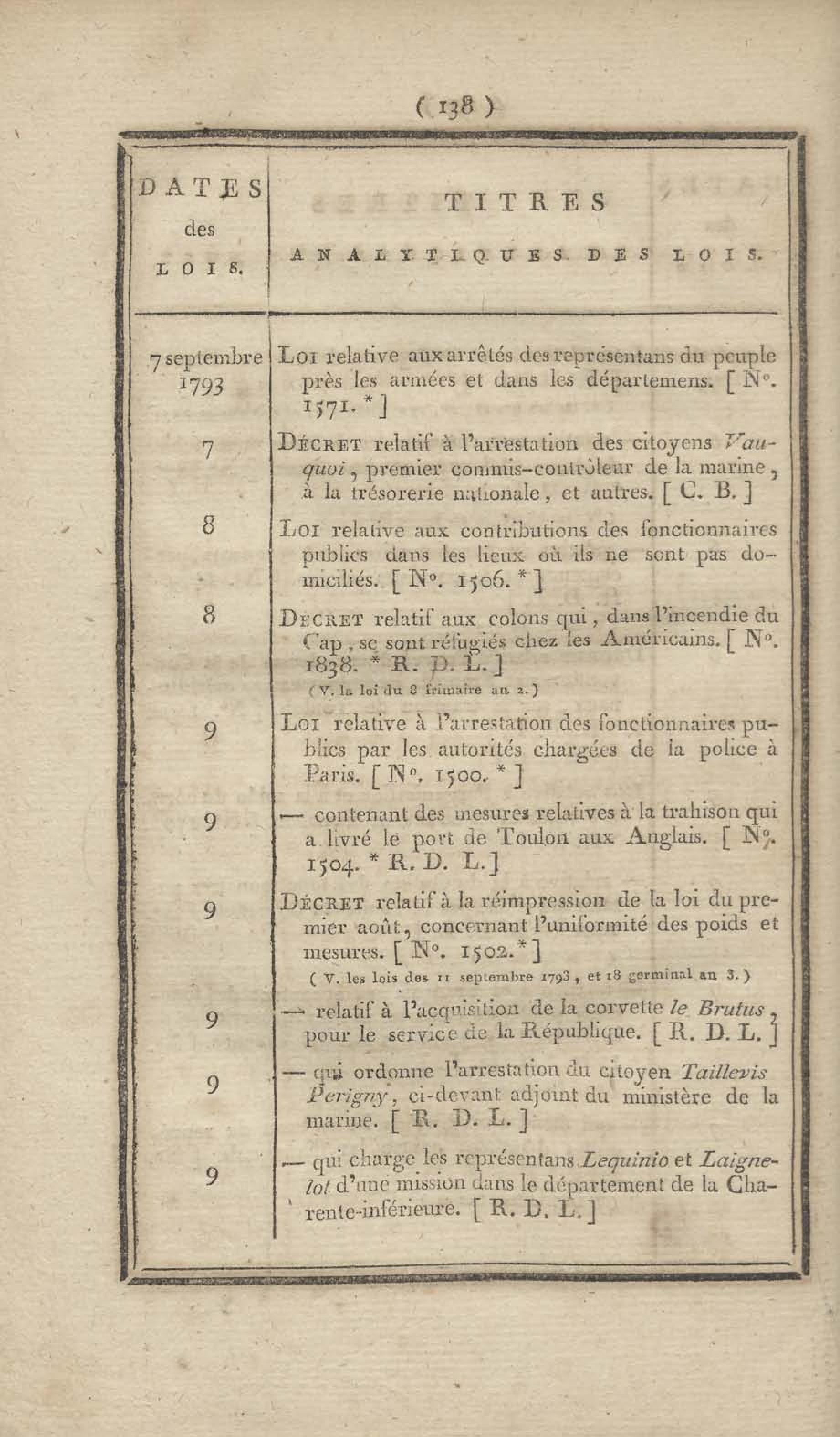 - Table chronologique et analytique des lois rendues depuis 1789 concernant la marine et les colonies