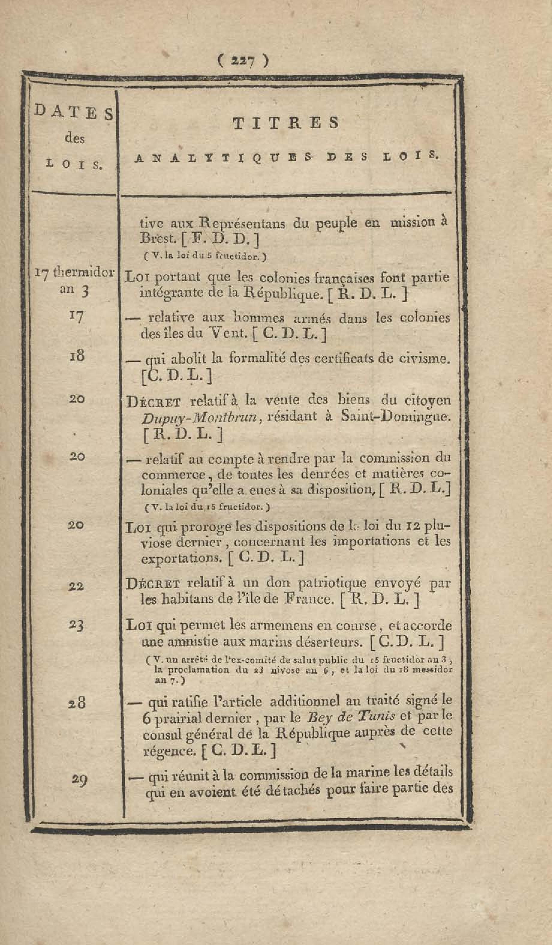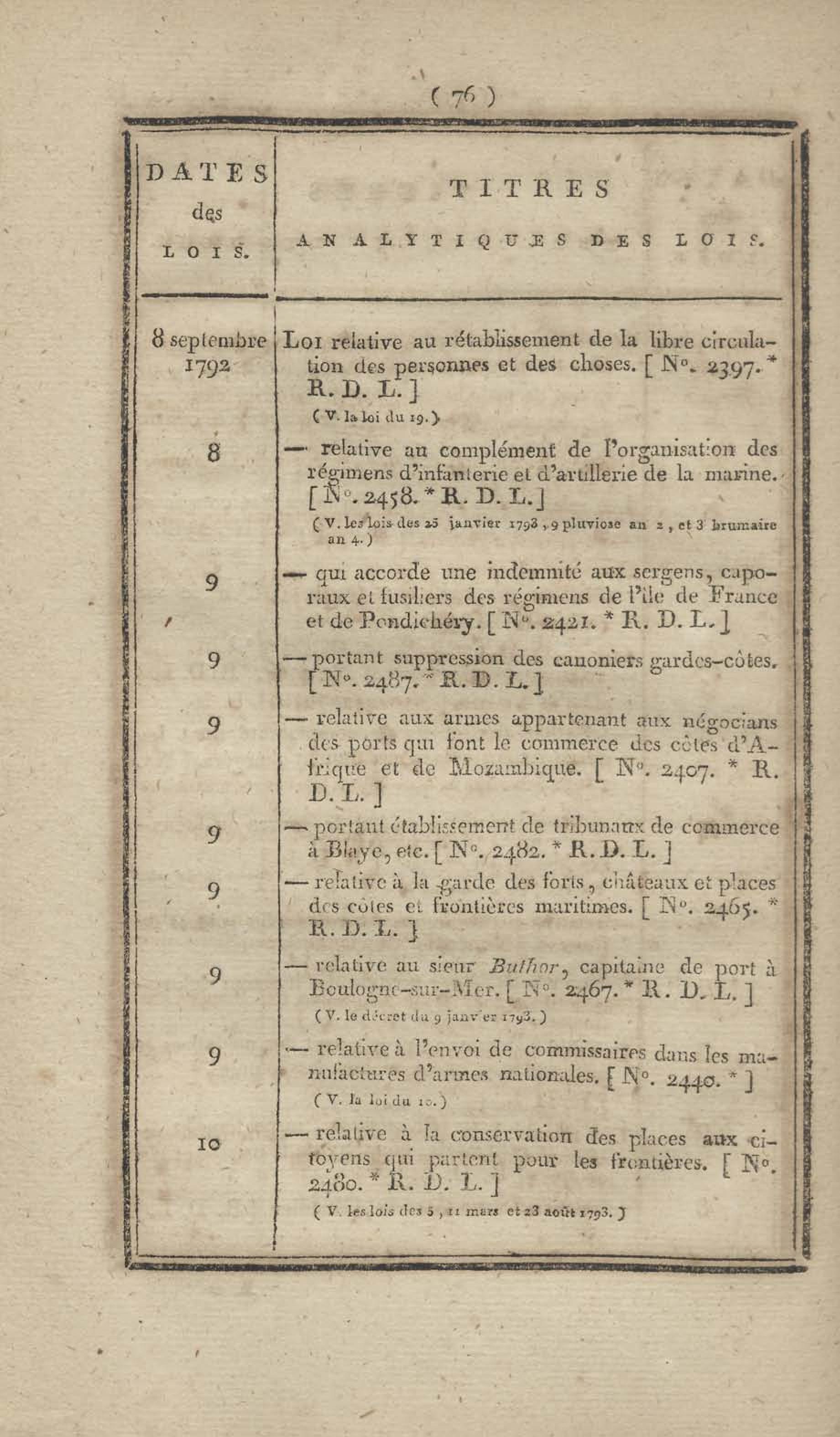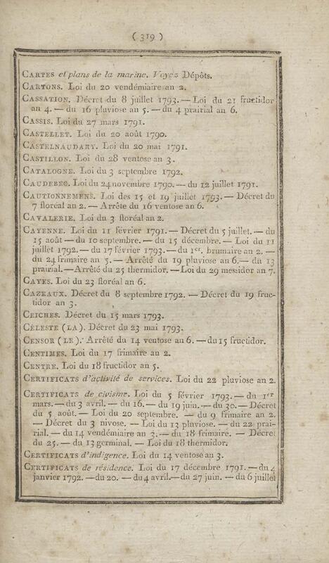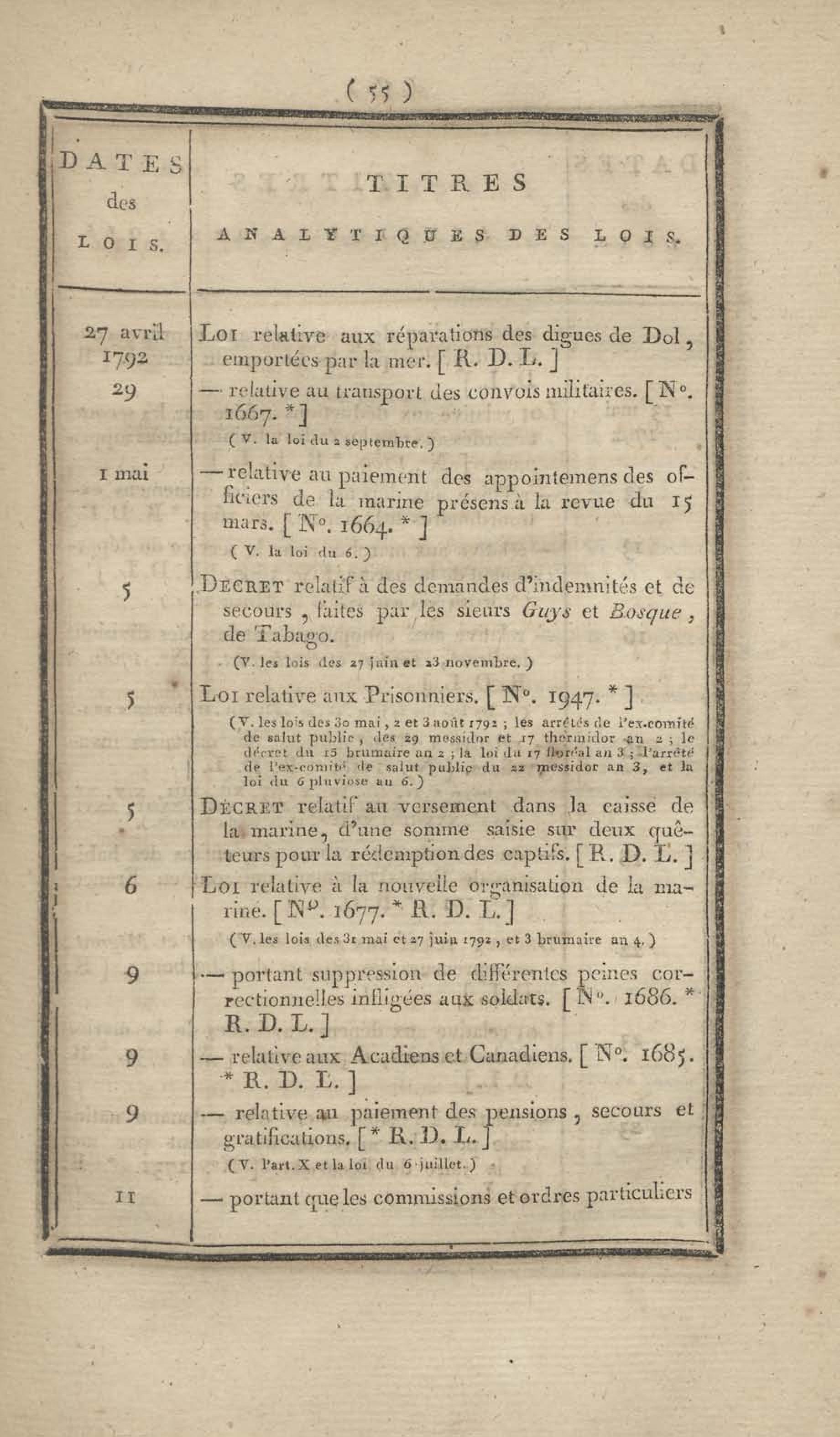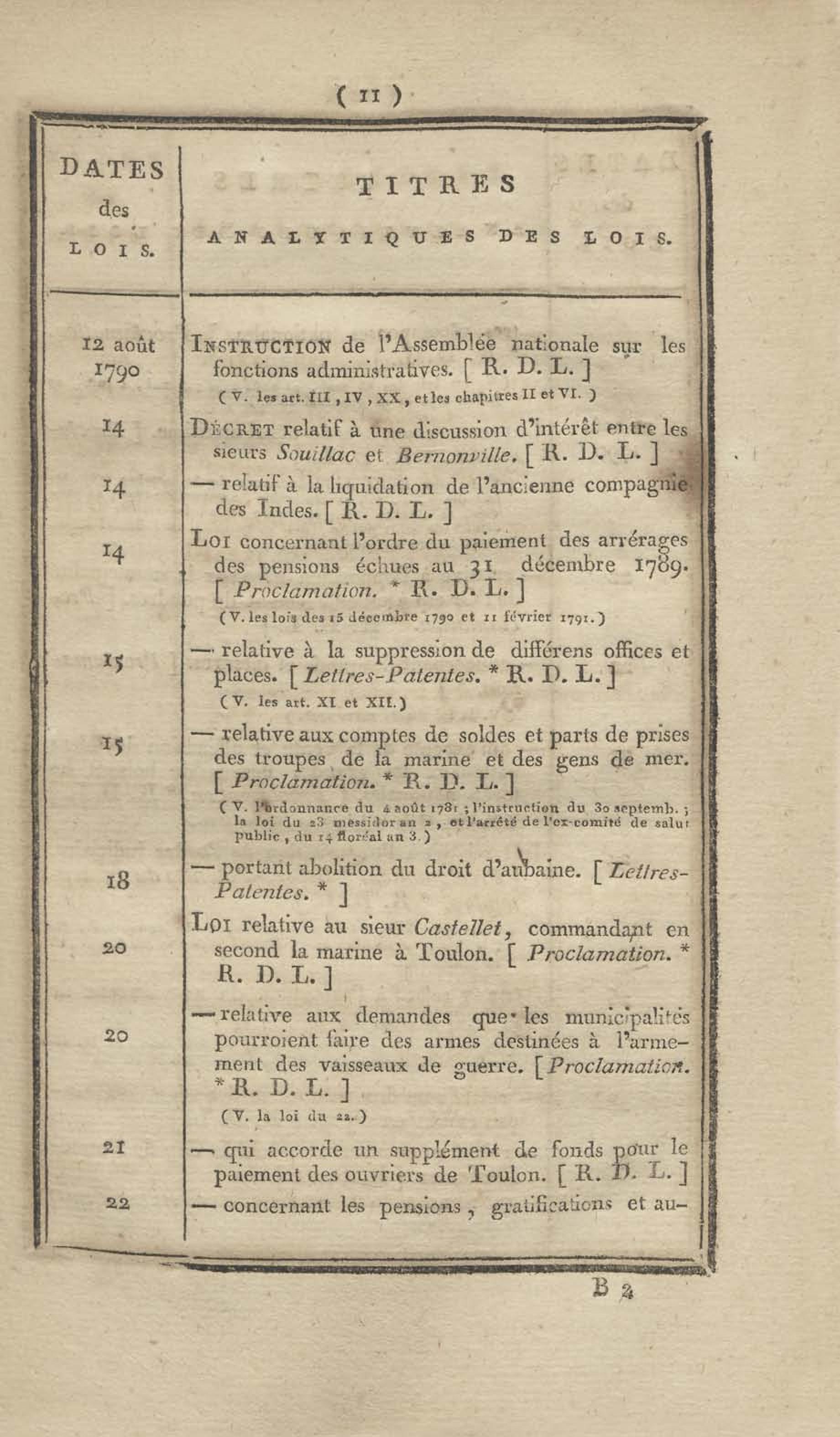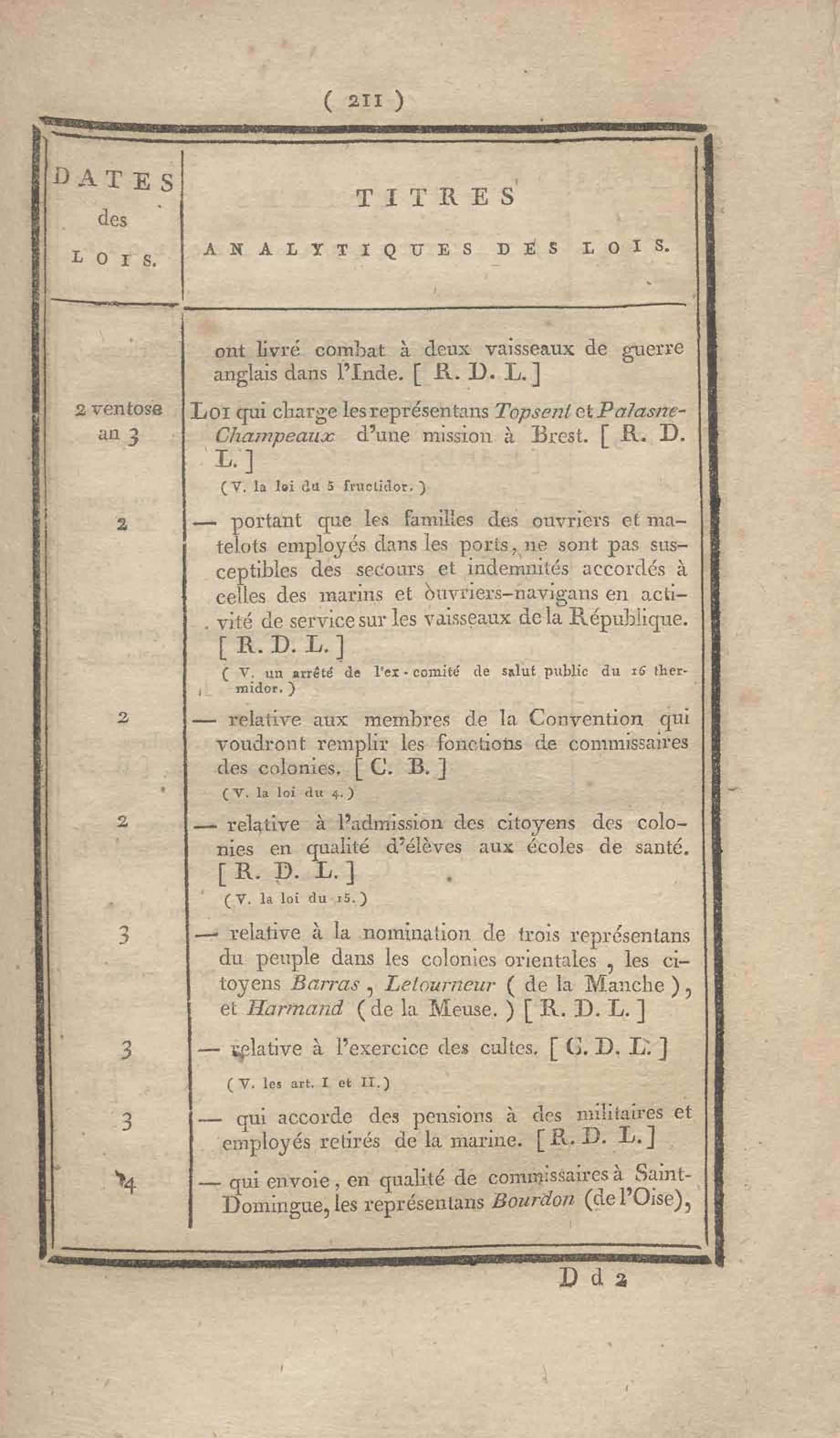 - Table chronologique et analytique des lois rendues depuis 1789 concernant la marine et les colonies