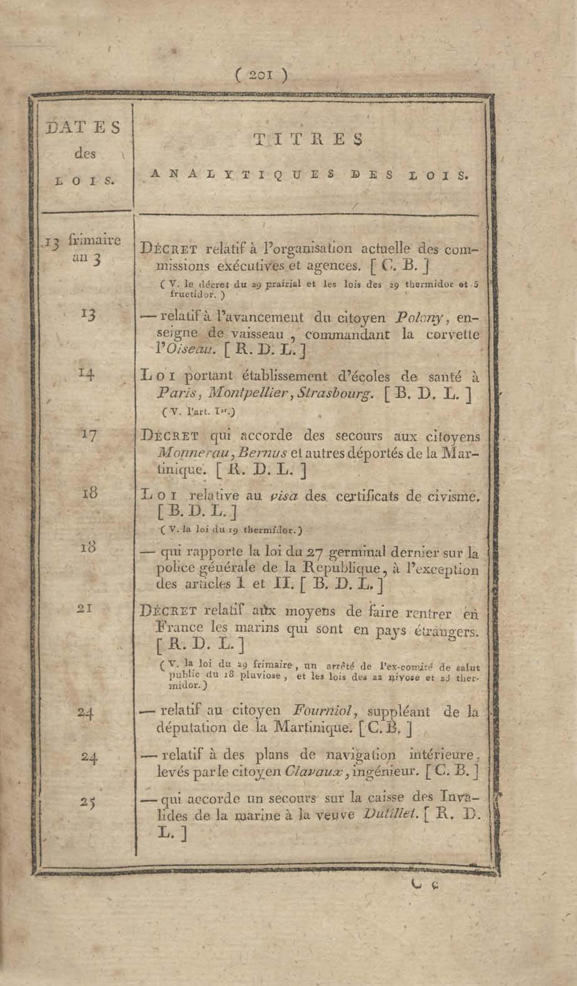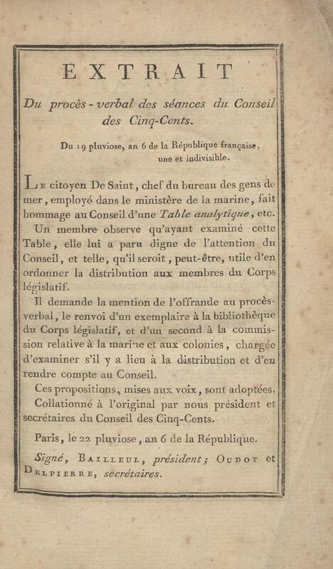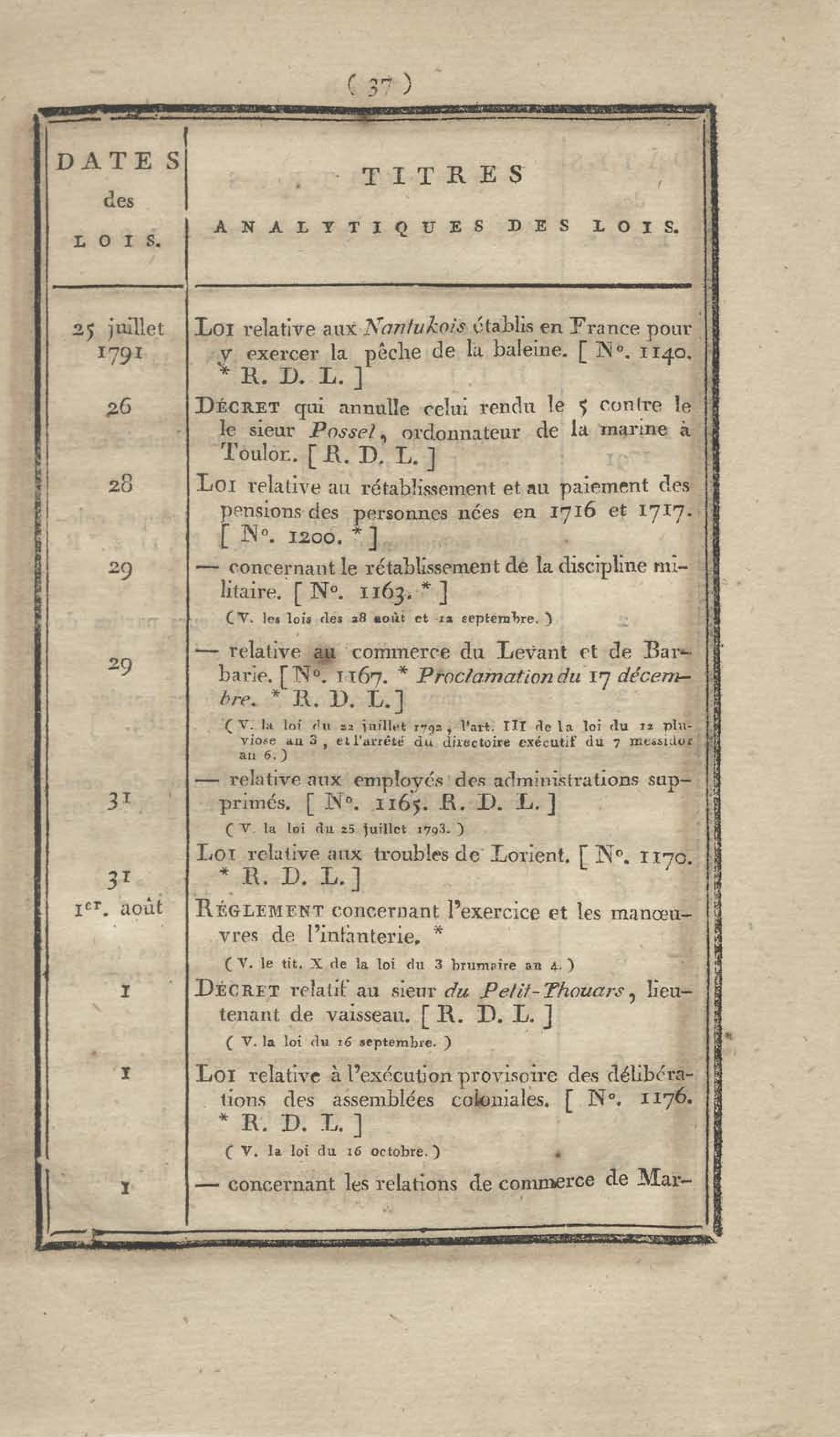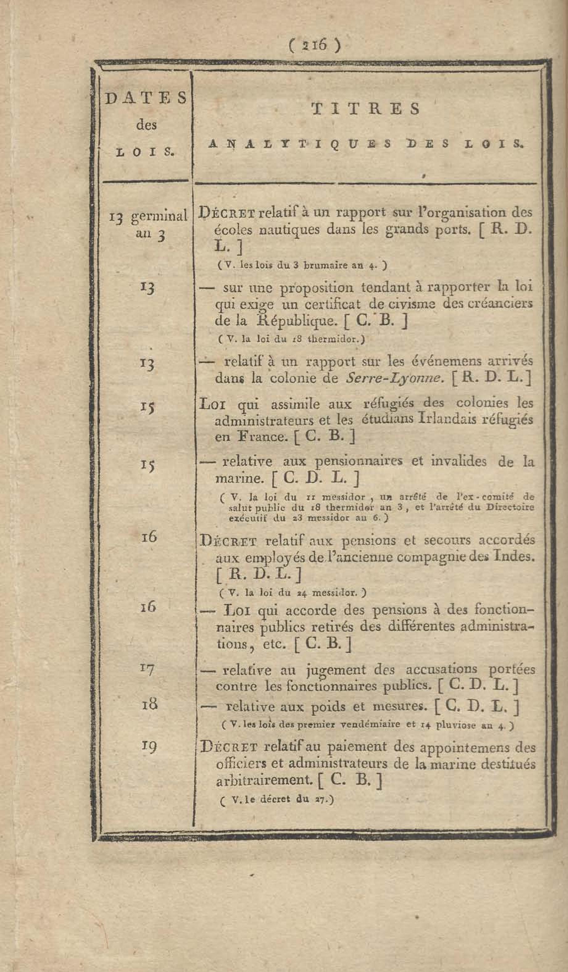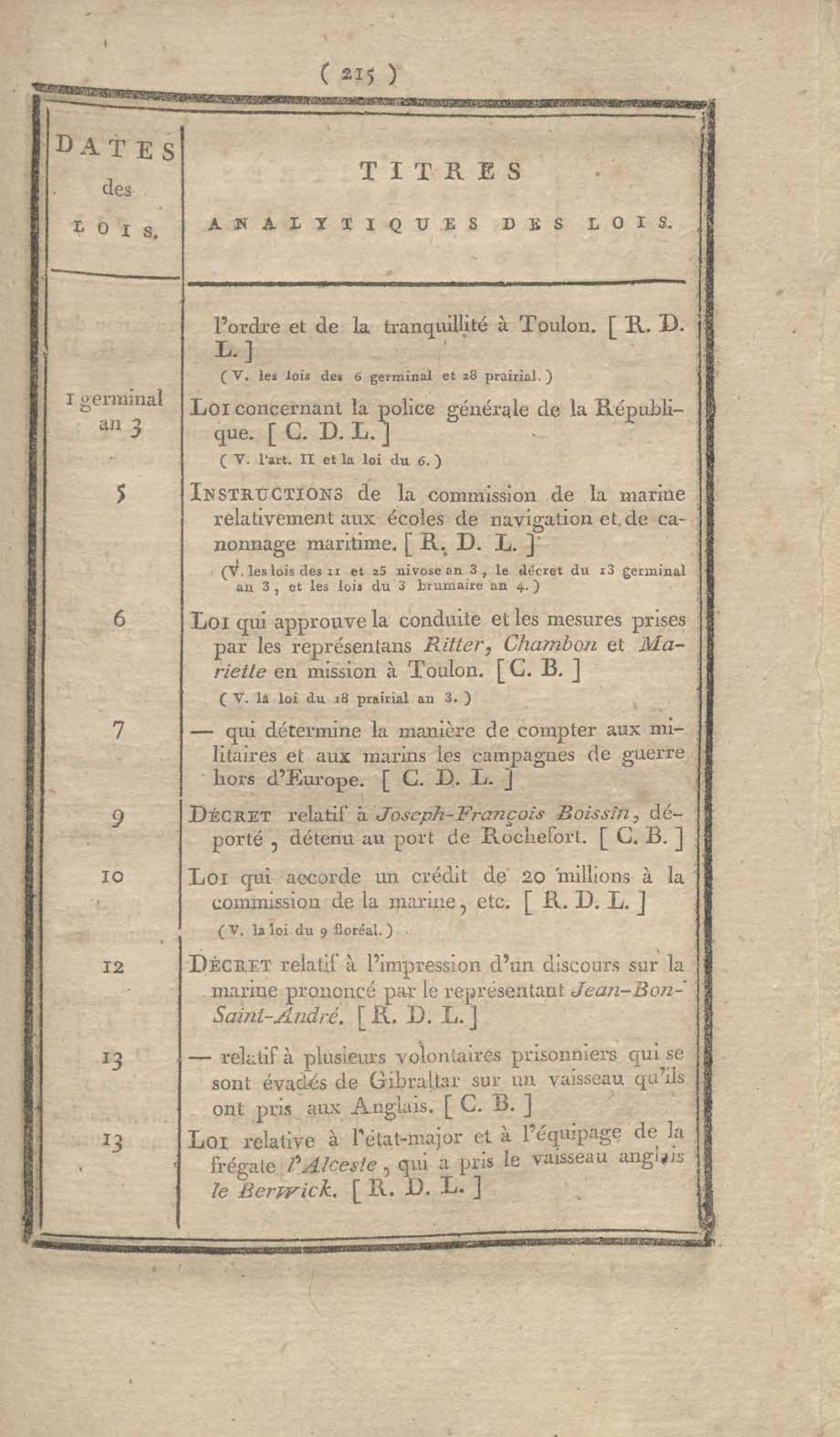 - Table chronologique et analytique des lois rendues depuis 1789 concernant la marine et les colonies