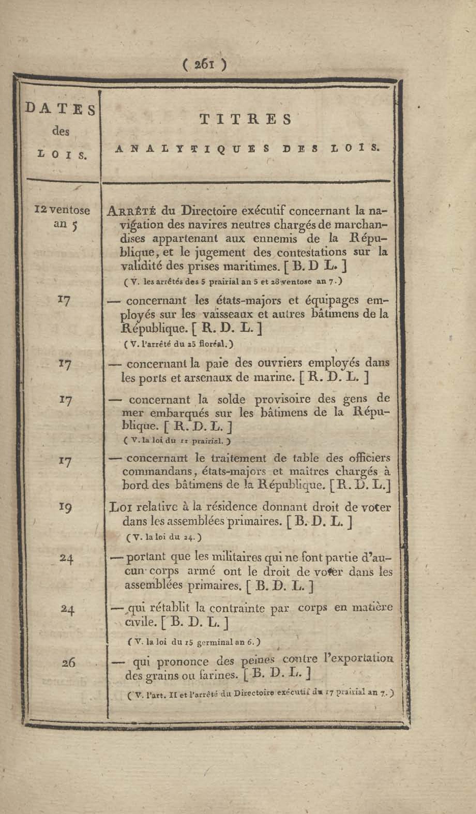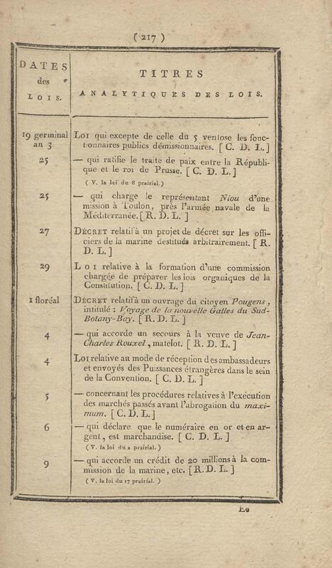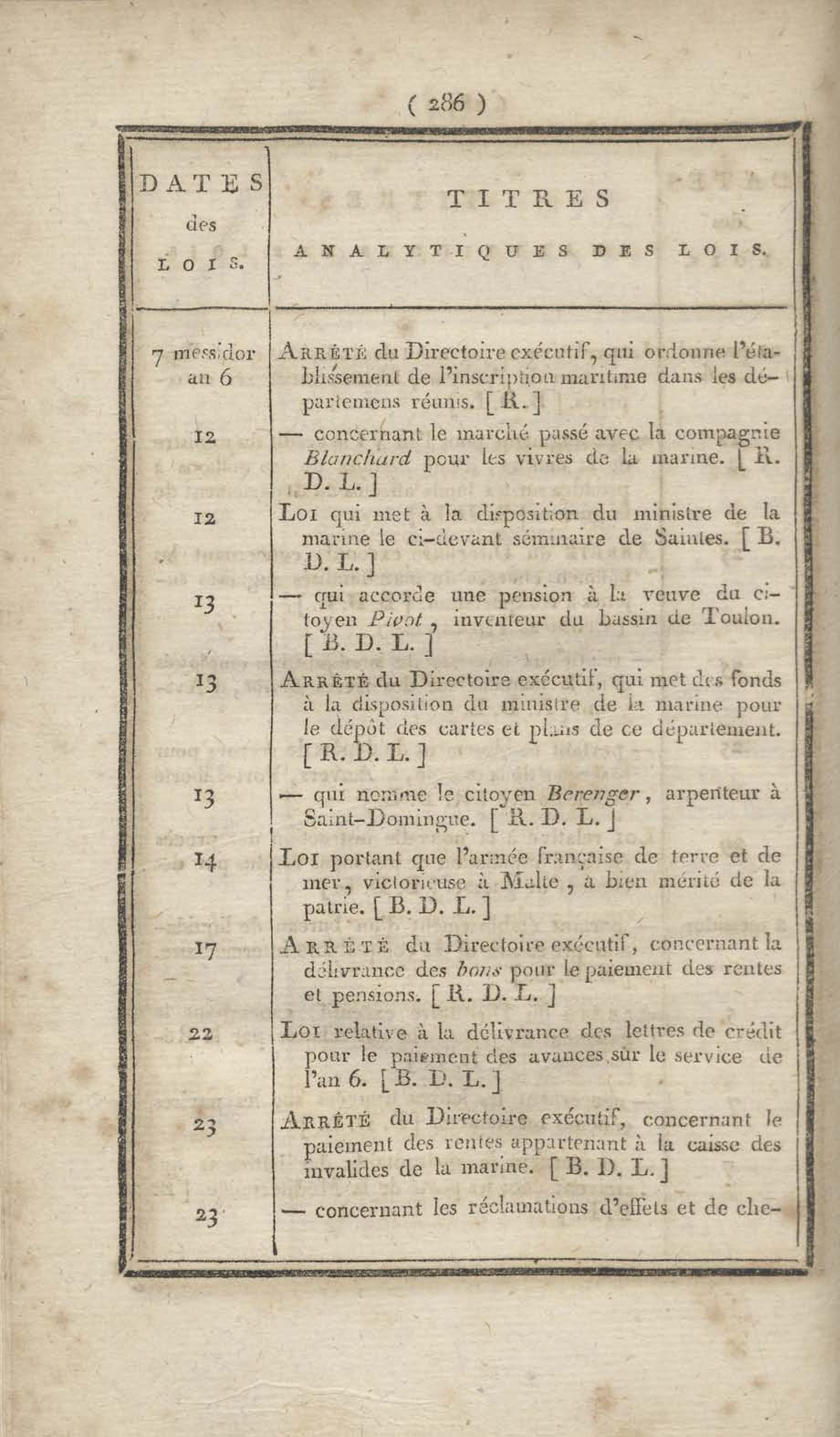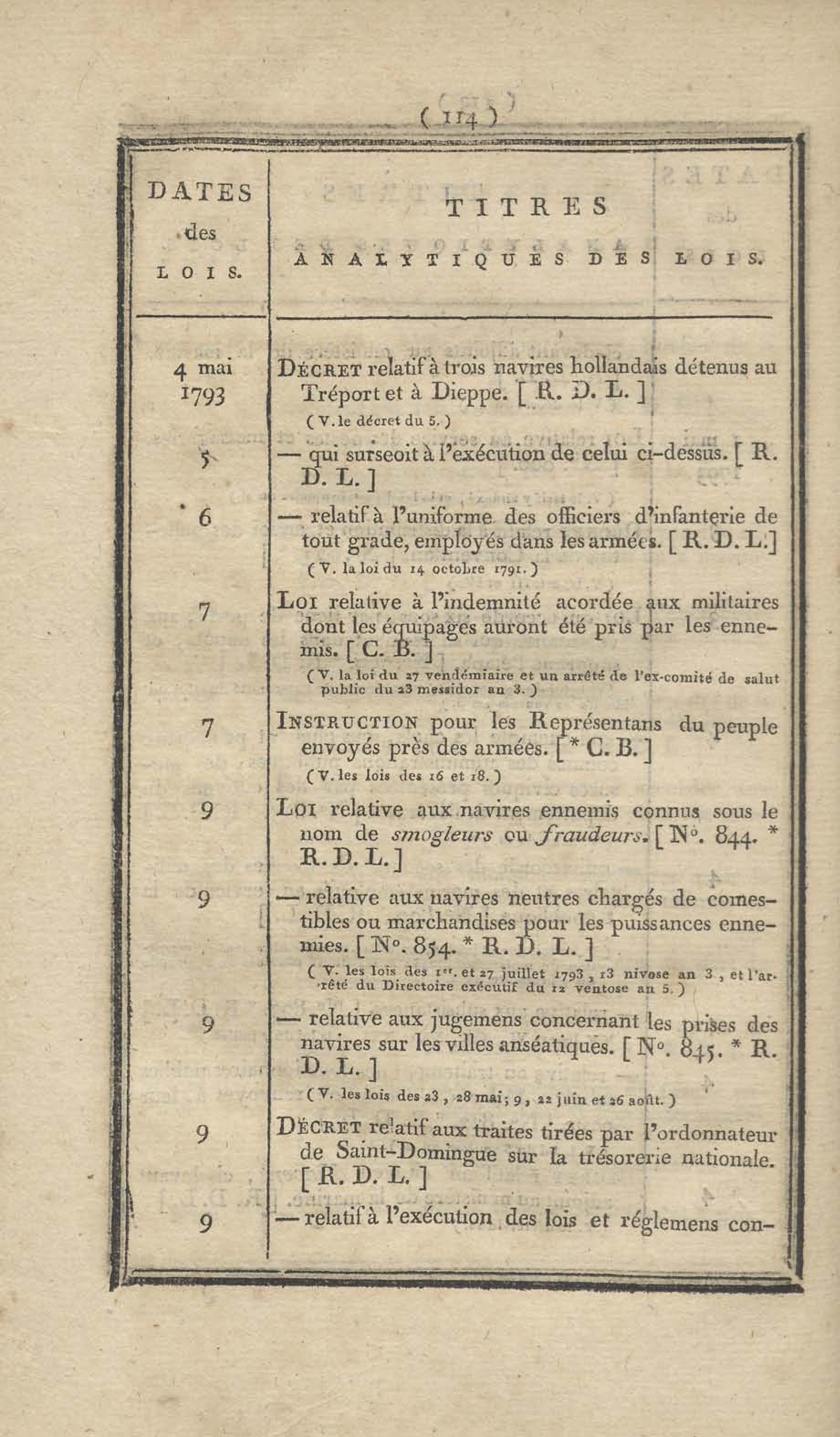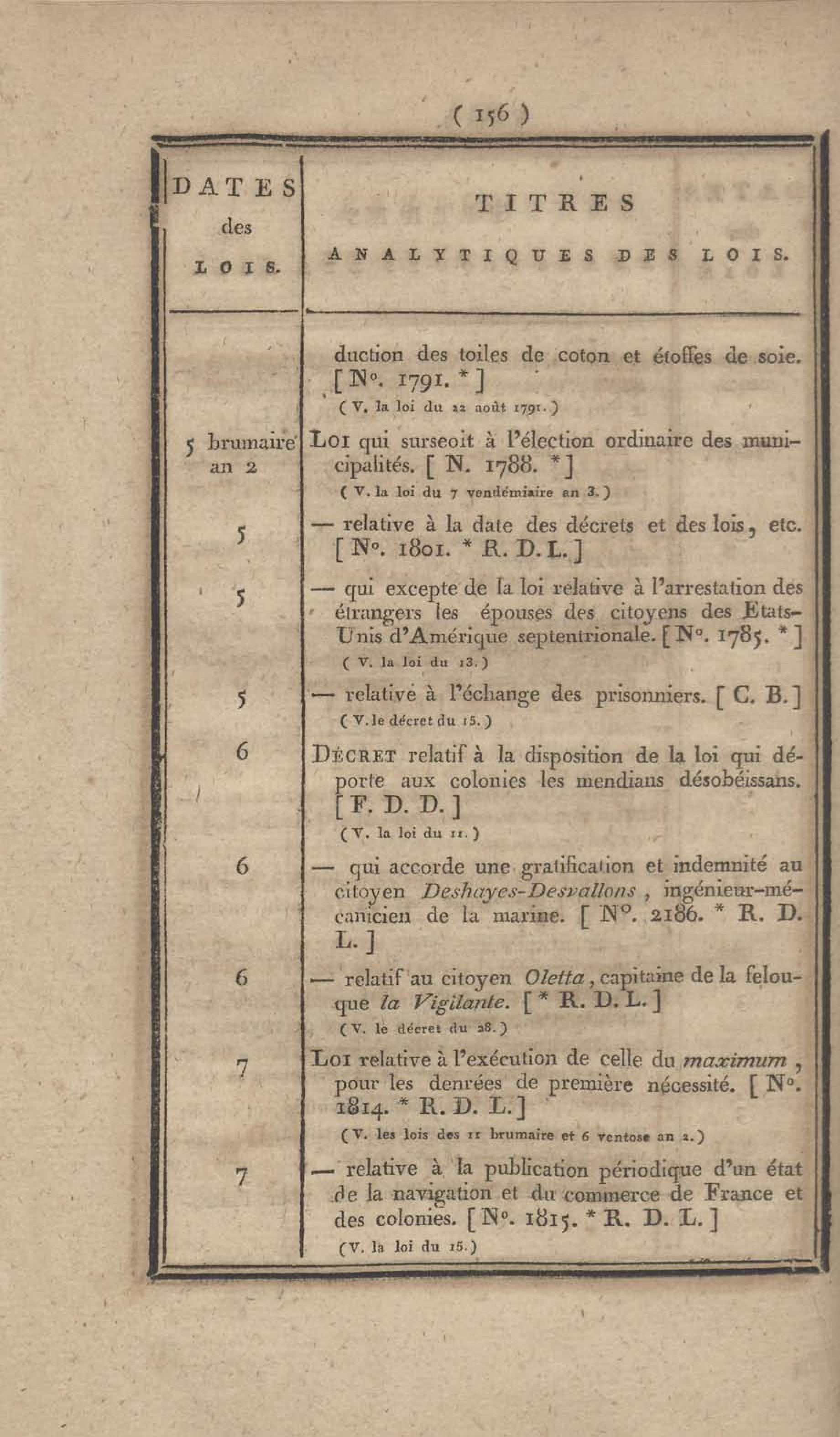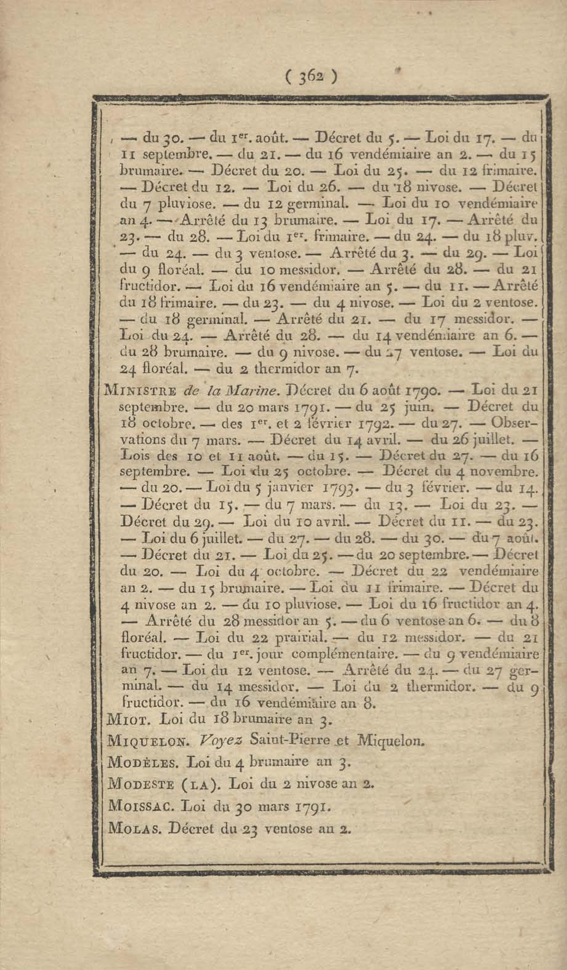 - Table chronologique et analytique des lois rendues depuis 1789 concernant la marine et les colonies