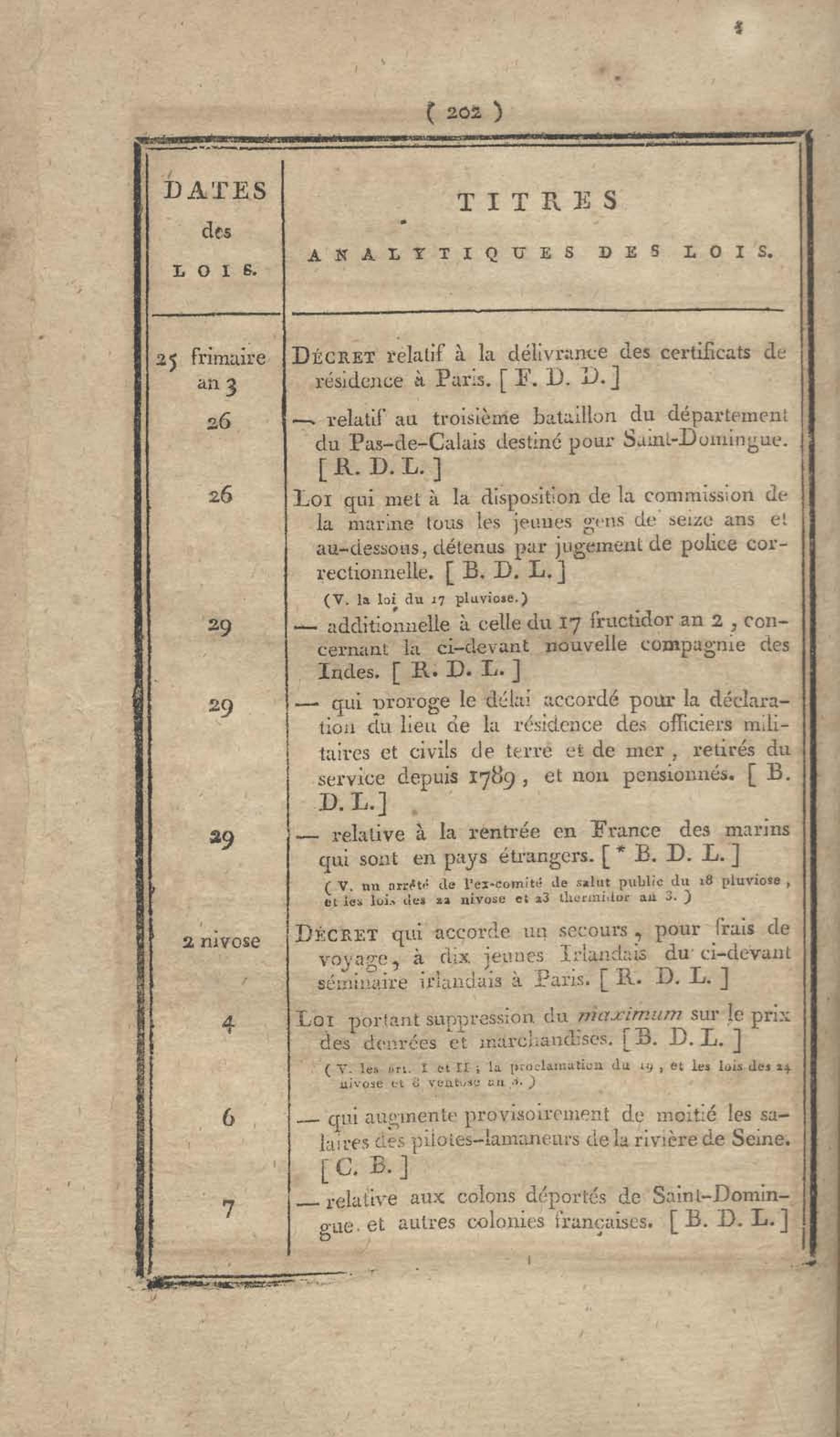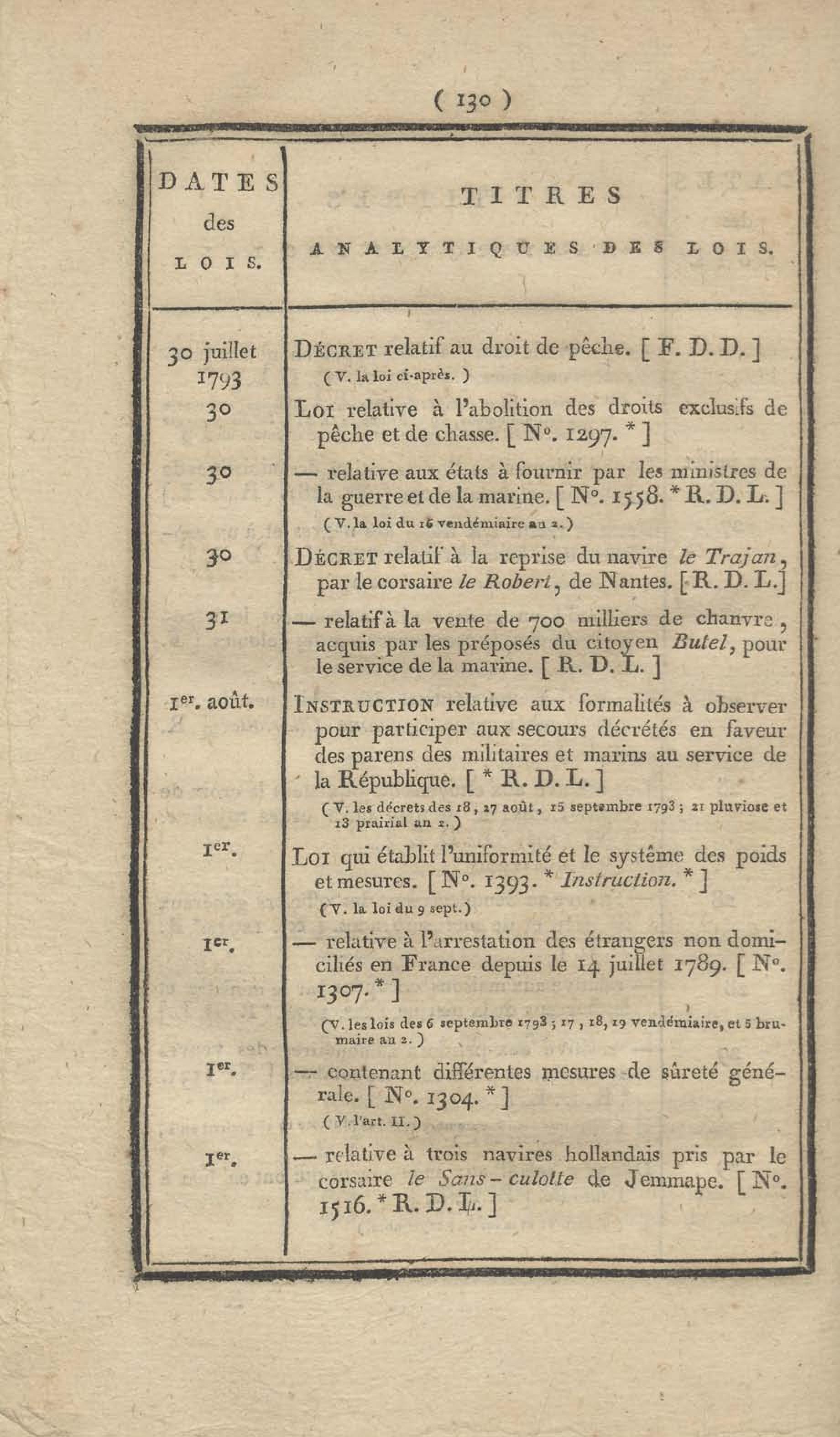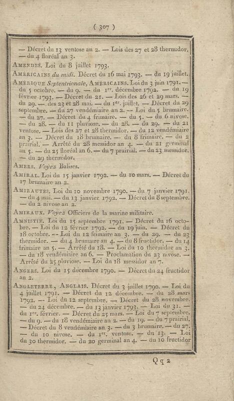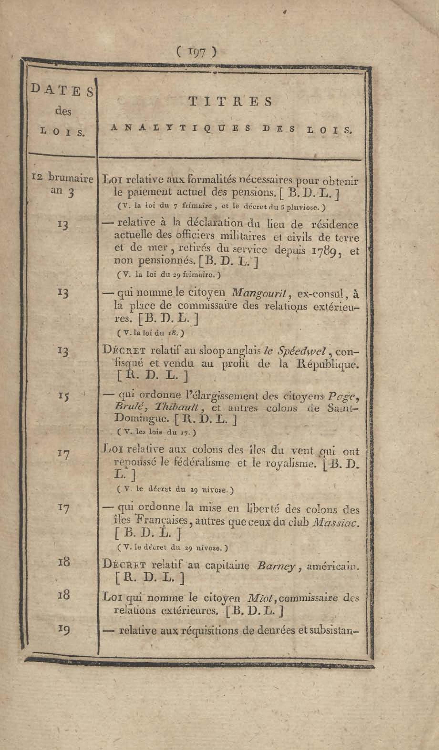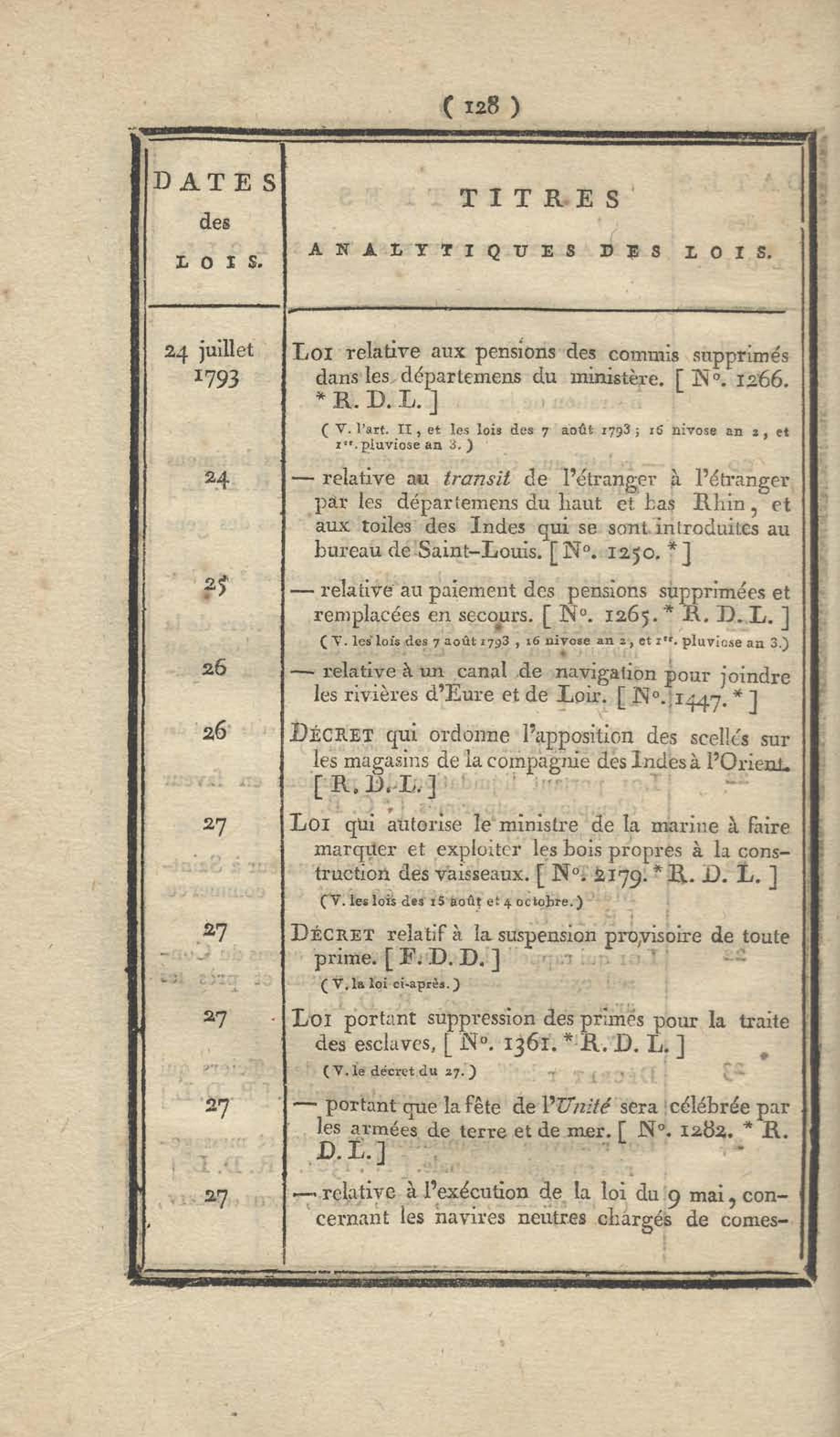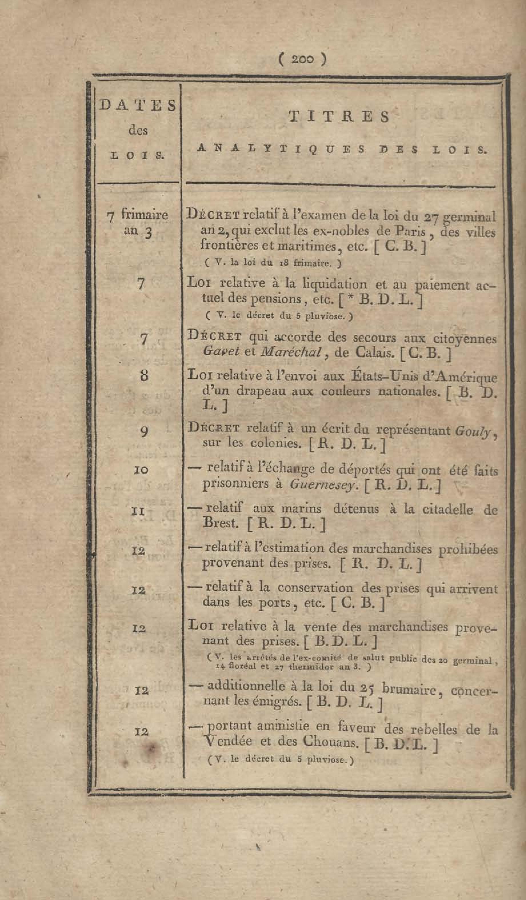 - Table chronologique et analytique des lois rendues depuis 1789 concernant la marine et les colonies