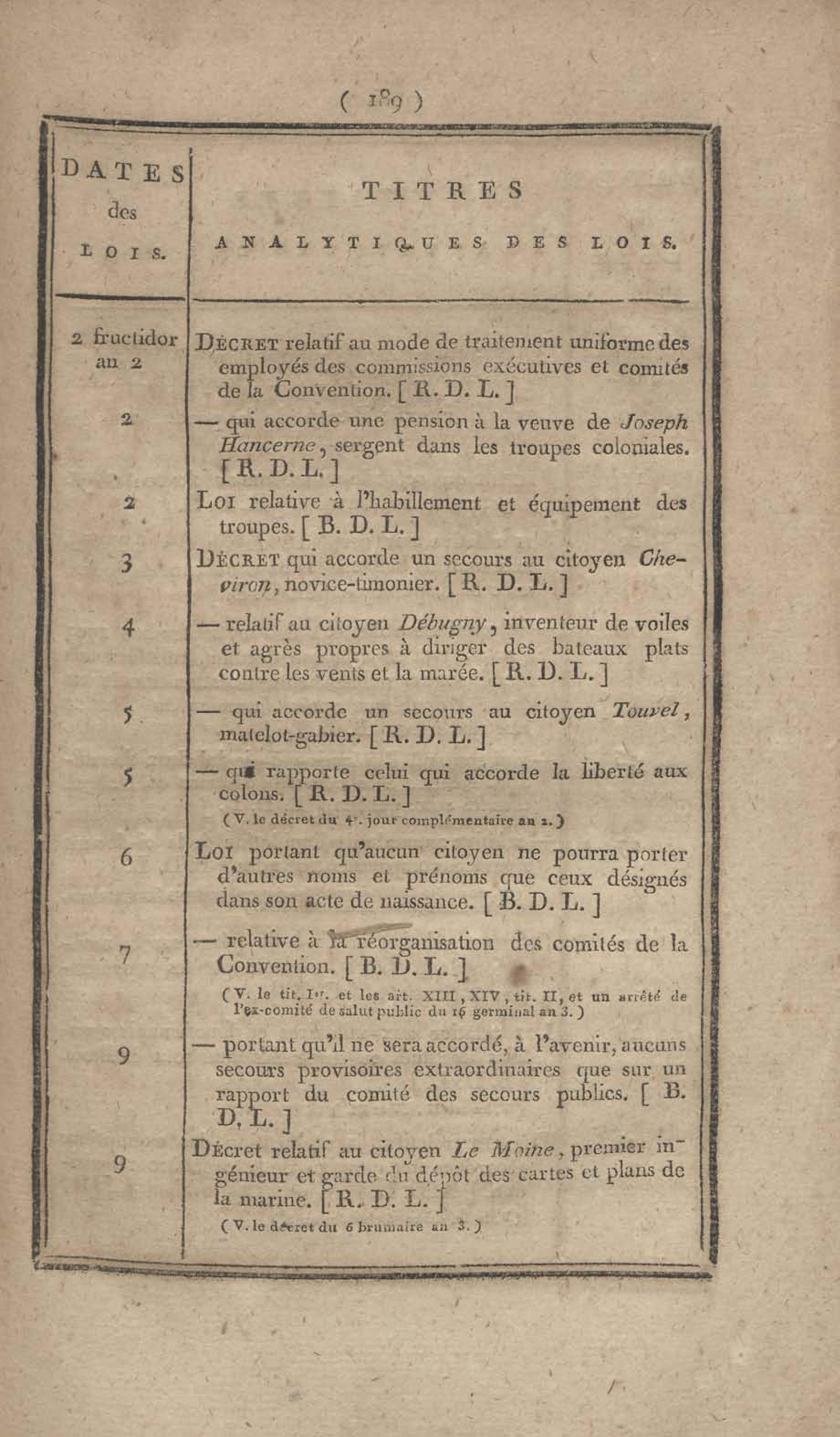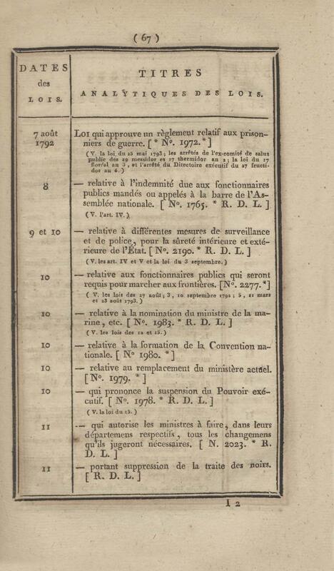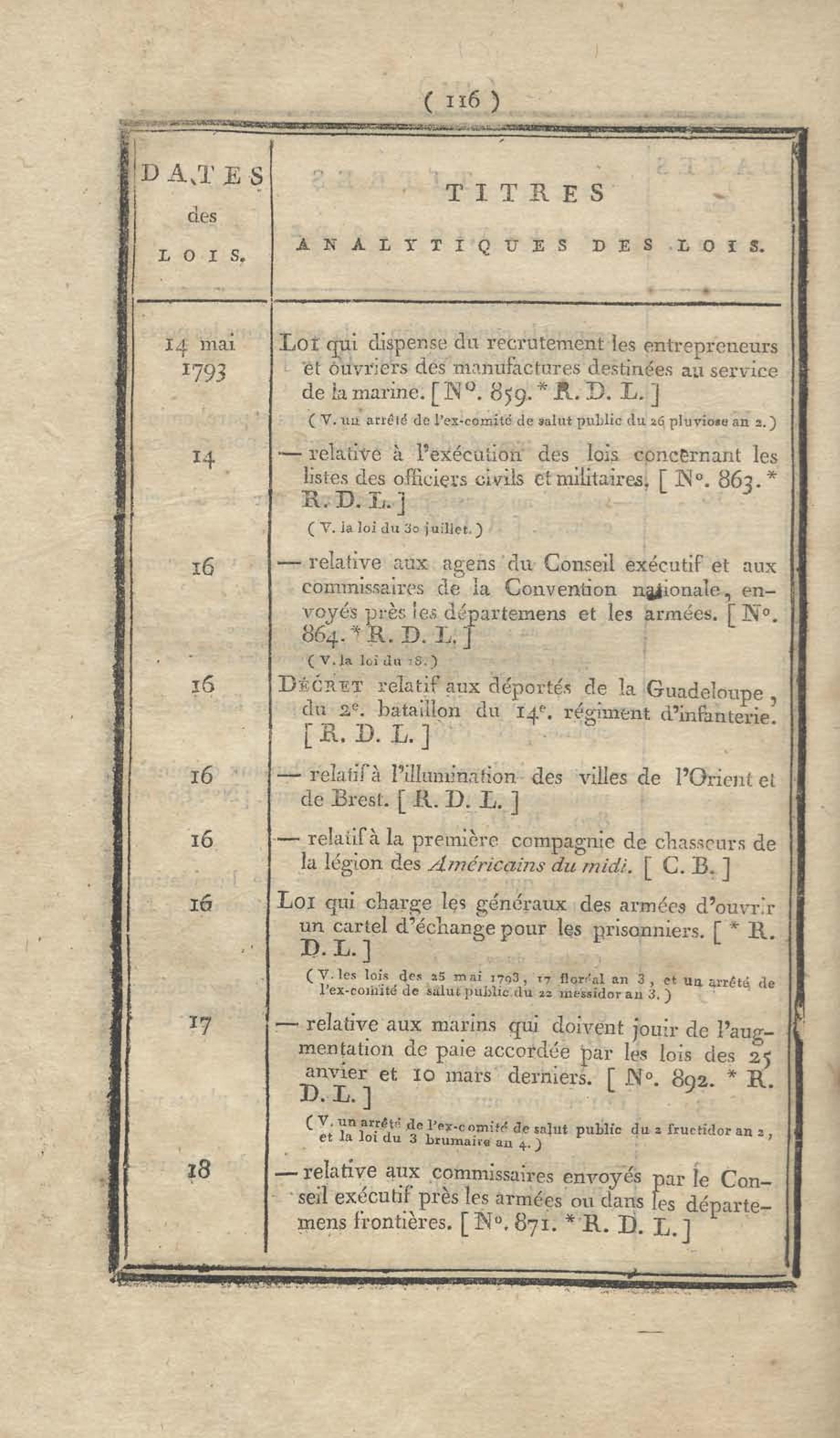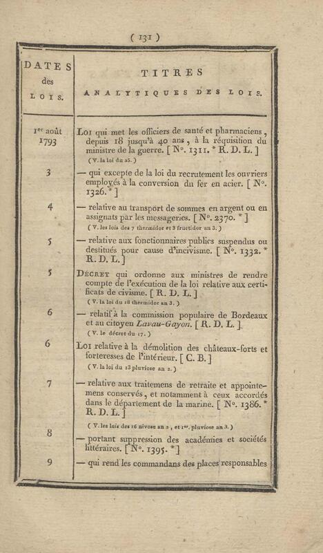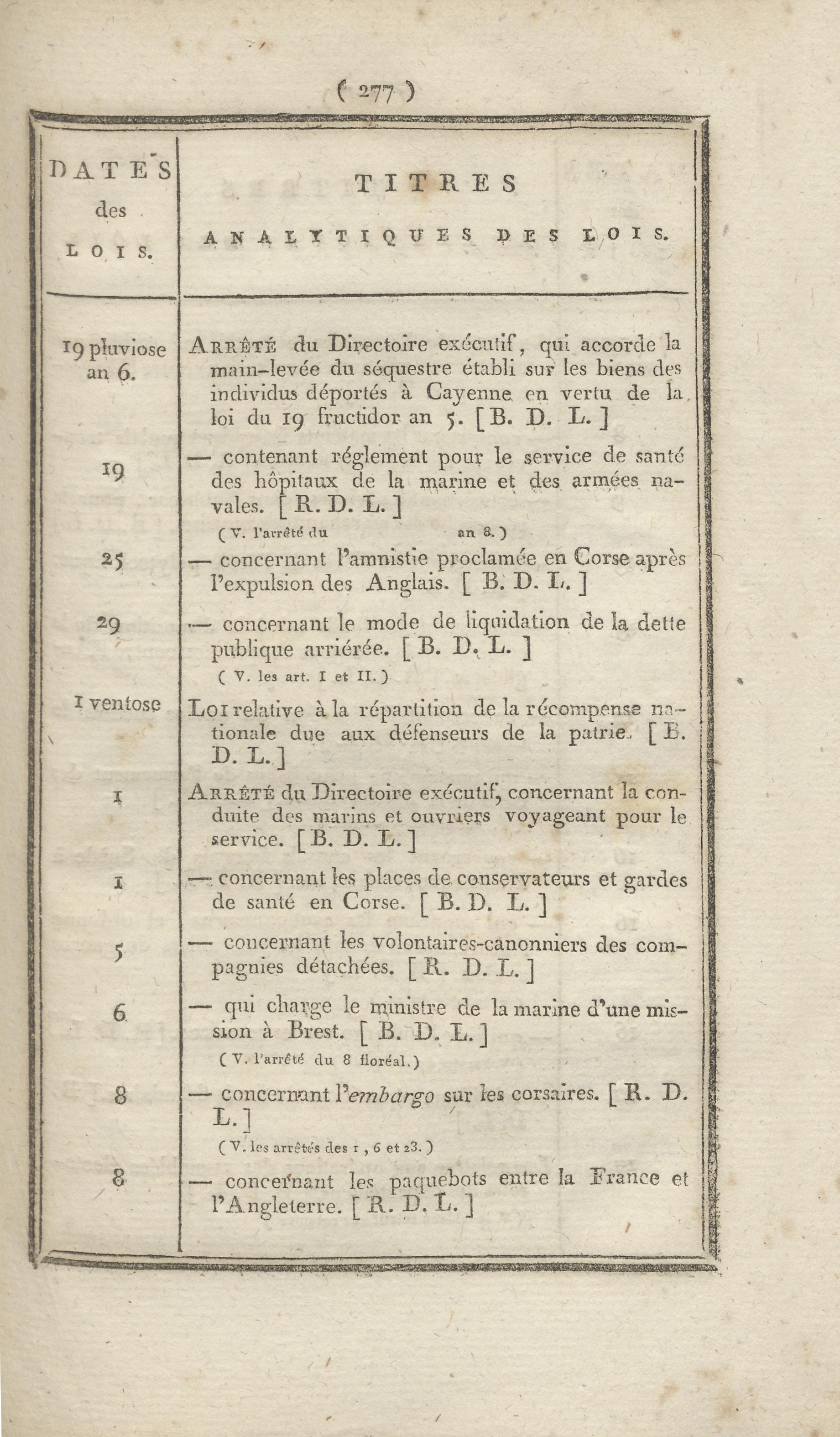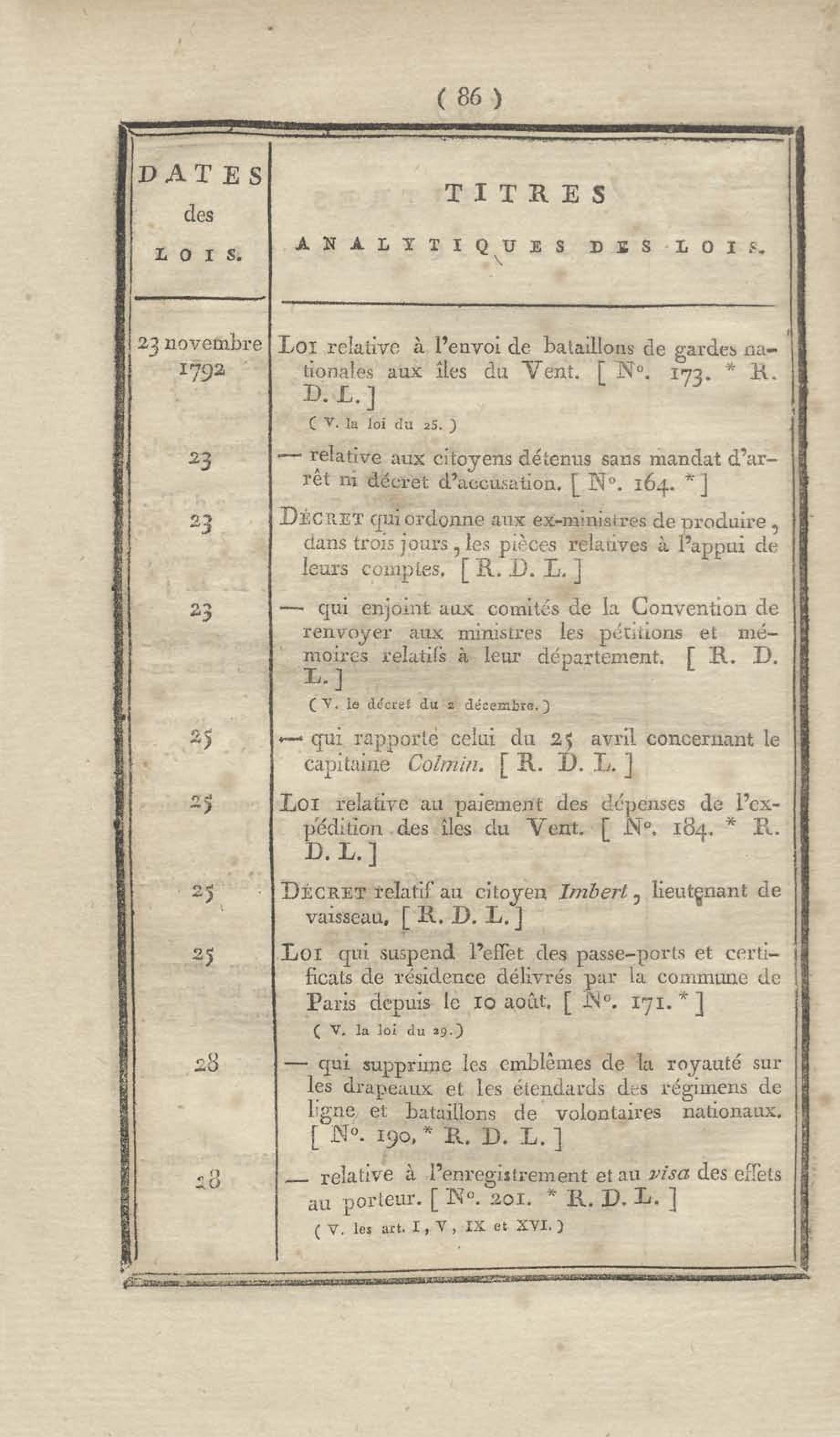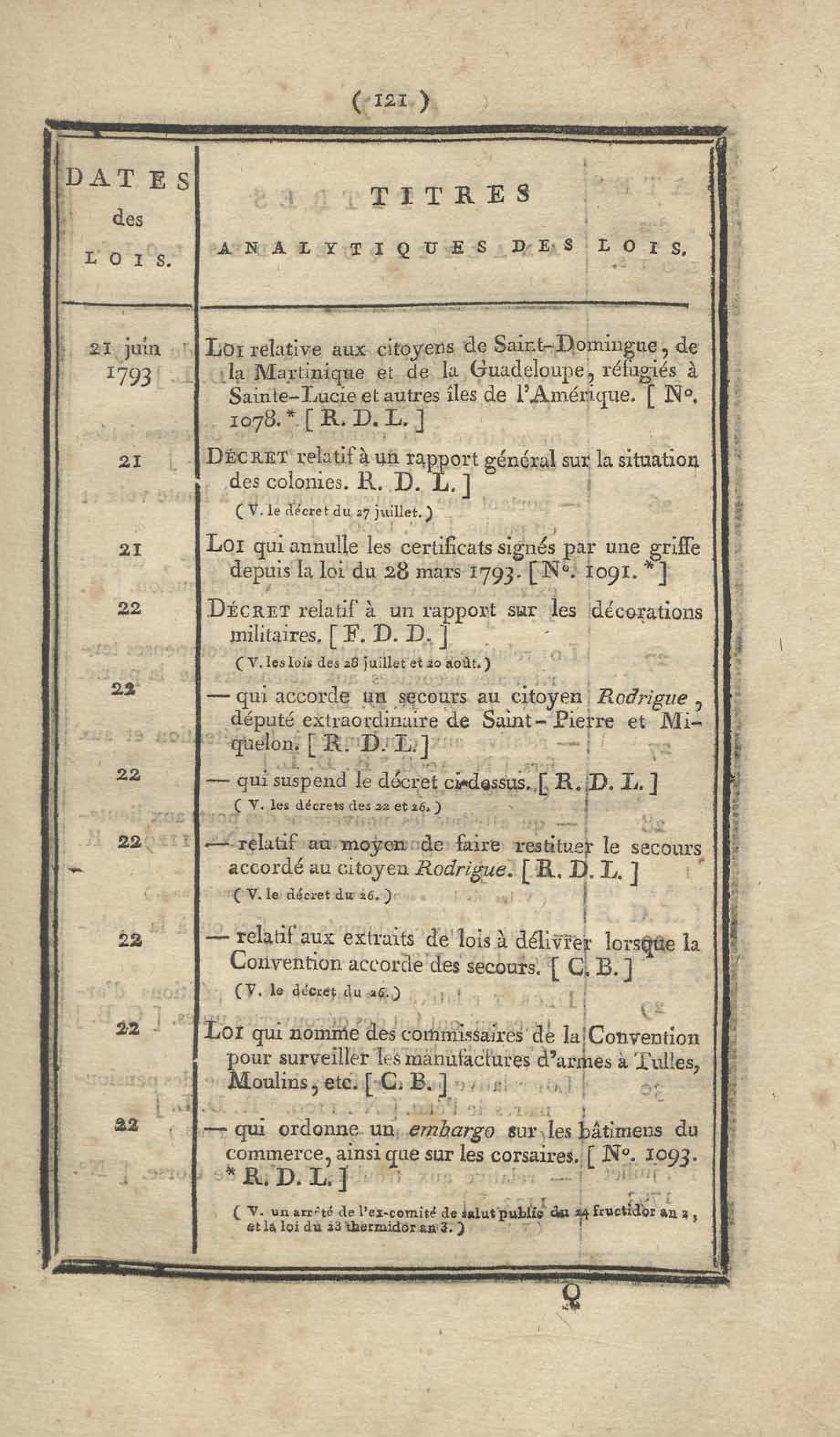 - Table chronologique et analytique des lois rendues depuis 1789 concernant la marine et les colonies