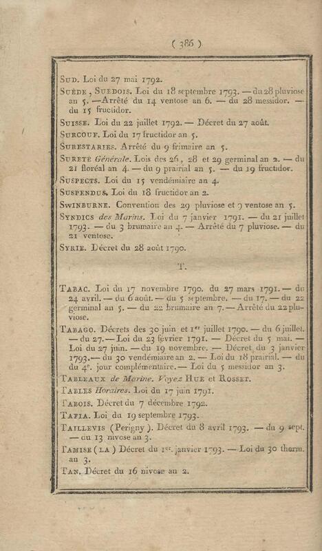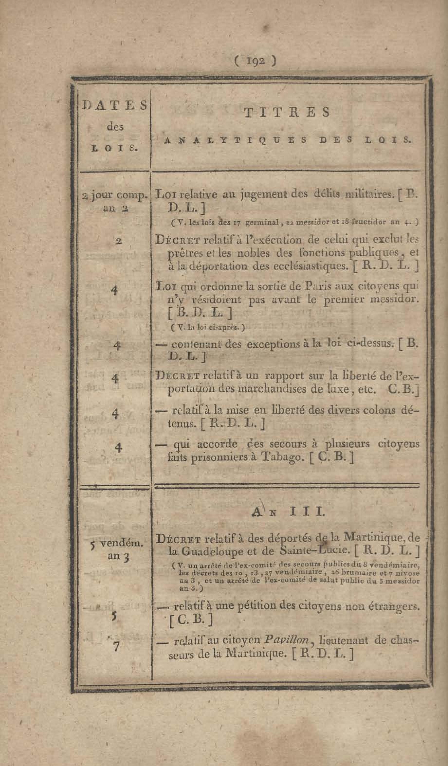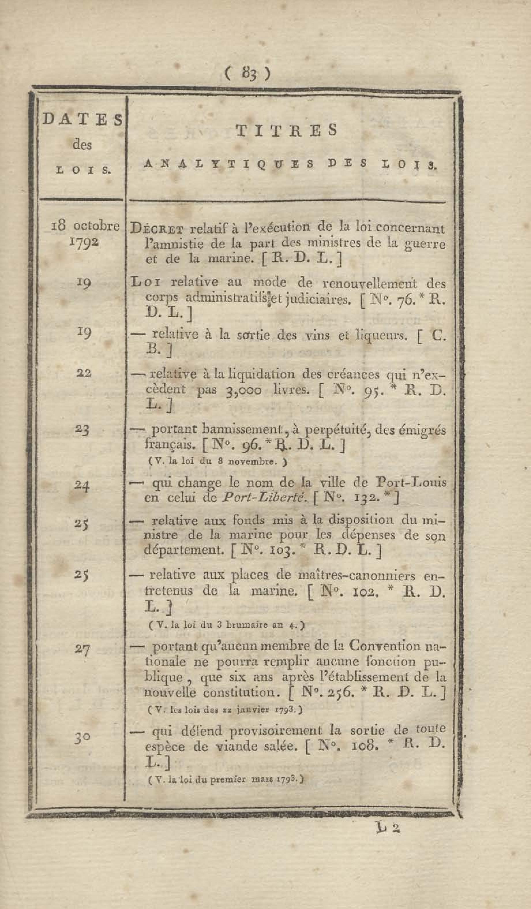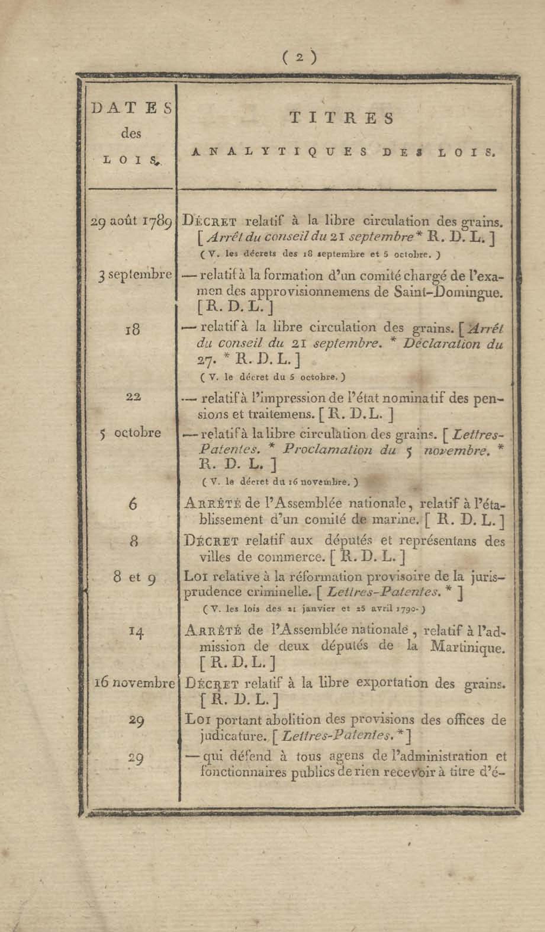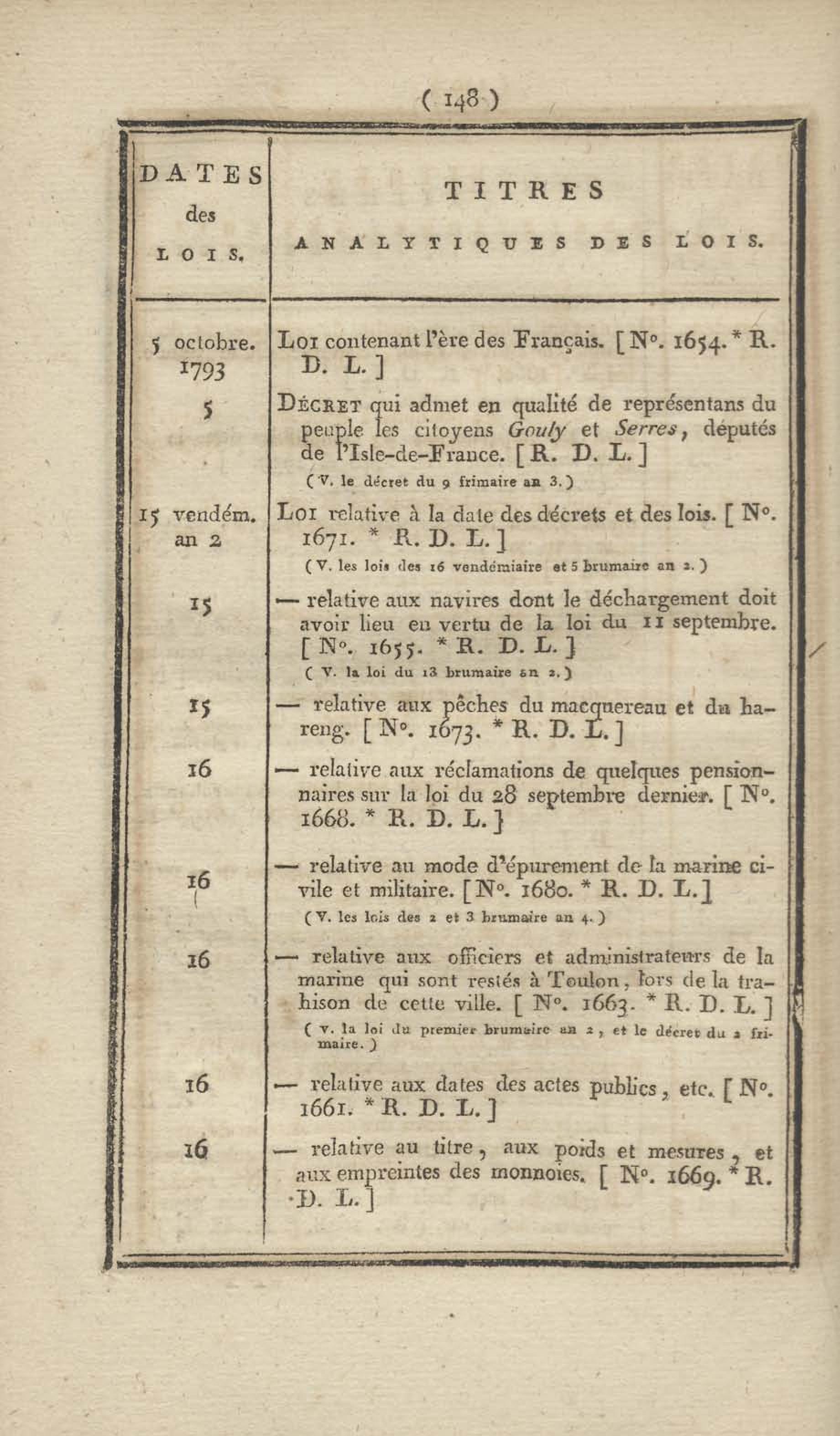 - Table chronologique et analytique des lois rendues depuis 1789 concernant la marine et les colonies
