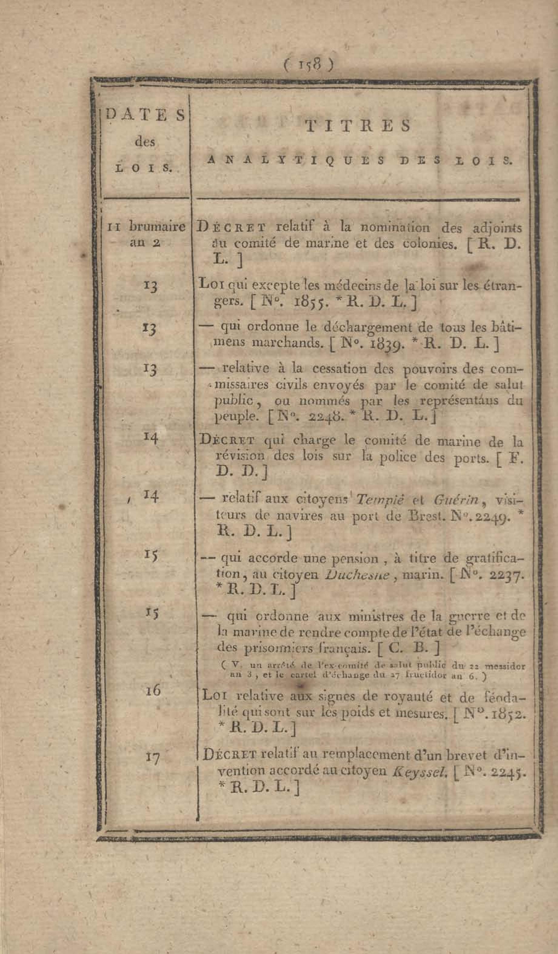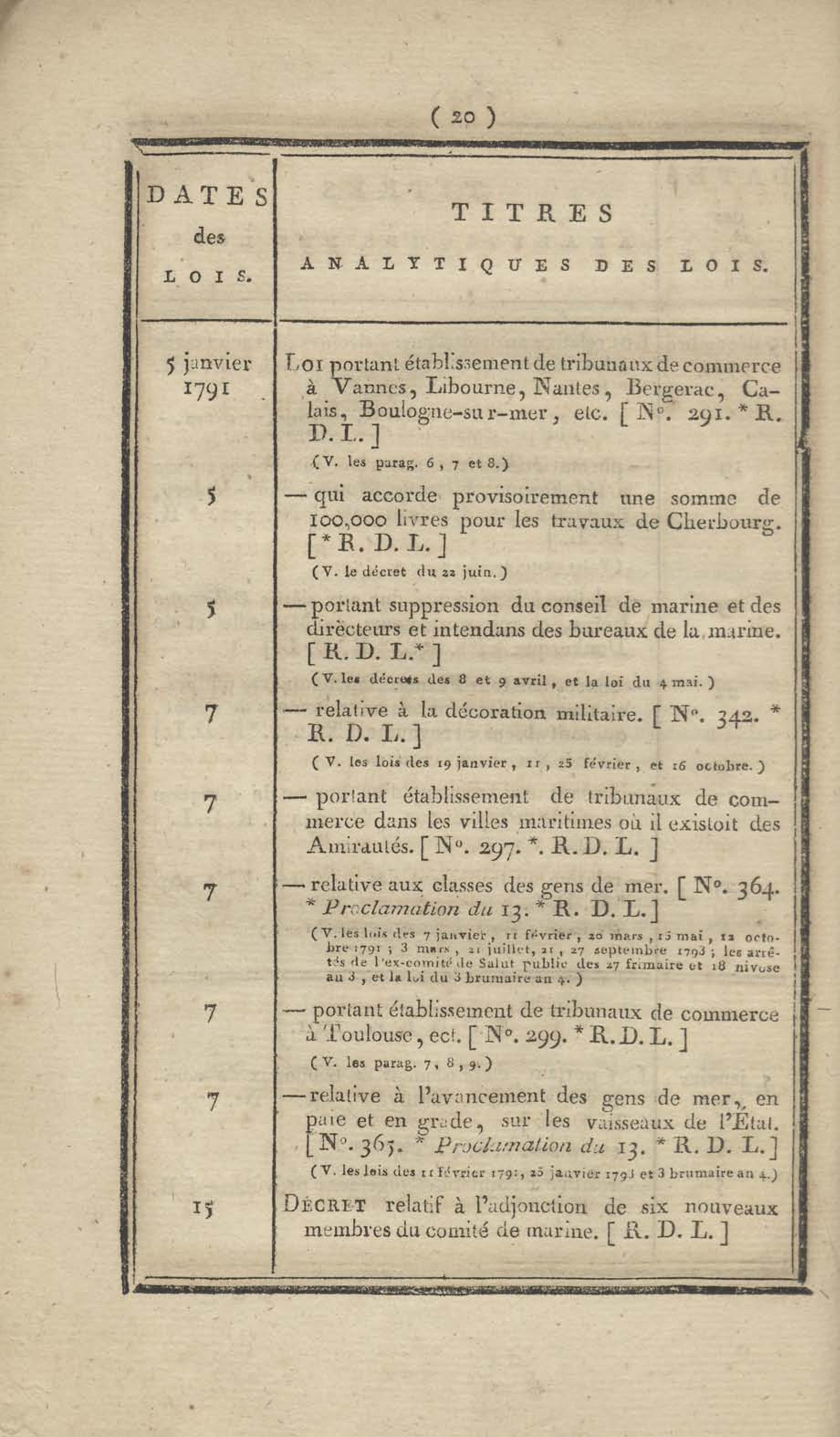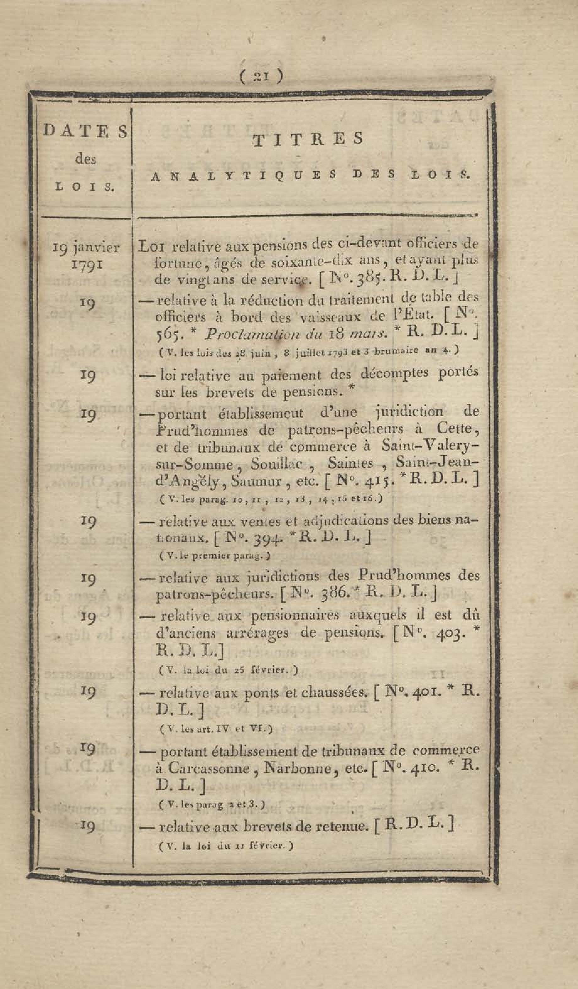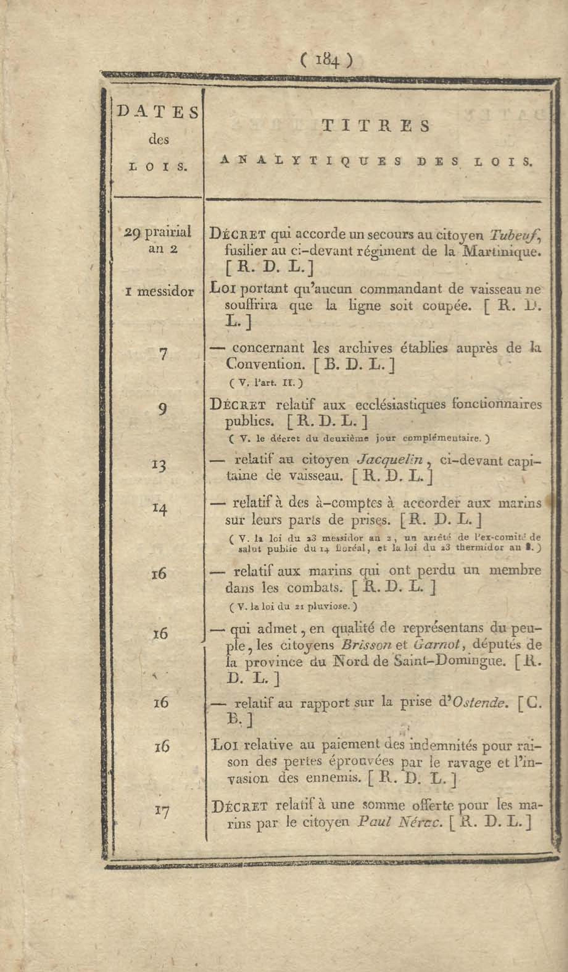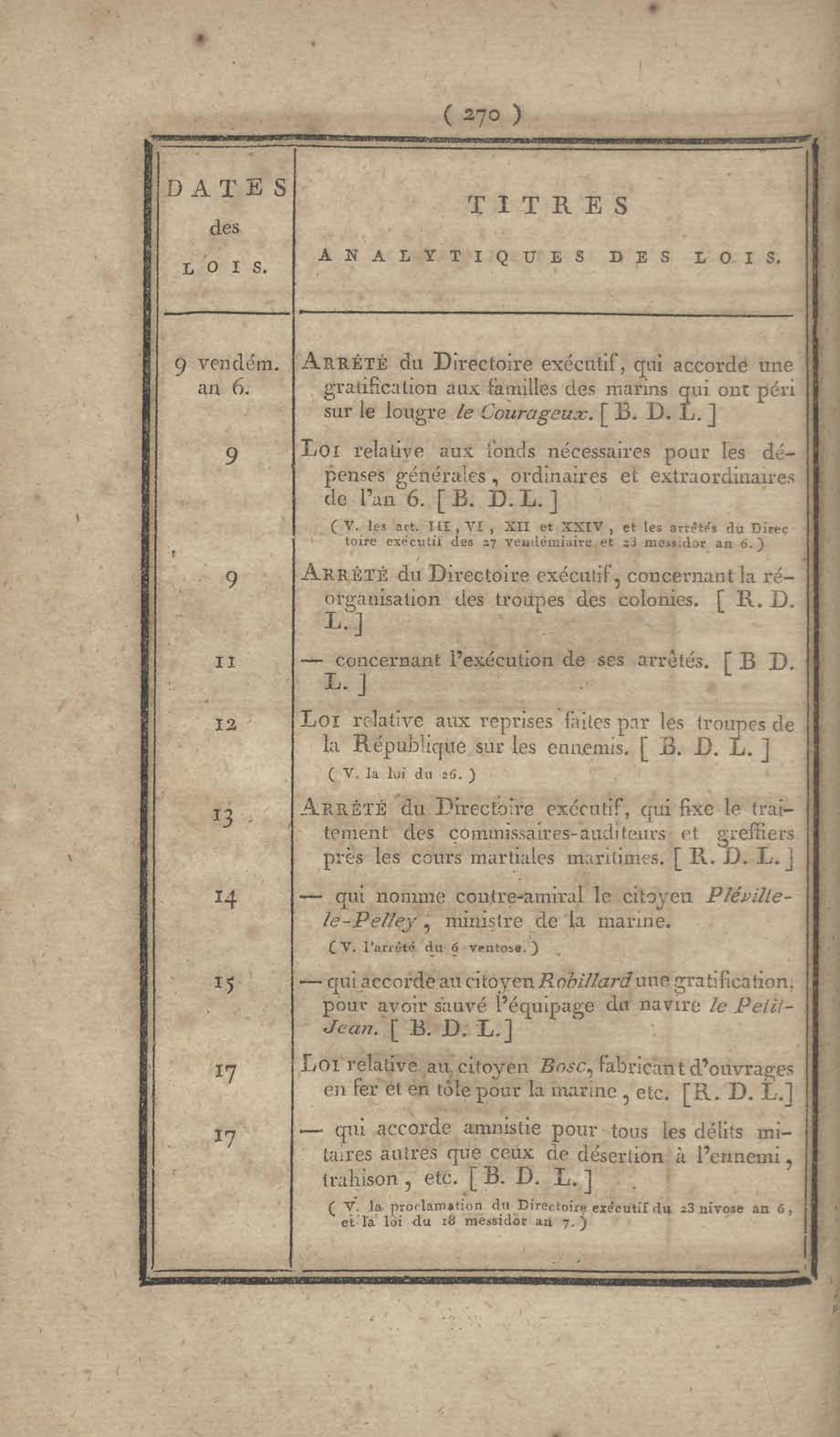 - Table chronologique et analytique des lois rendues depuis 1789 concernant la marine et les colonies