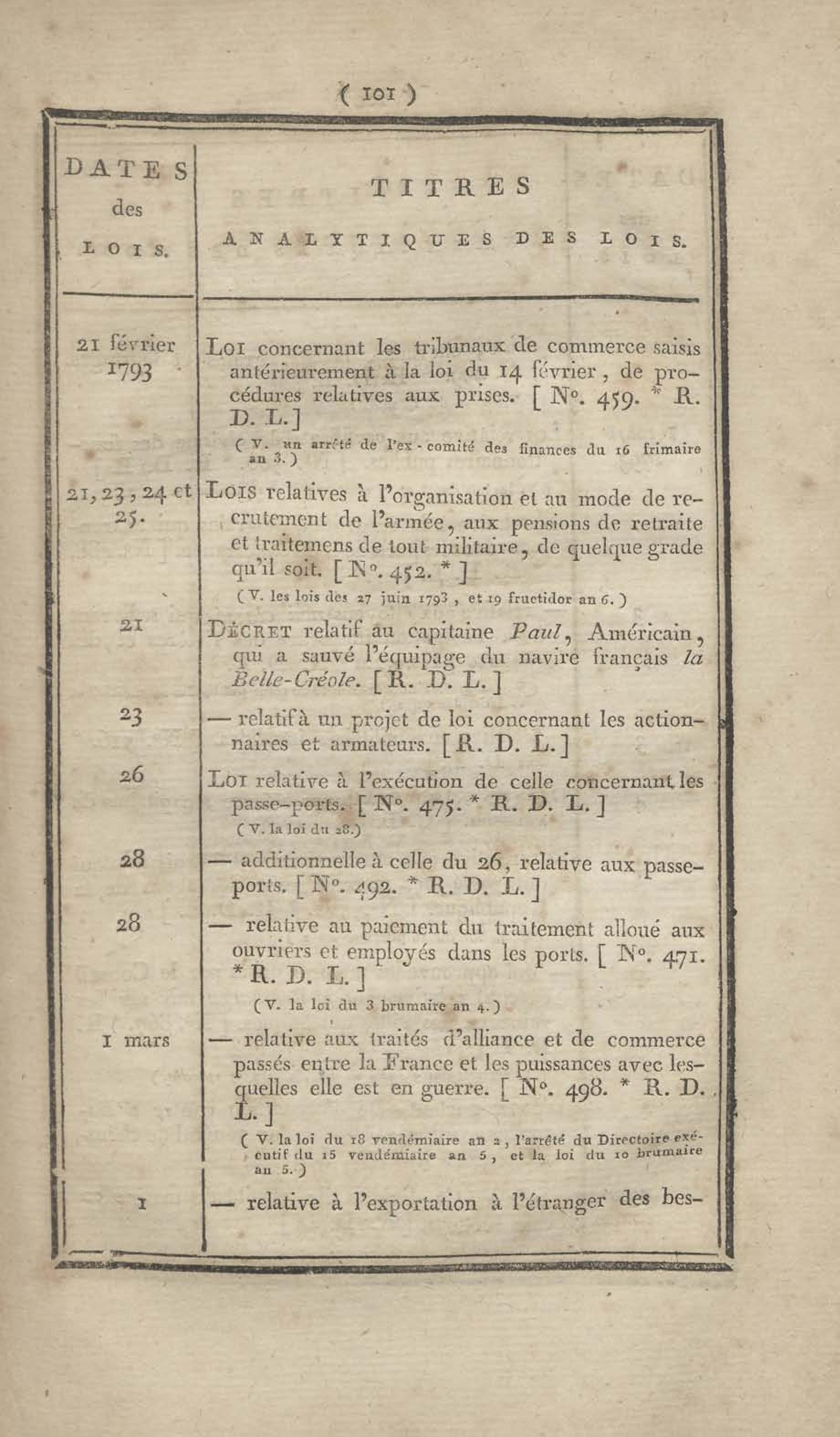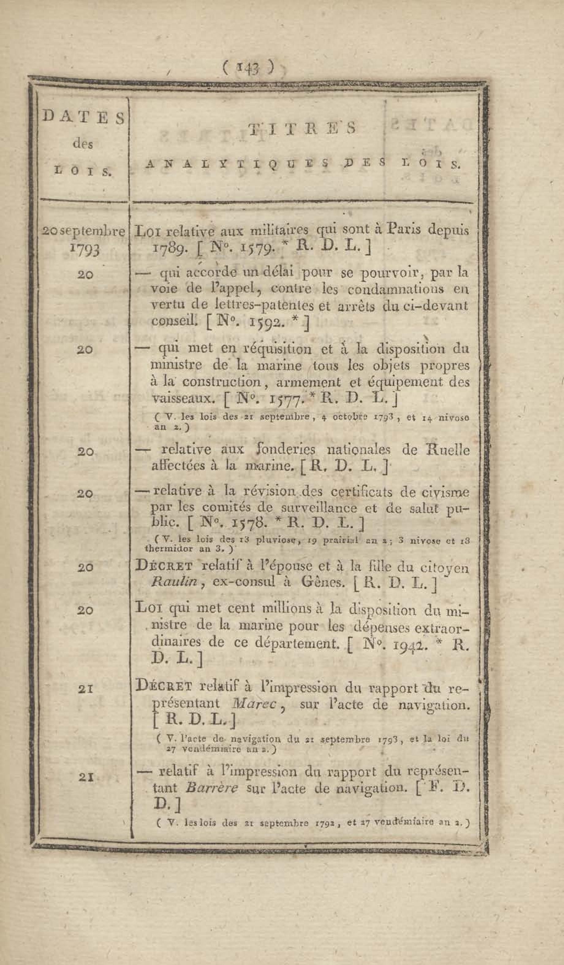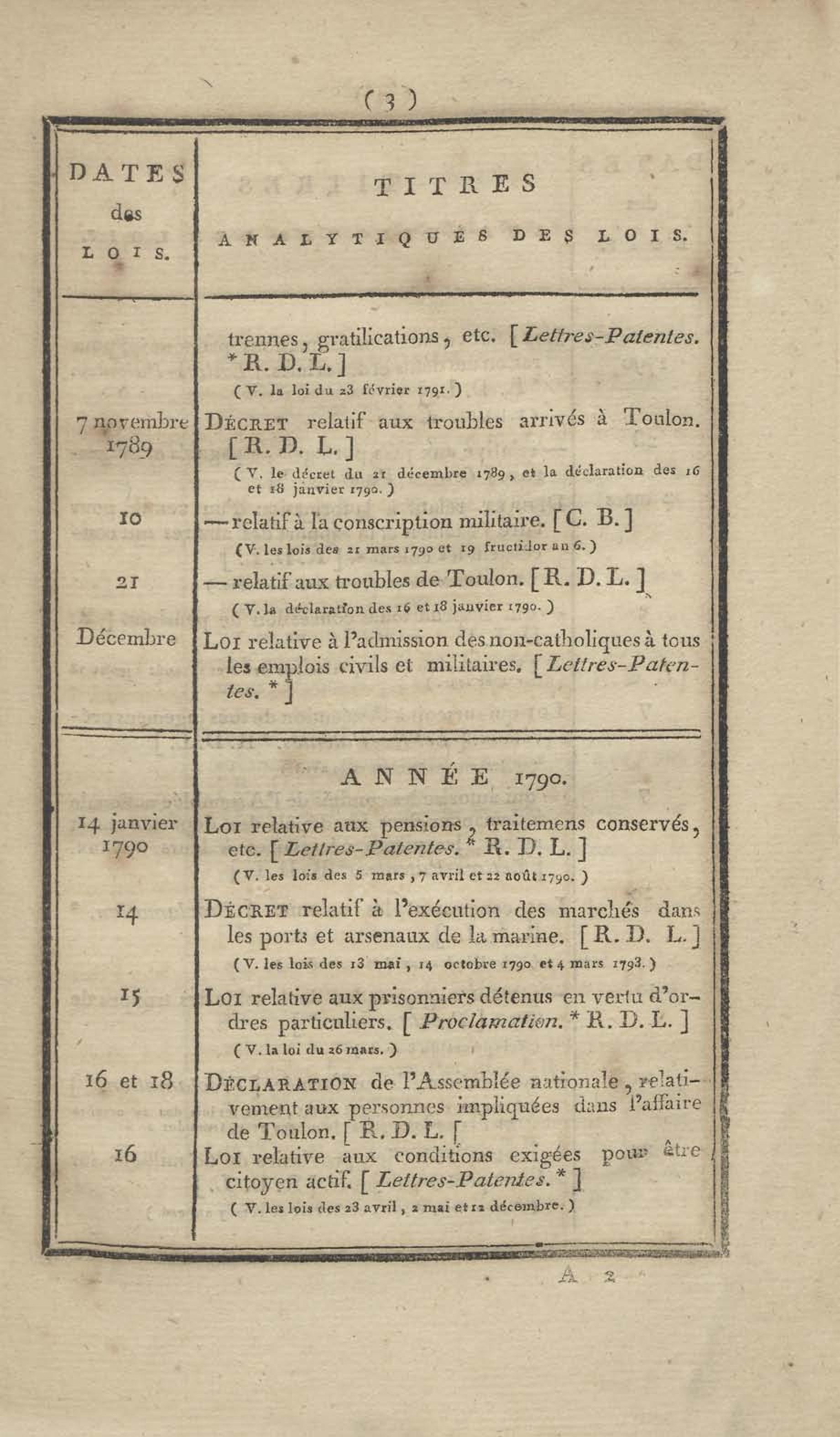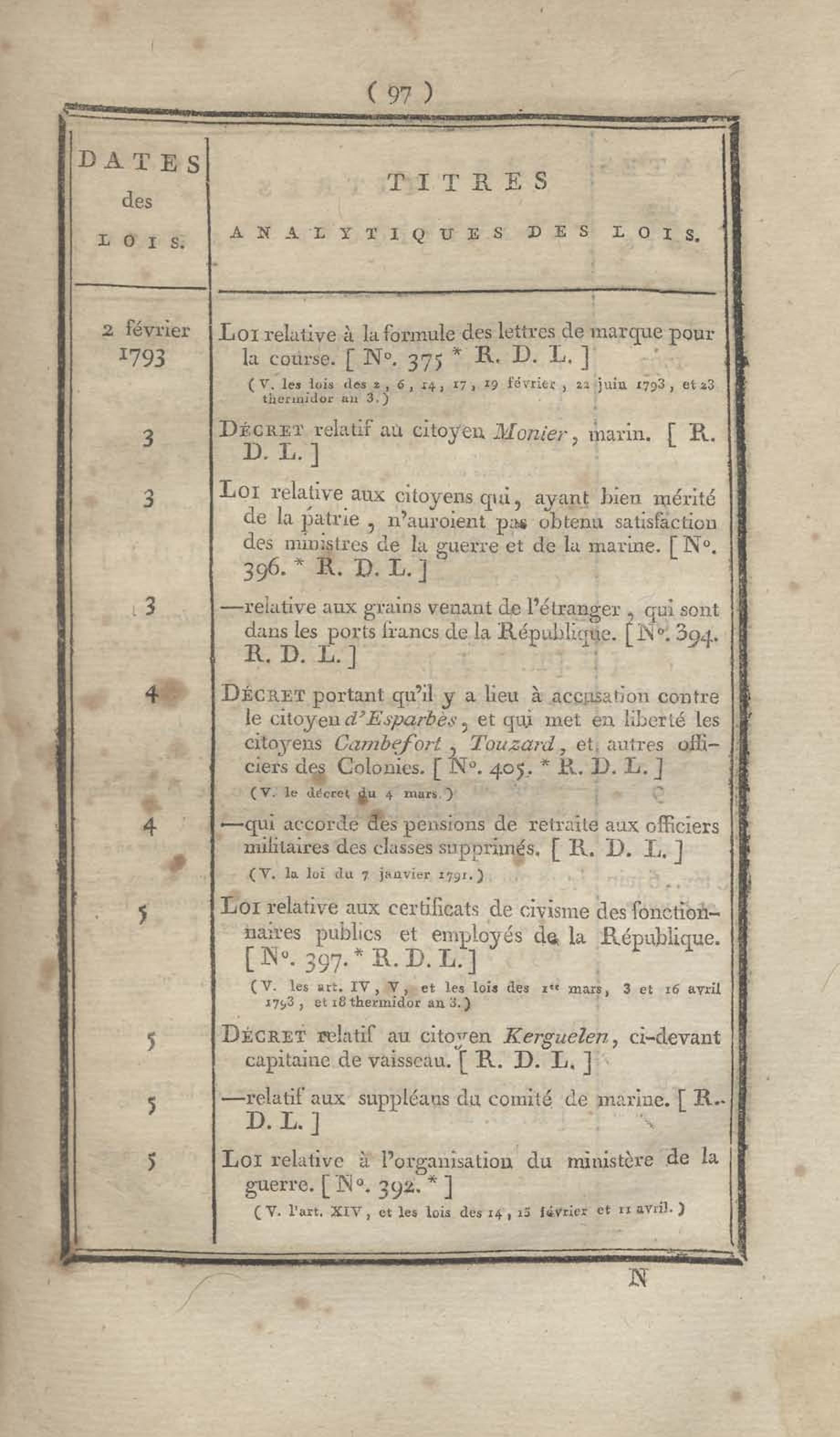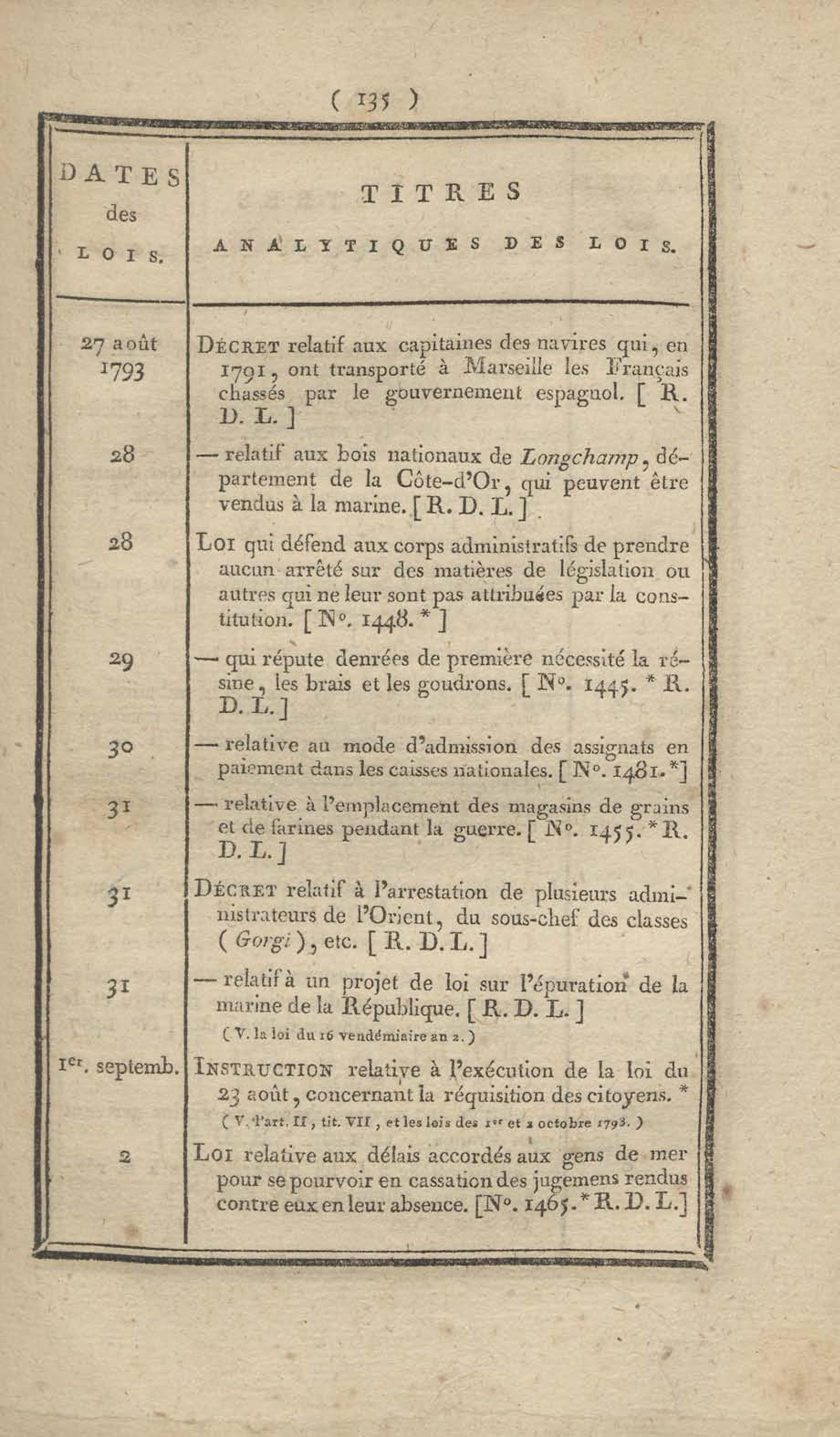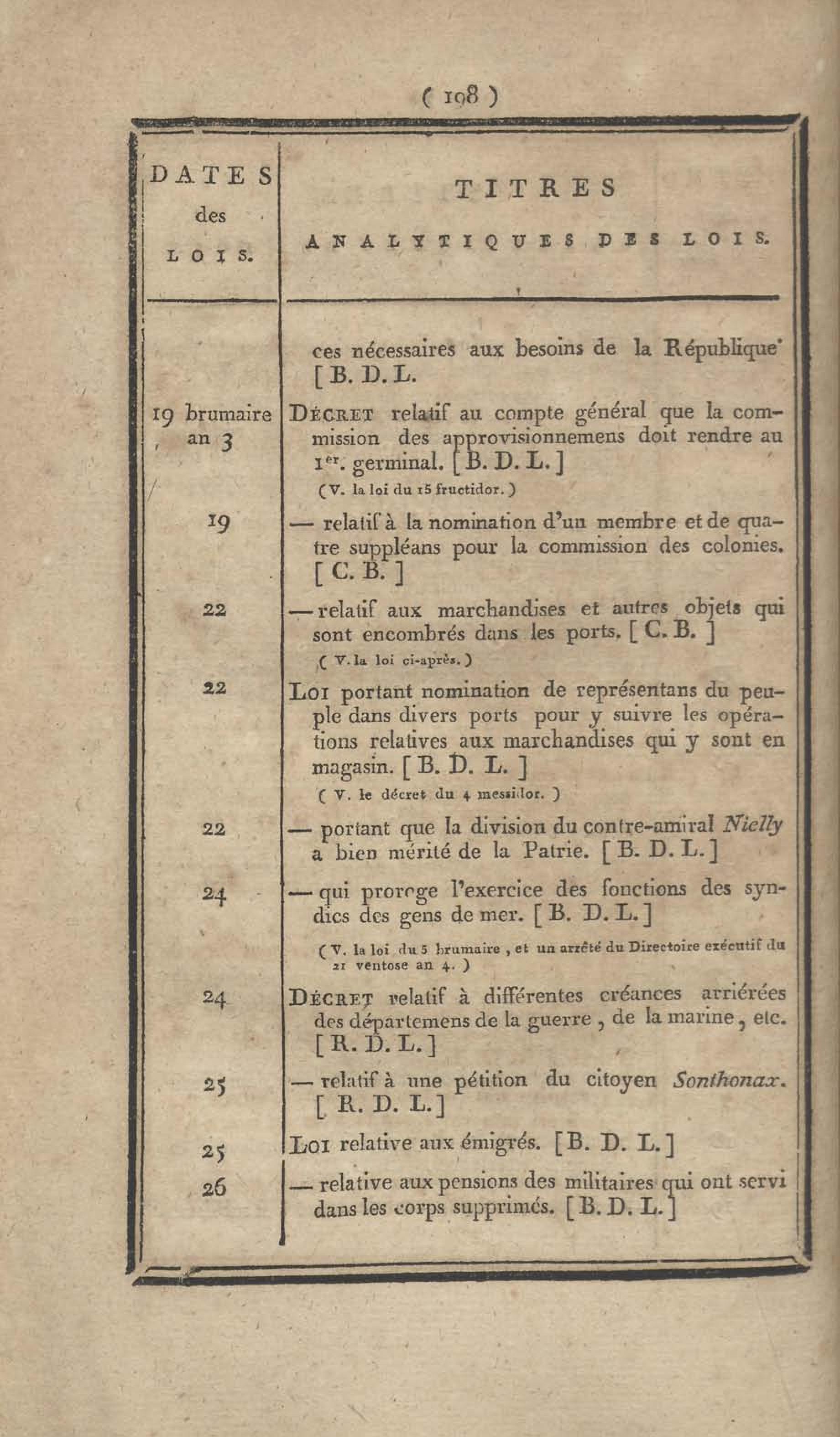 - Table chronologique et analytique des lois rendues depuis 1789 concernant la marine et les colonies