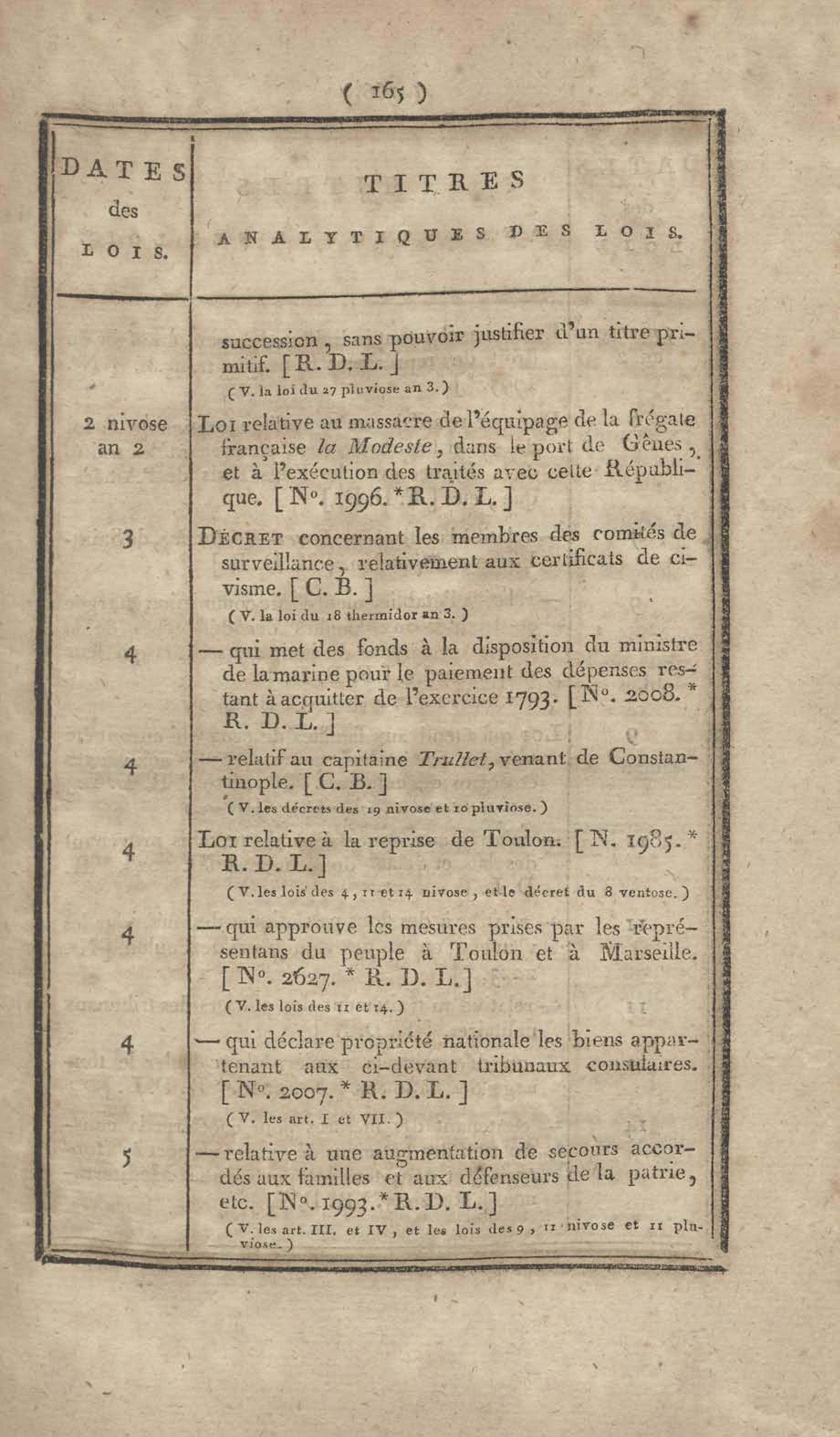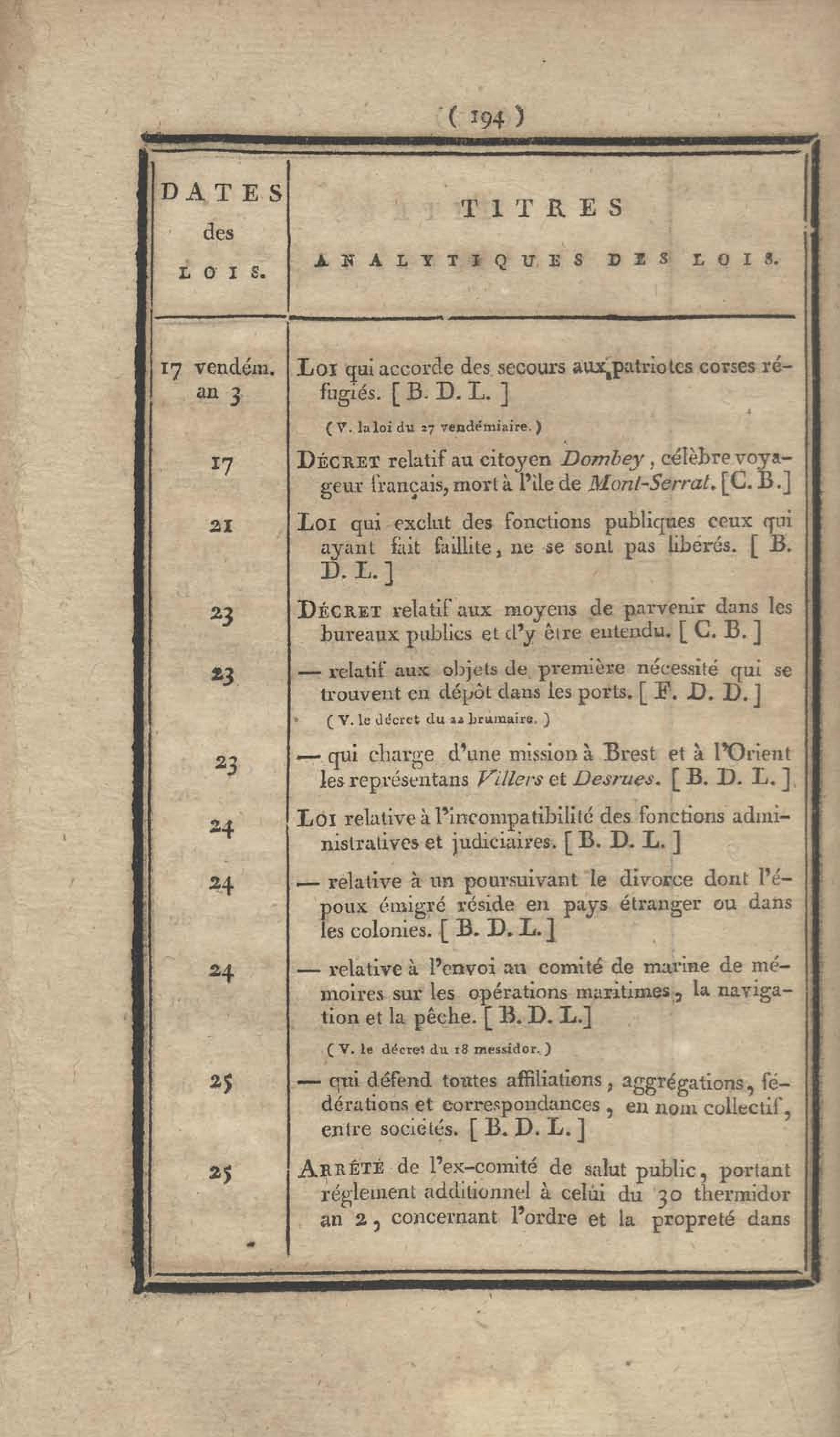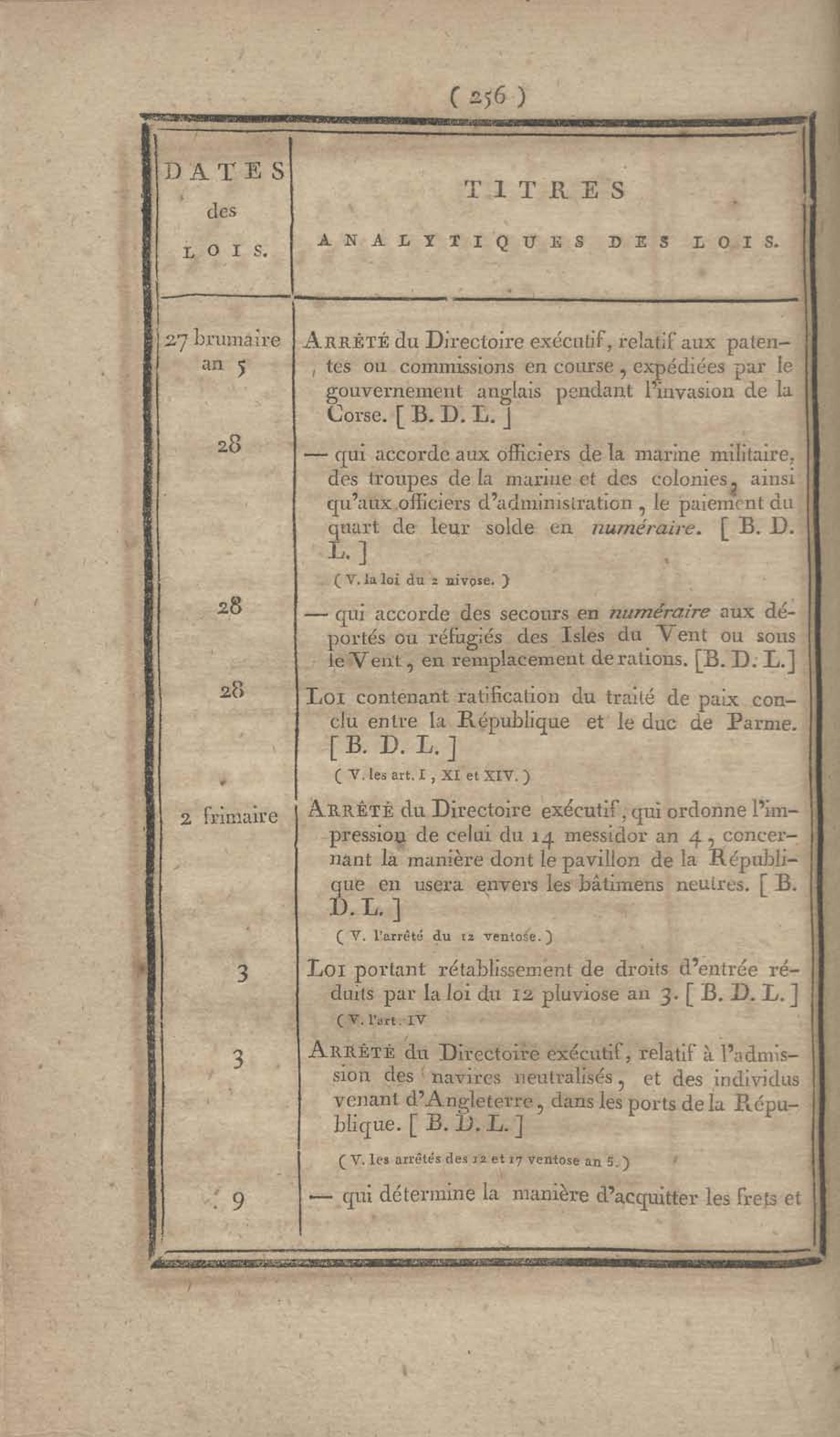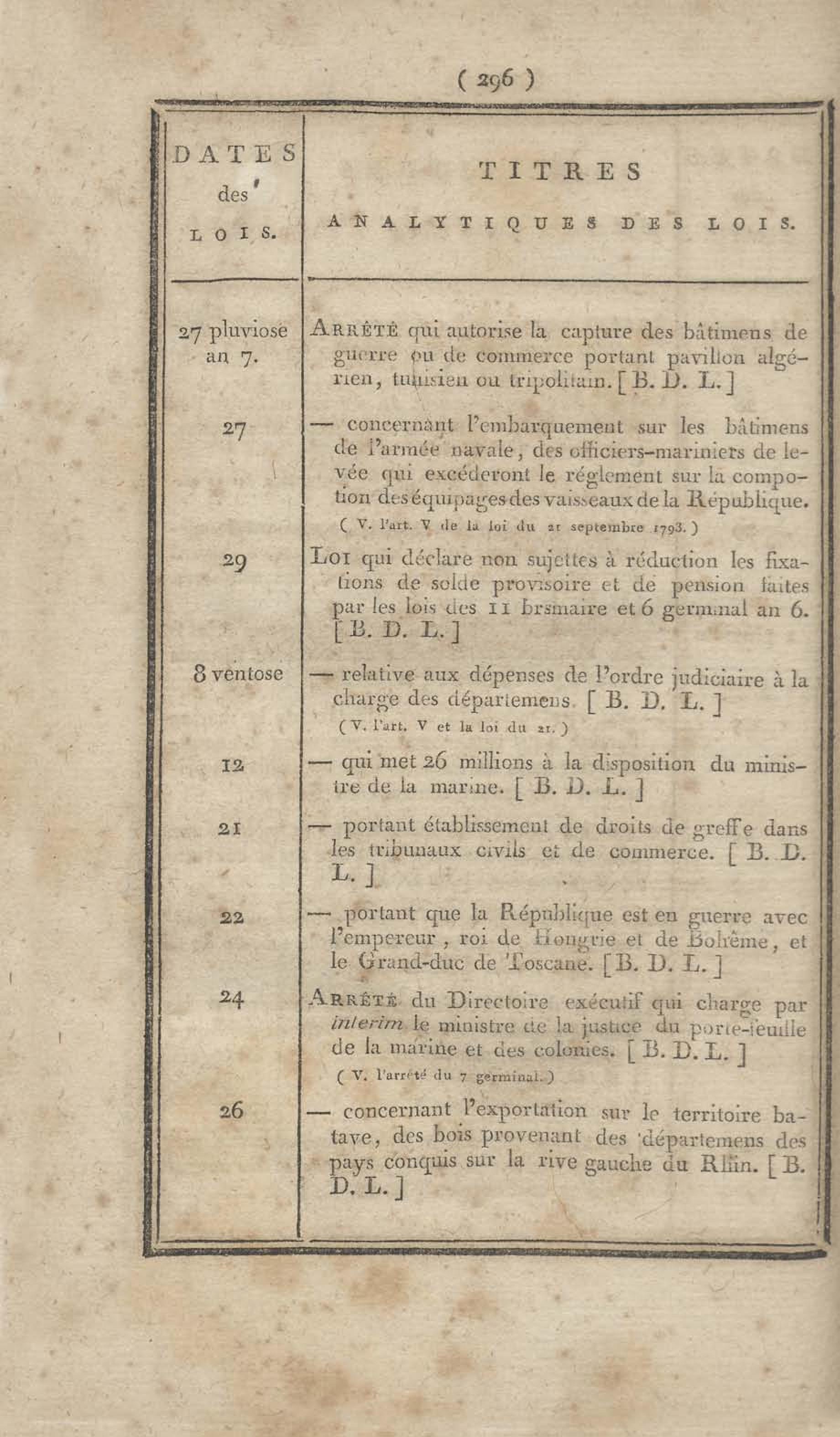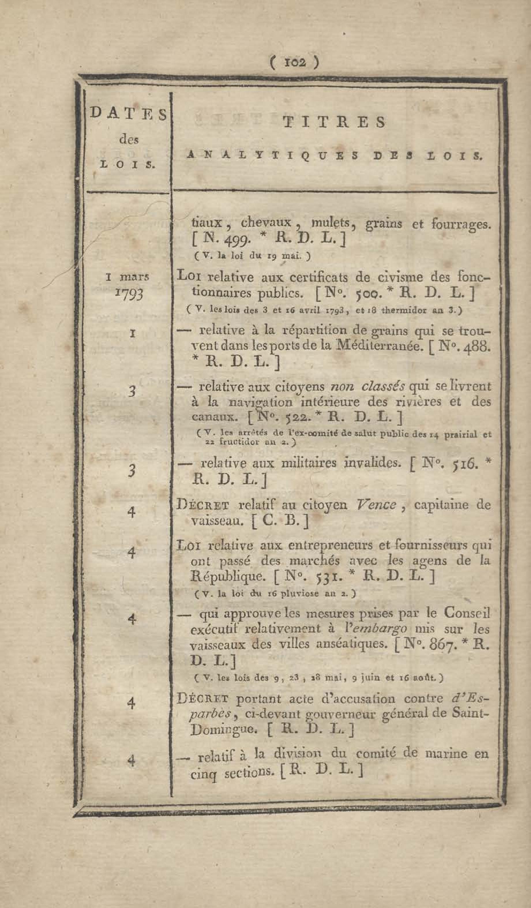 - Table chronologique et analytique des lois rendues depuis 1789 concernant la marine et les colonies