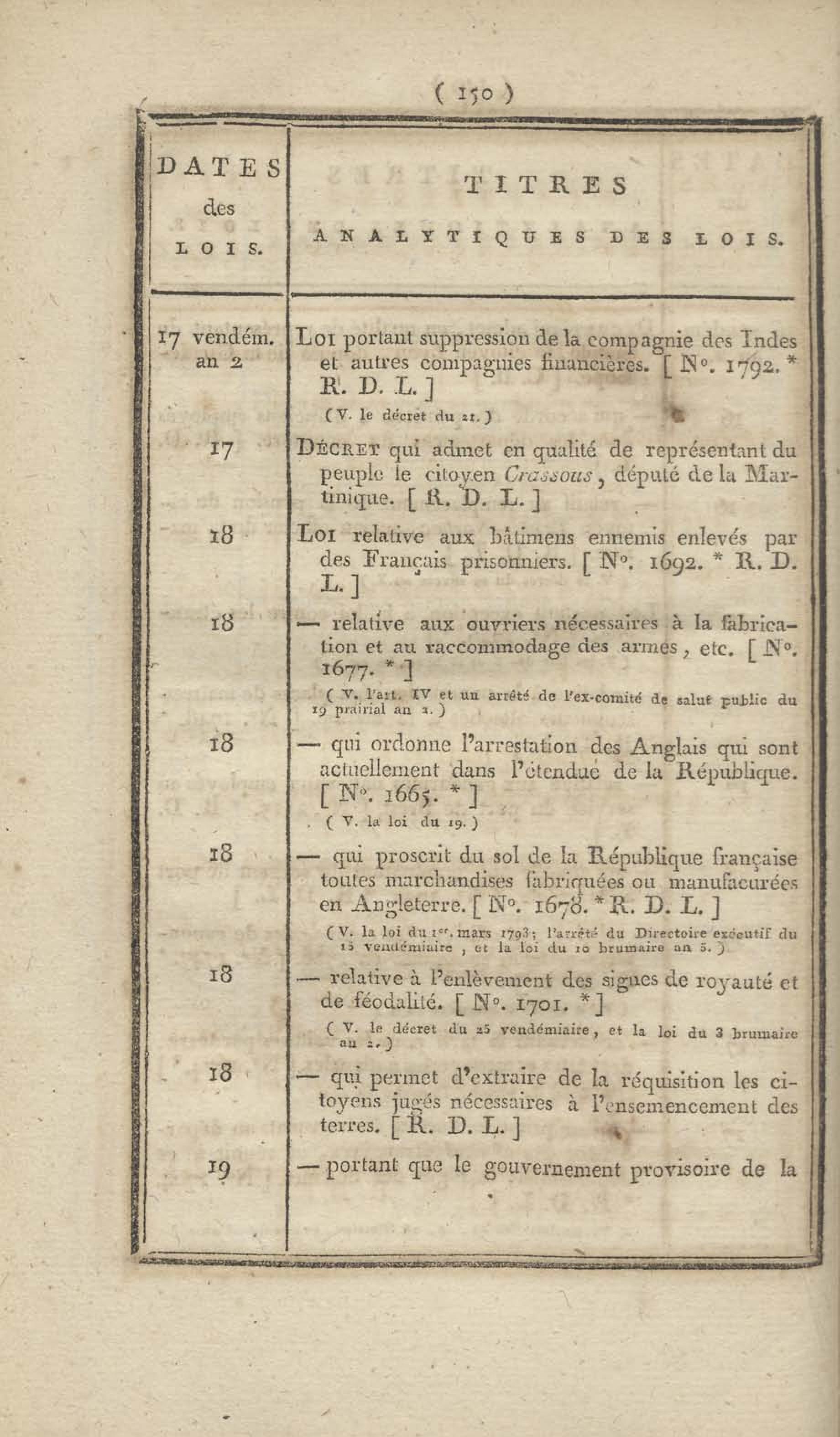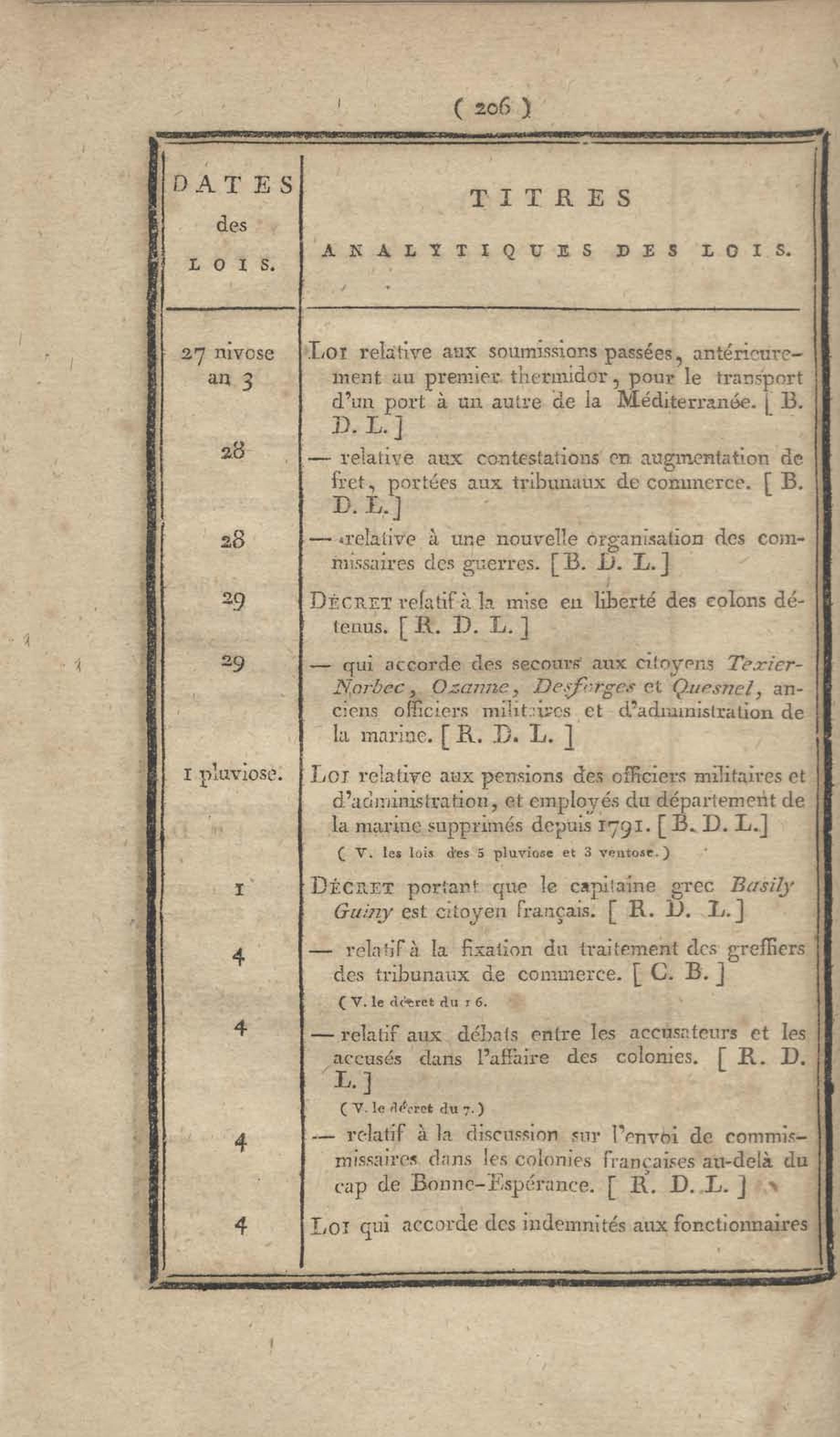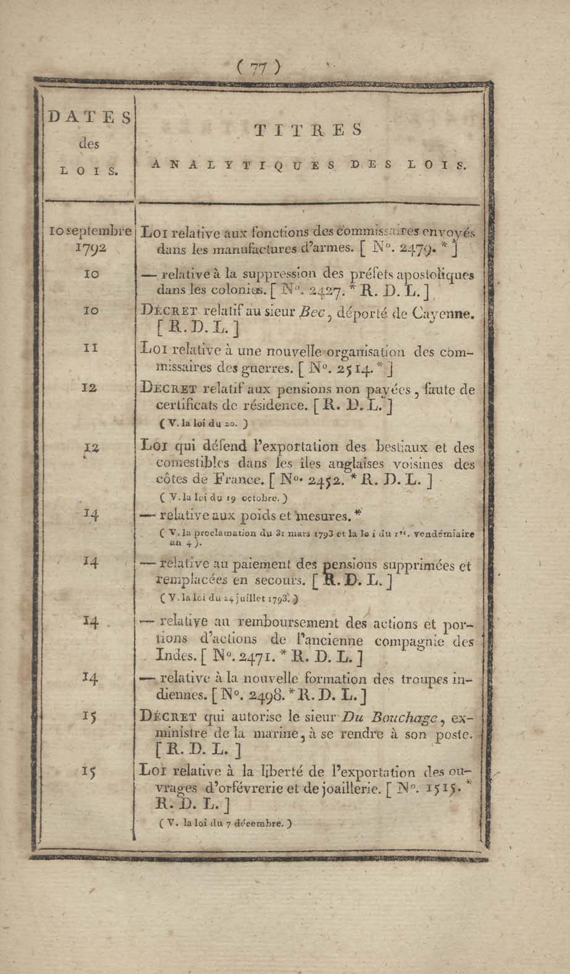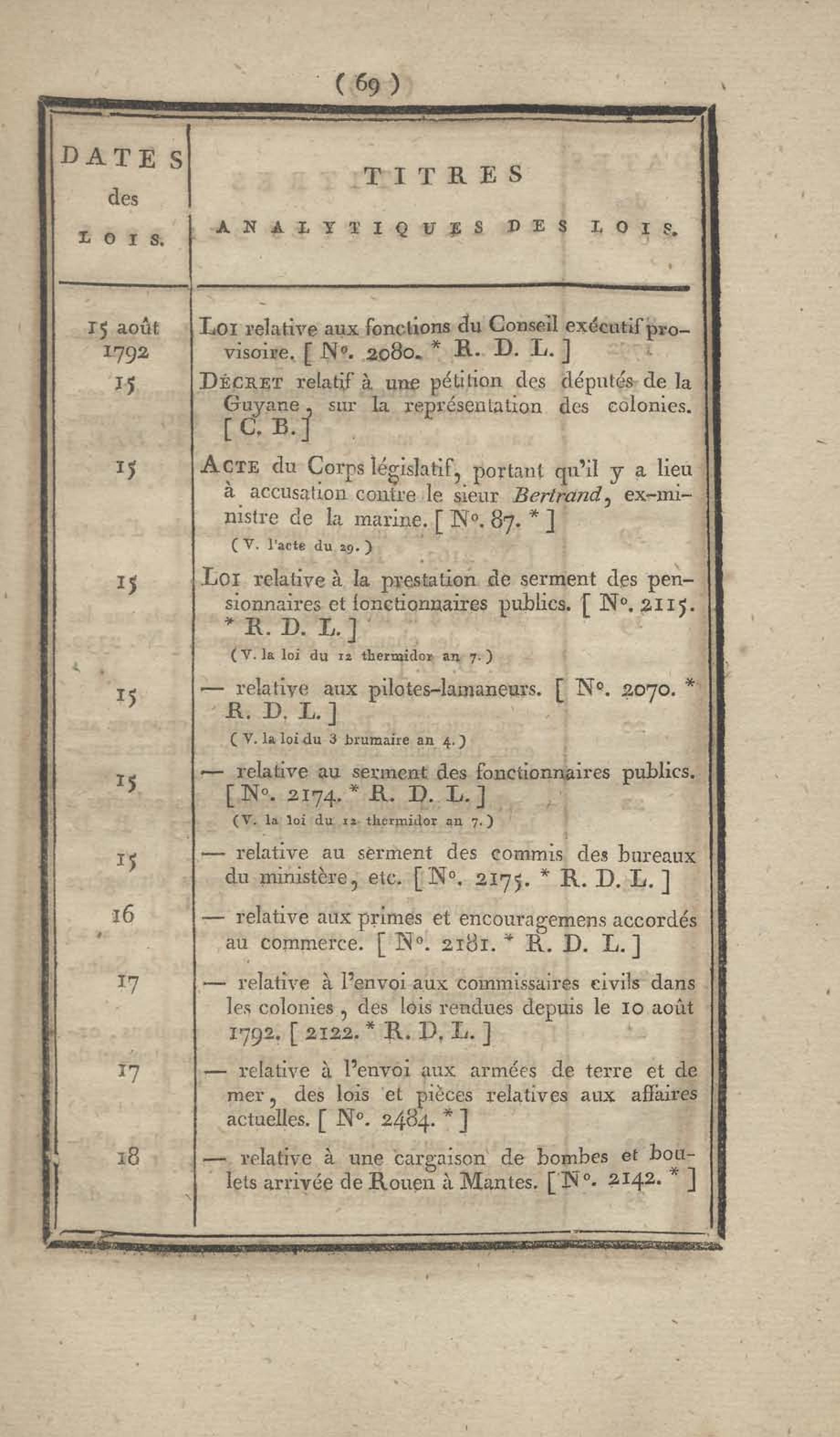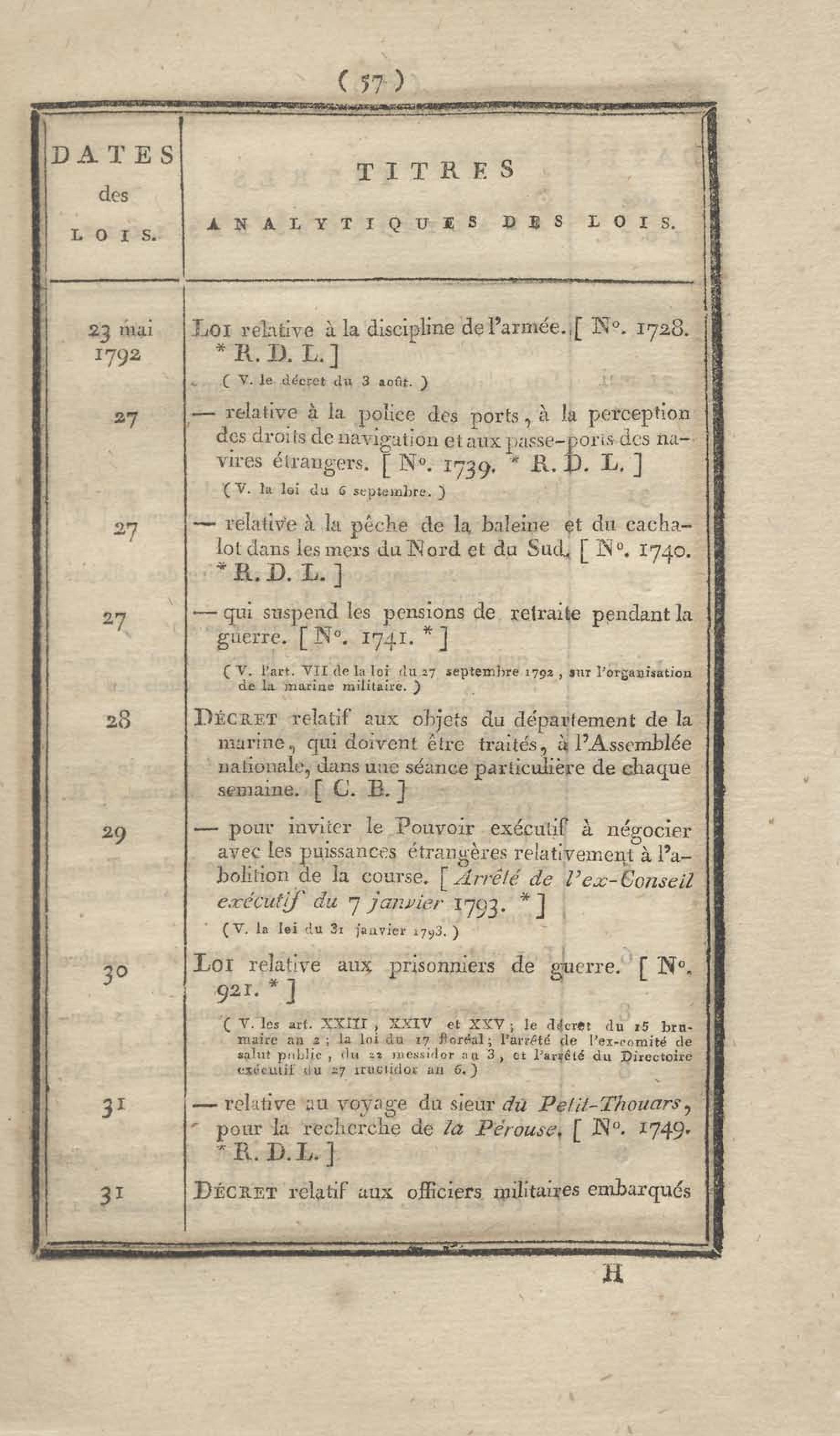 - Table chronologique et analytique des lois rendues depuis 1789 concernant la marine et les colonies