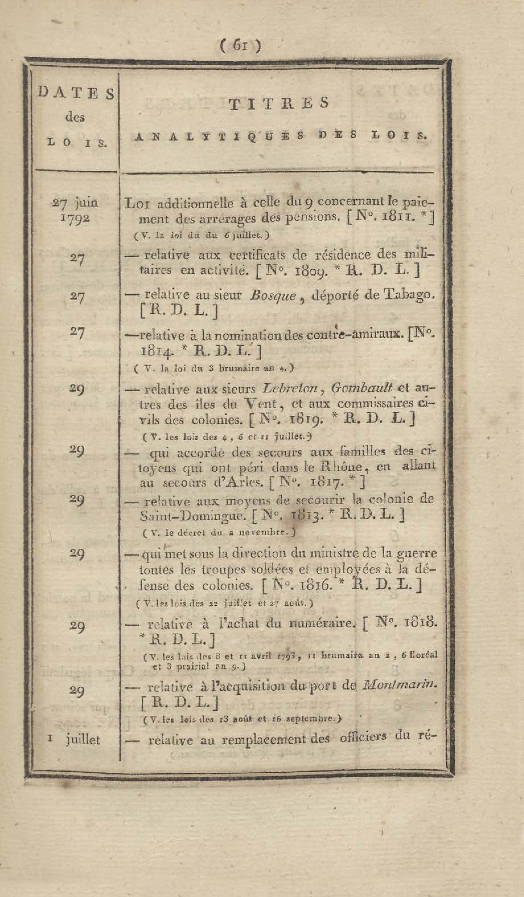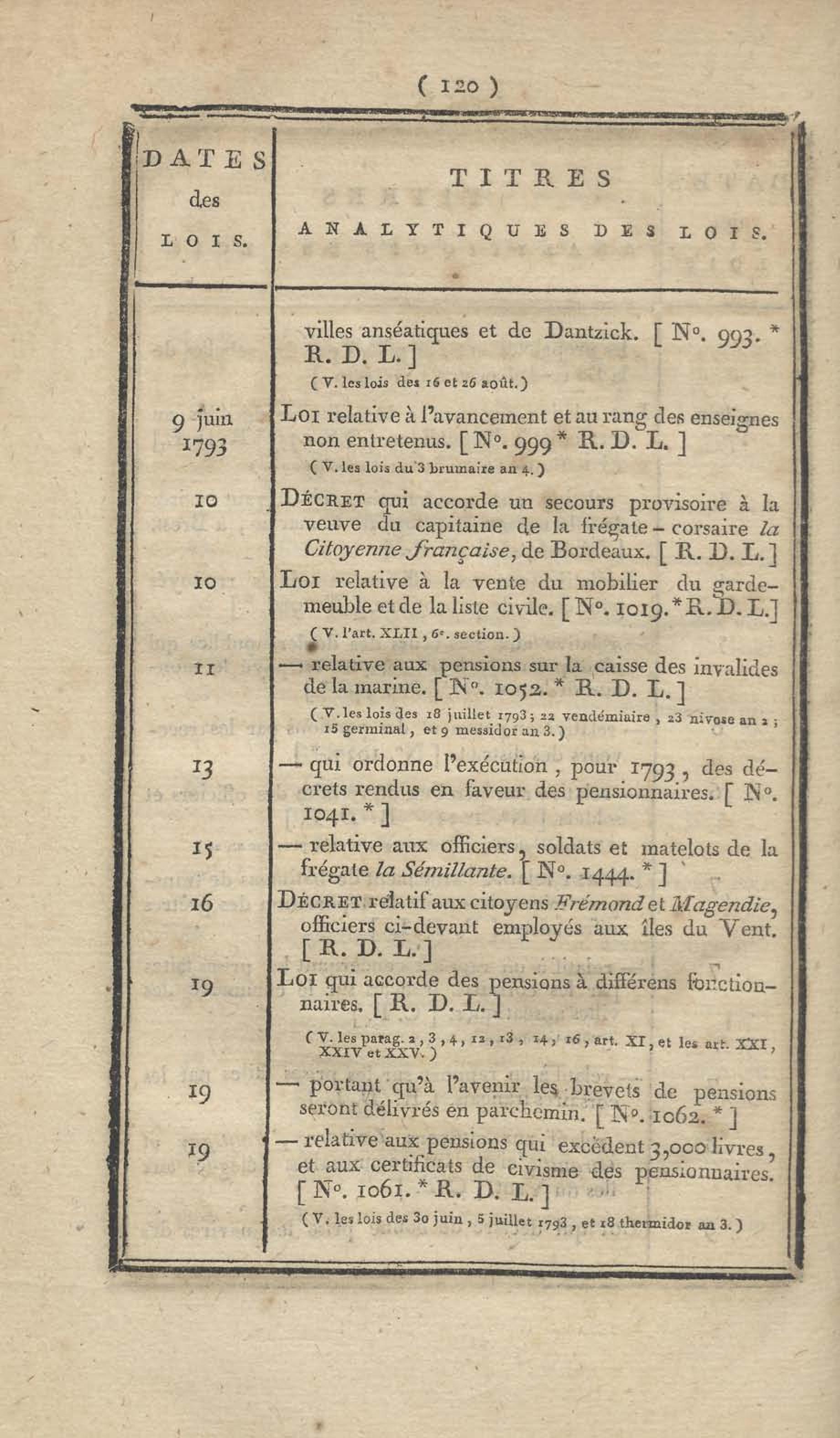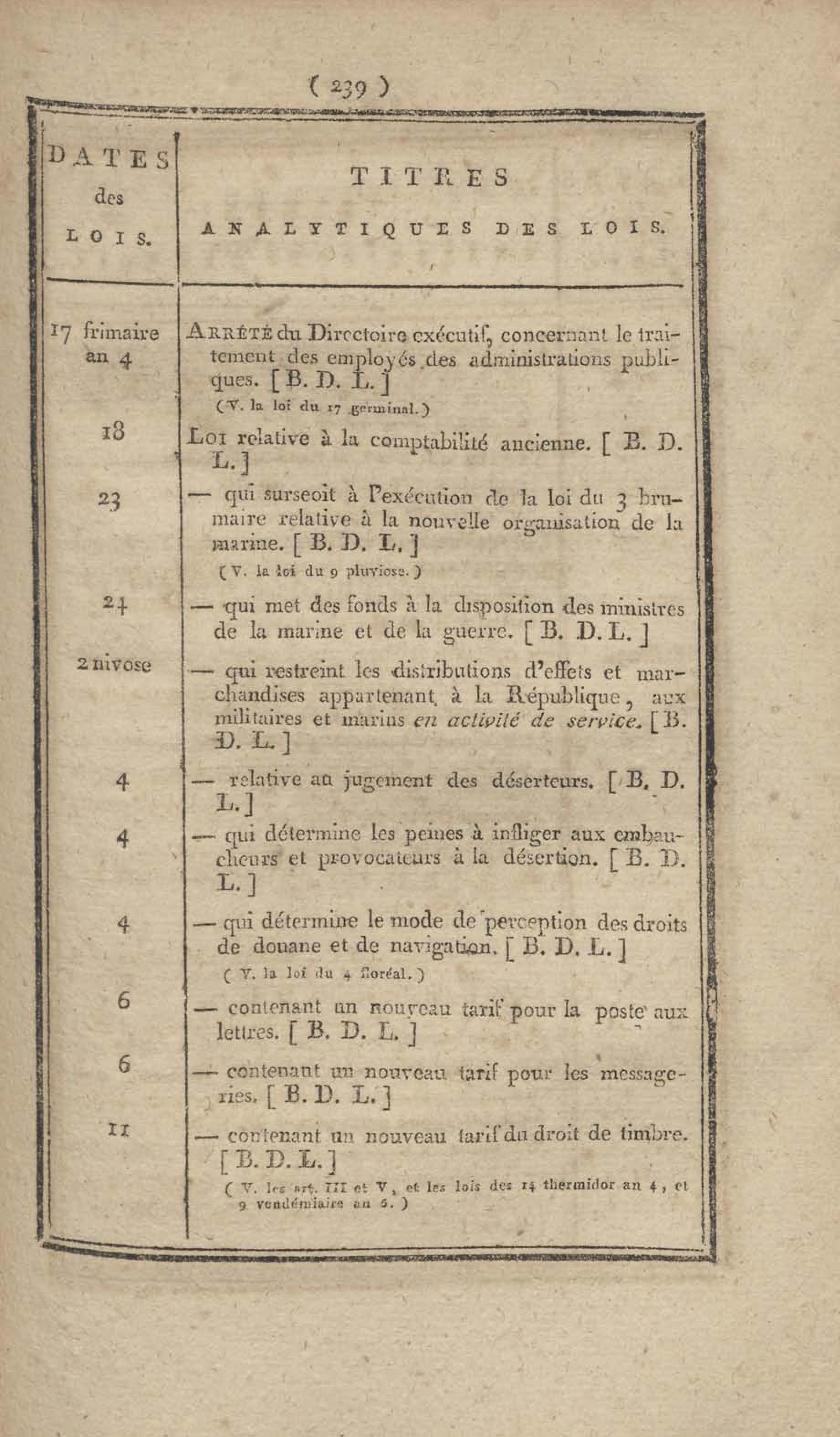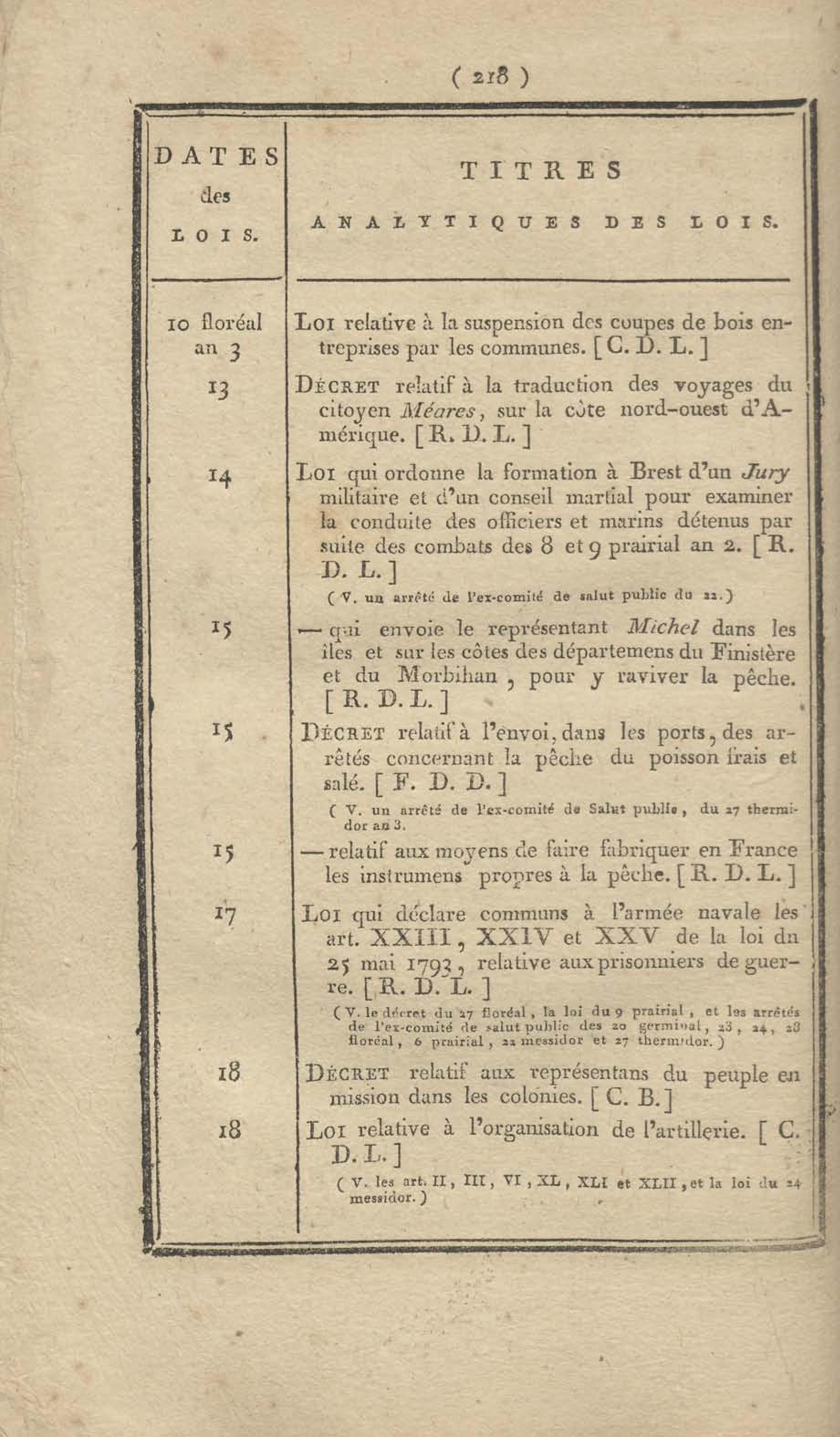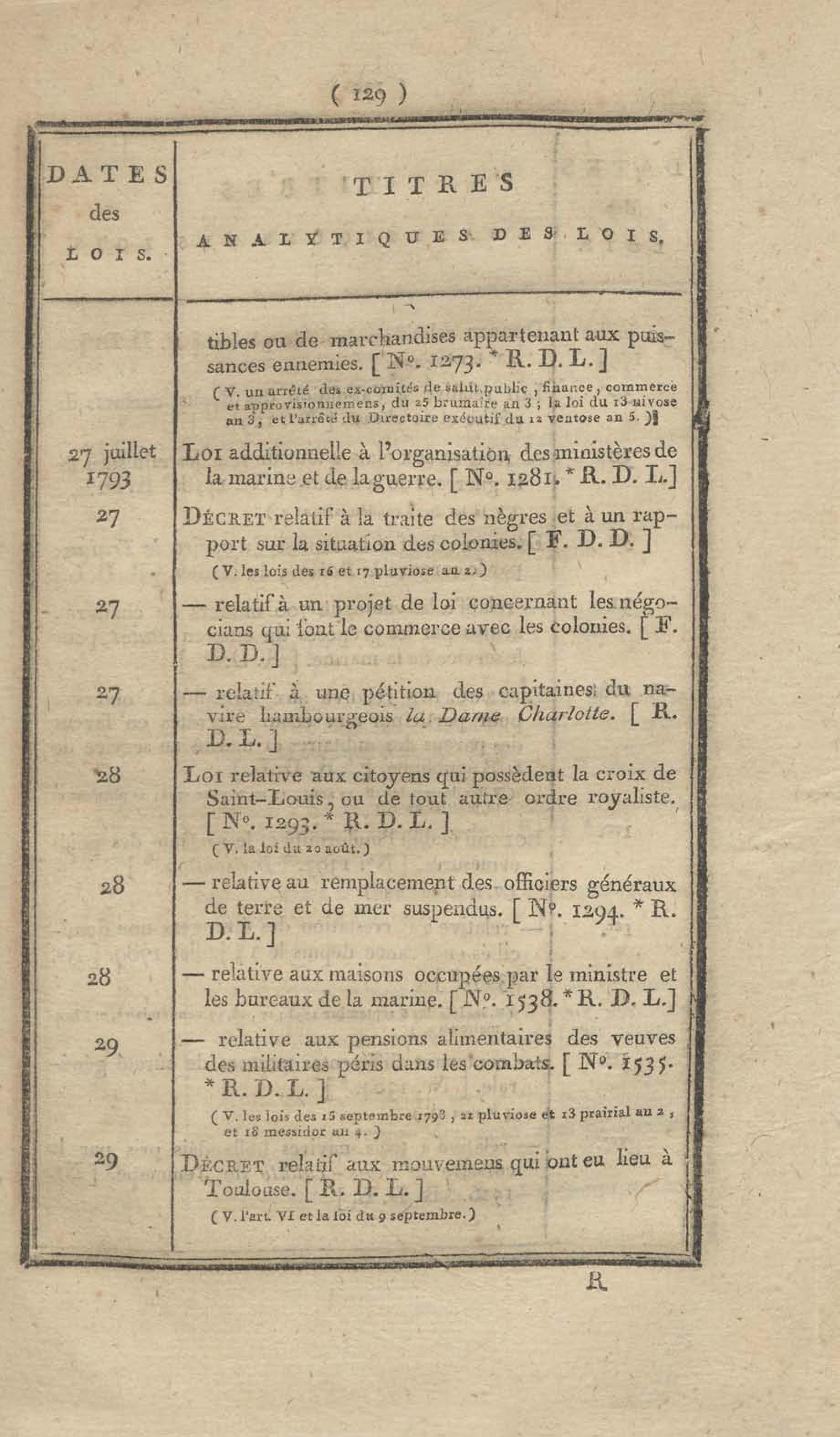 - Table chronologique et analytique des lois rendues depuis 1789 concernant la marine et les colonies