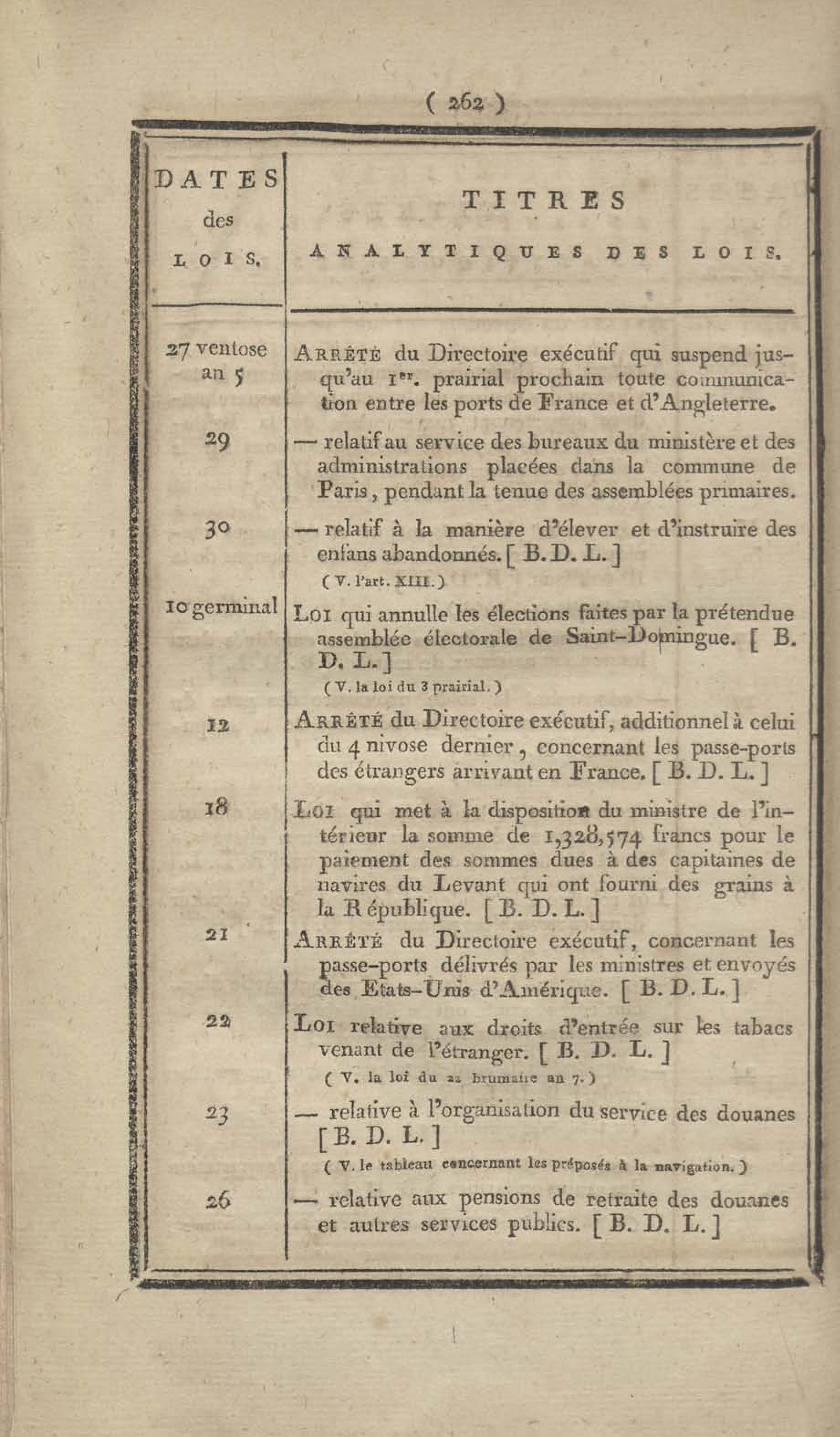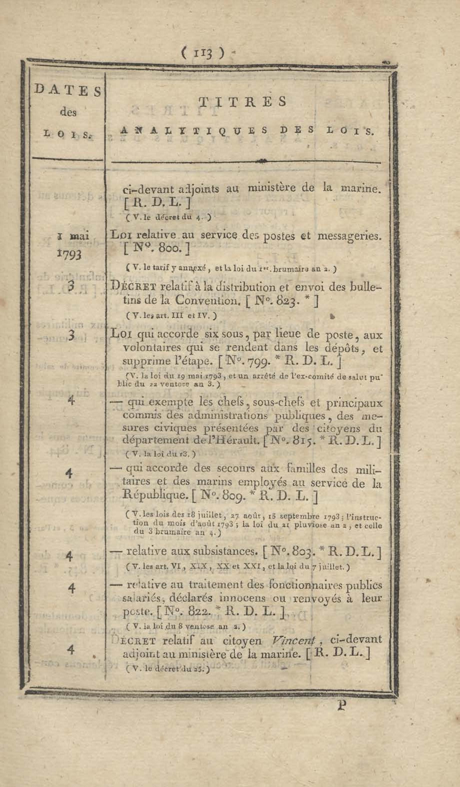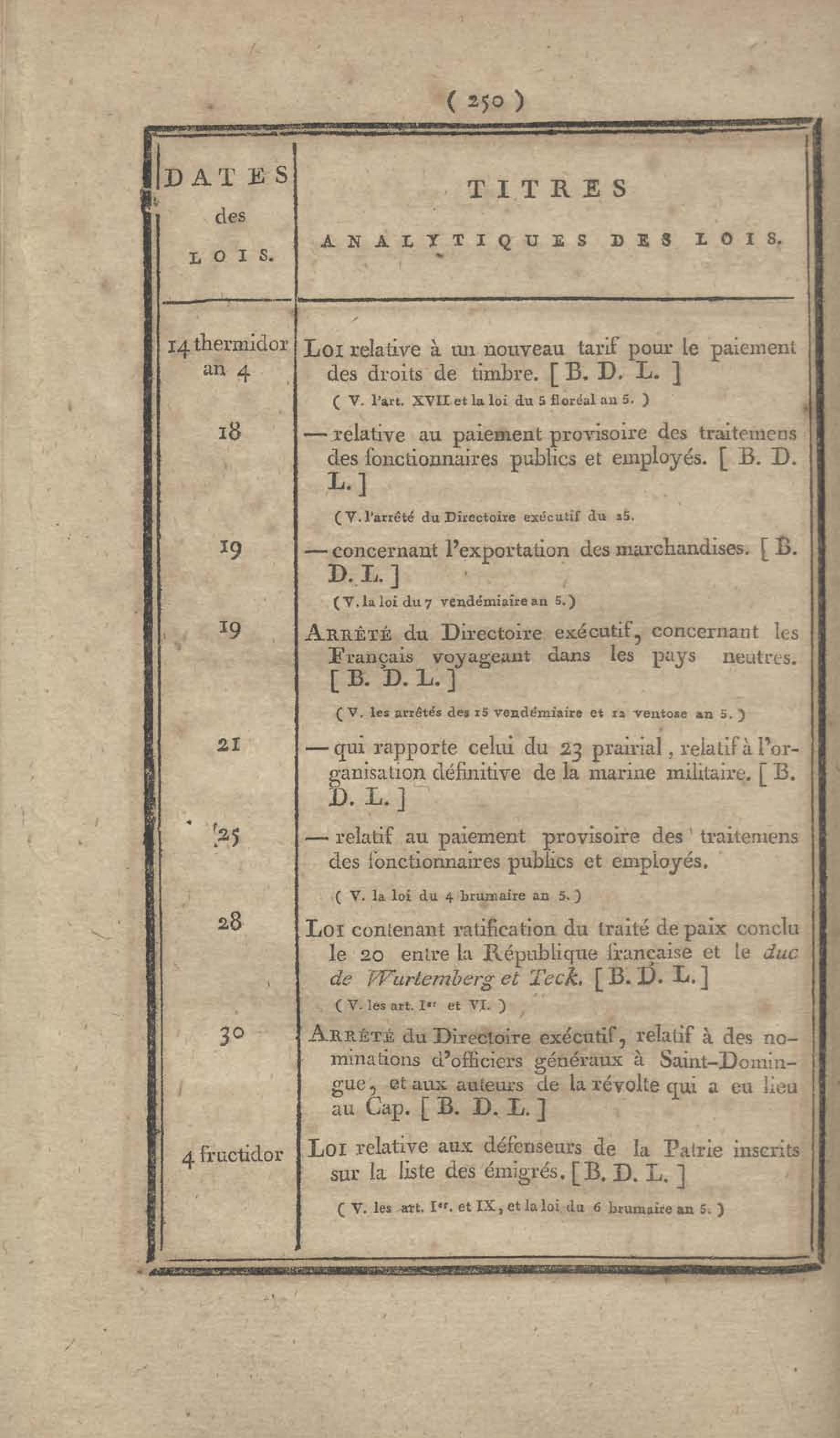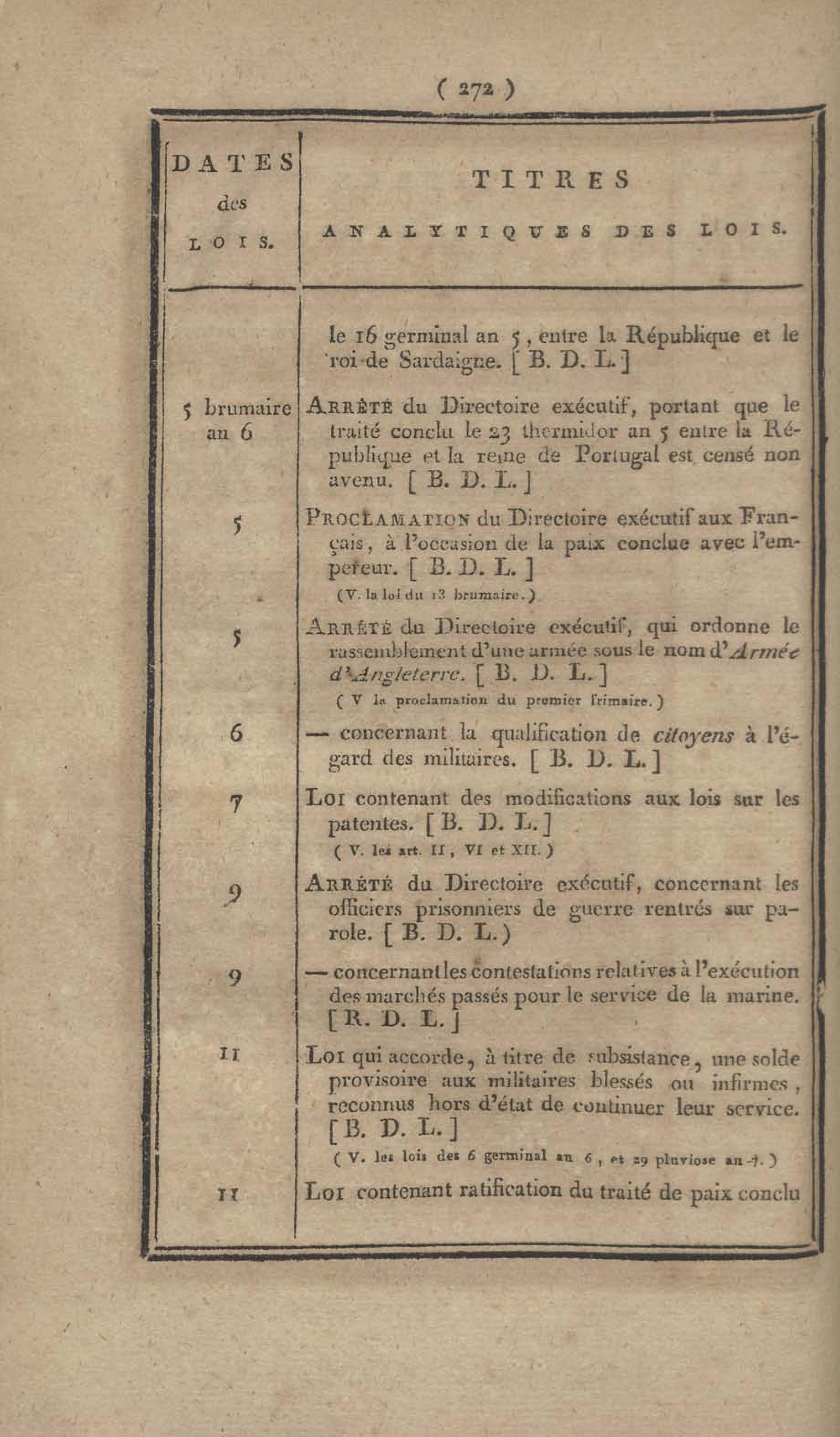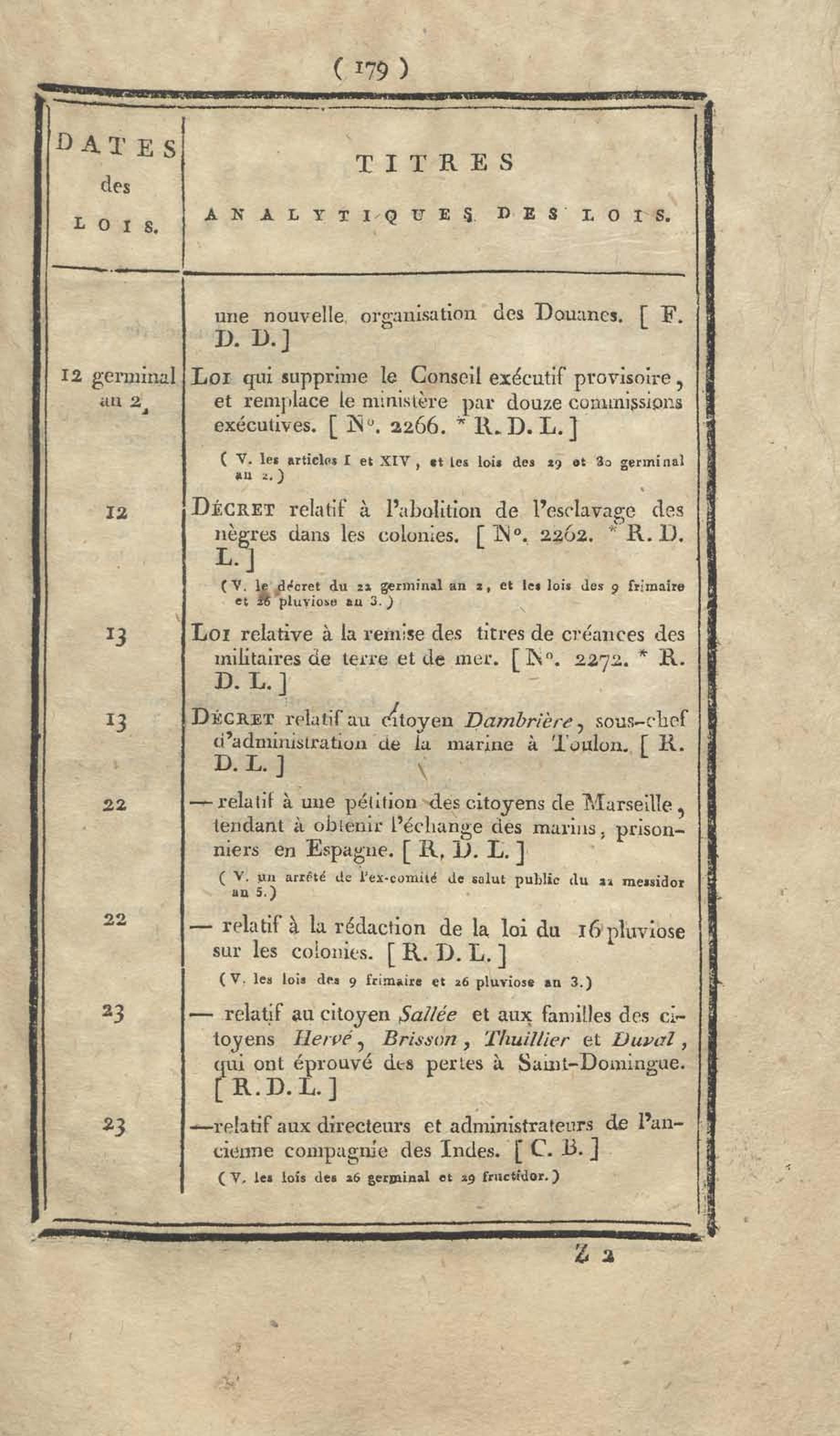 - Table chronologique et analytique des lois rendues depuis 1789 concernant la marine et les colonies