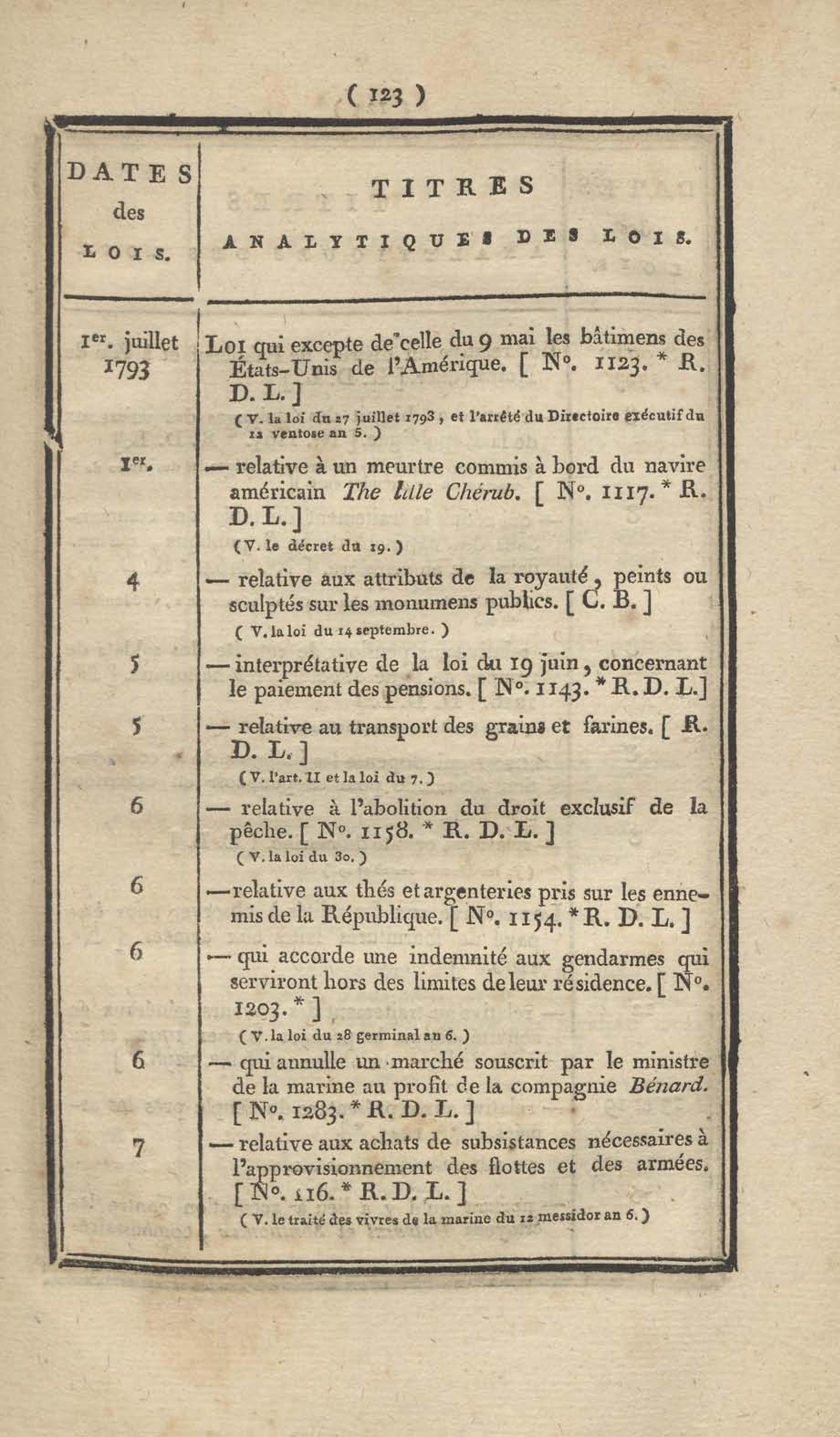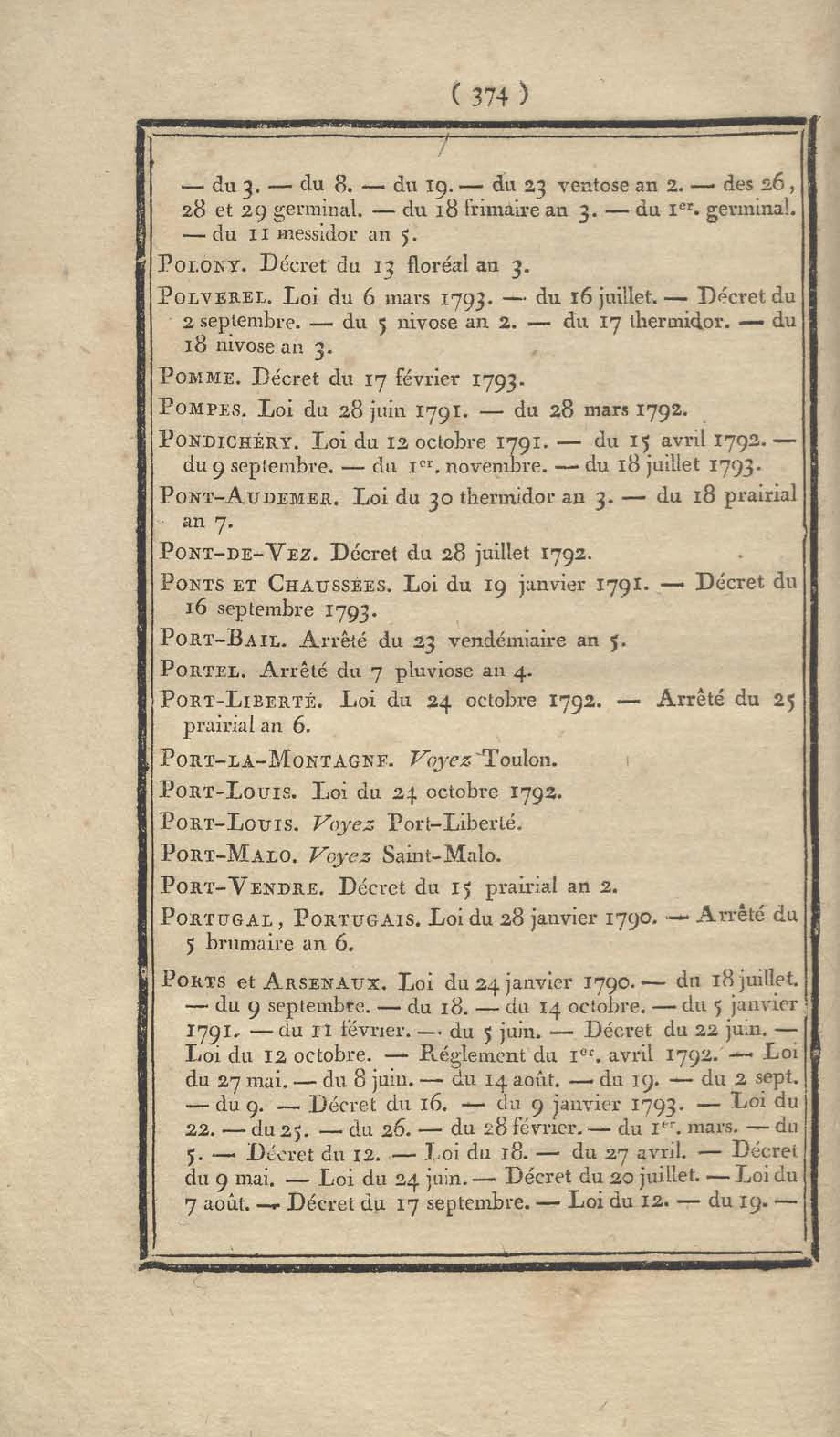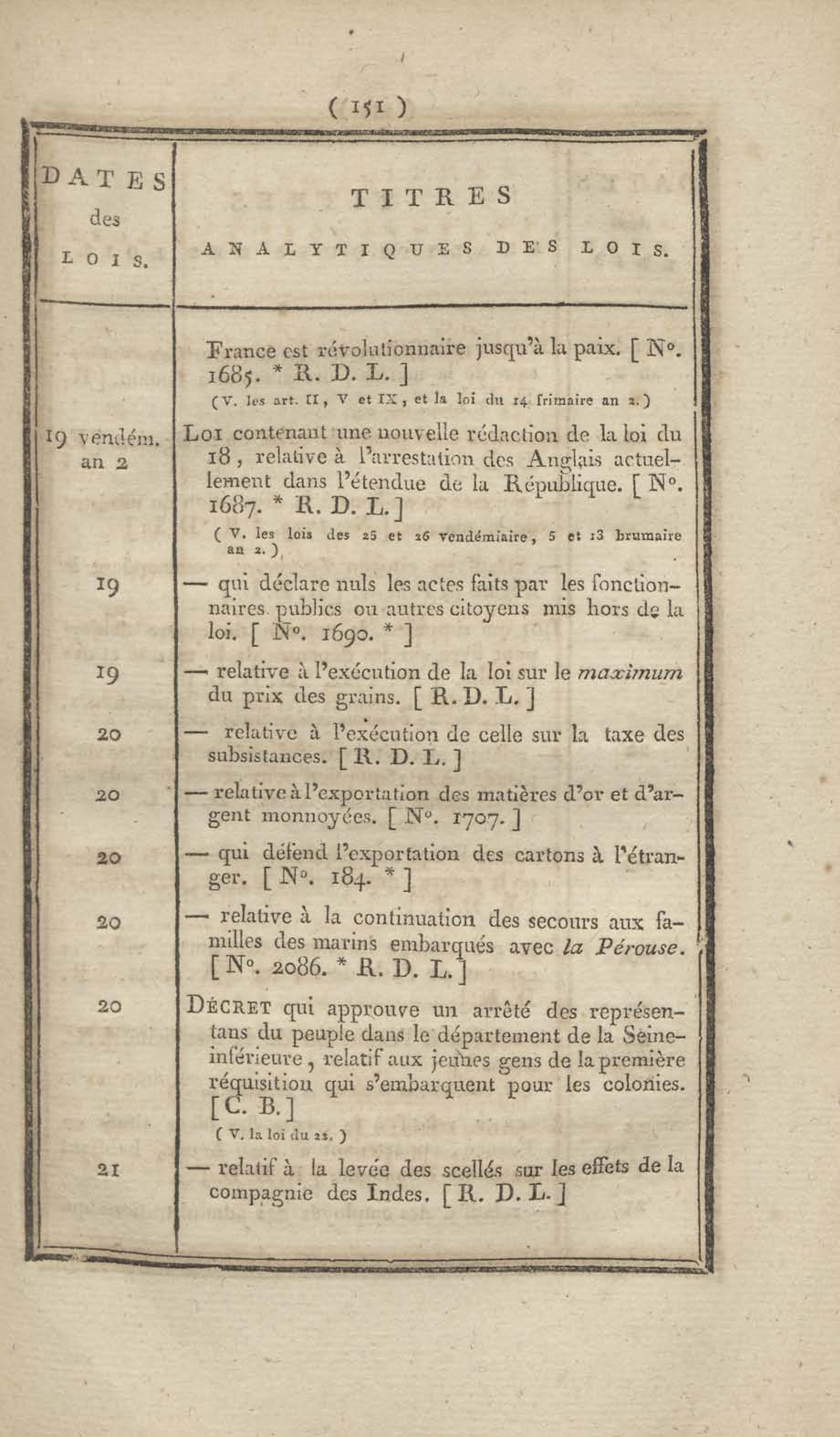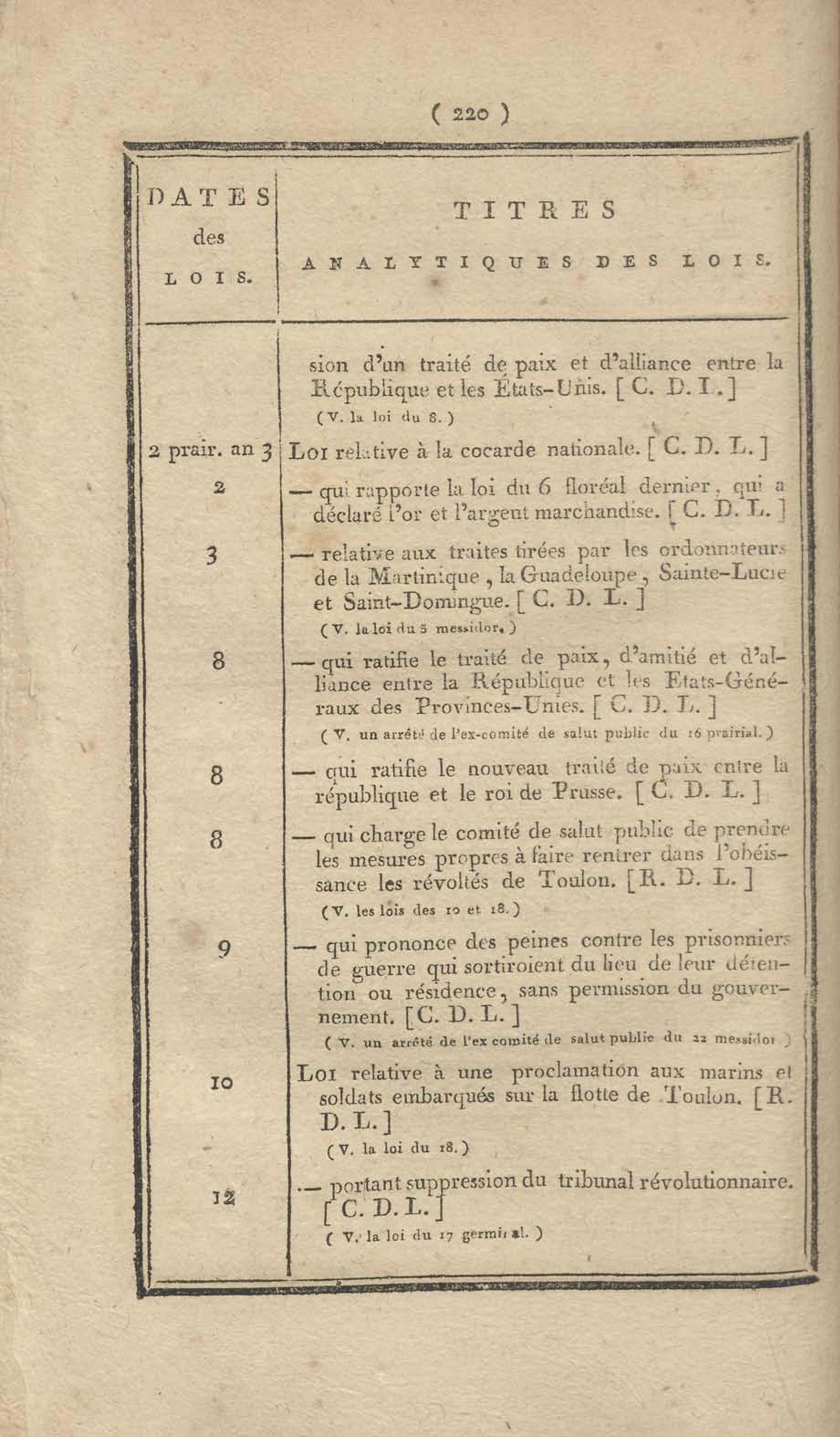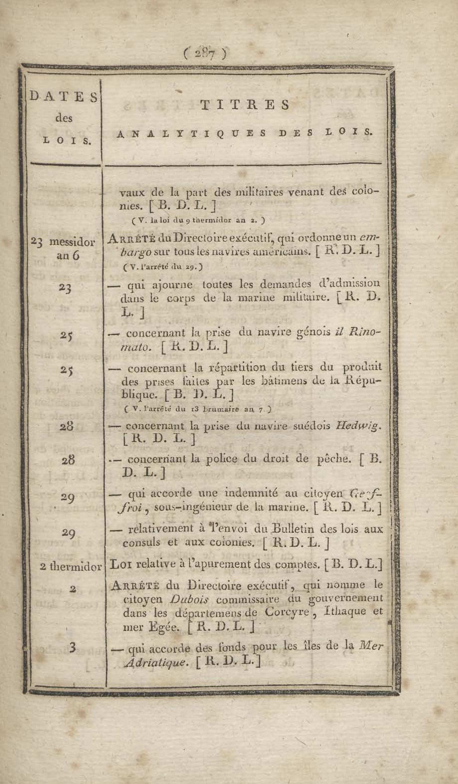 - Table chronologique et analytique des lois rendues depuis 1789 concernant la marine et les colonies