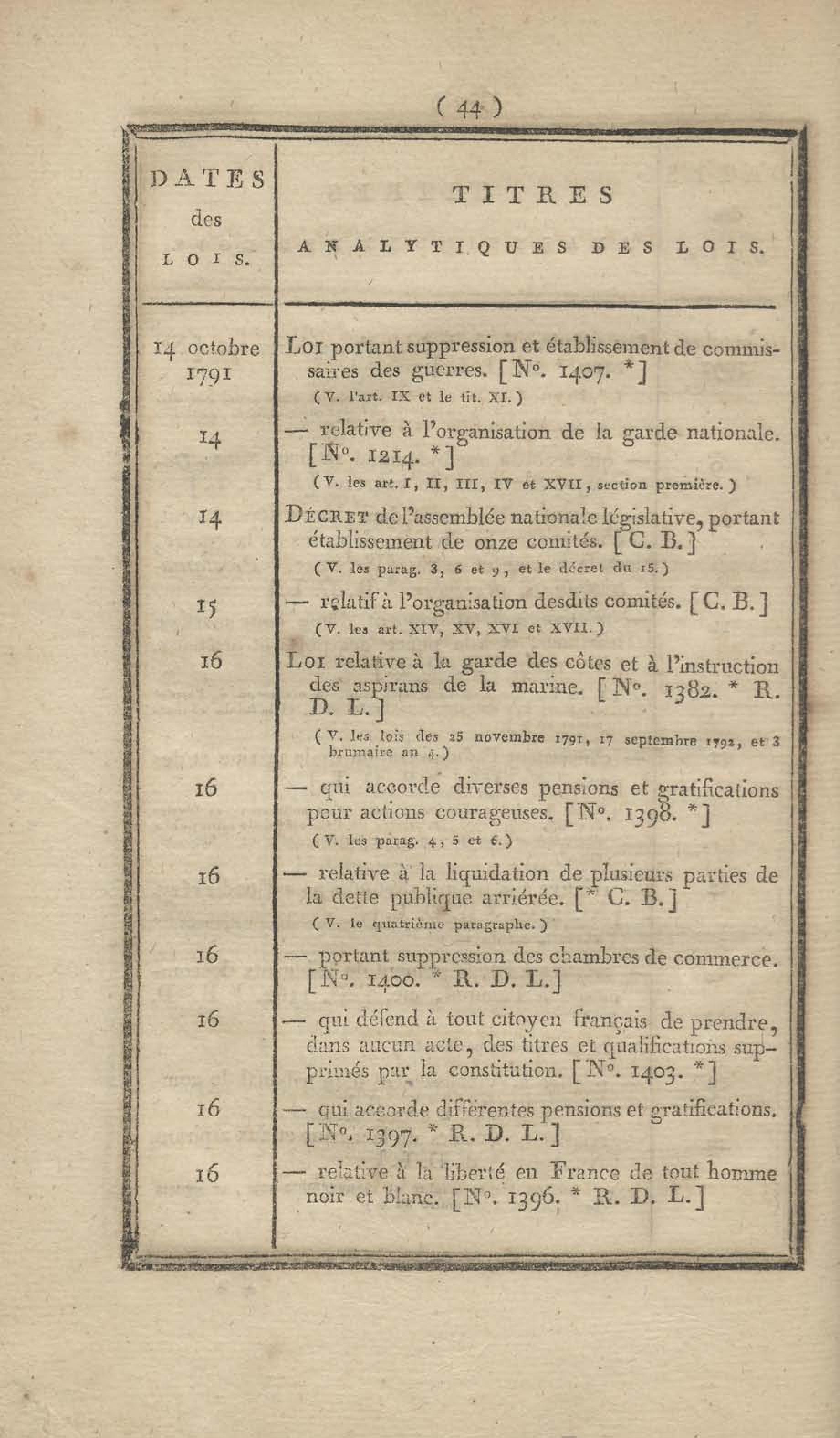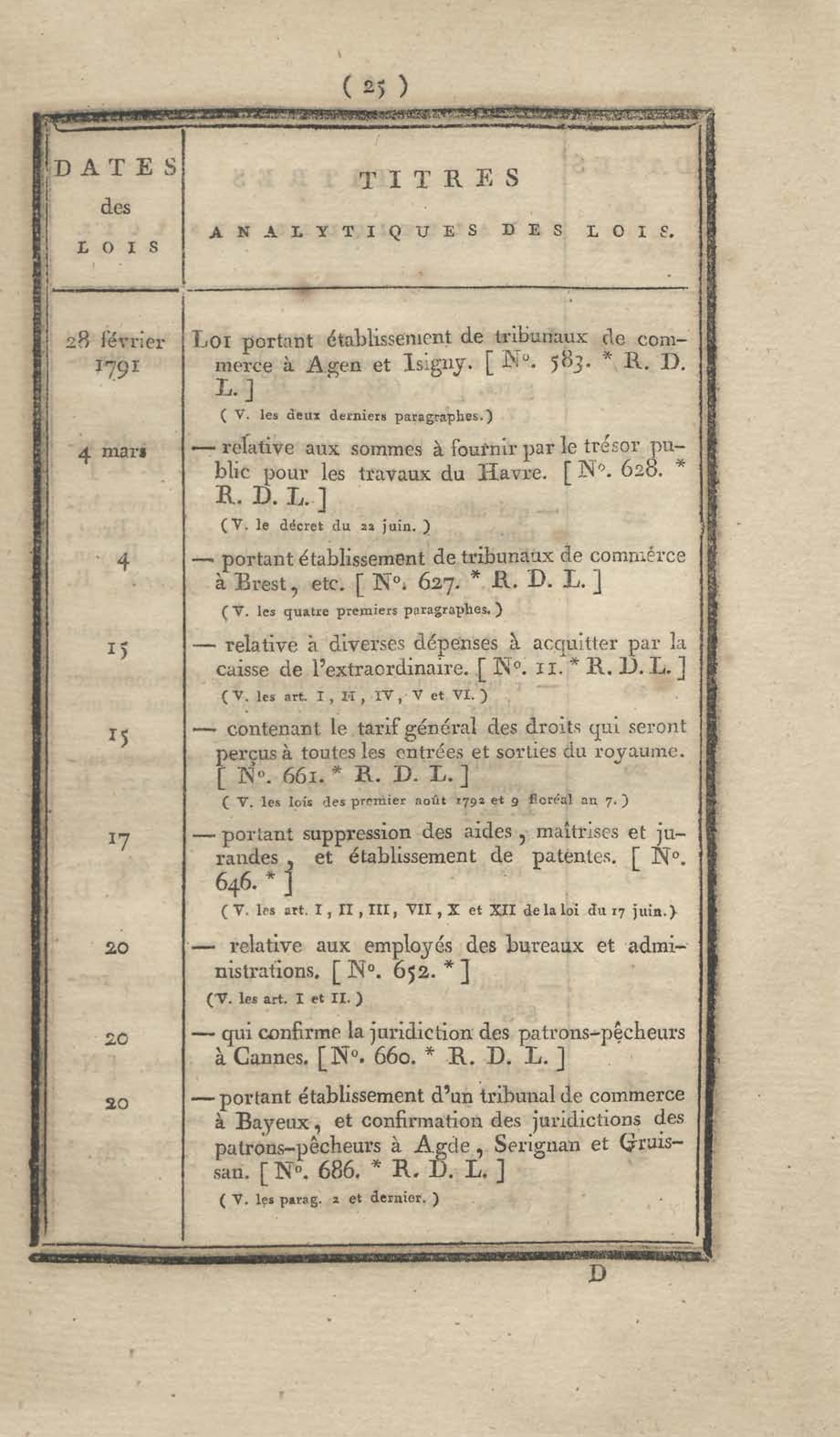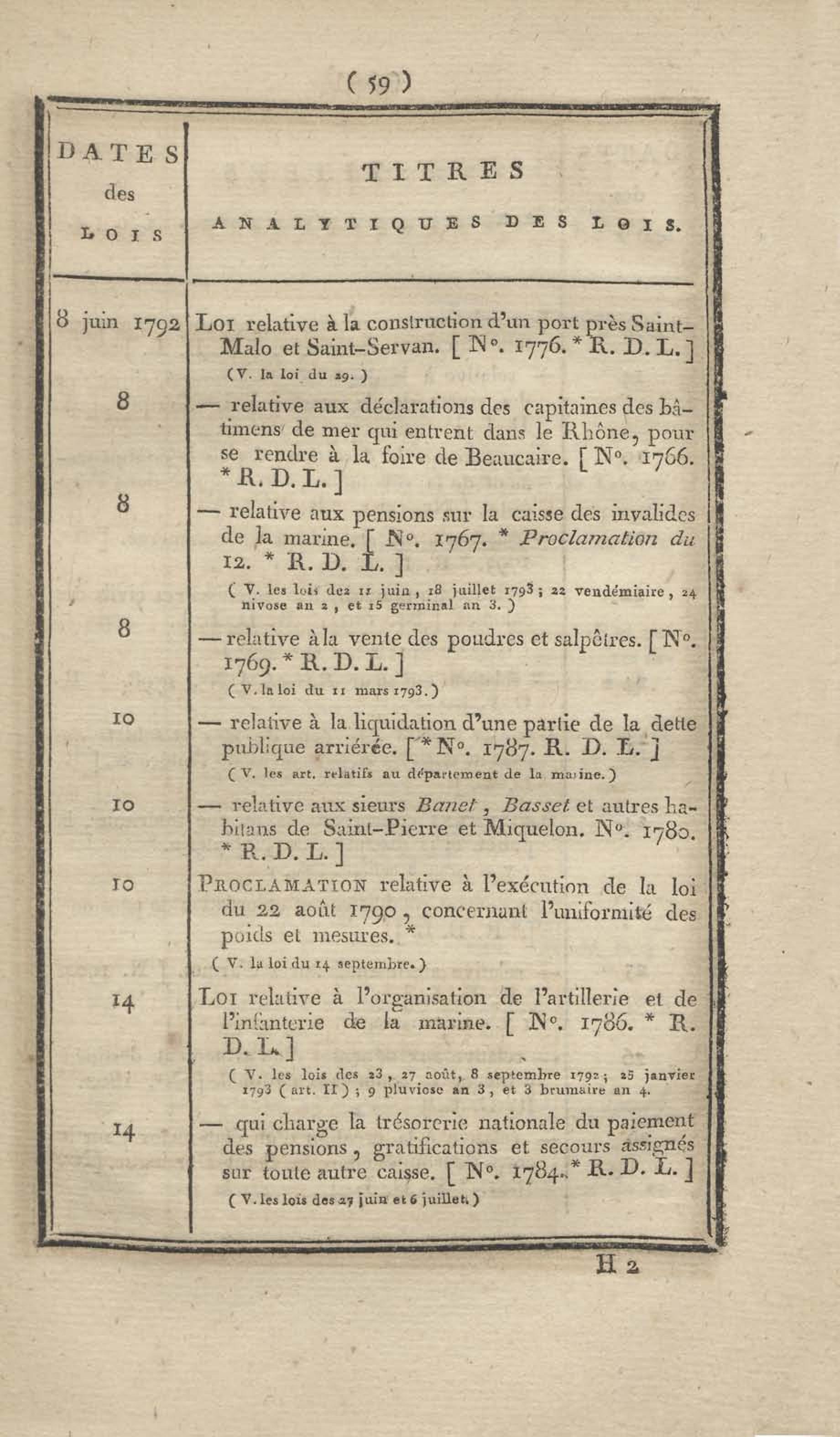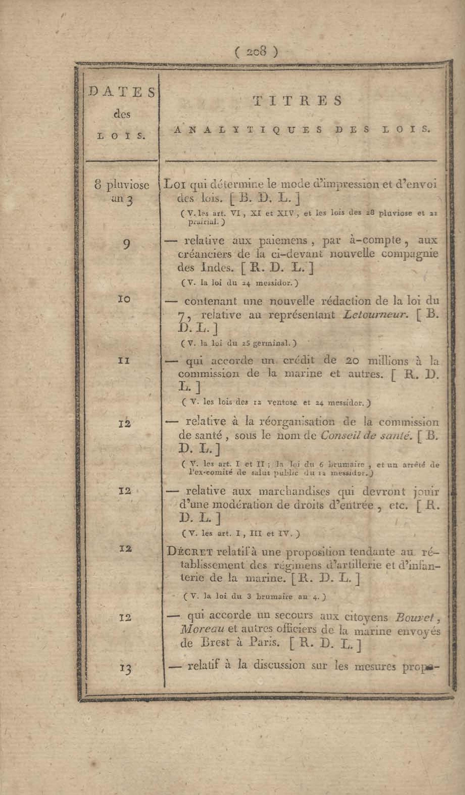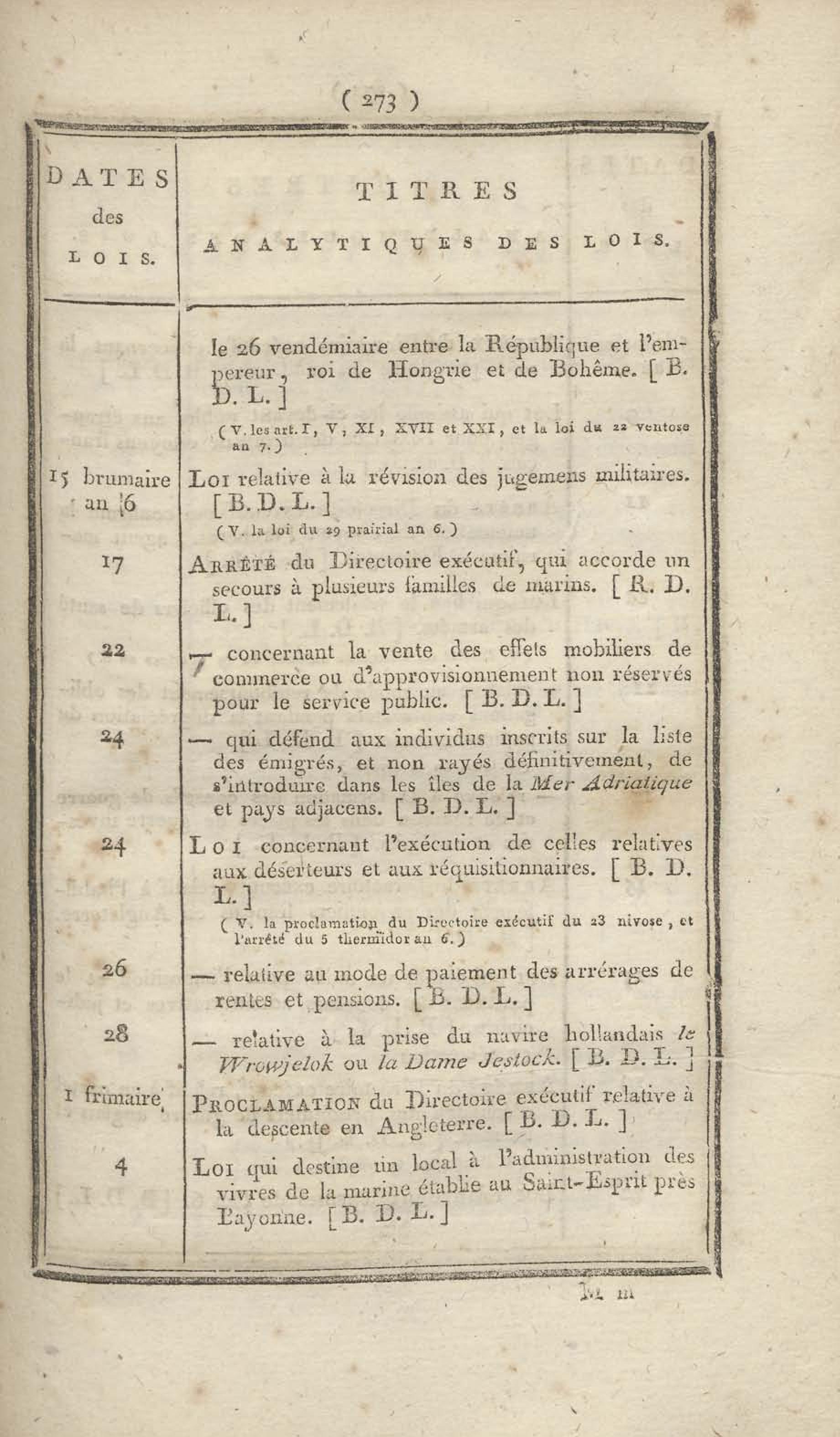 - Table chronologique et analytique des lois rendues depuis 1789 concernant la marine et les colonies