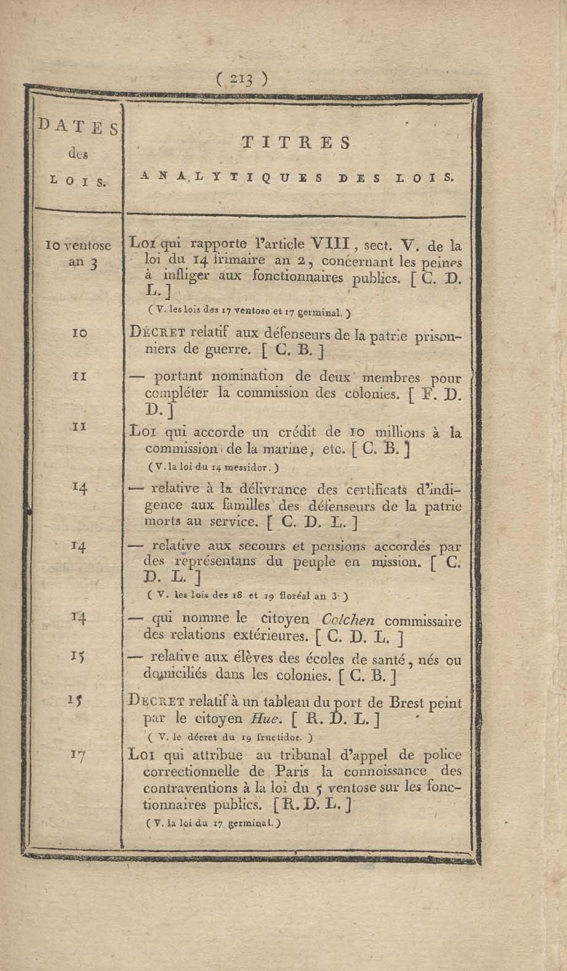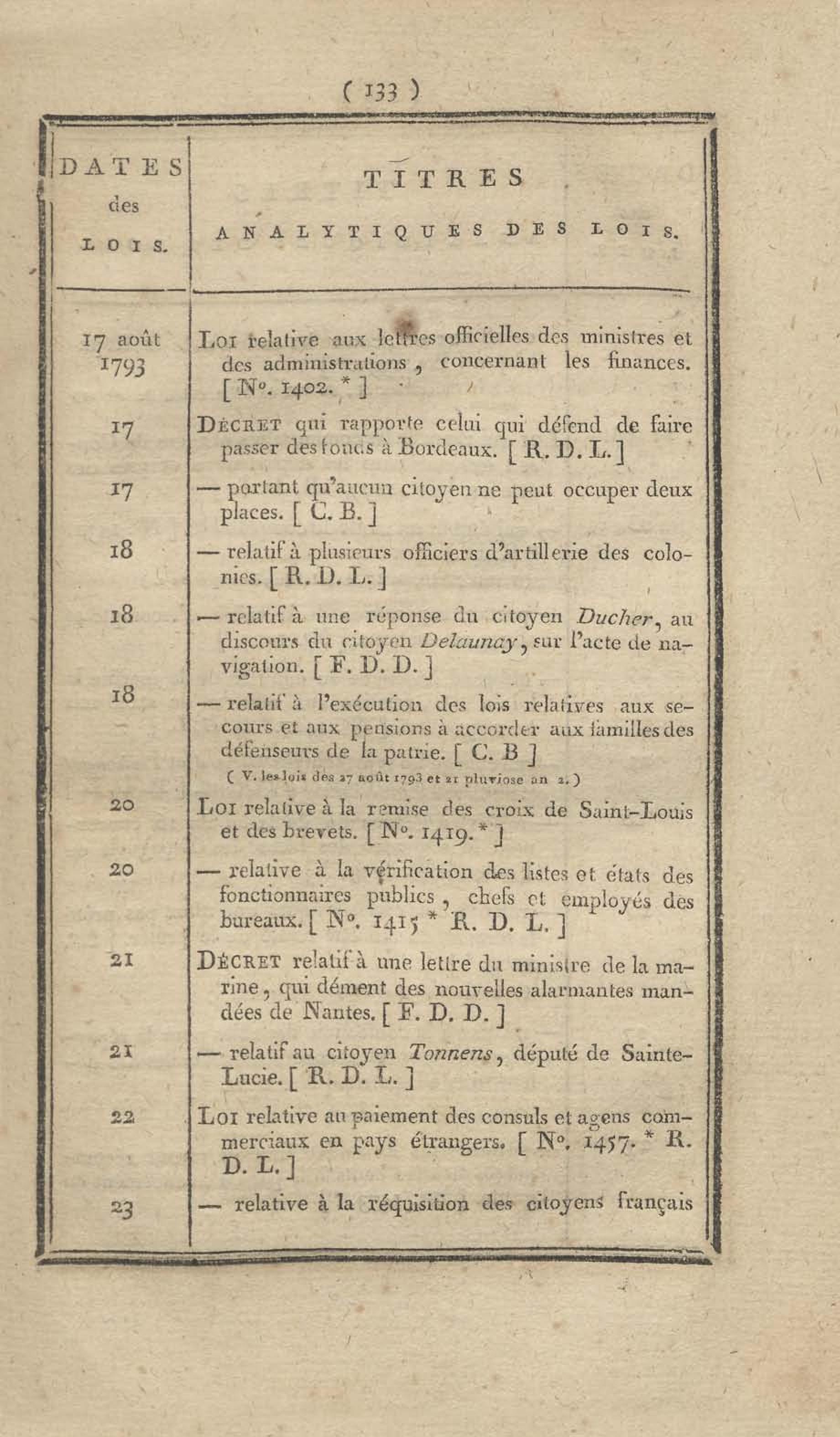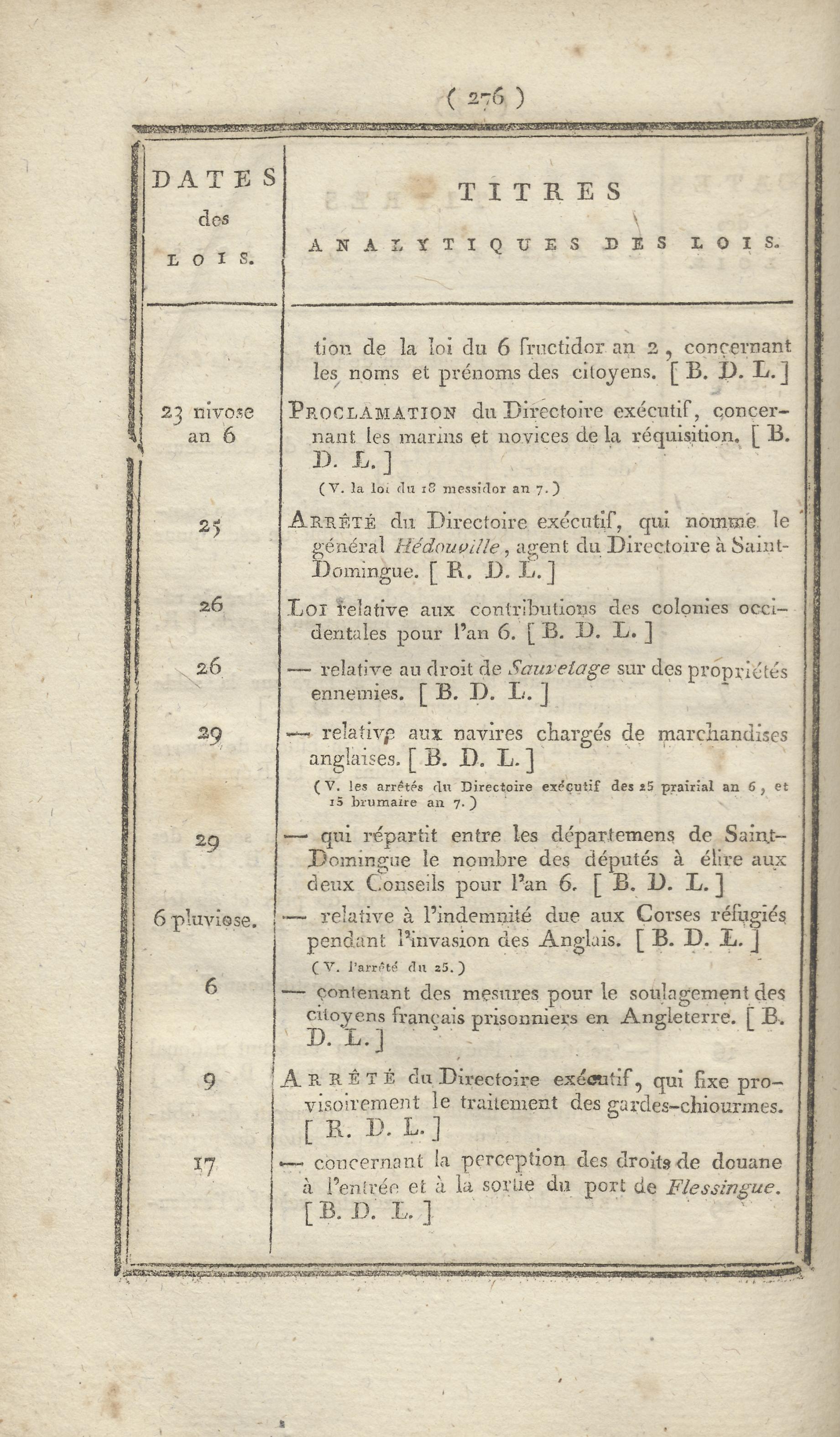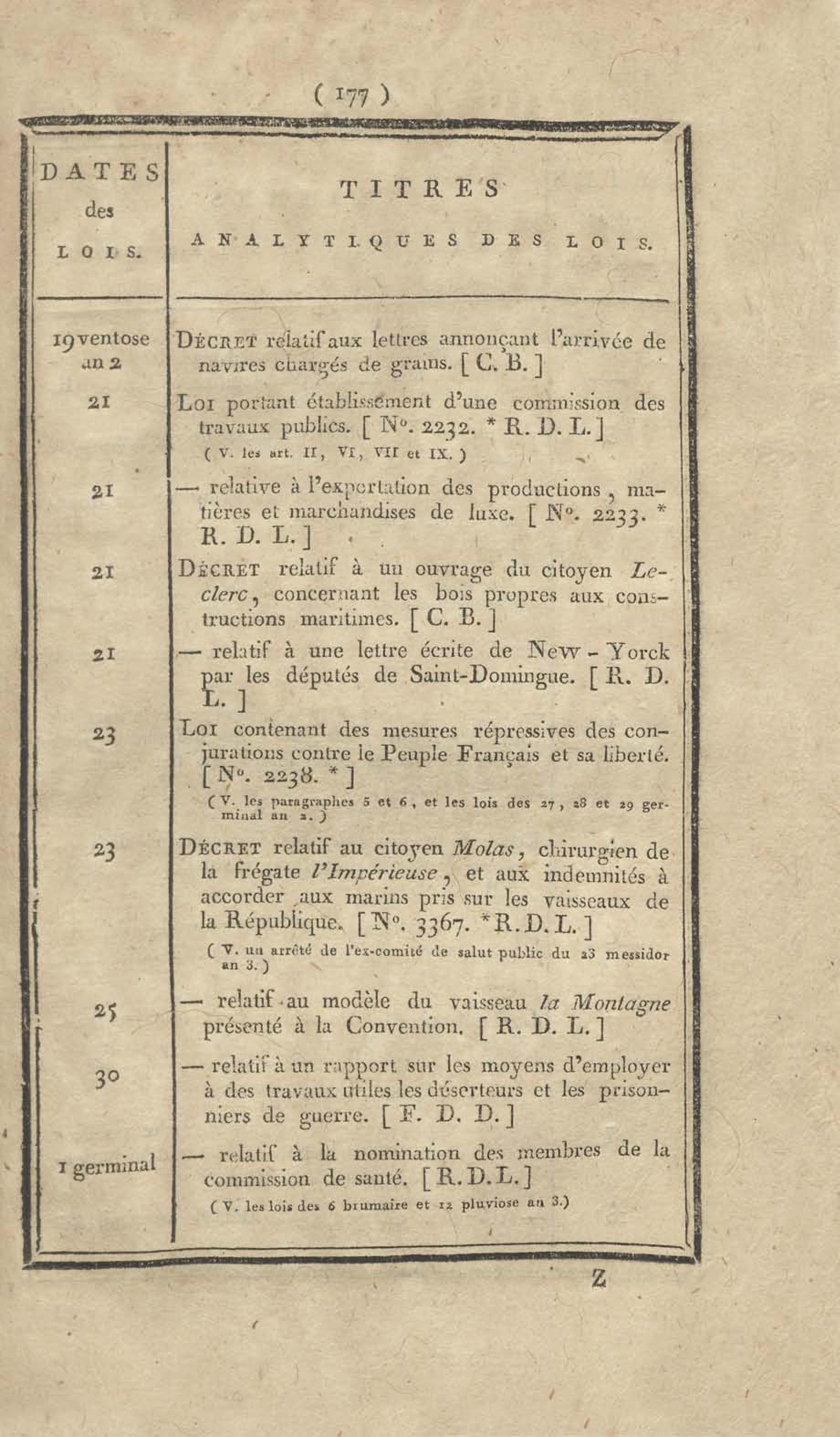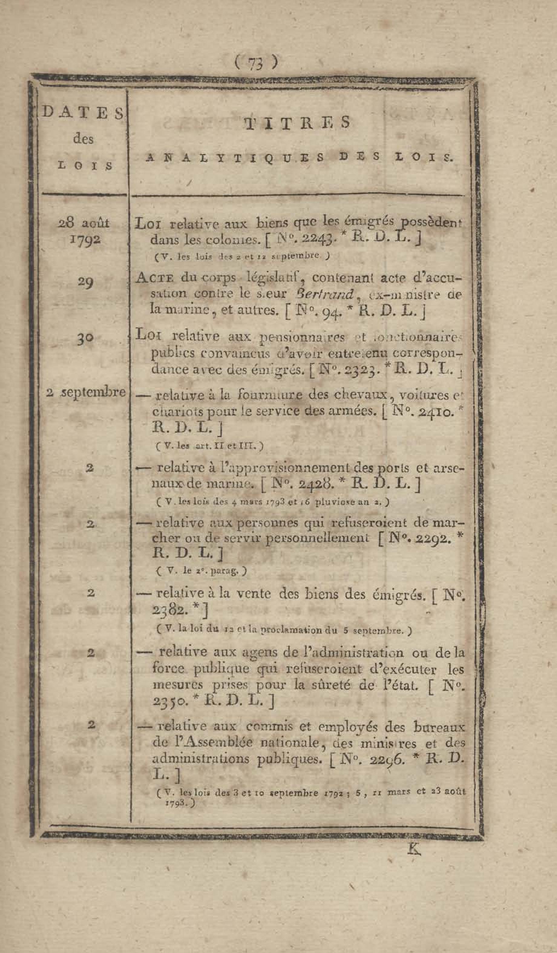- Table chronologique et analytique des lois rendues depuis 1789 concernant la marine et les colonies