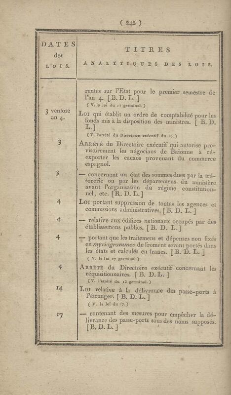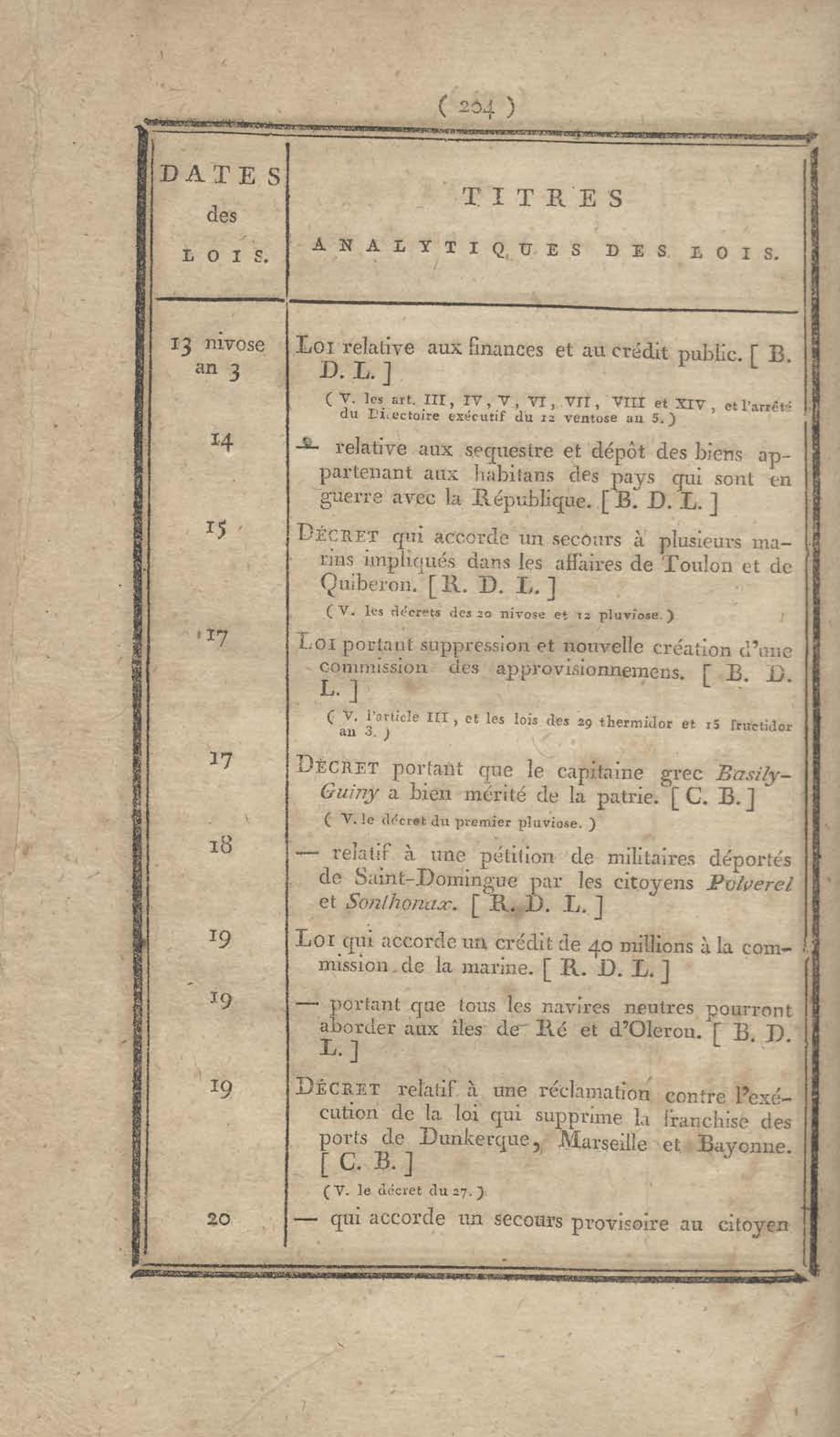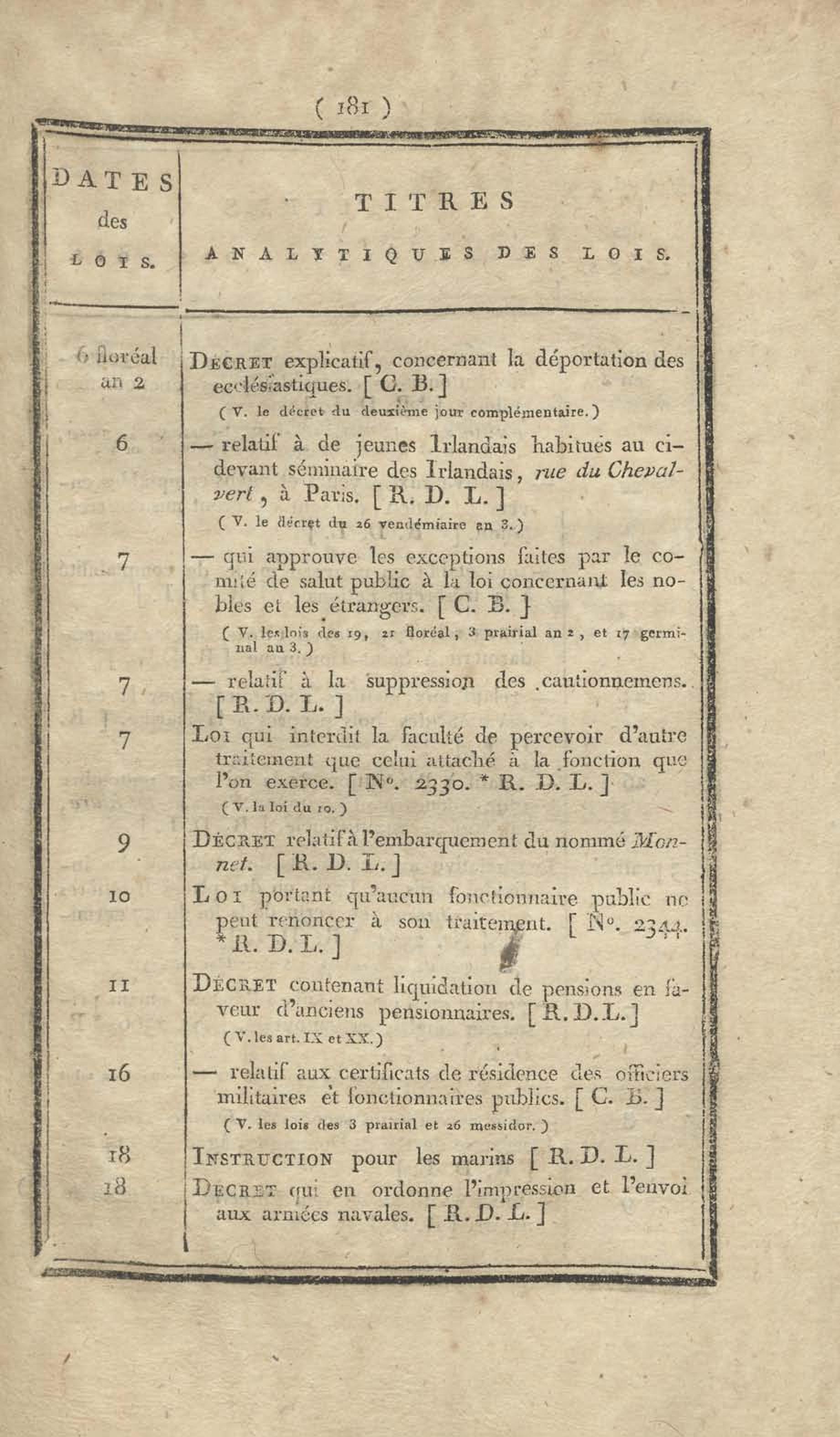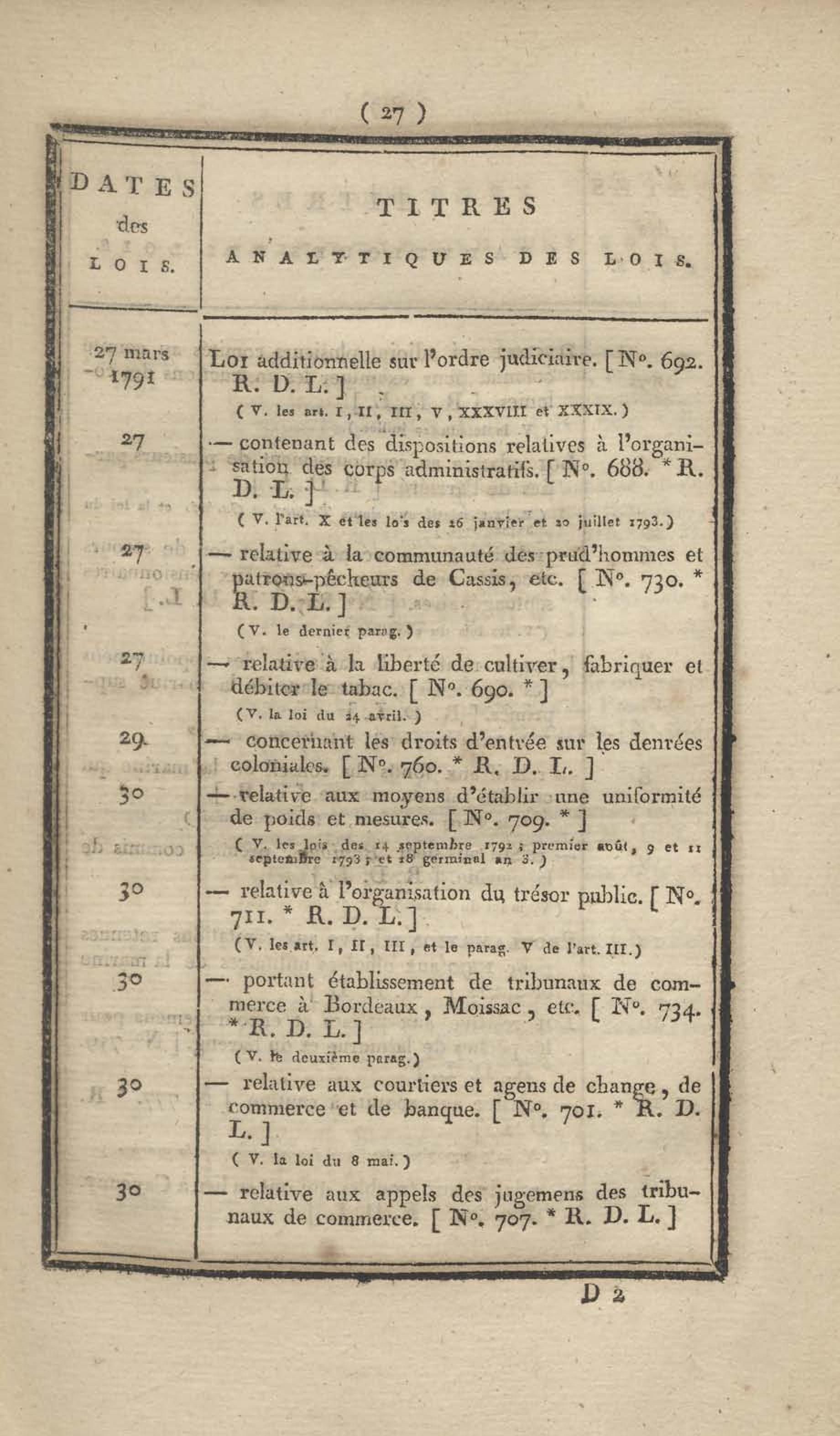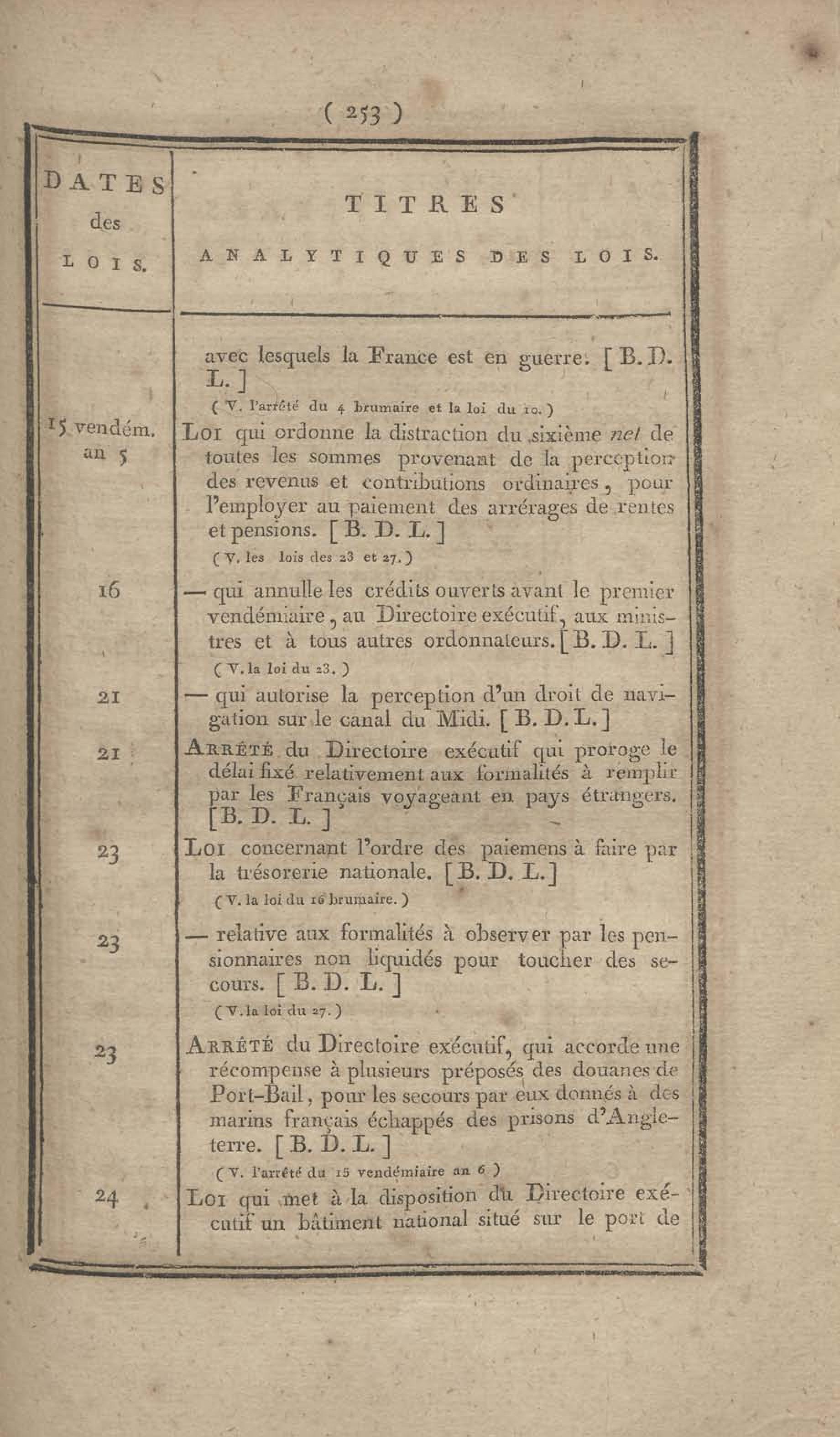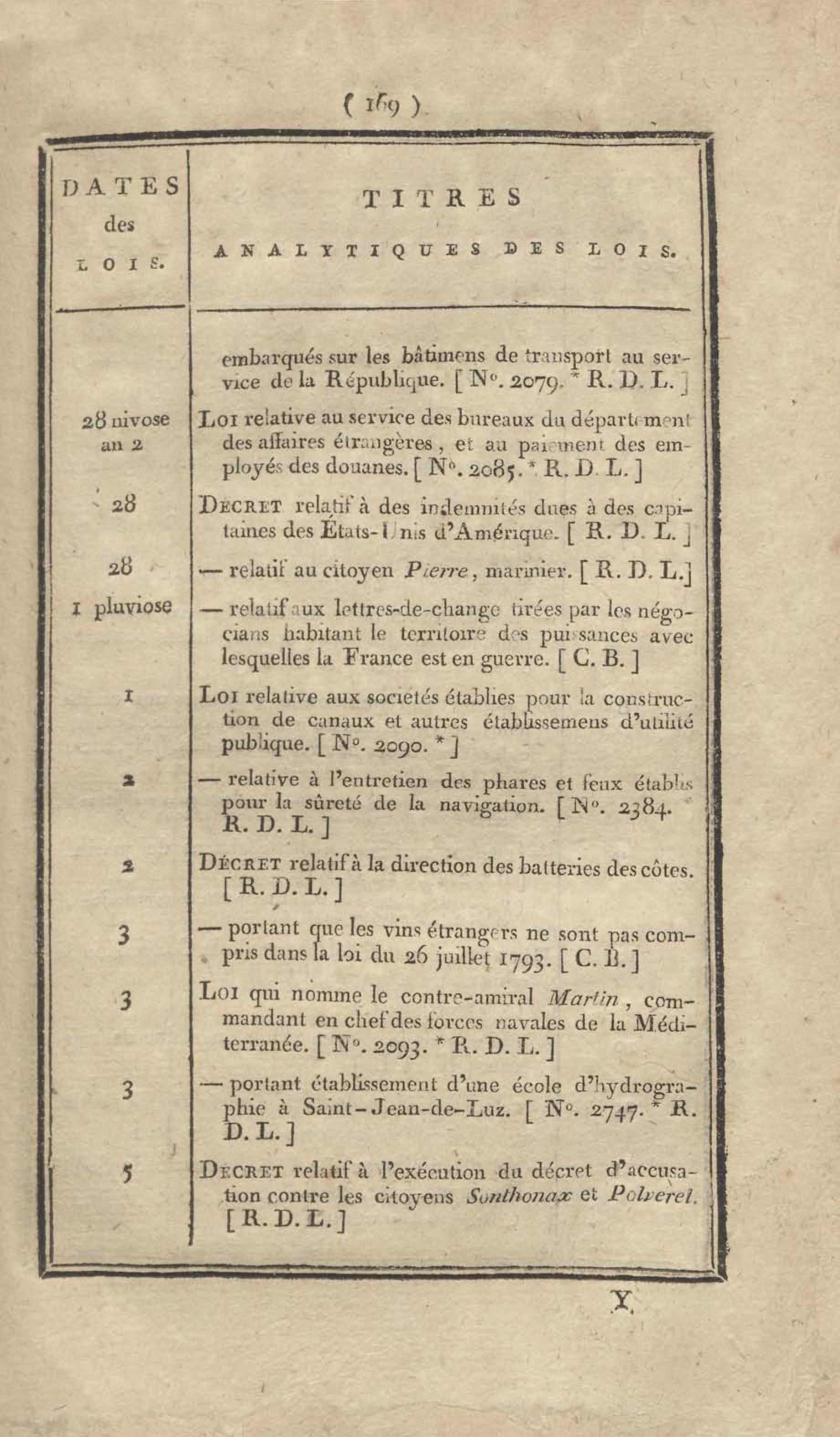 - Table chronologique et analytique des lois rendues depuis 1789 concernant la marine et les colonies