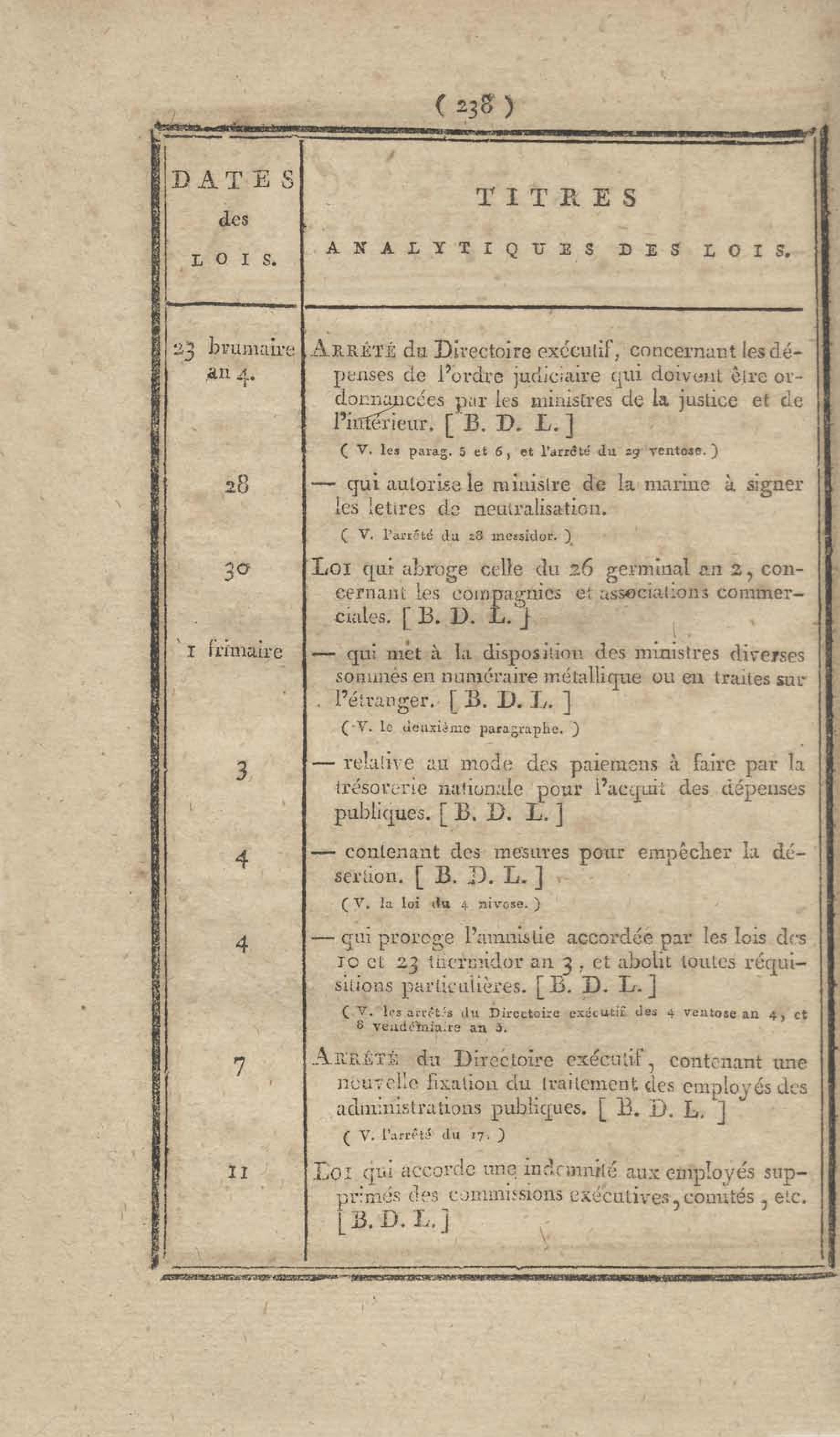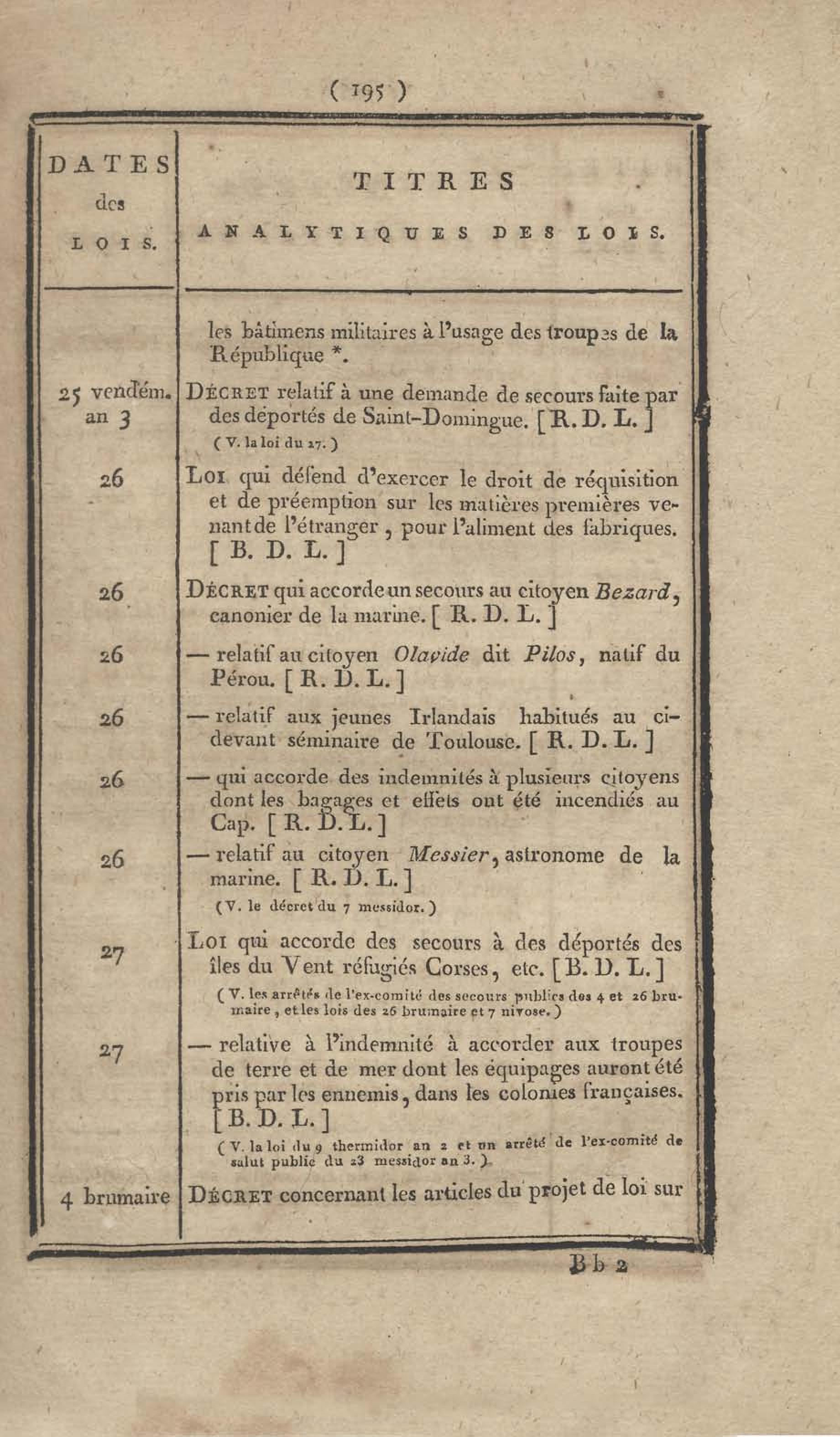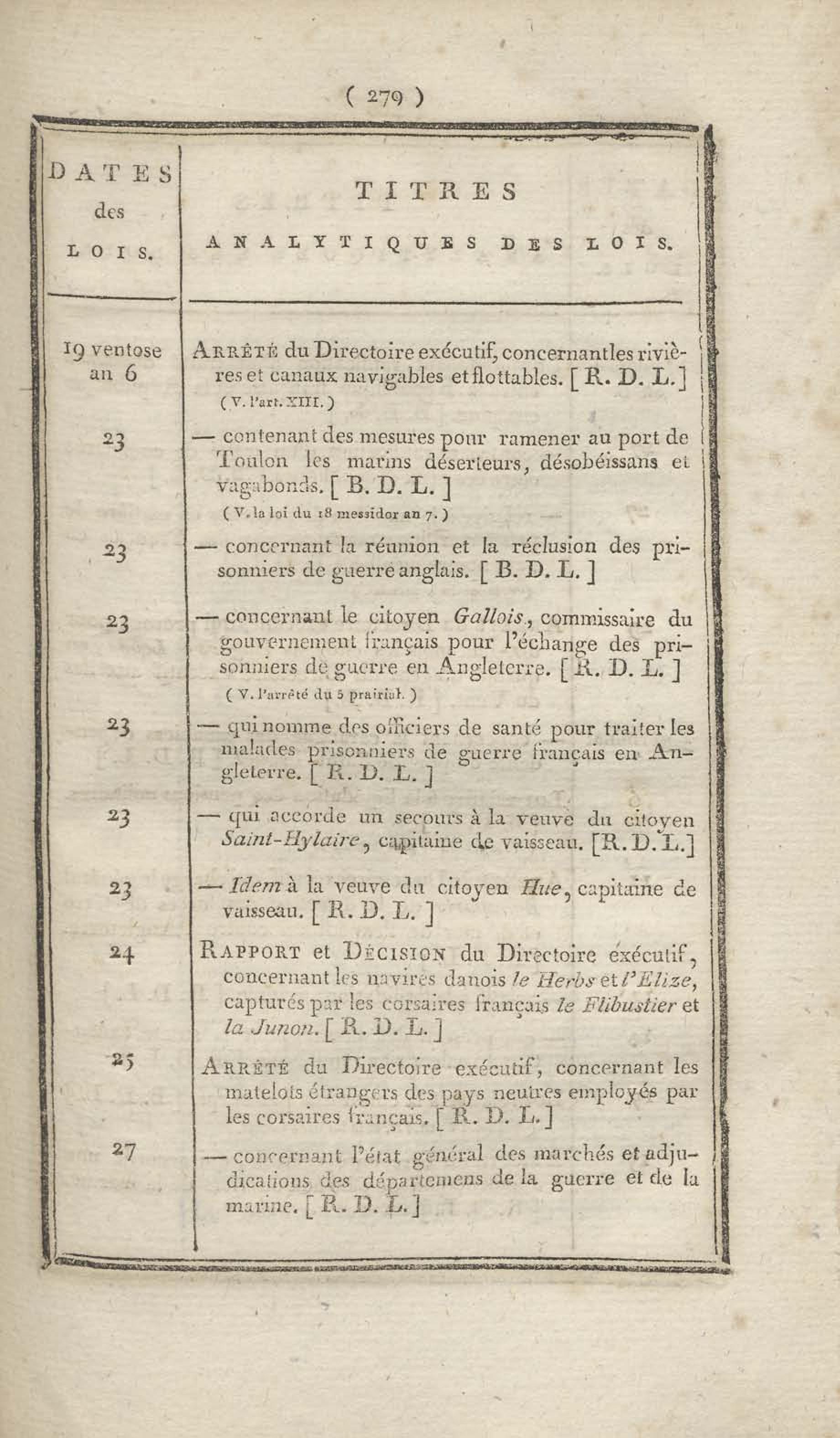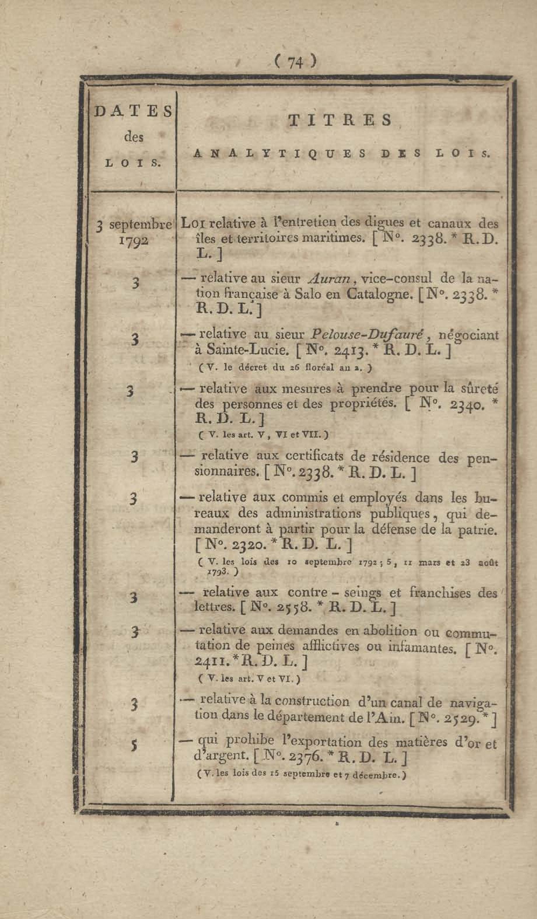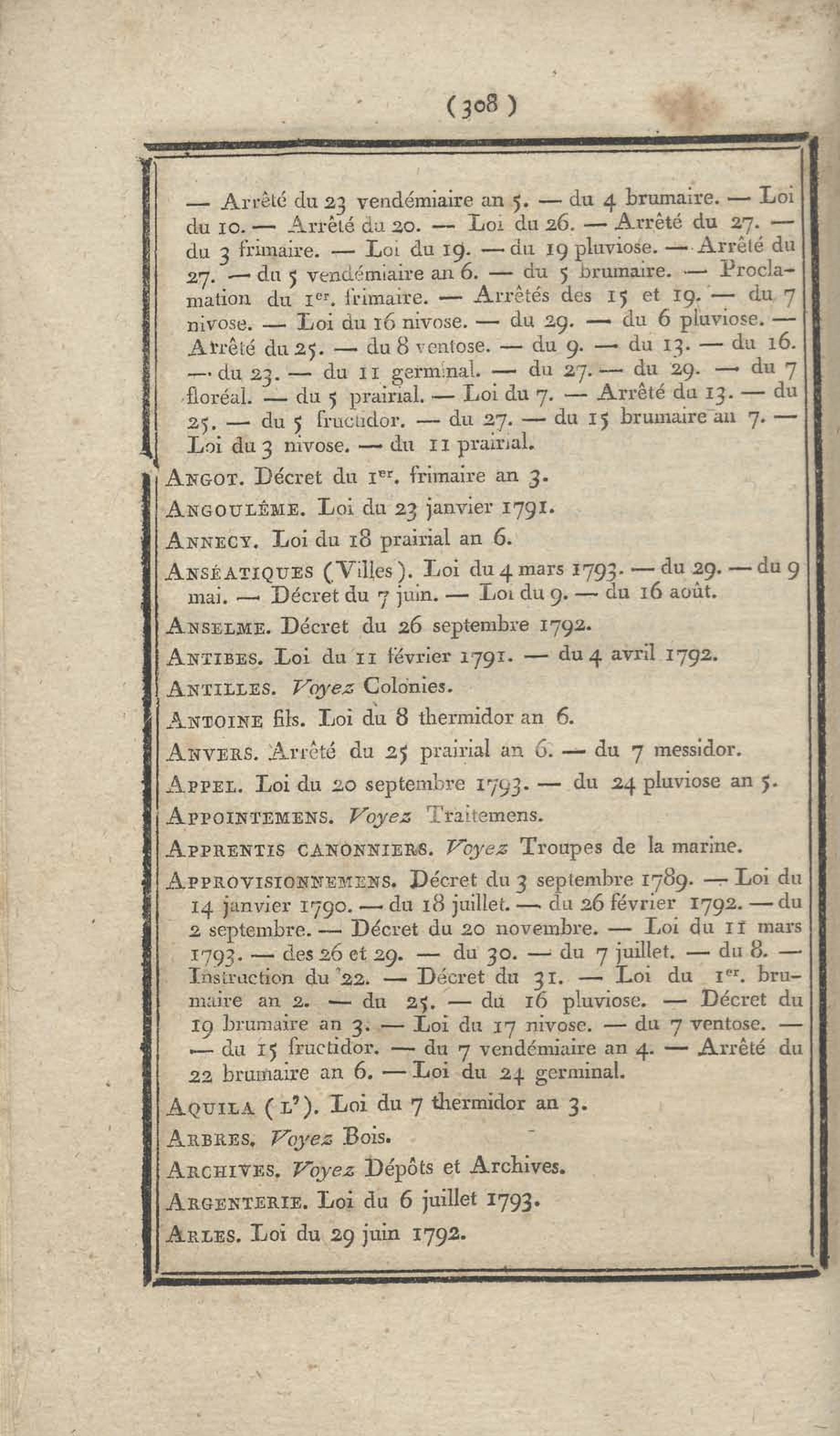 - Table chronologique et analytique des lois rendues depuis 1789 concernant la marine et les colonies