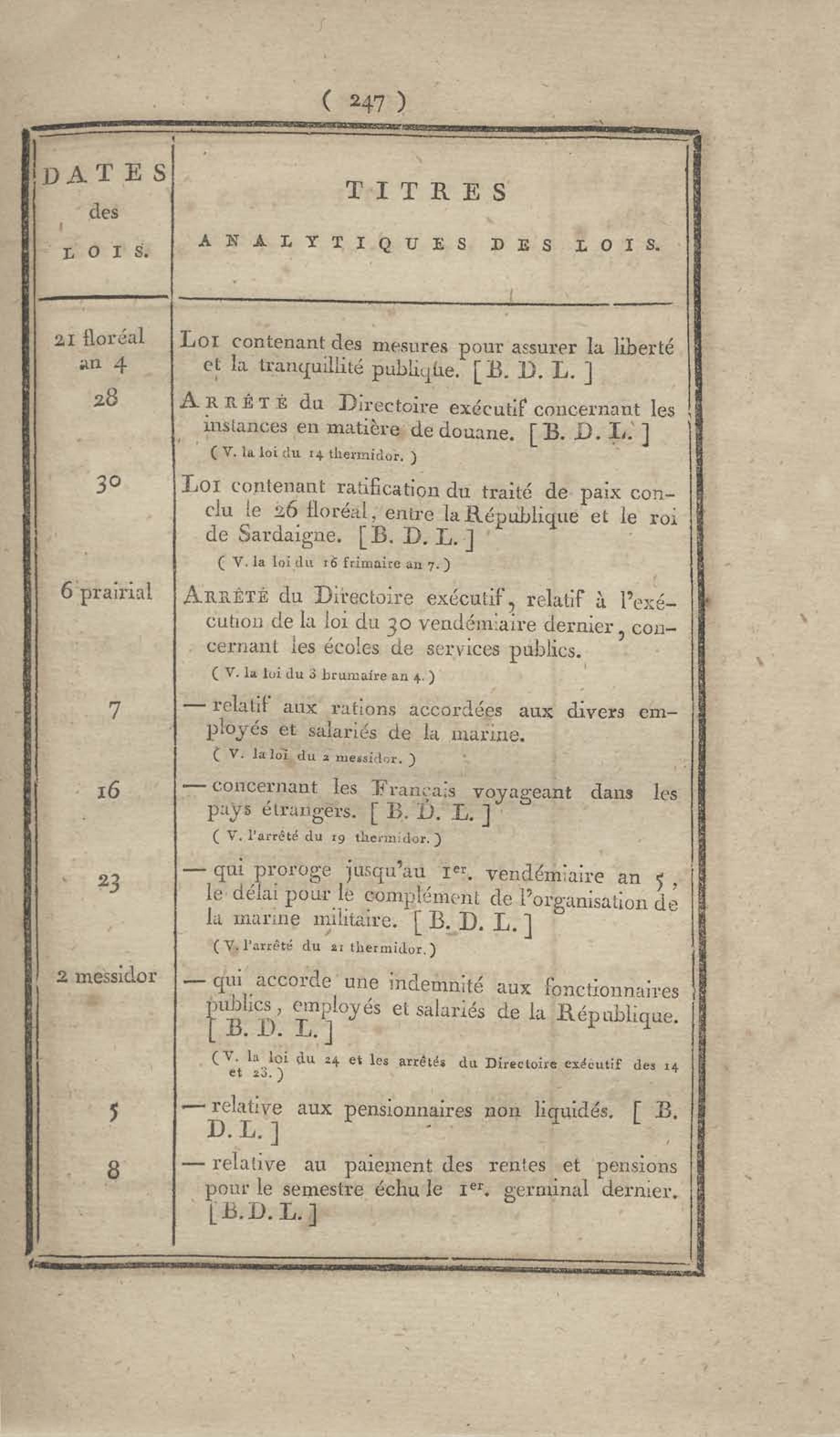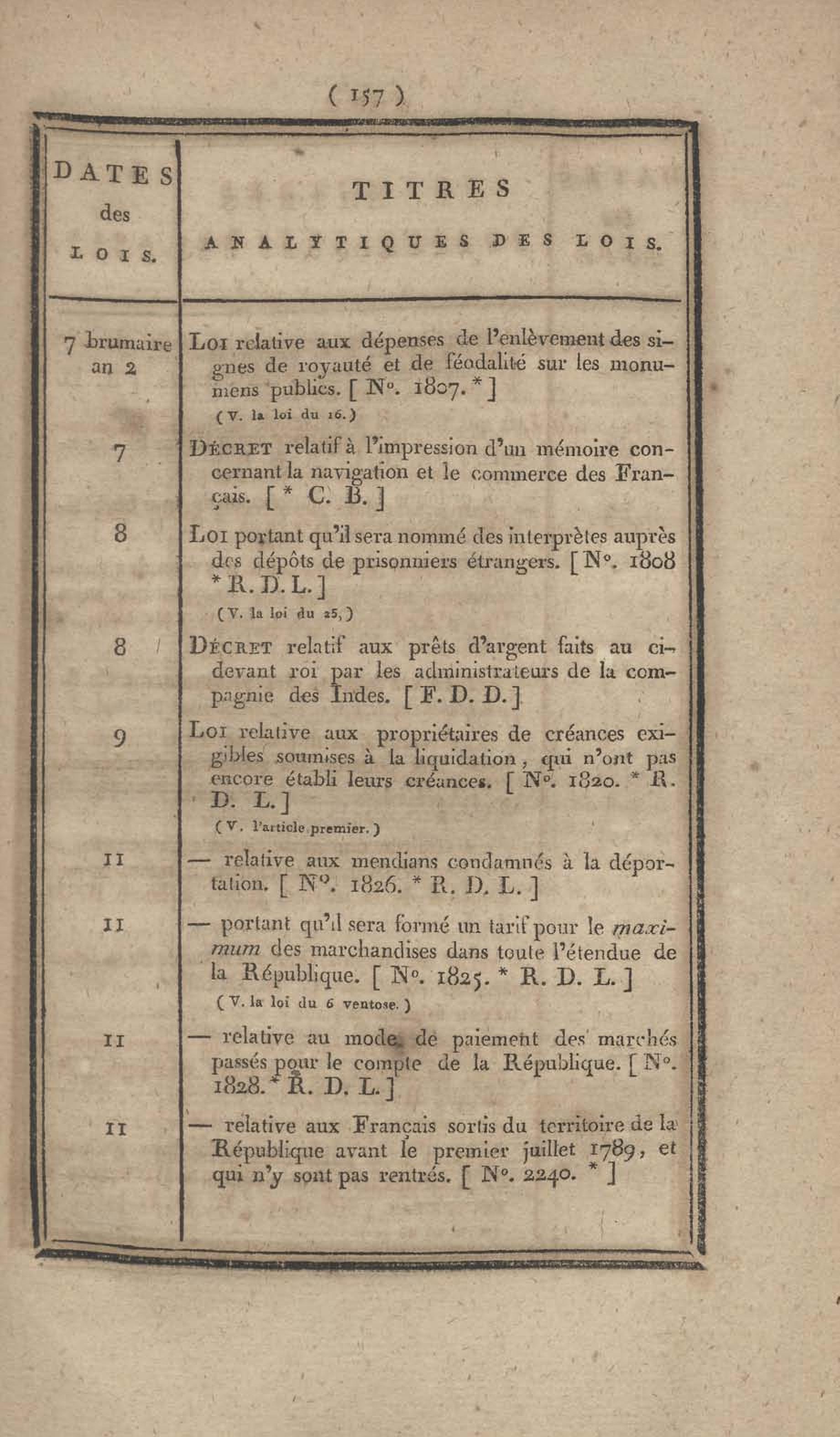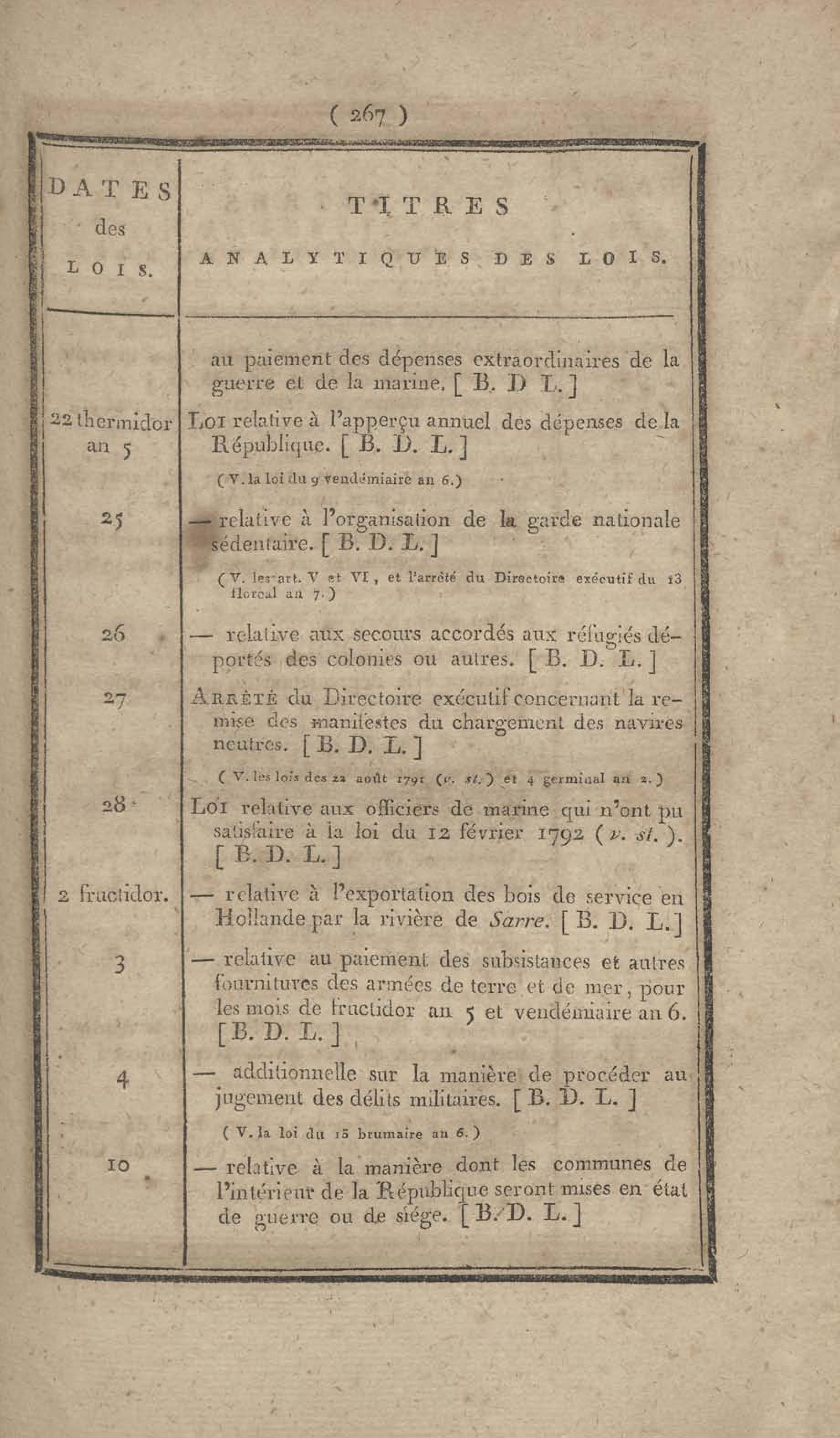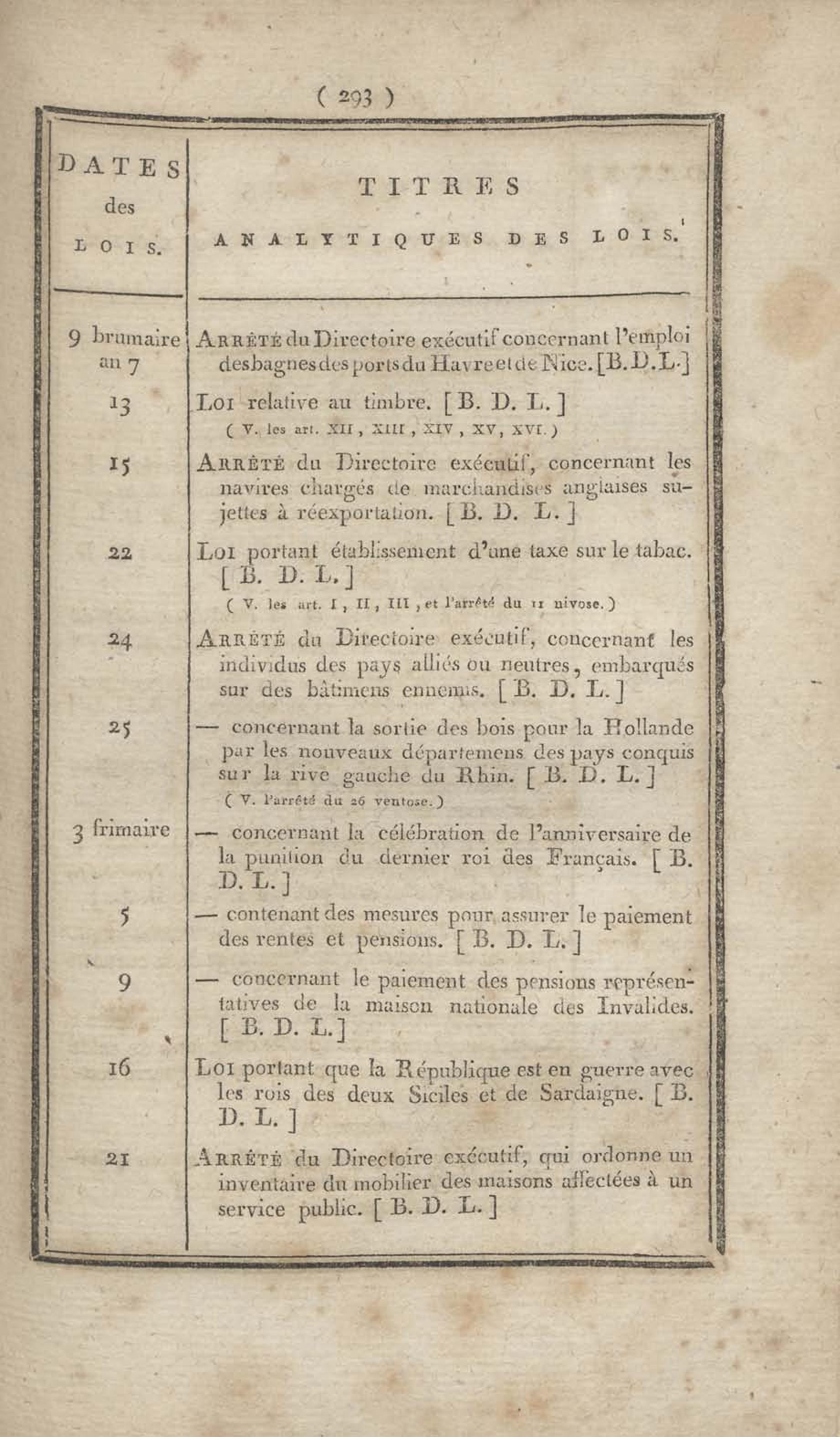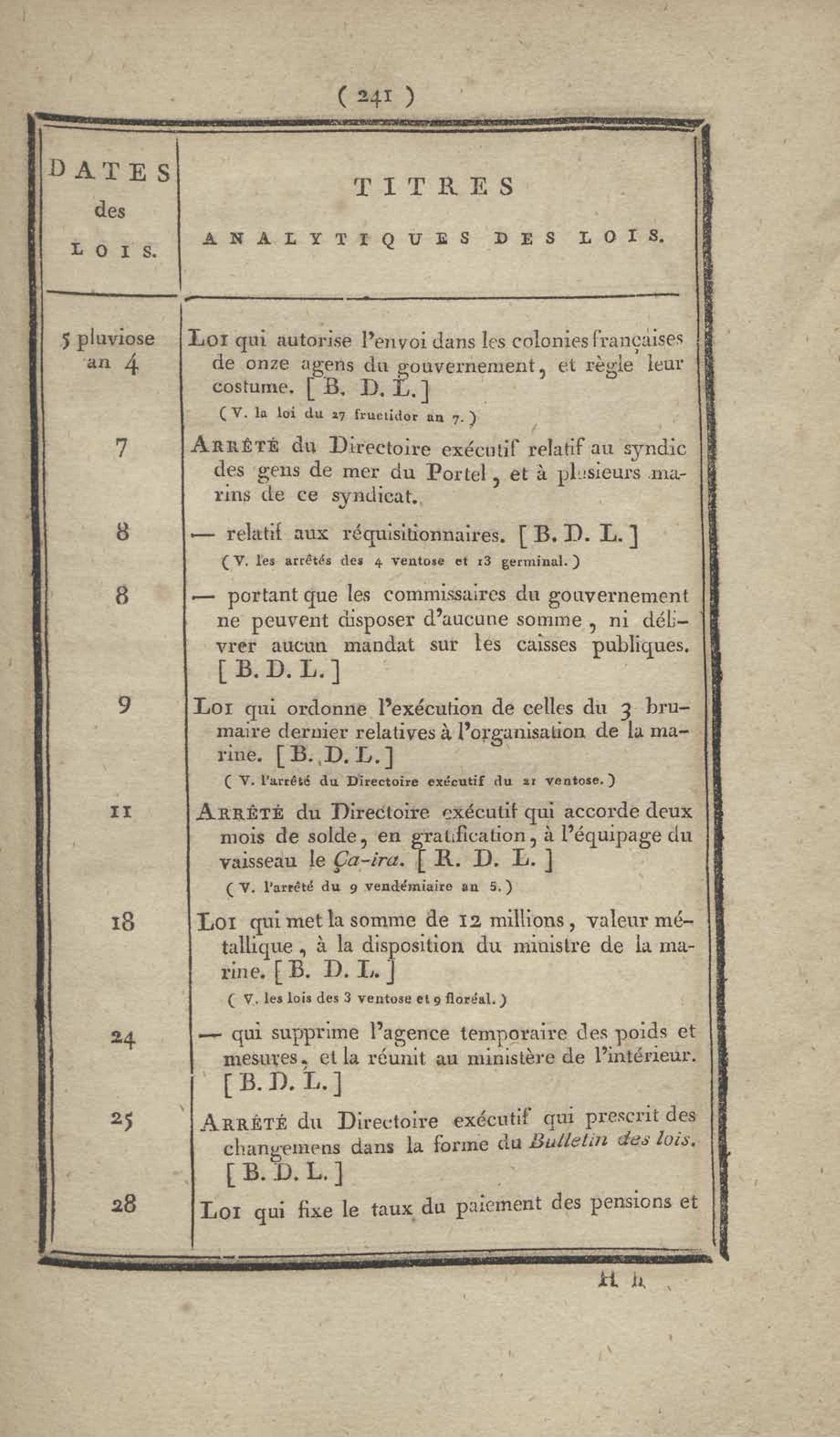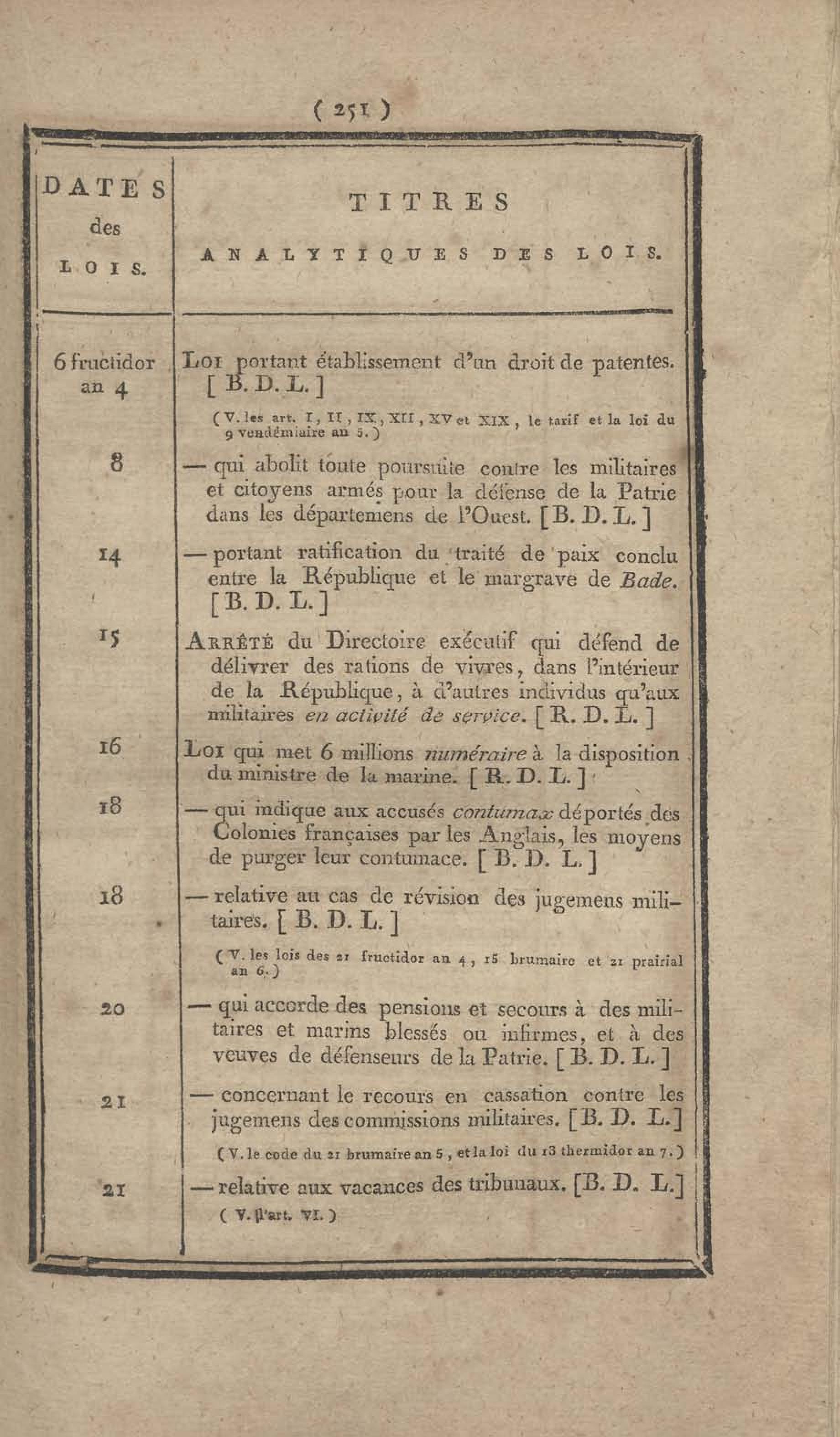 - Table chronologique et analytique des lois rendues depuis 1789 concernant la marine et les colonies